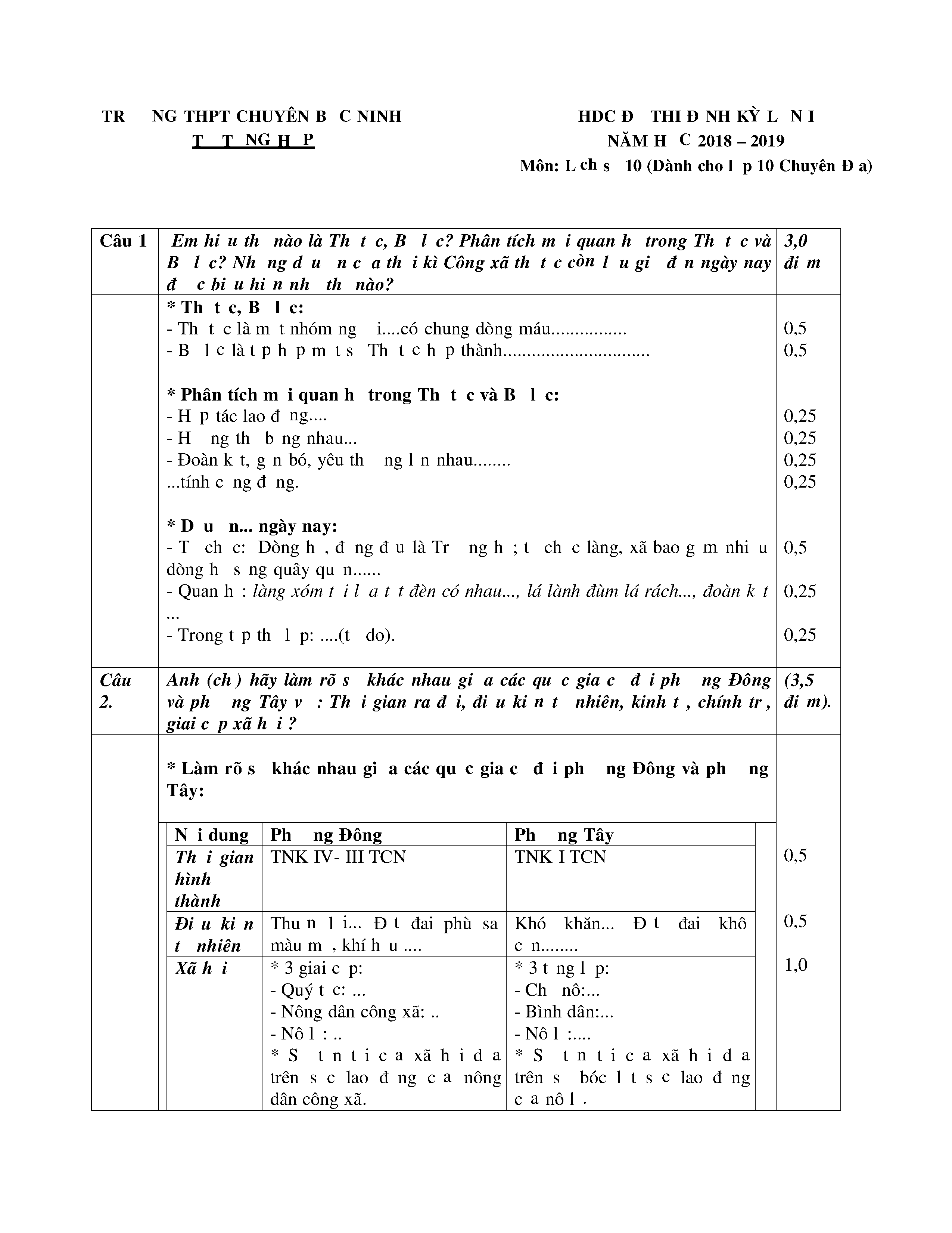 Đề thi kiểm tra định kì lần 1 - Lớp 10 - năm học 2018 - 2019 - Lịch sử - Trường THPT Chuyên Bắc Ninh