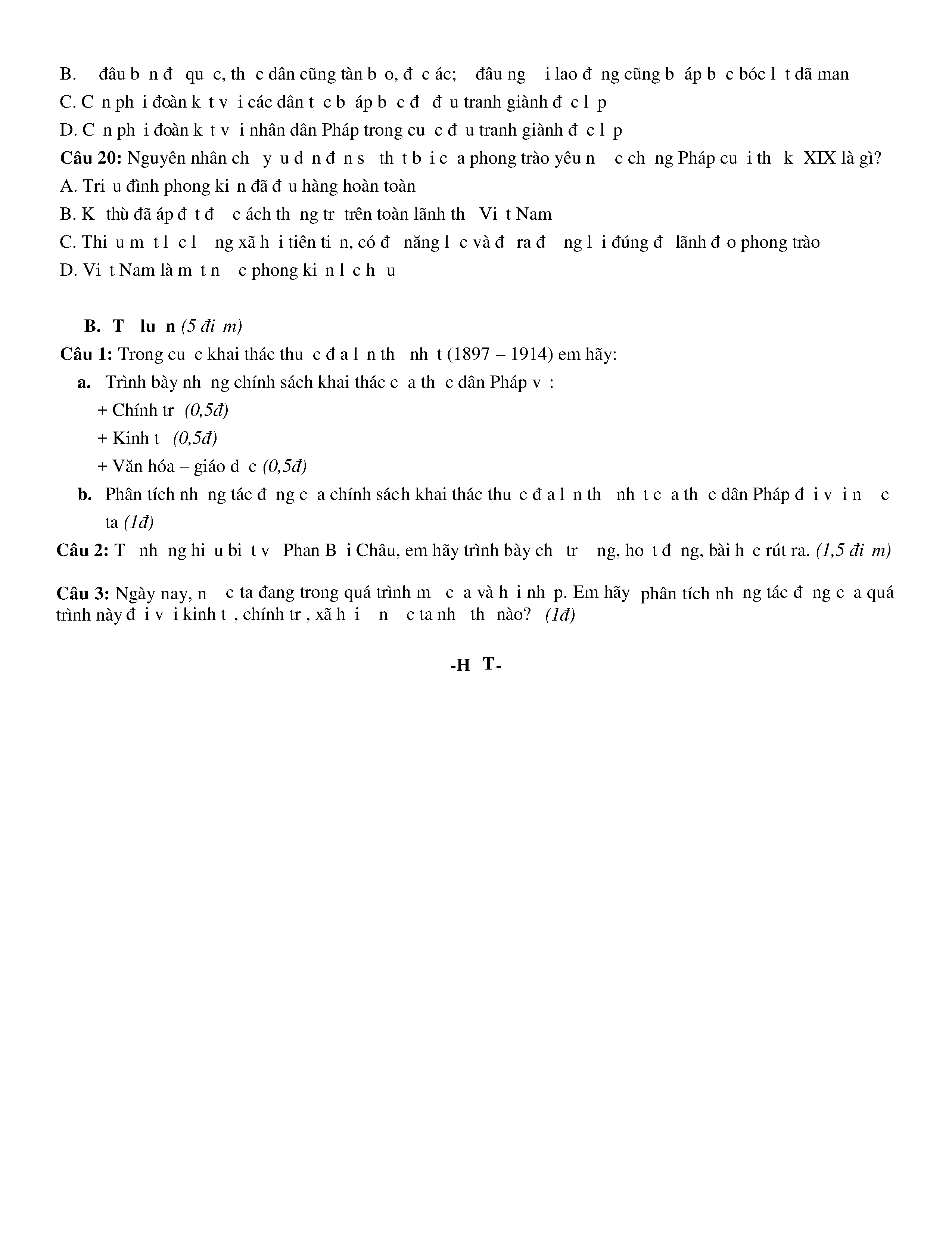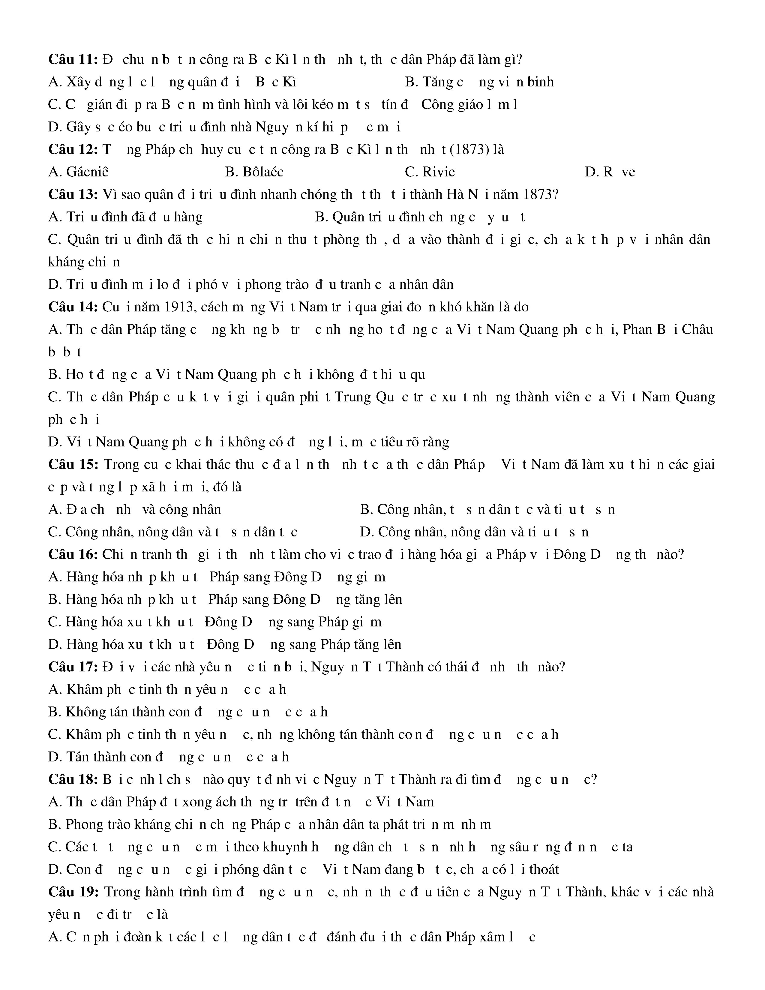Đề kiểm tra HKII - Lớp 11 - năm học 2018 - 2019 - Lịch sử - Trường THPT Châu Thành