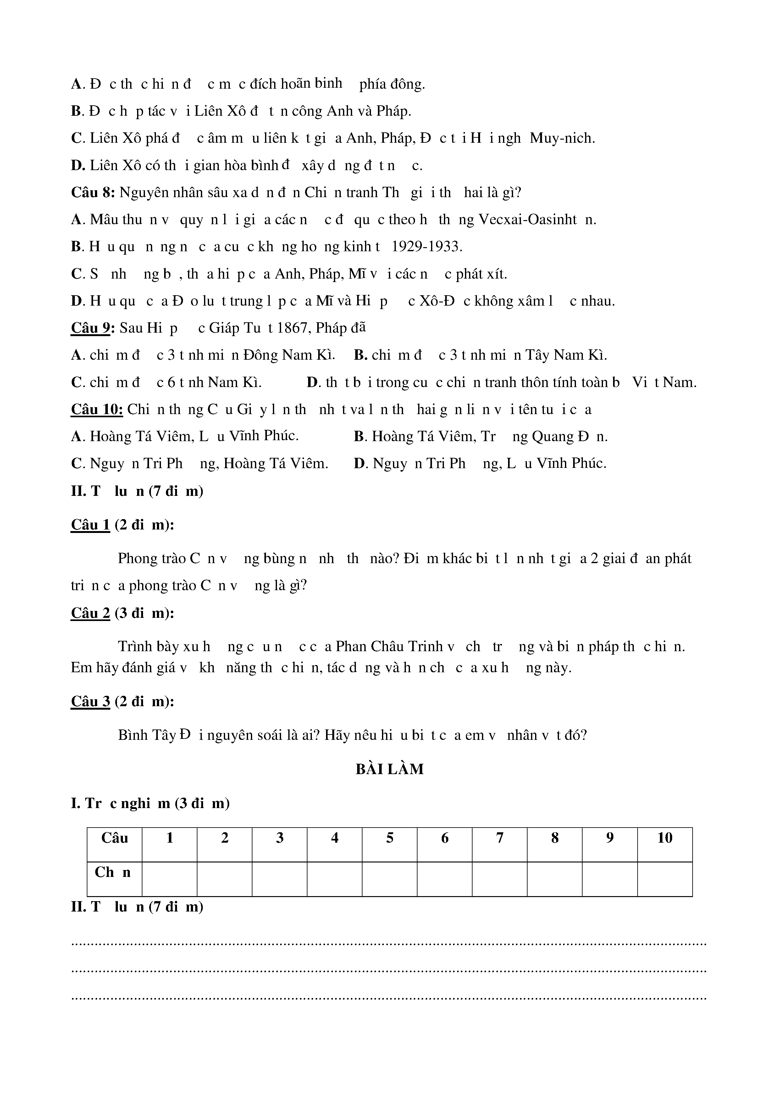 Đề kiểm tra HKII - Lớp 11 - năm học 2018 - 2019 - Lịch sử - Trường THPT Hiệp Hòa