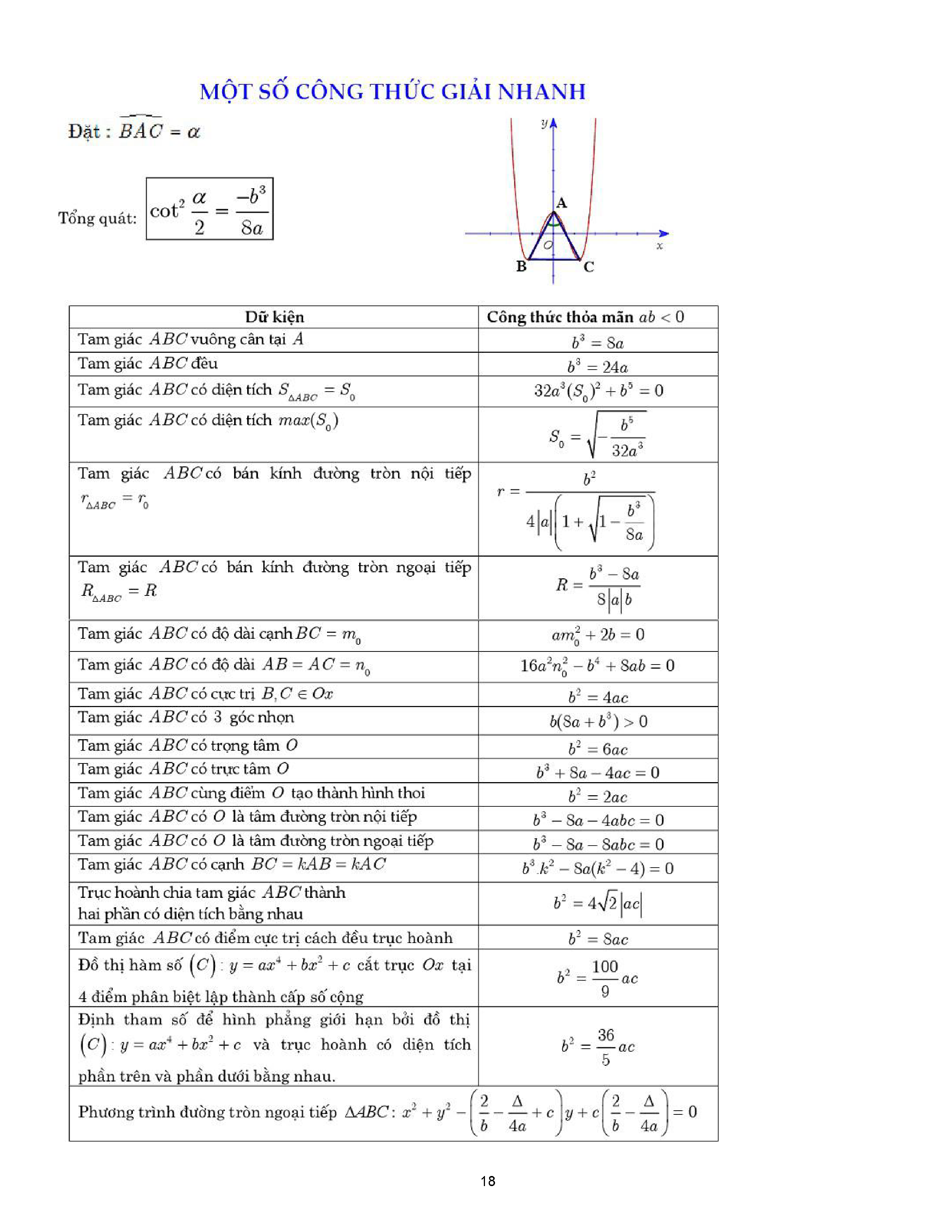 CÔNG THỨC GIẢI NHANH MÔN TOÁN ÔN THI THPT QUỐC GIA