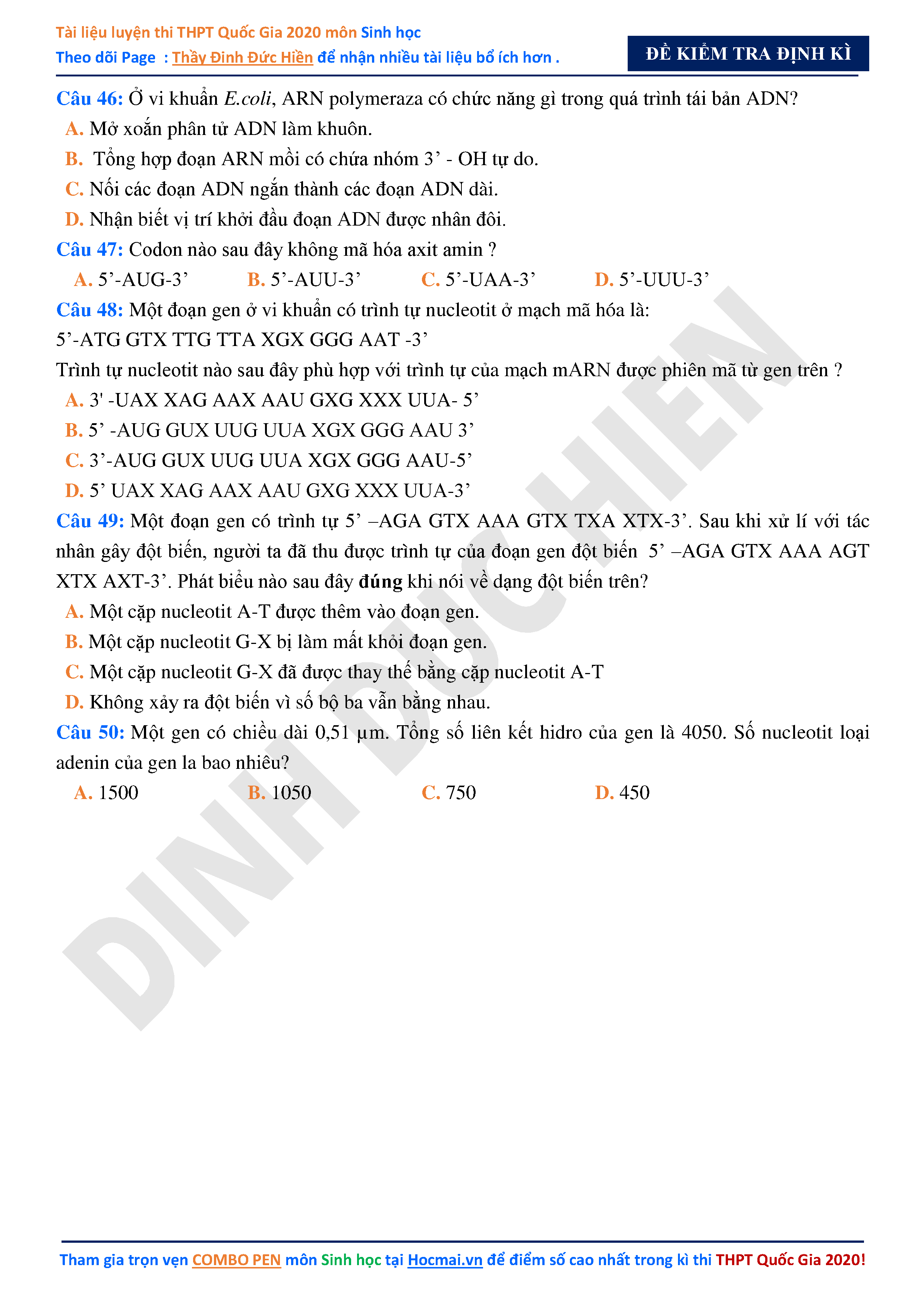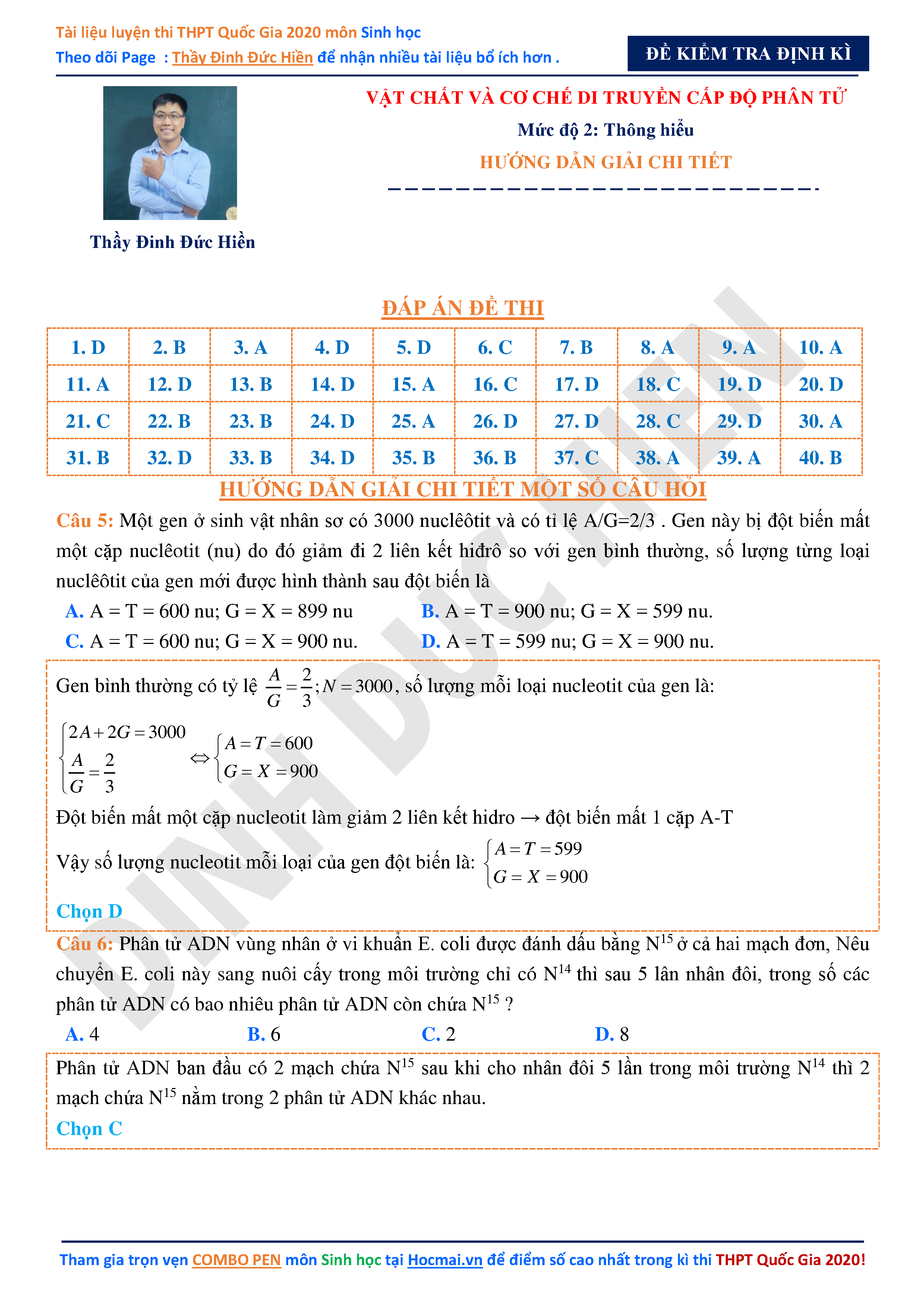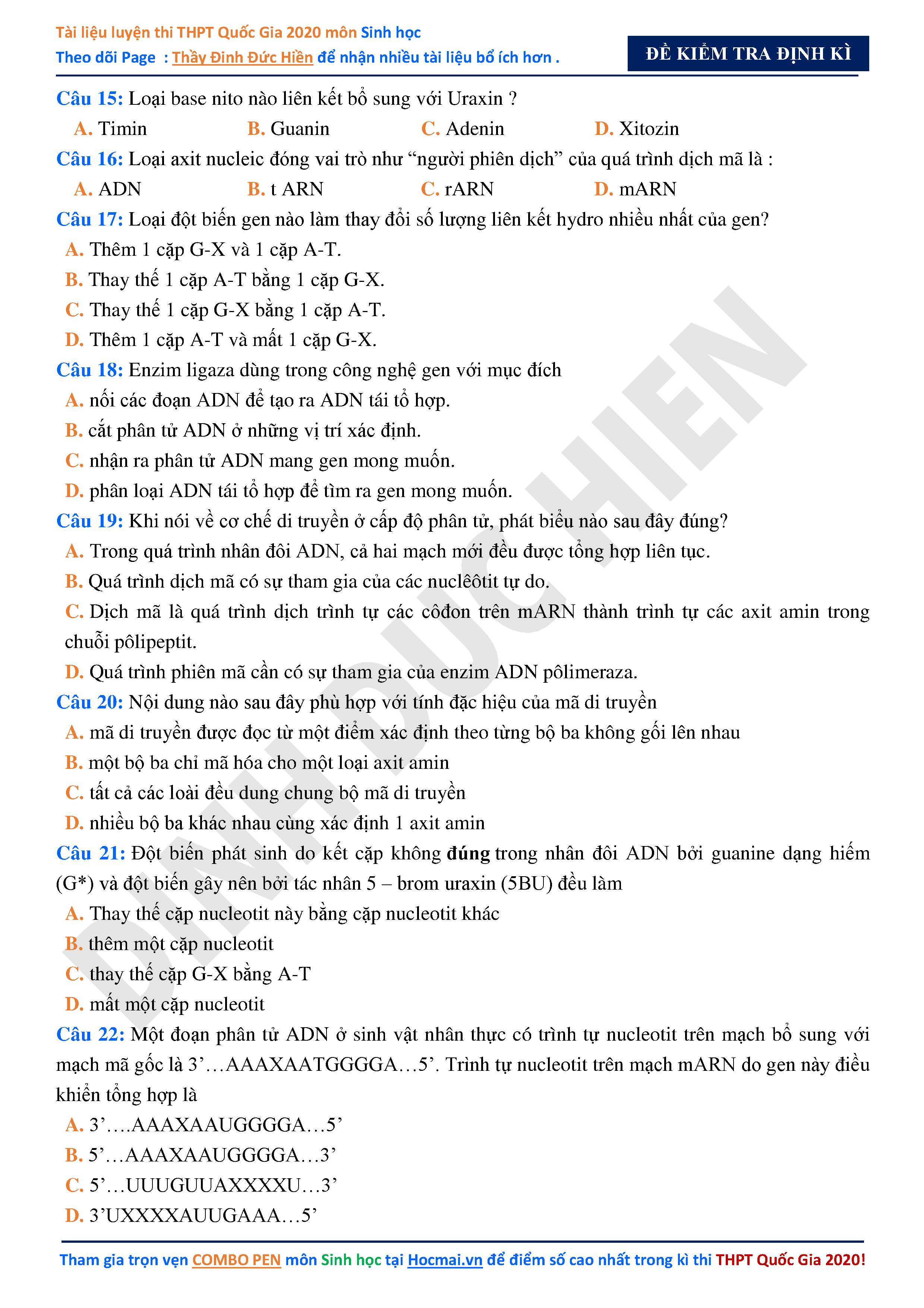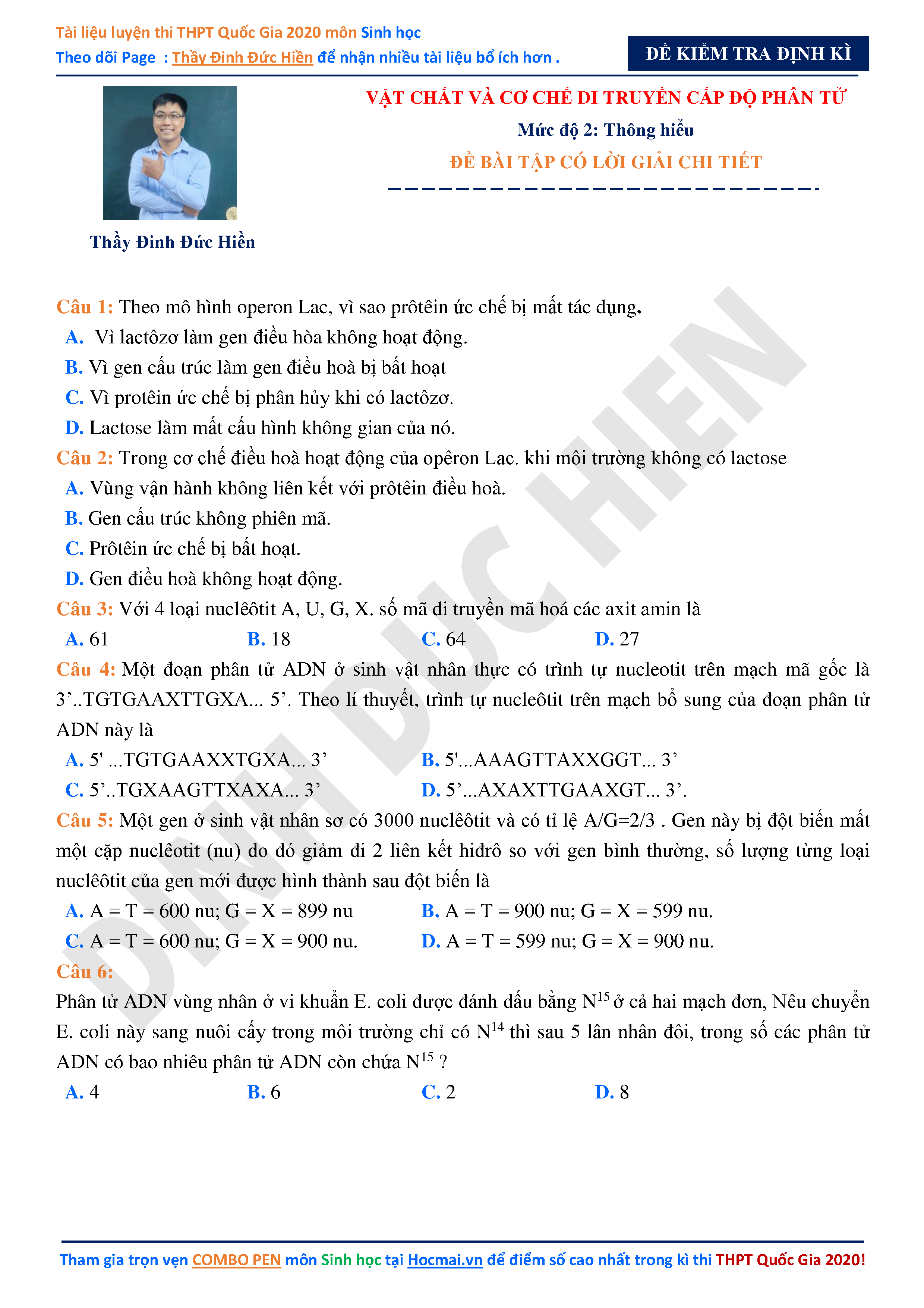 Đề kiểm tra: Vật chất và cơ chế di truyền cấp độ phân tử