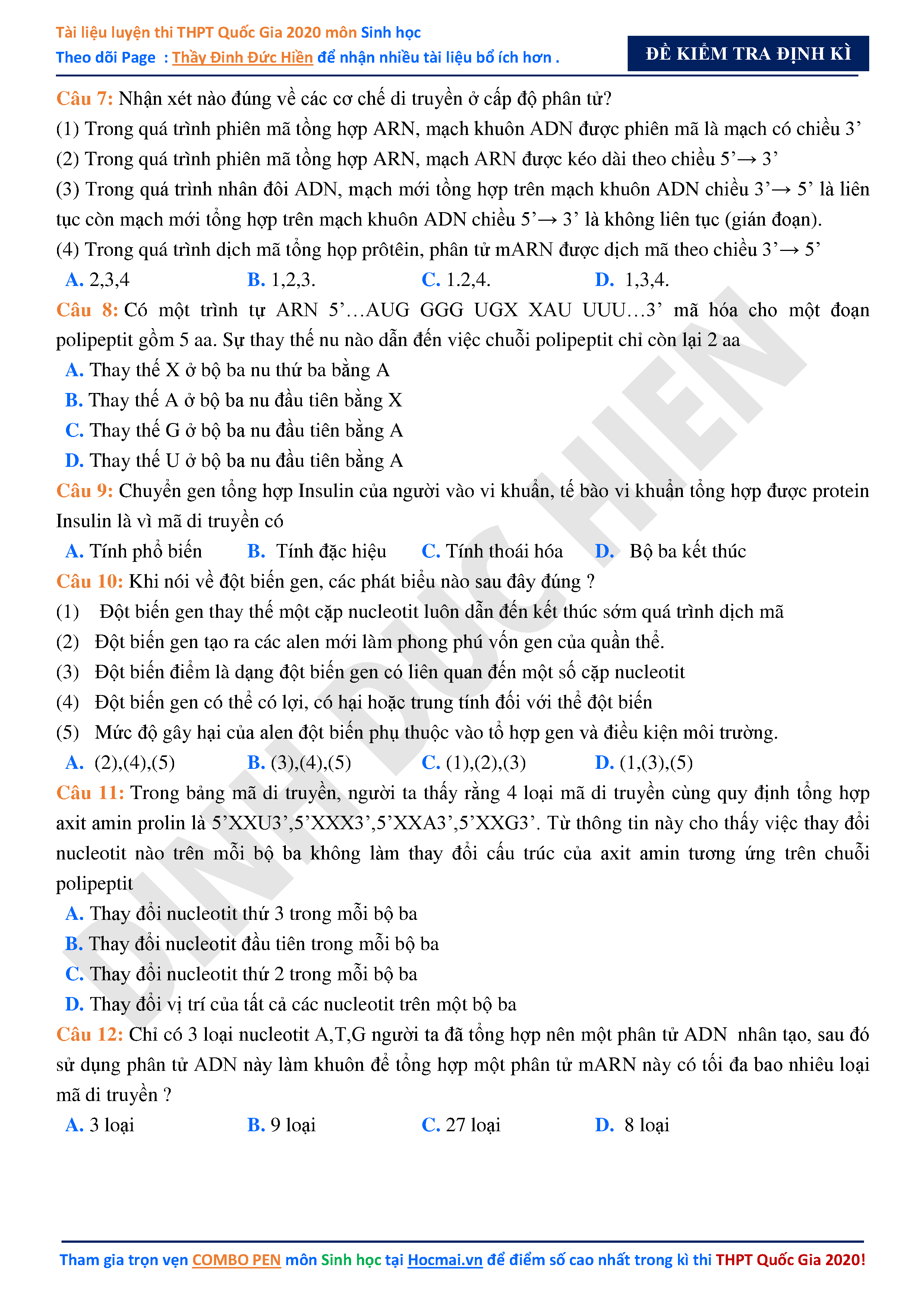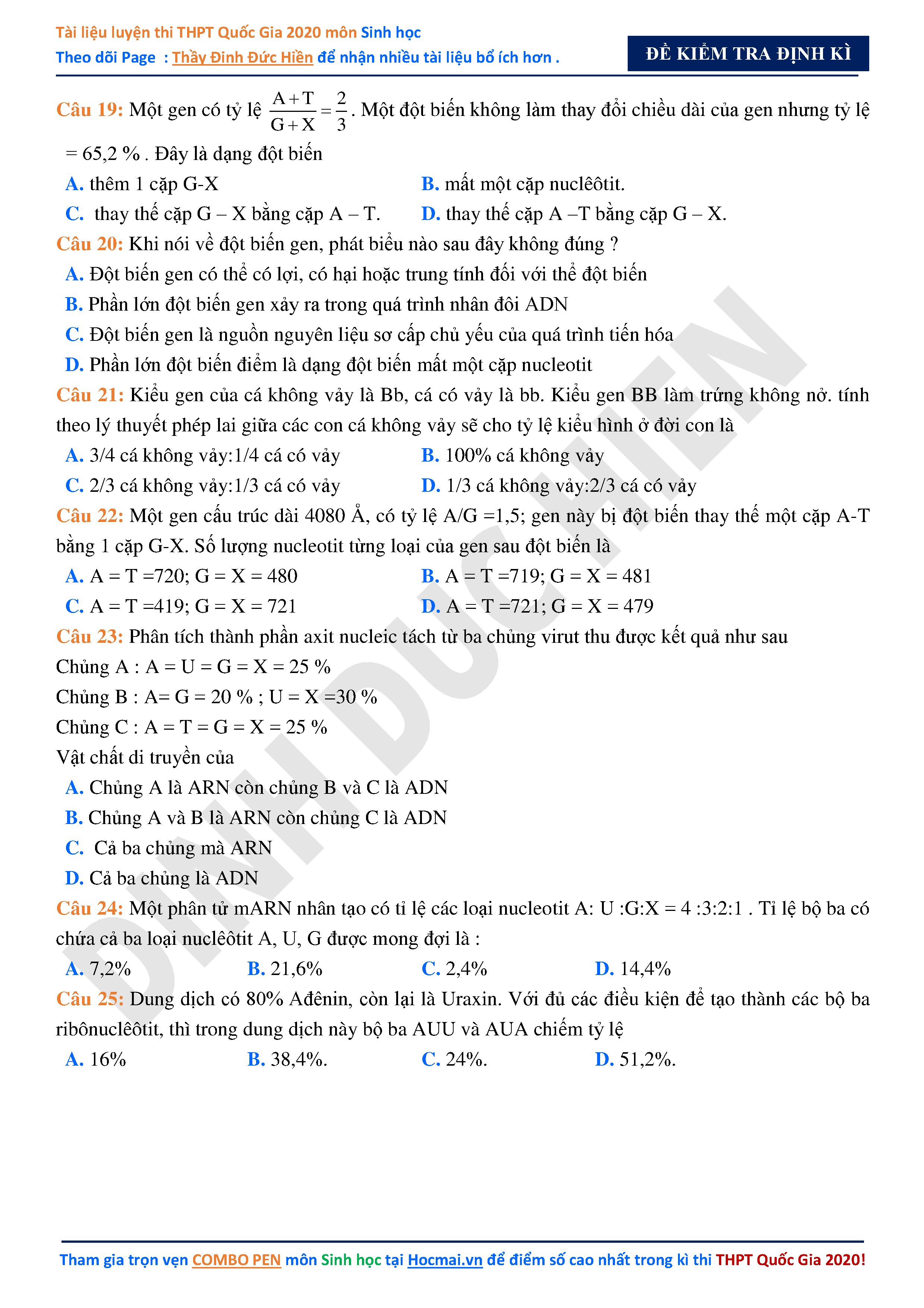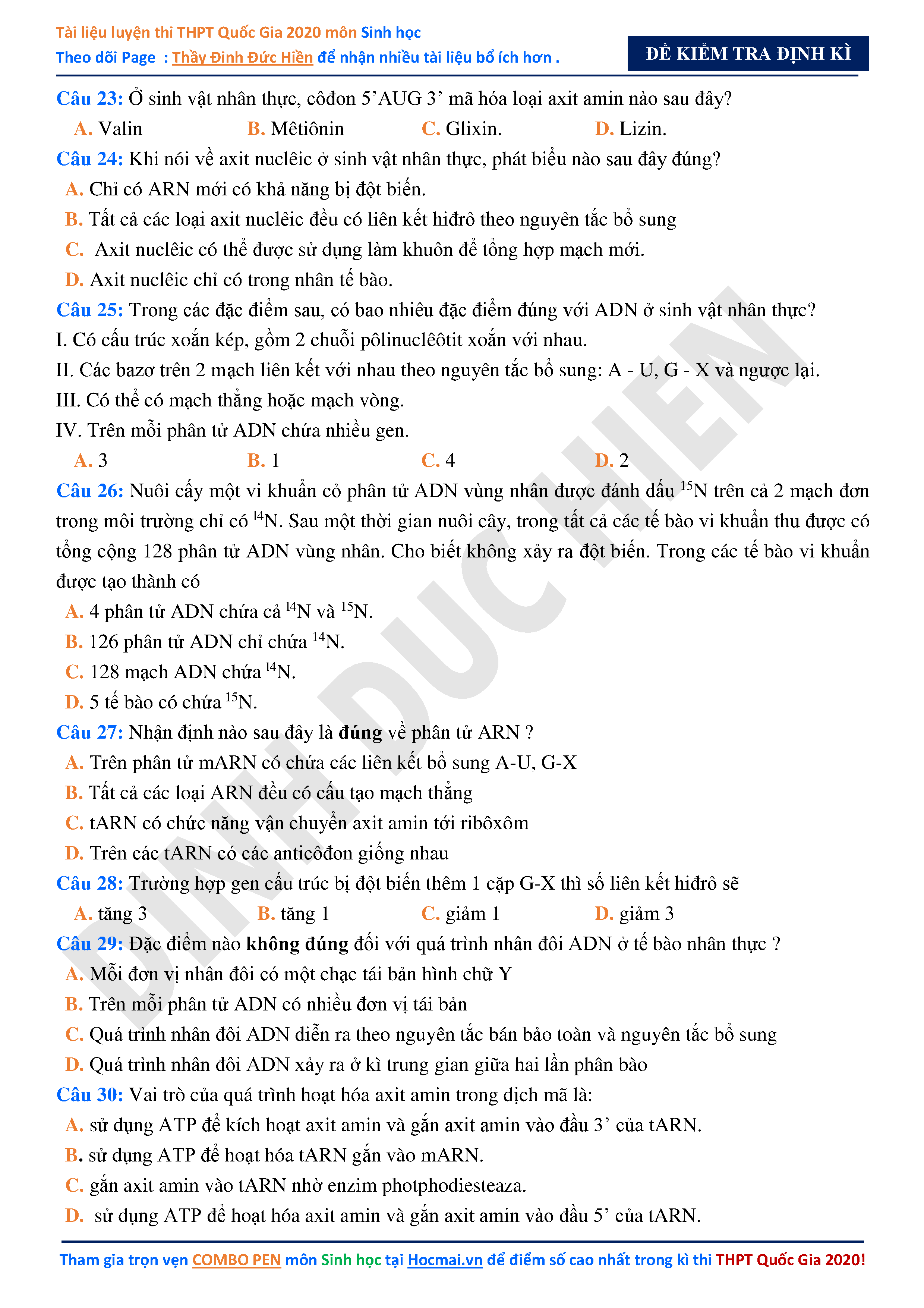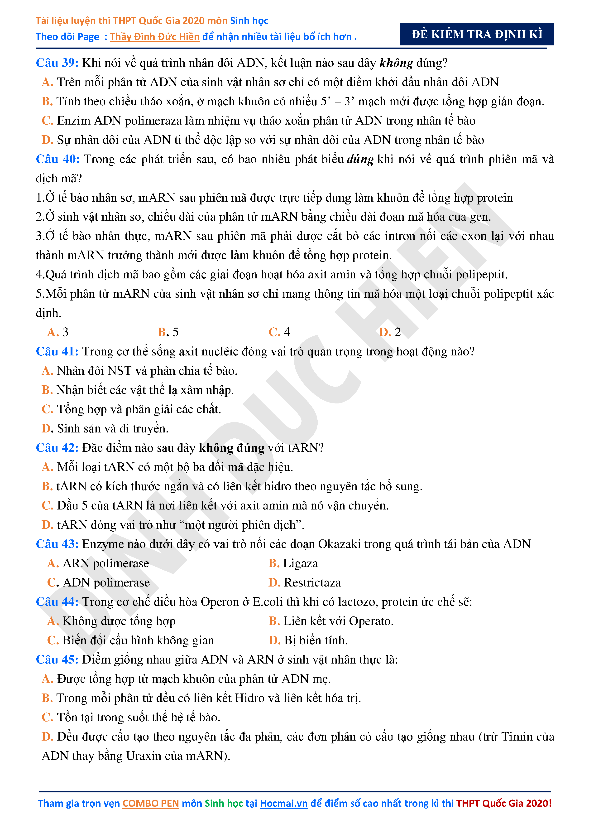 Đề kiểm tra: Vật chất và cơ chế di truyền cấp độ phân tử