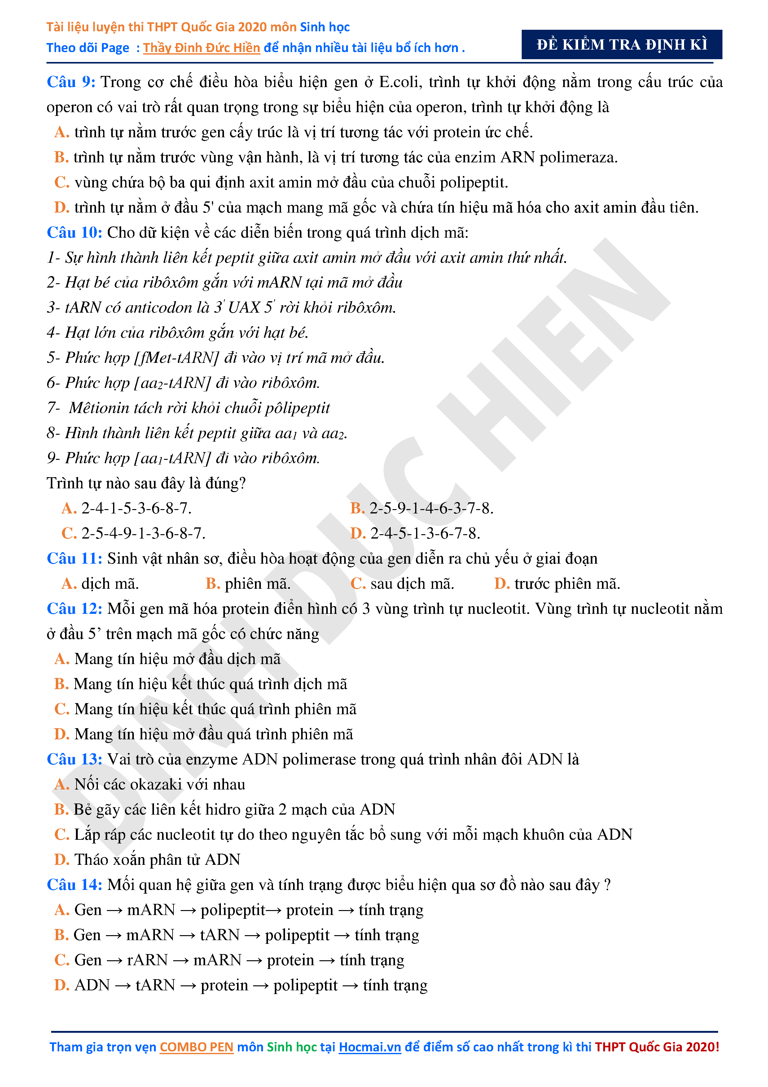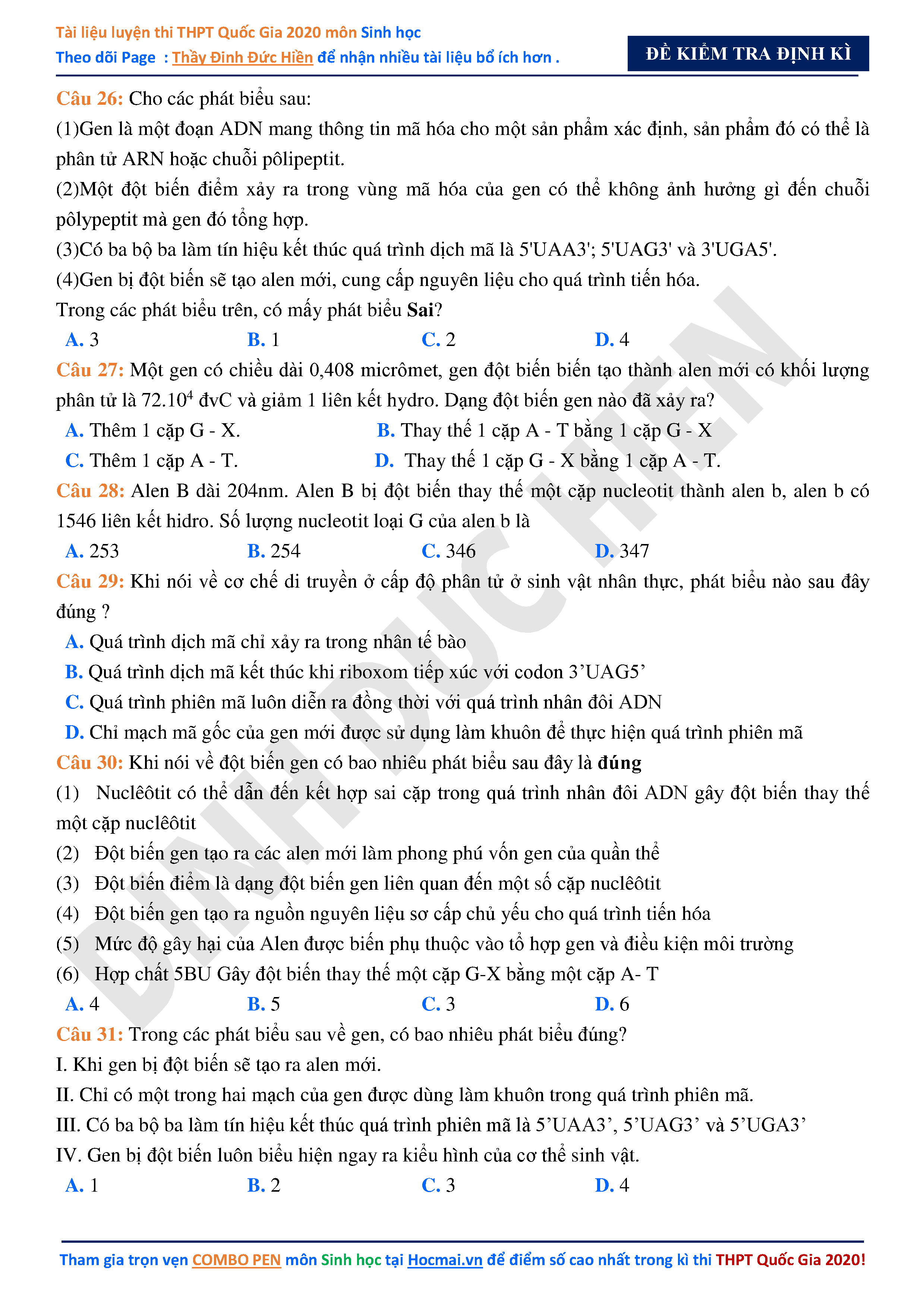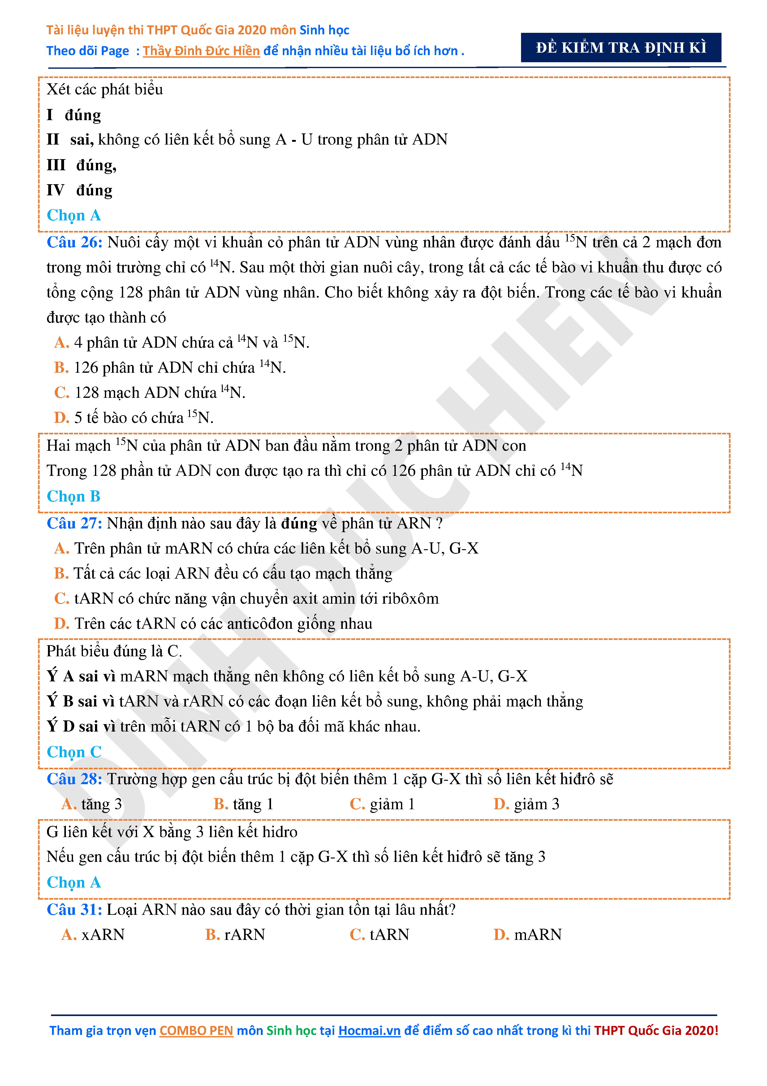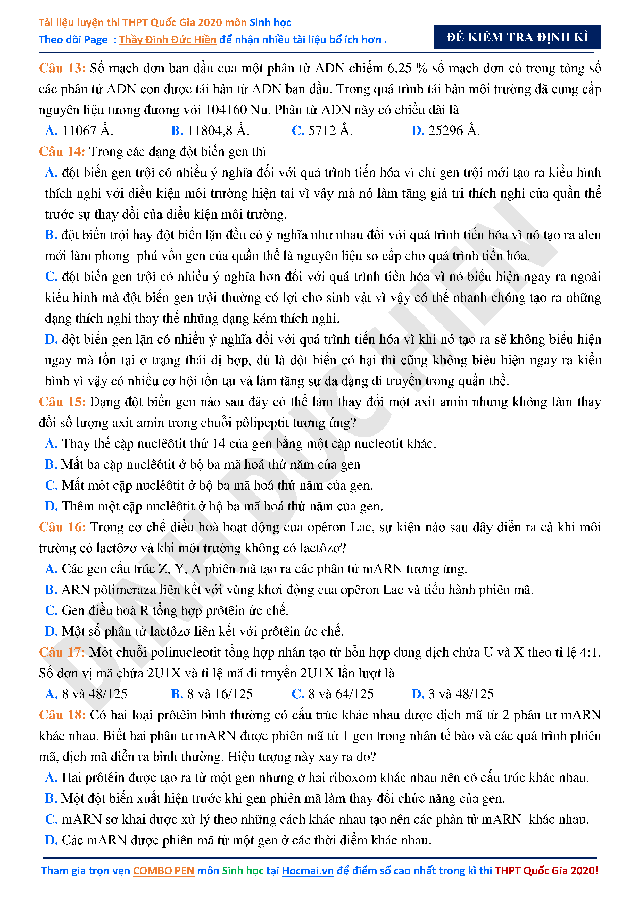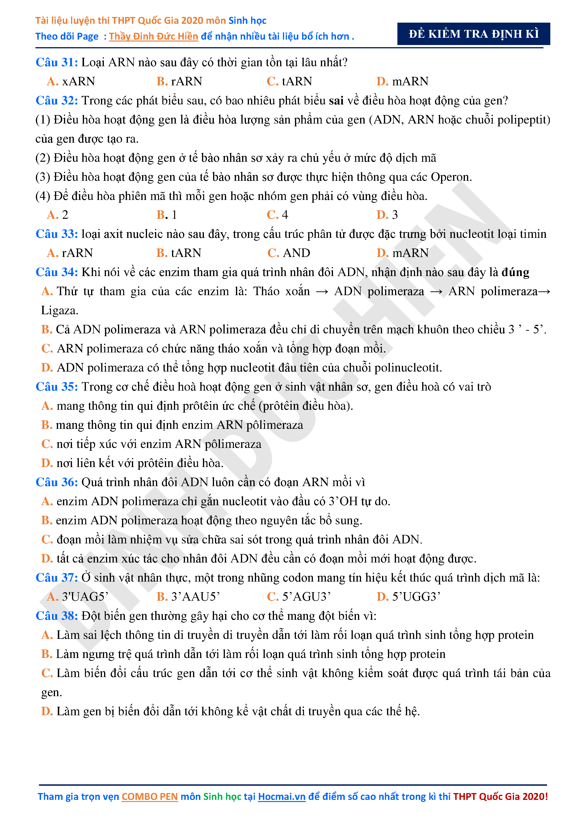 Đề kiểm tra: Vật chất và cơ chế di truyền cấp độ phân tử
