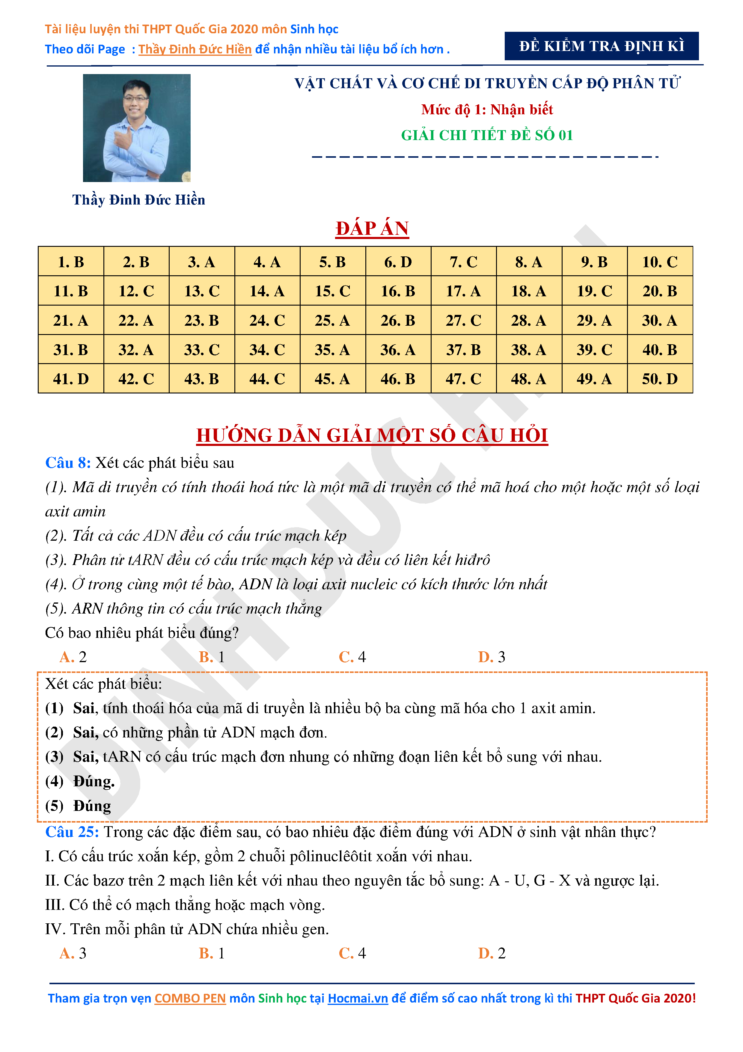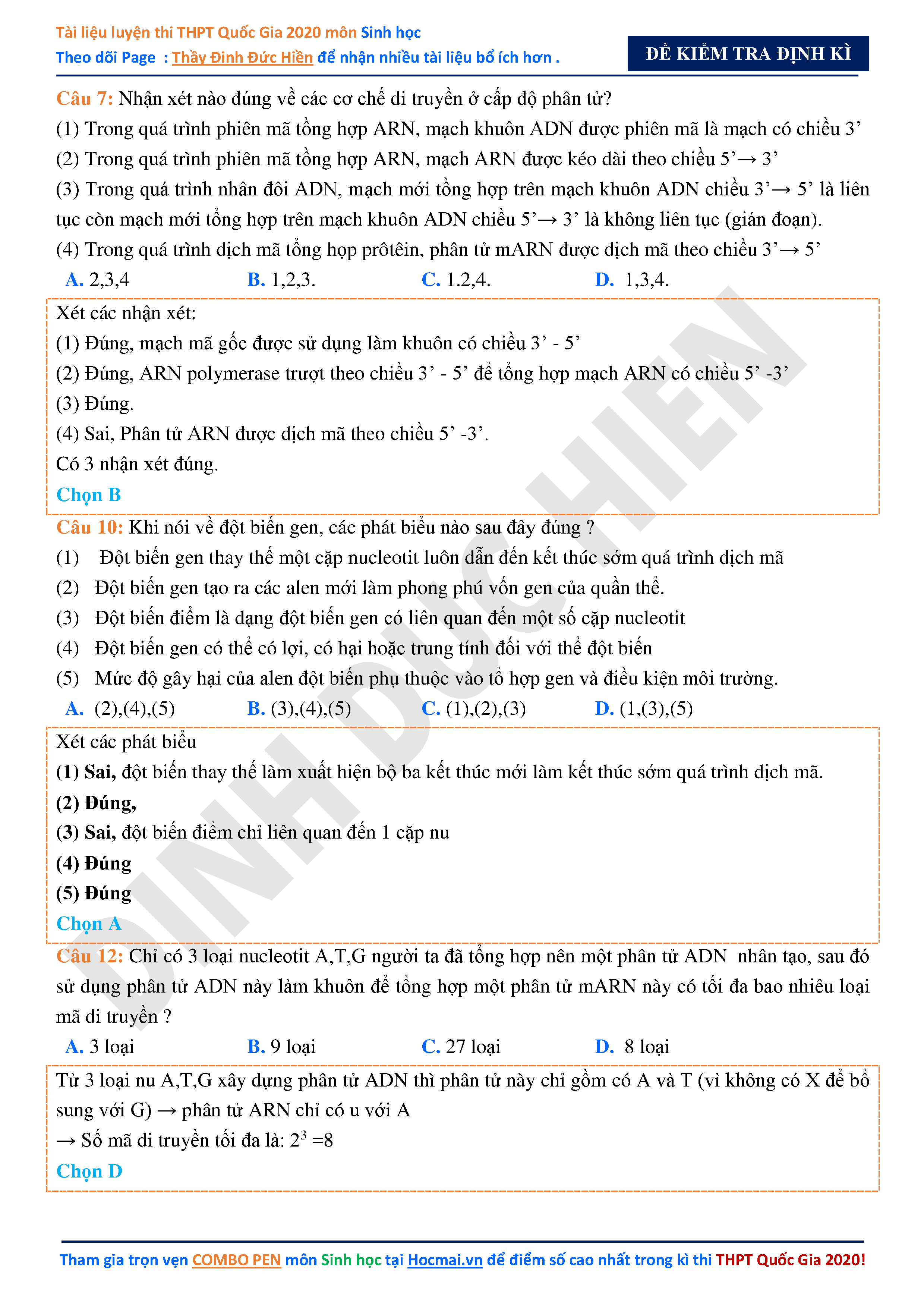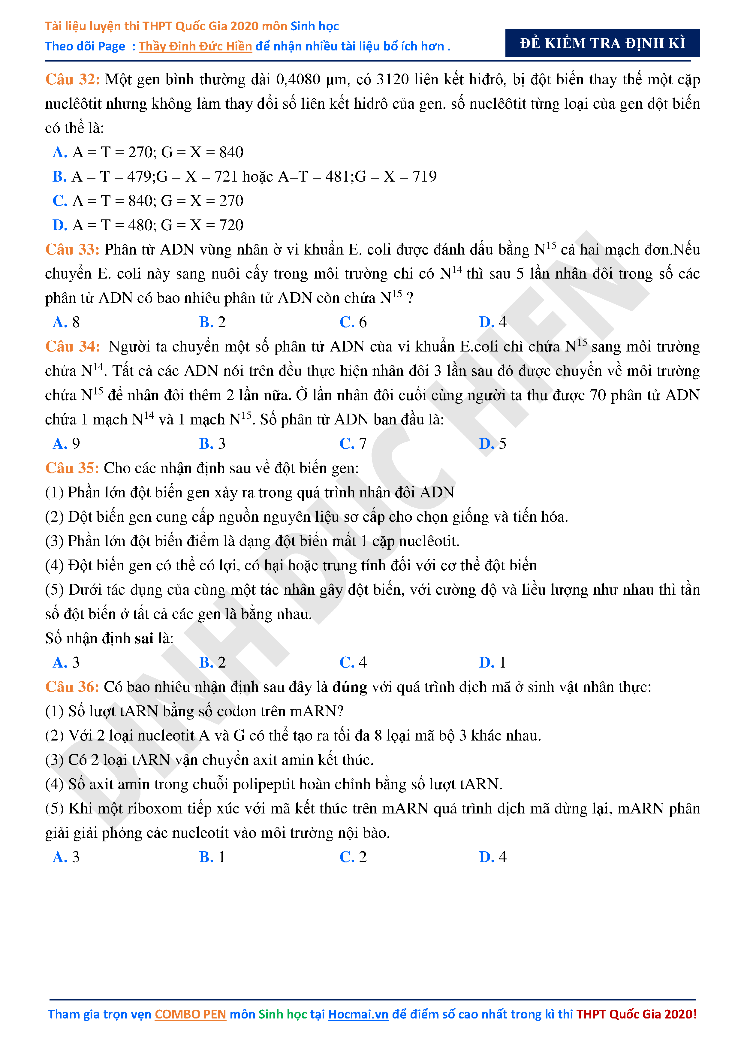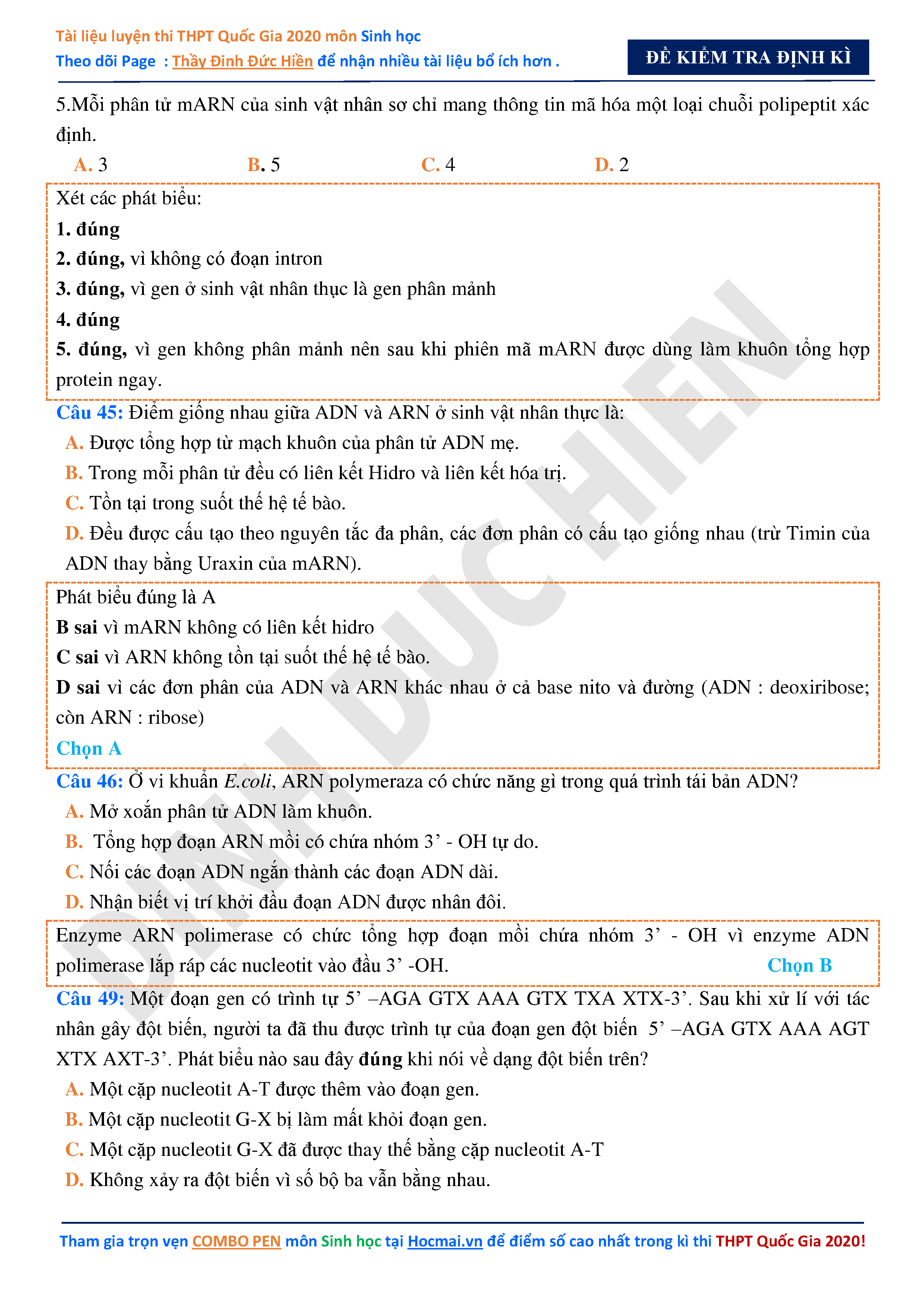 Đề kiểm tra: Vật chất và cơ chế di truyền cấp độ phân tử