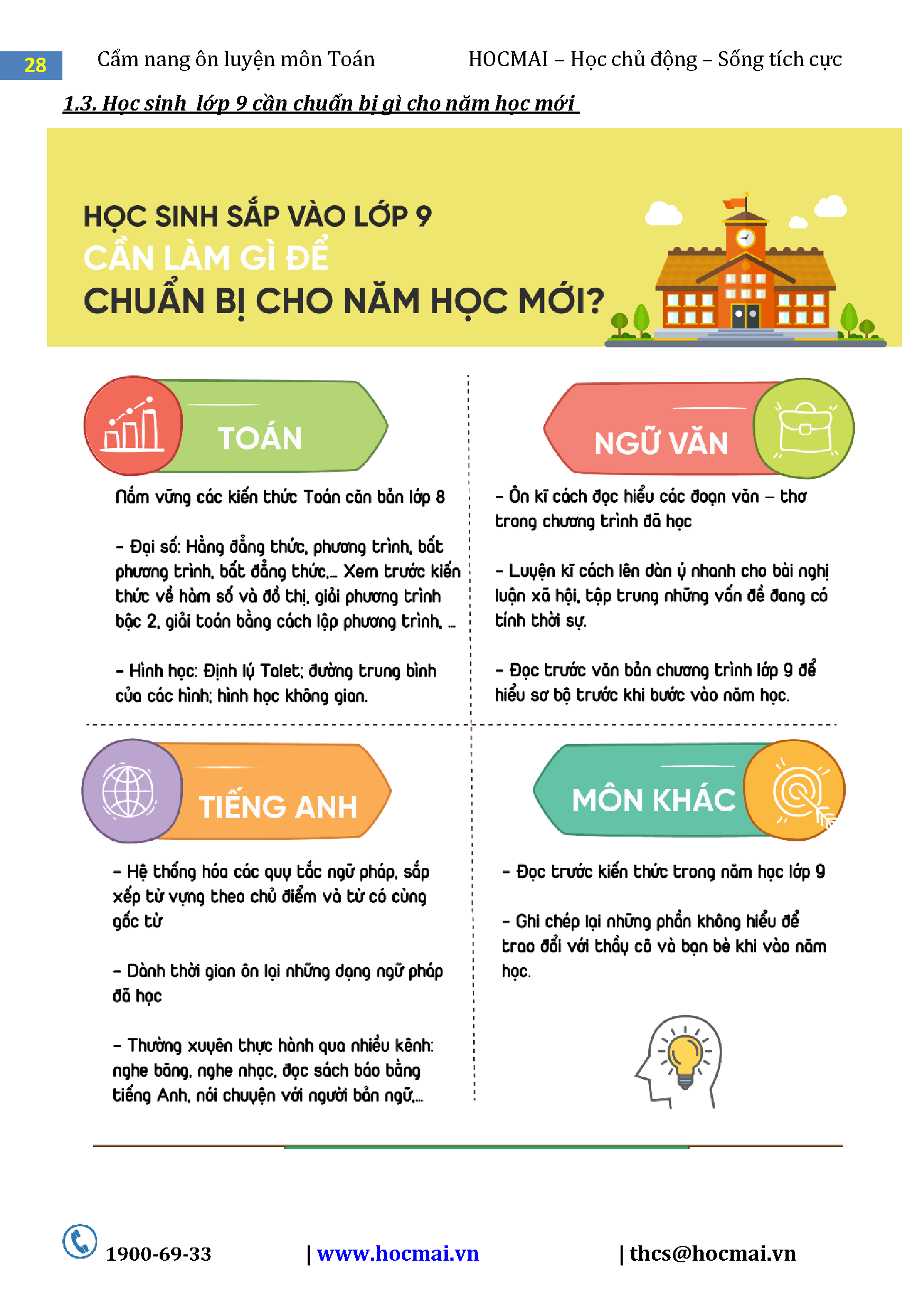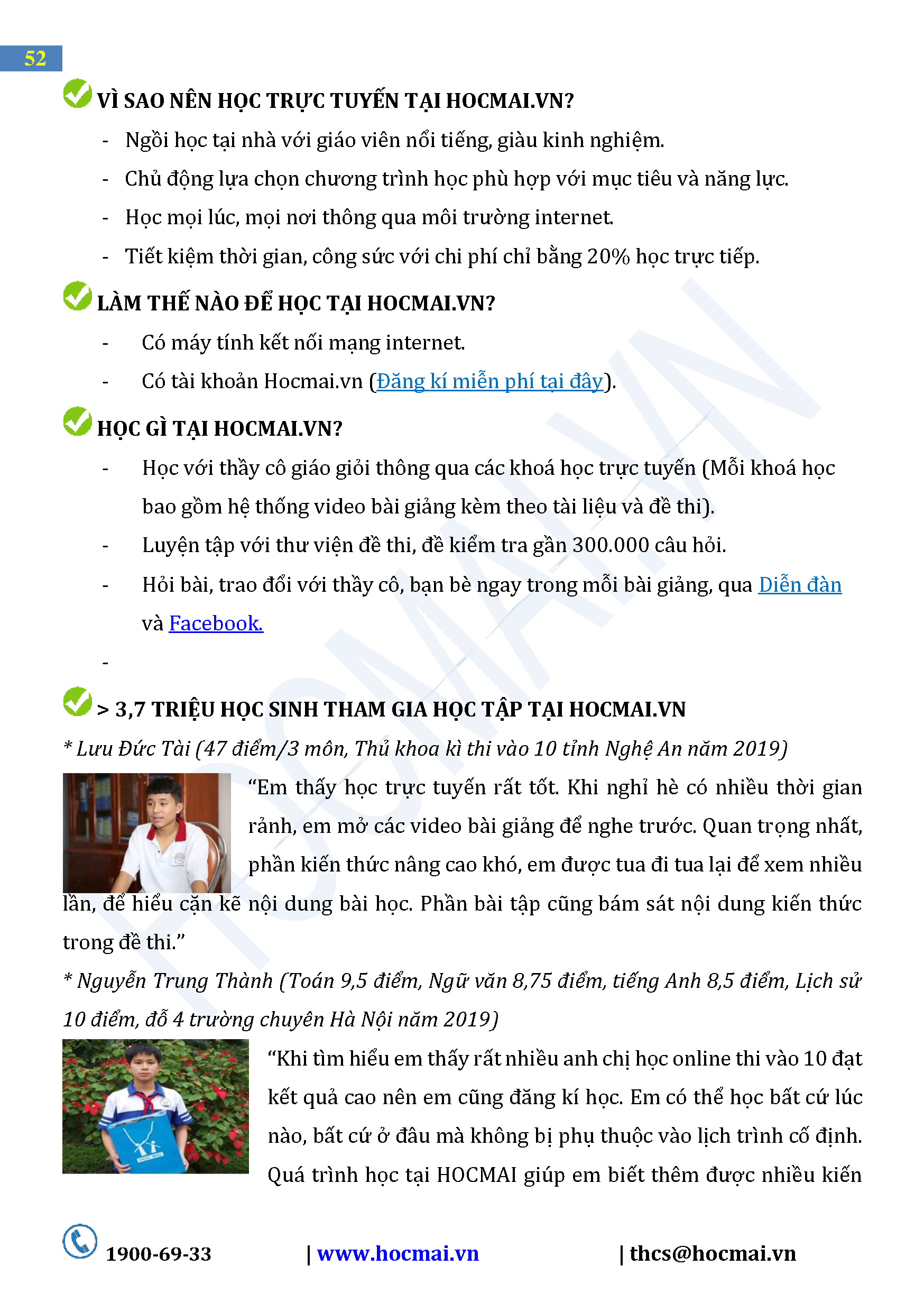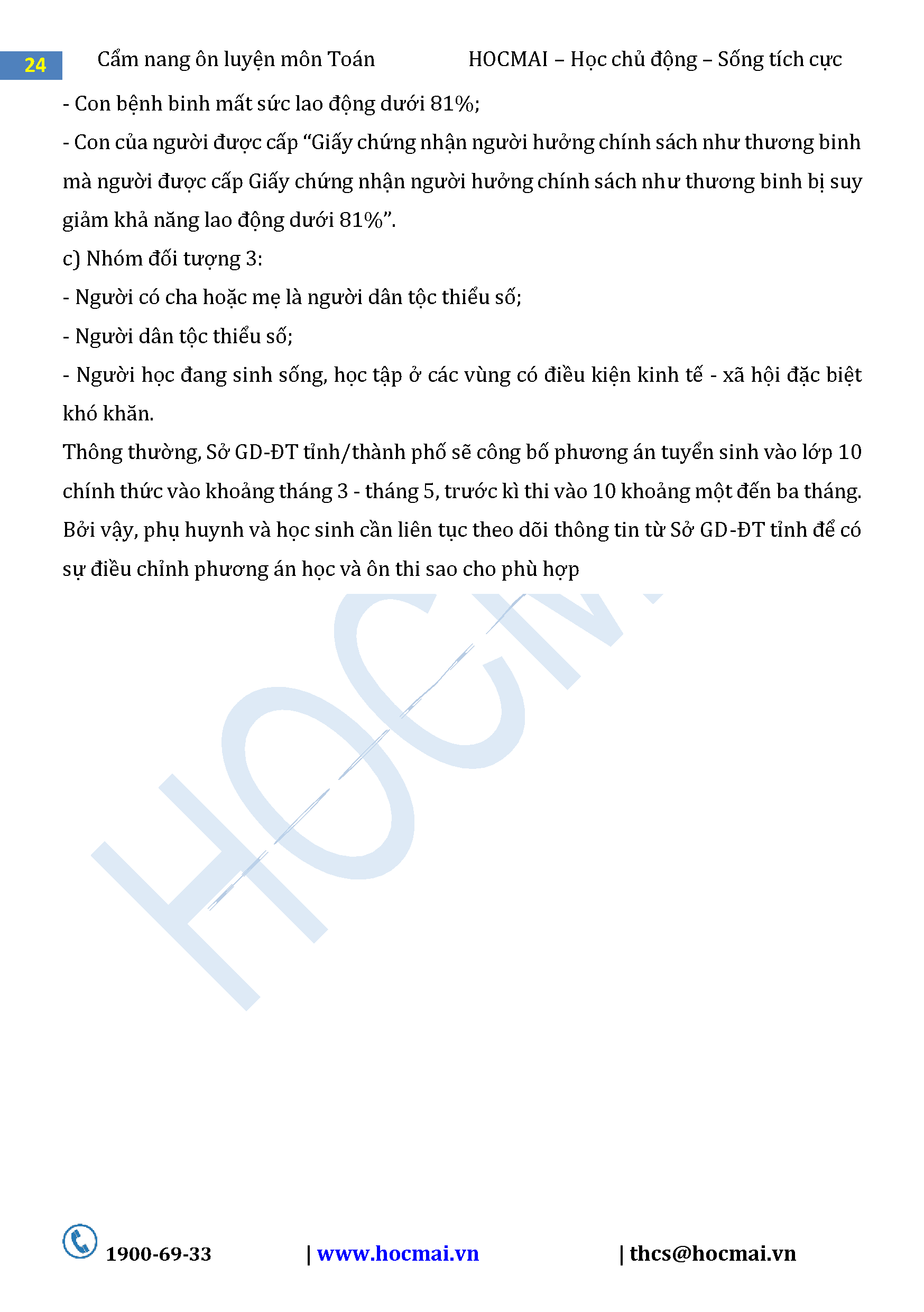 Với mục đích giúp phụ huynh và học sinh lớp 9 có cái nhìn toàn diện về cấu trúc, nội dung thi vào 10, đồng thời định hướng cho mình một lộ trình học và ôn tập hiệu quả, HOCMAI trân trọng gửi tới bộ “Cẩm nang ôn thi vào lớp 10 năm 2020” với bộ 3 môn học: T