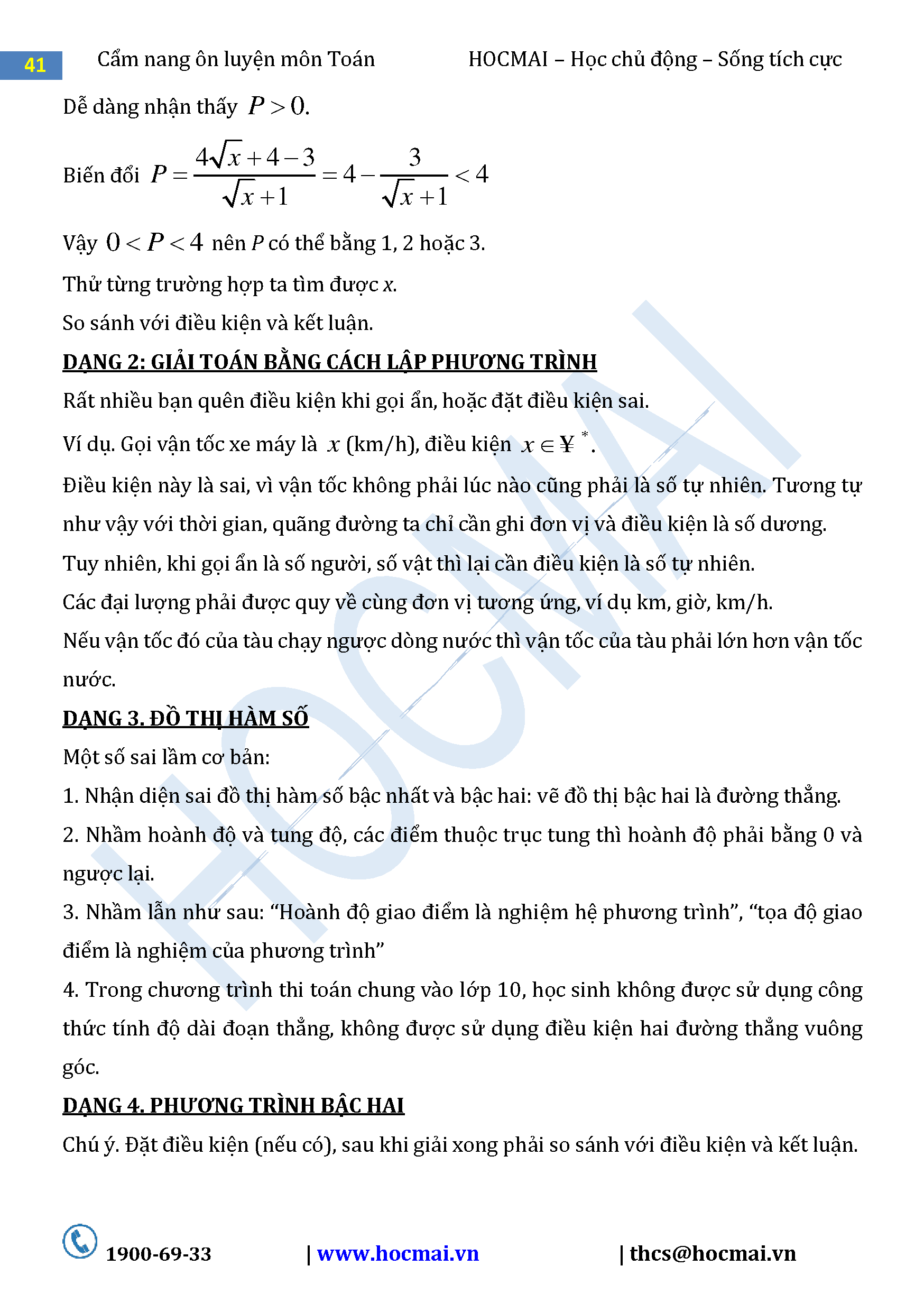 CẨM NANG ÔN THI VÀO 10 NĂM 2020 - MÔN TOÁN