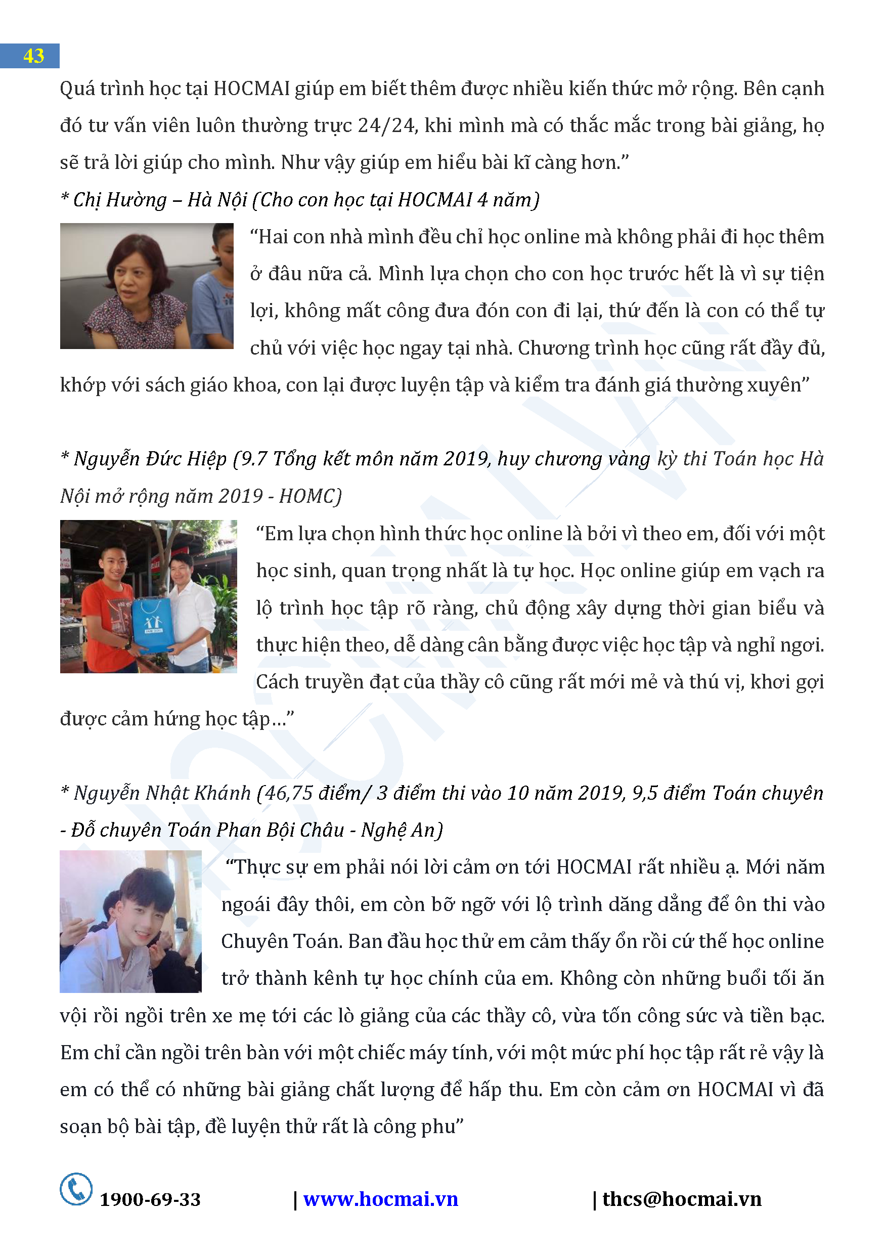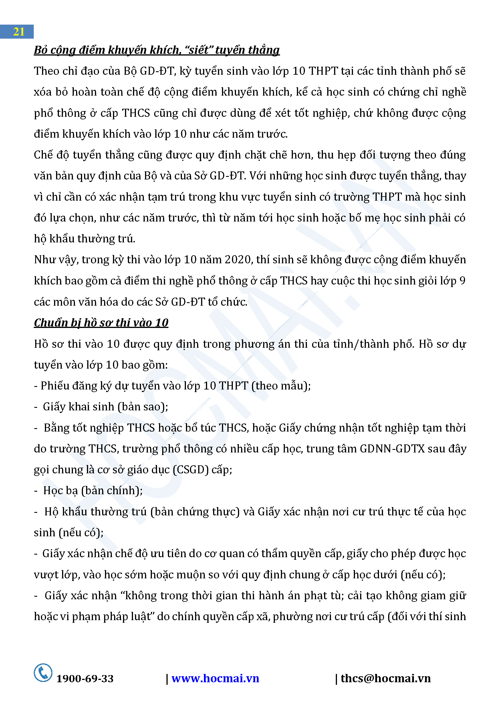 Với mục đích giúp phụ huynh và học sinh lớp 9 có cái nhìn toàn diện về cấu trúc, nội dung thi vào 10, đồng thời định hướng cho mình một lộ trình học và ôn tập hiệu quả, HOCMAI trân trọng gửi tới bộ “Cẩm nang ôn thi vào lớp 10 năm 2020” với bộ 3 môn học: T