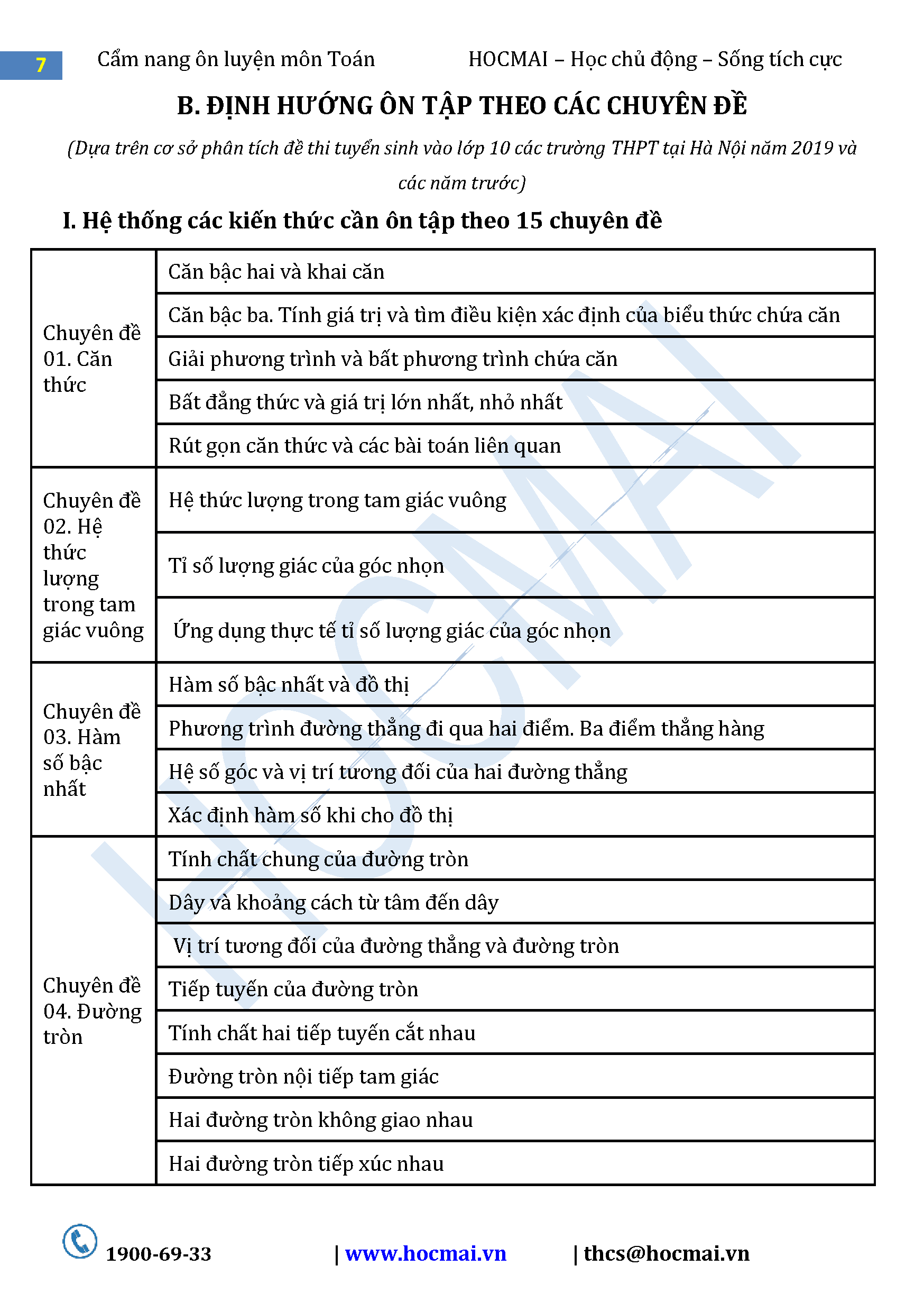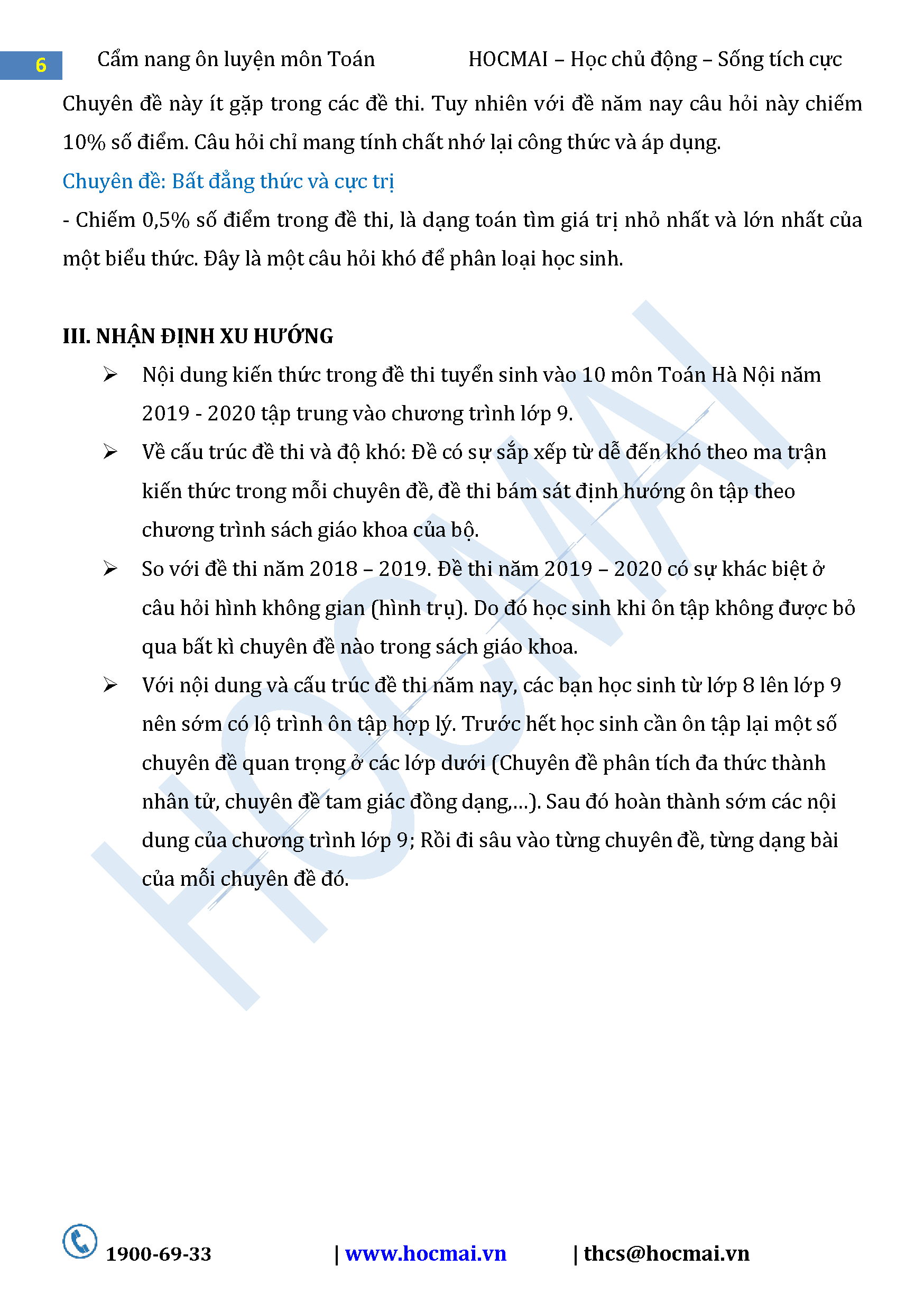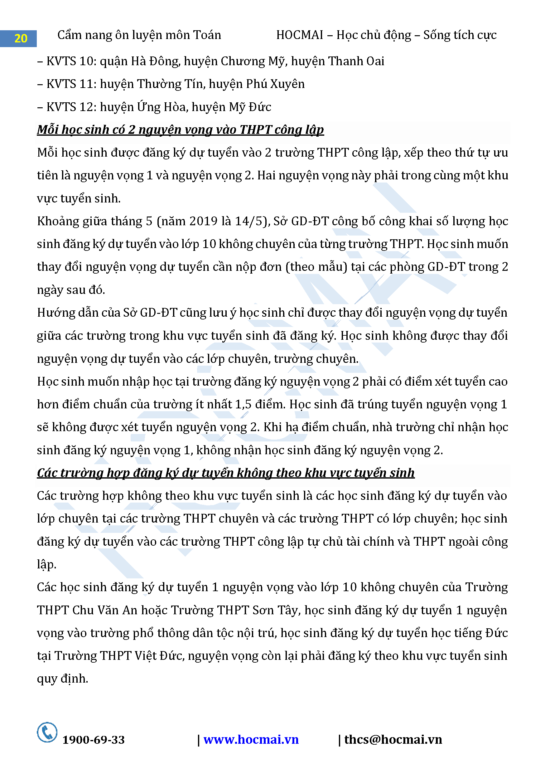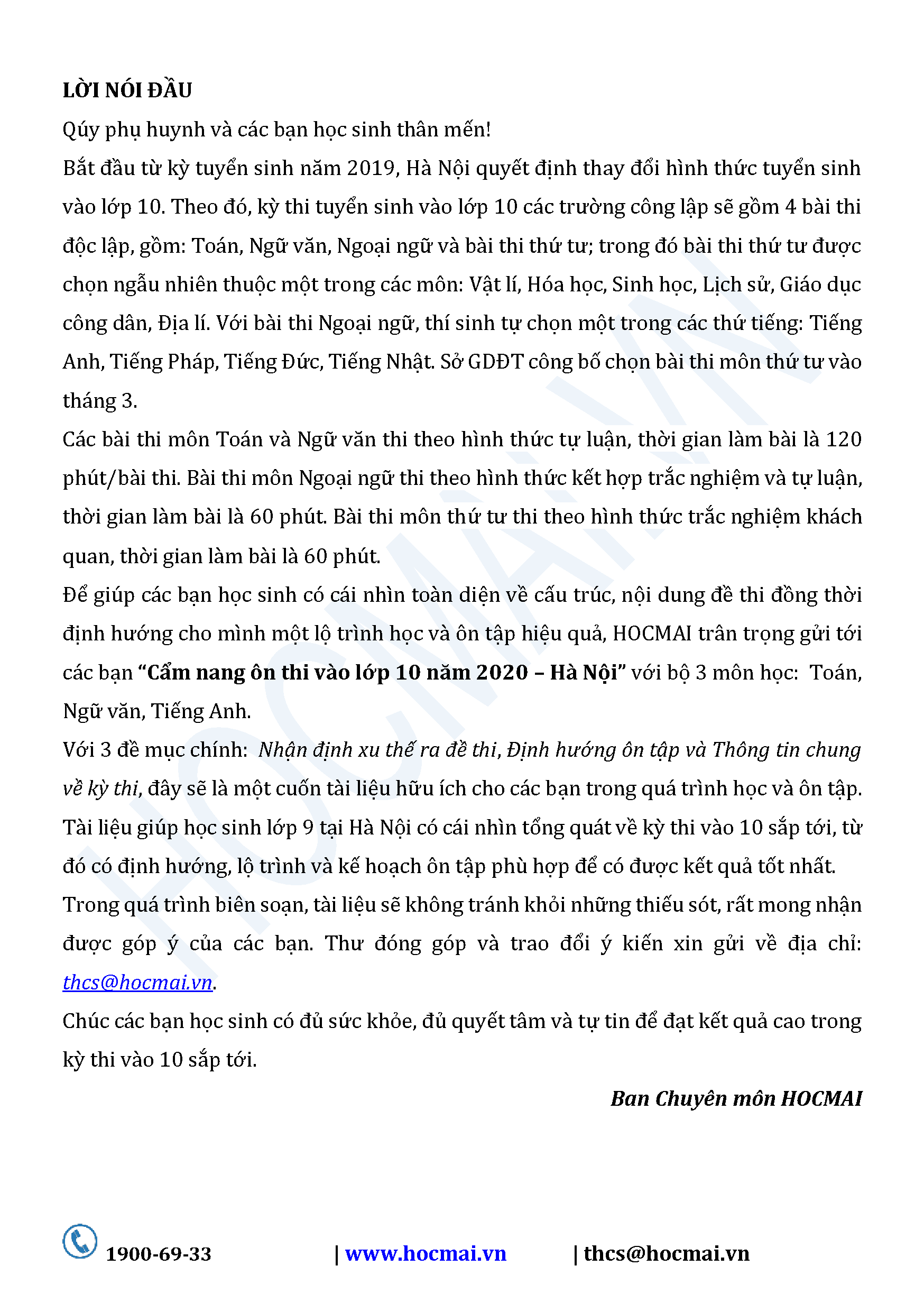 CẨM NANG ÔN THI VÀO 10 NĂM 2020 HÀ NỘI - MÔN TOÁN