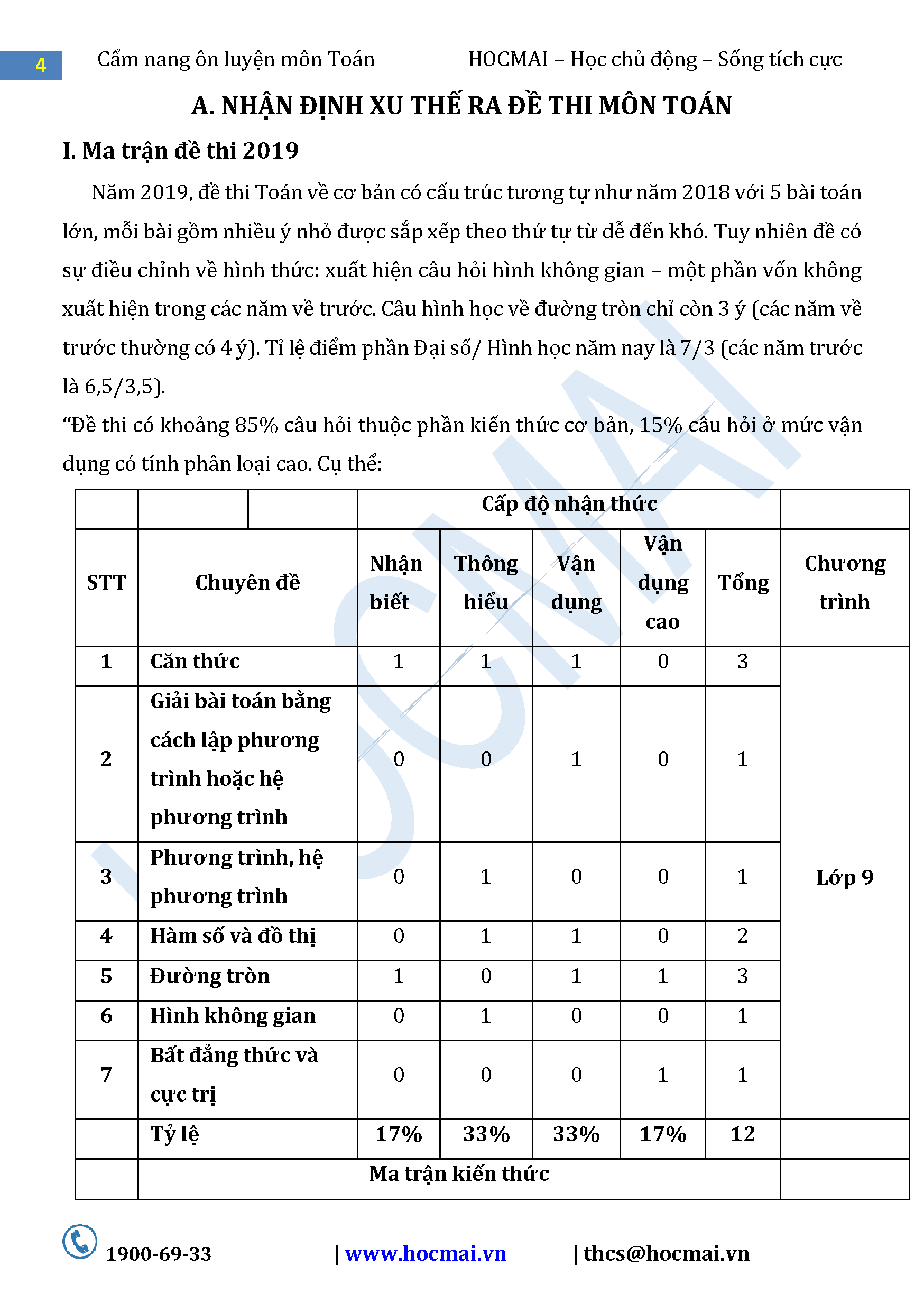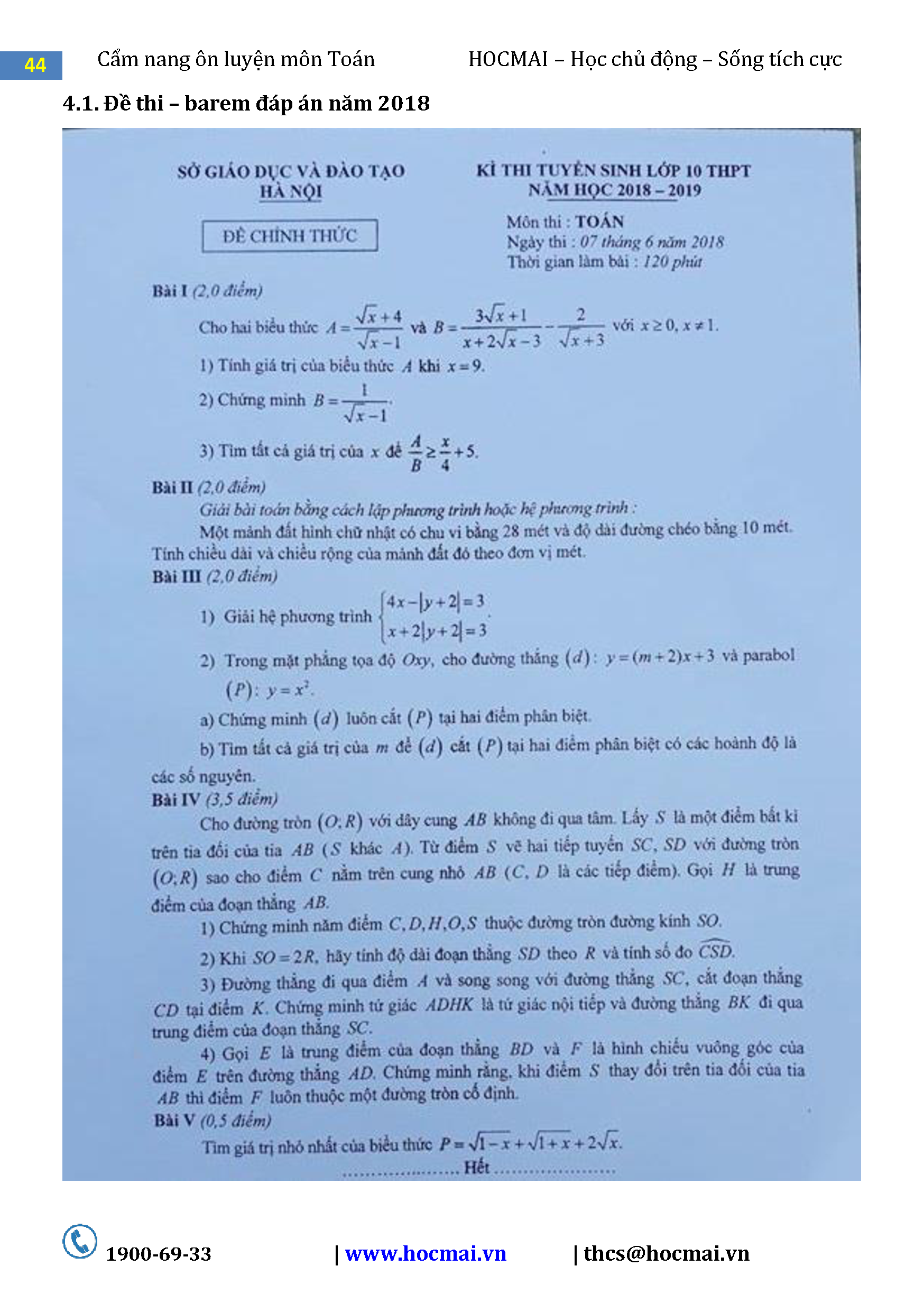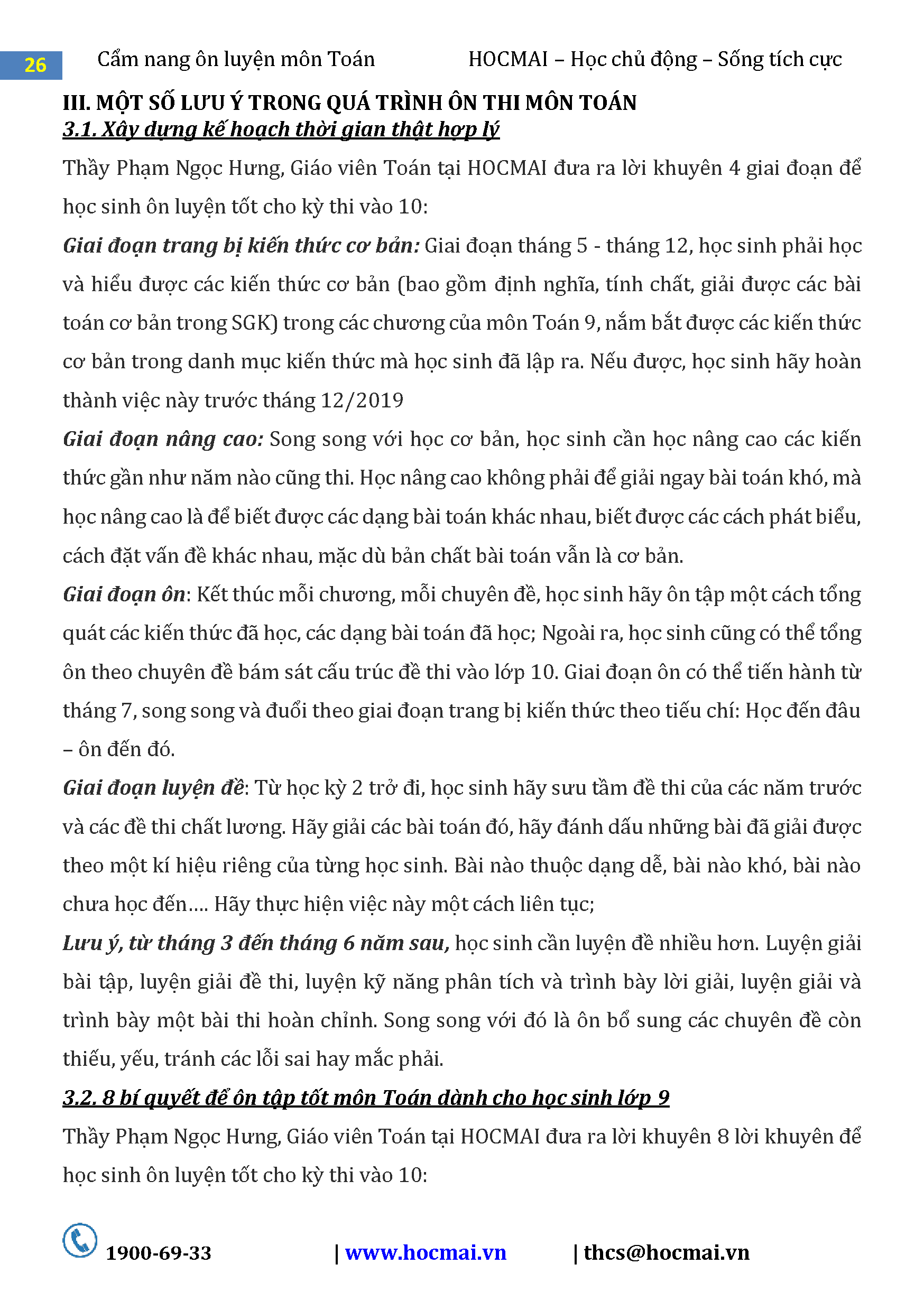 CẨM NANG ÔN THI VÀO 10 NĂM 2020 HÀ NỘI - MÔN TOÁN