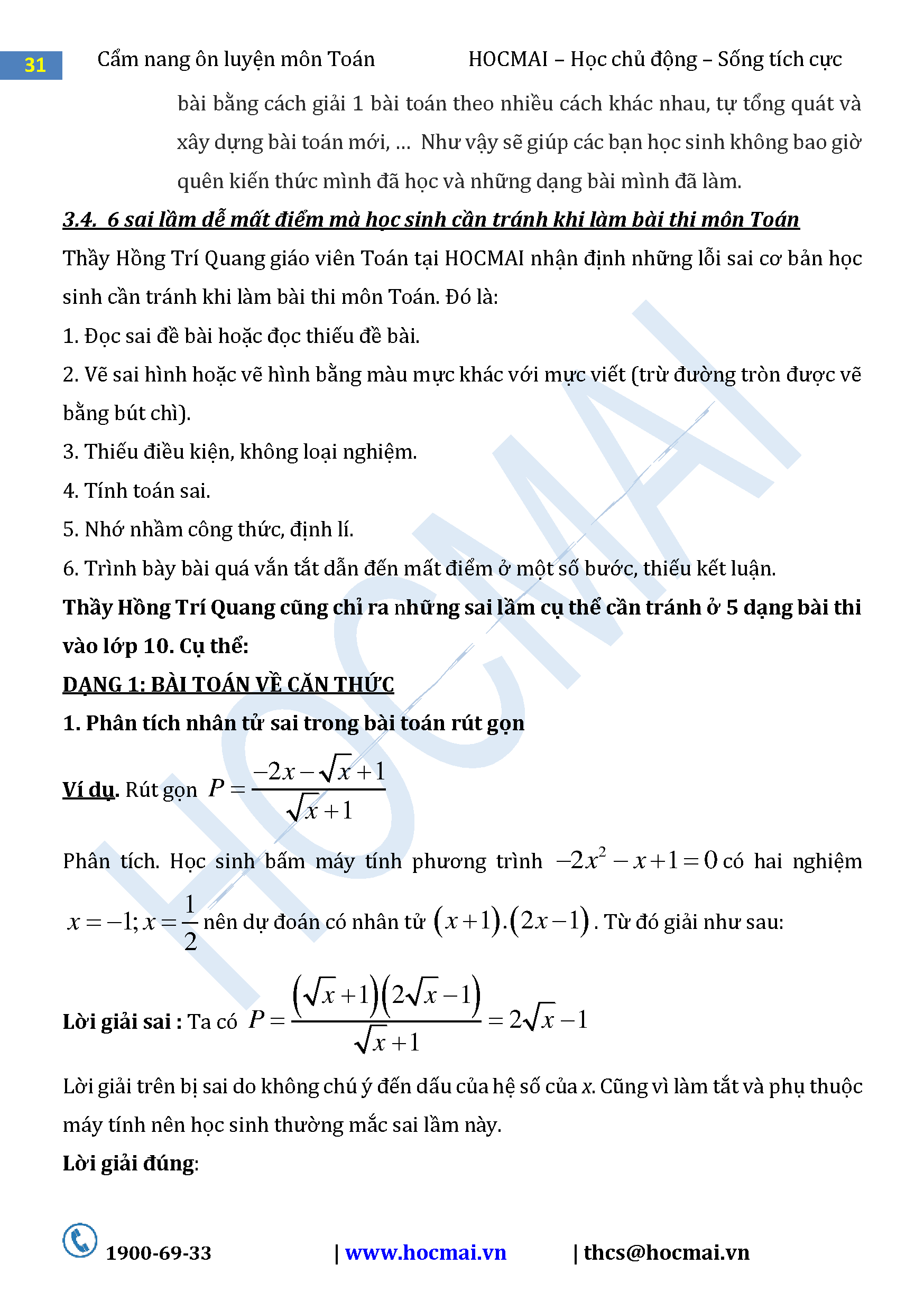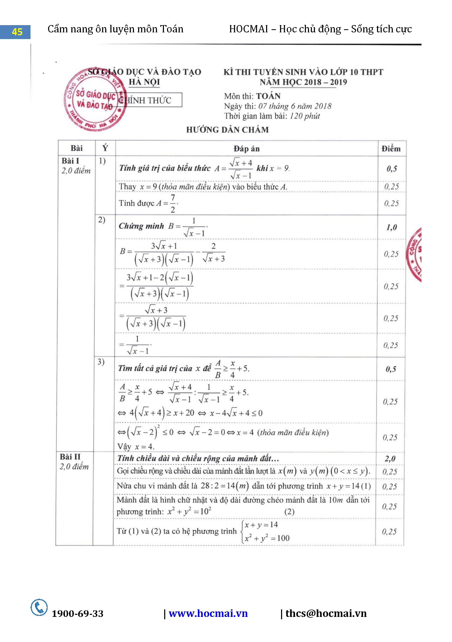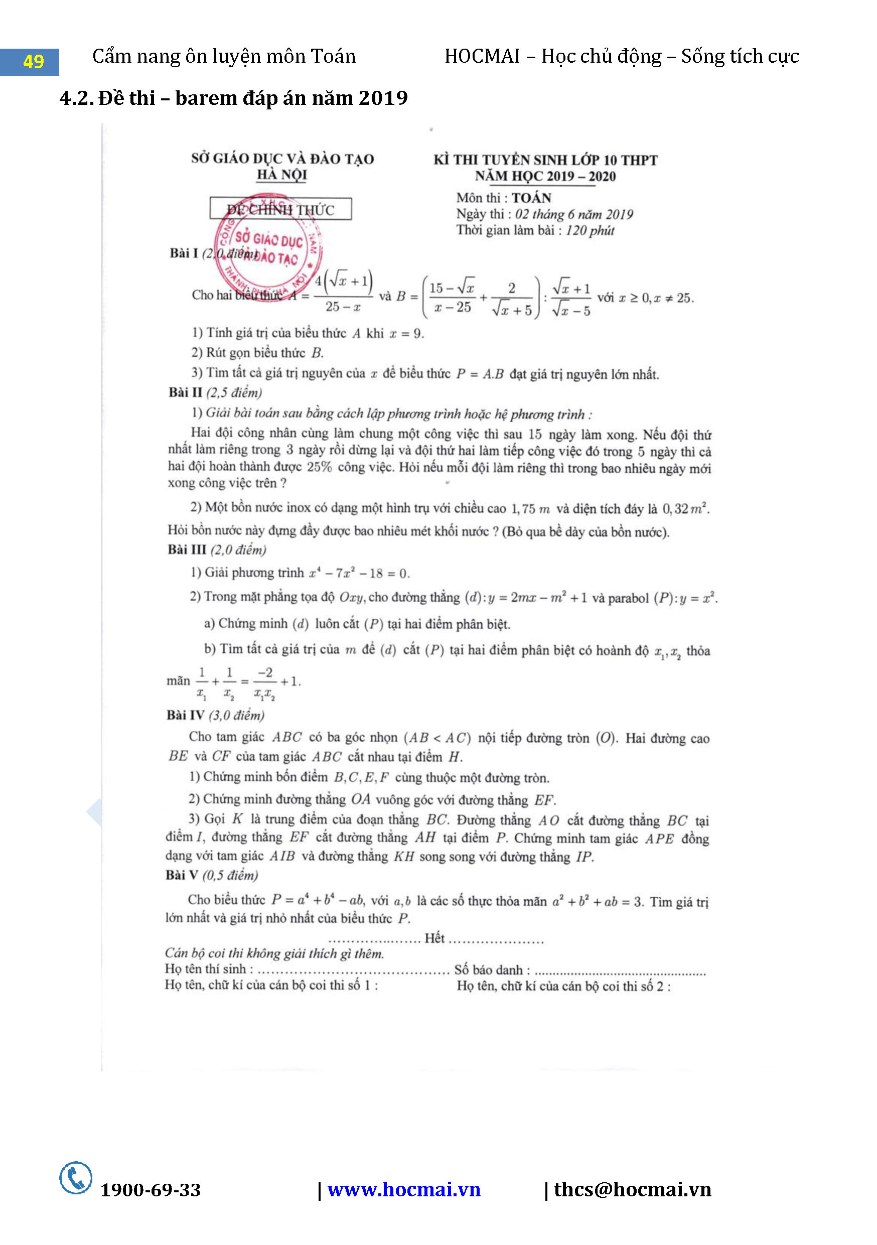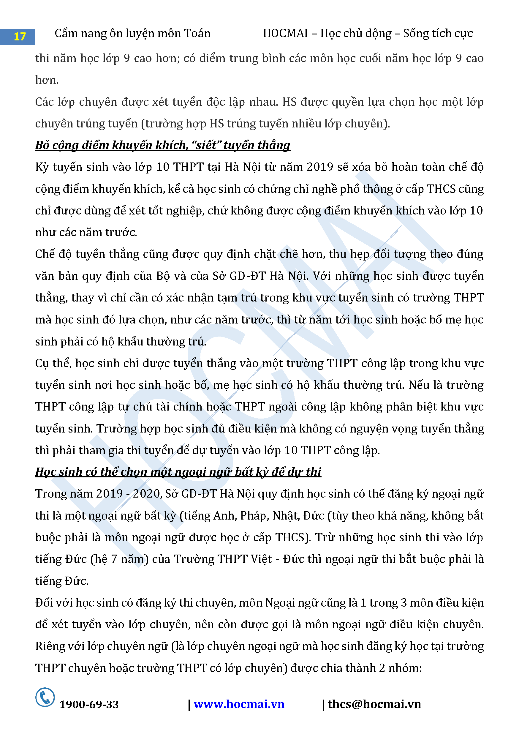 CẨM NANG ÔN THI VÀO 10 NĂM 2020 HÀ NỘI - MÔN TOÁN
