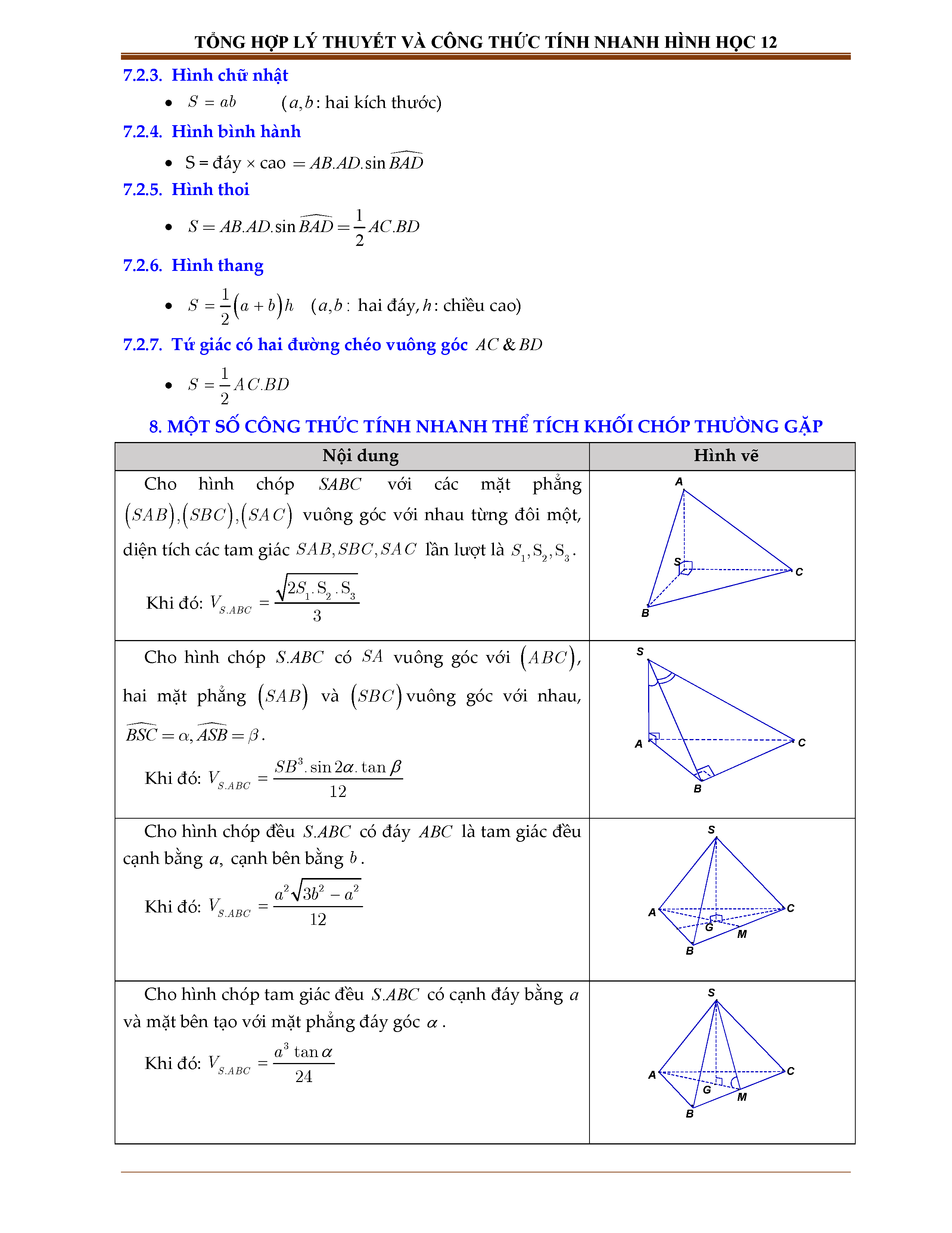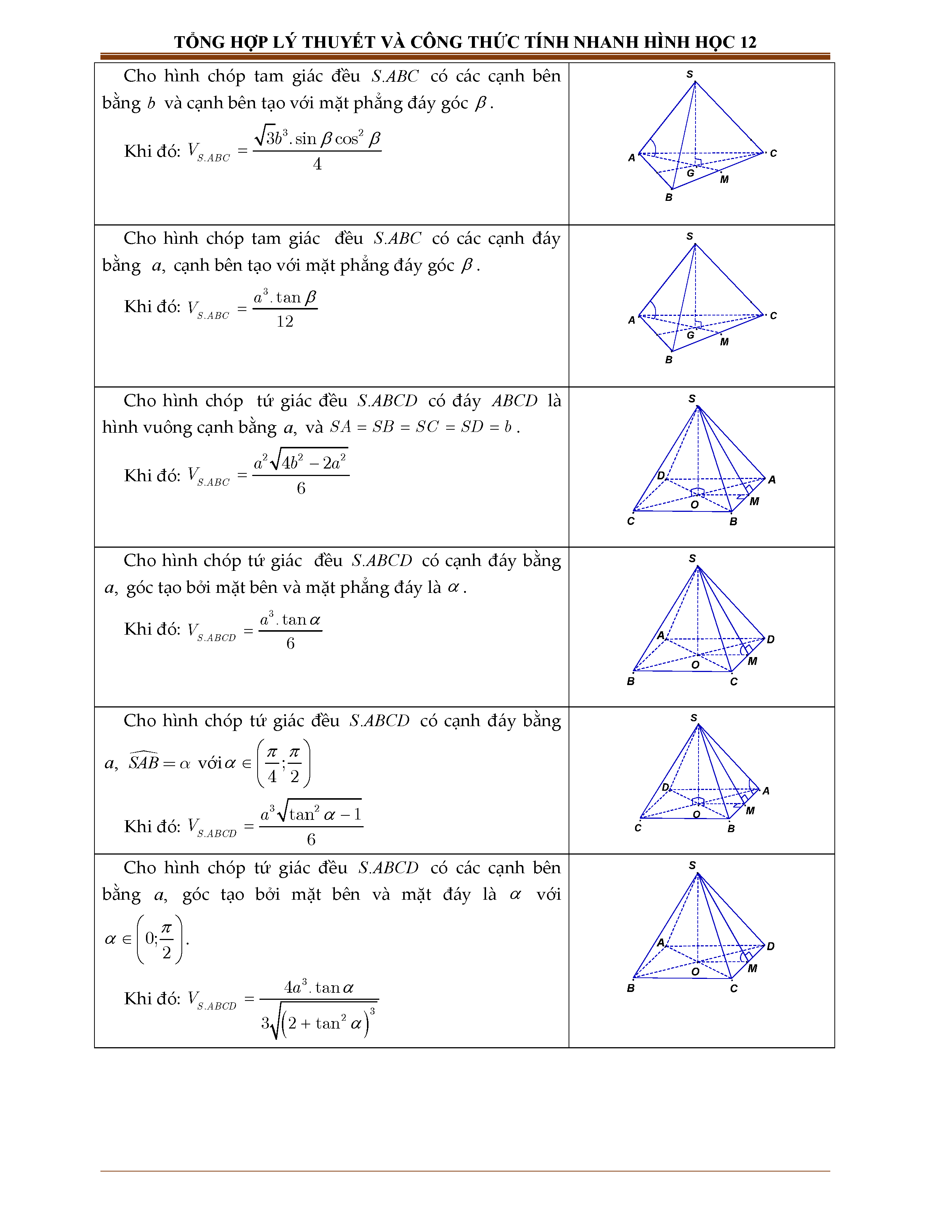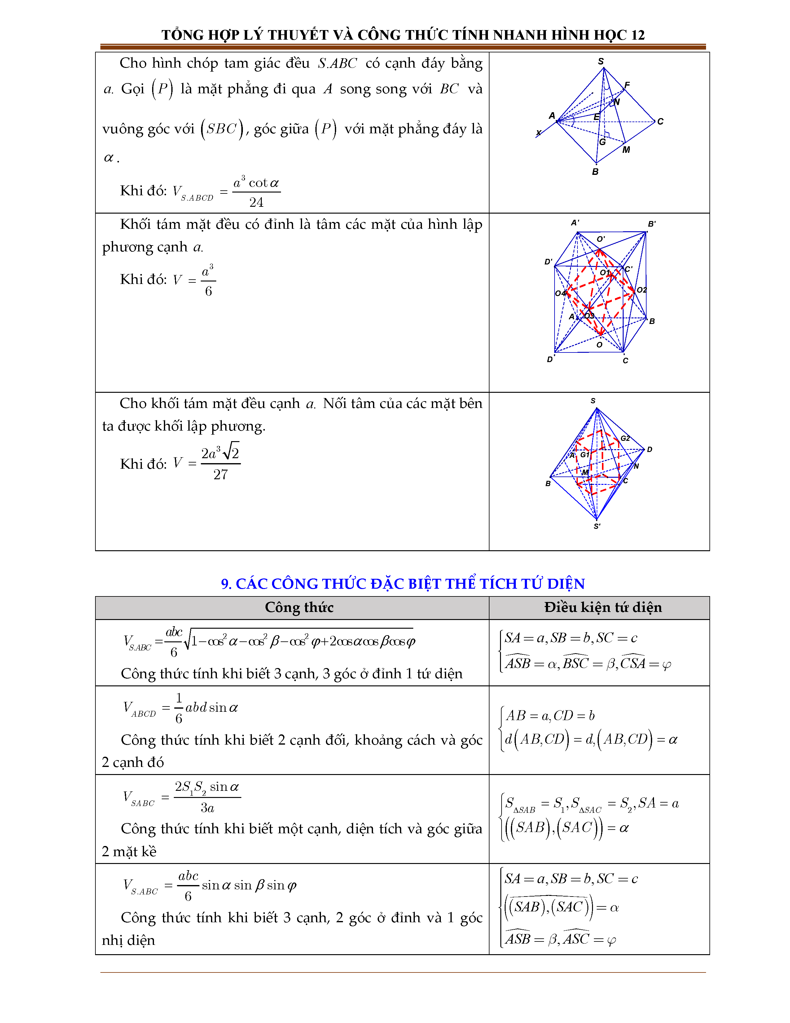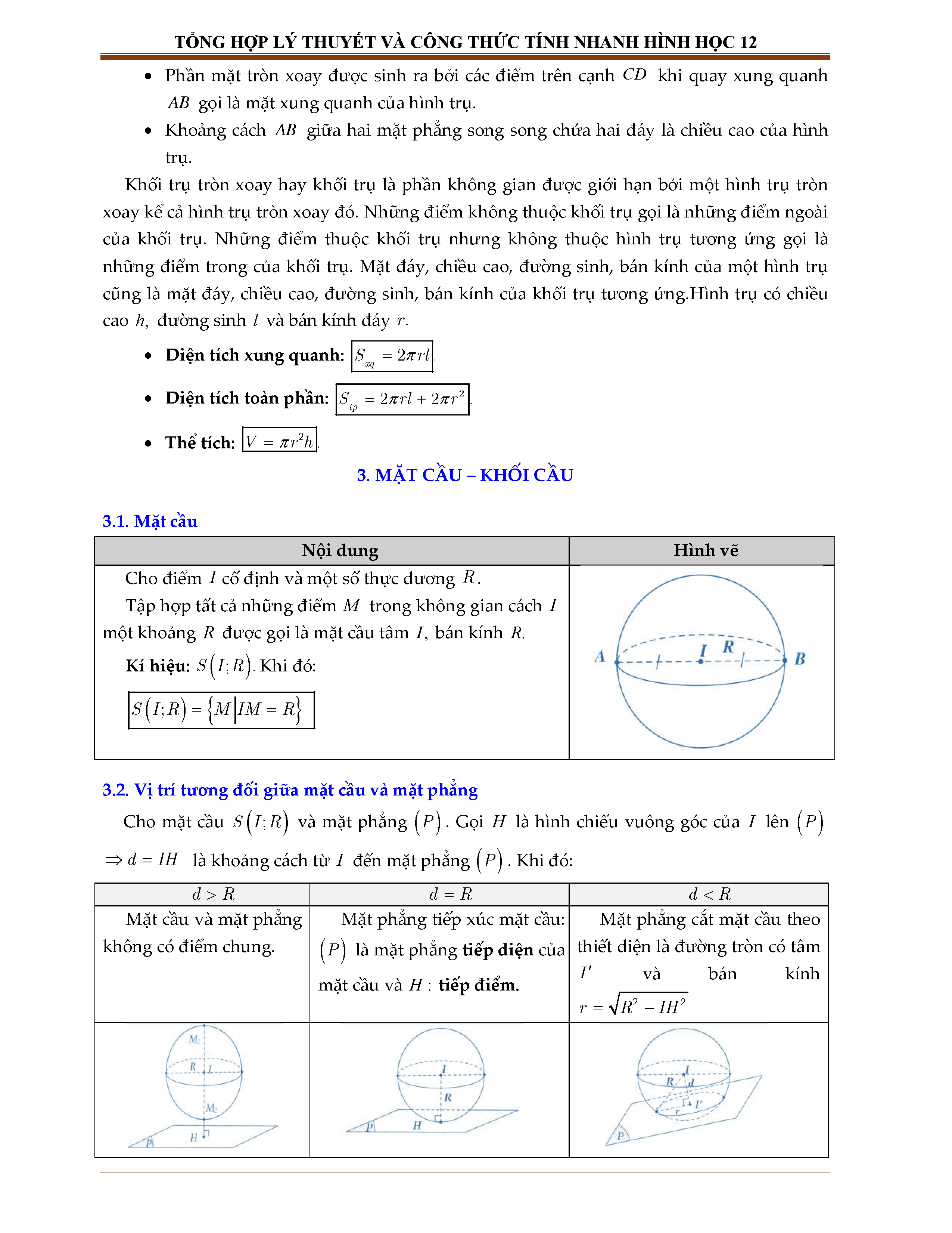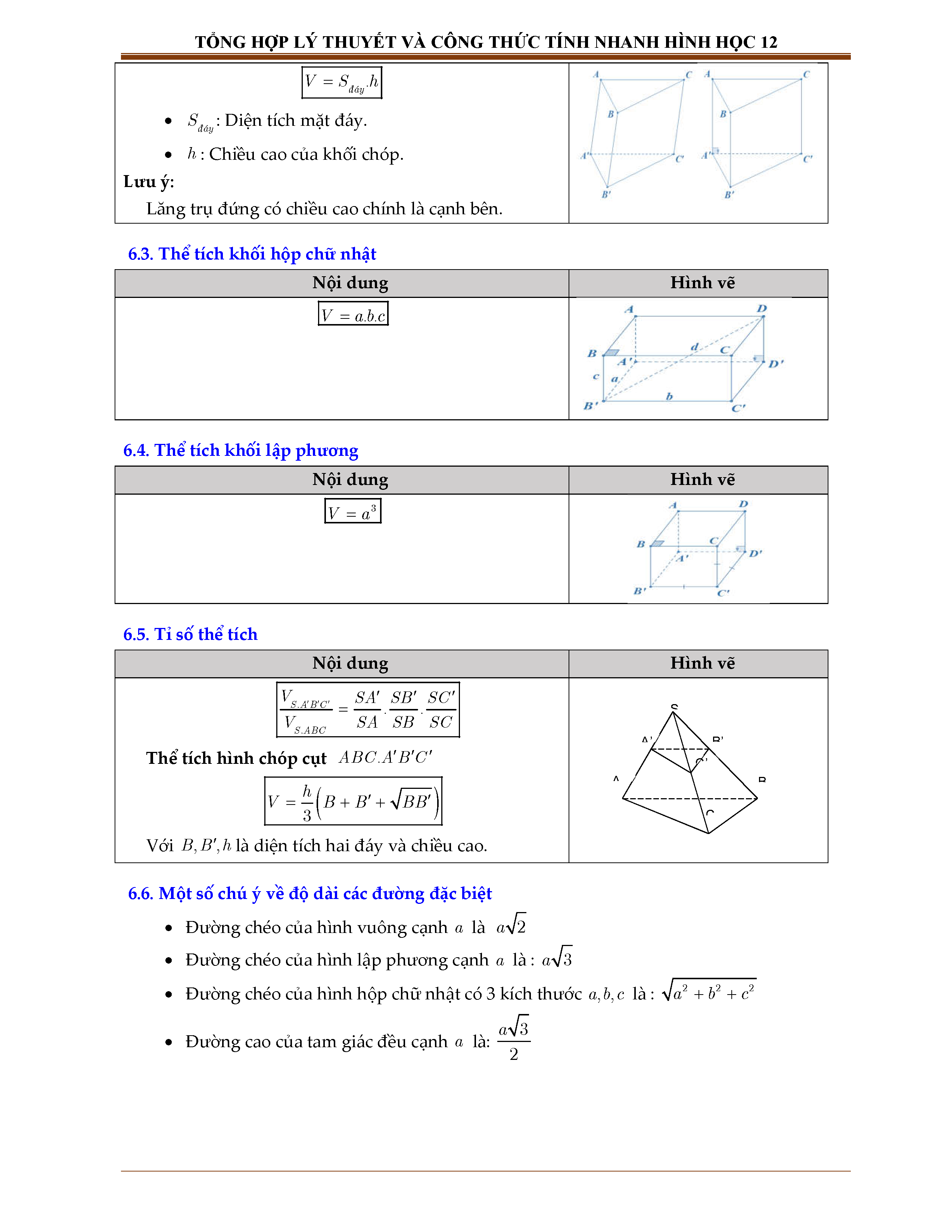 TỔNG HỢP CÔNG THỨC TÍNH NHANH VÀ LÝ THUYẾT HÌNH HỌC 12