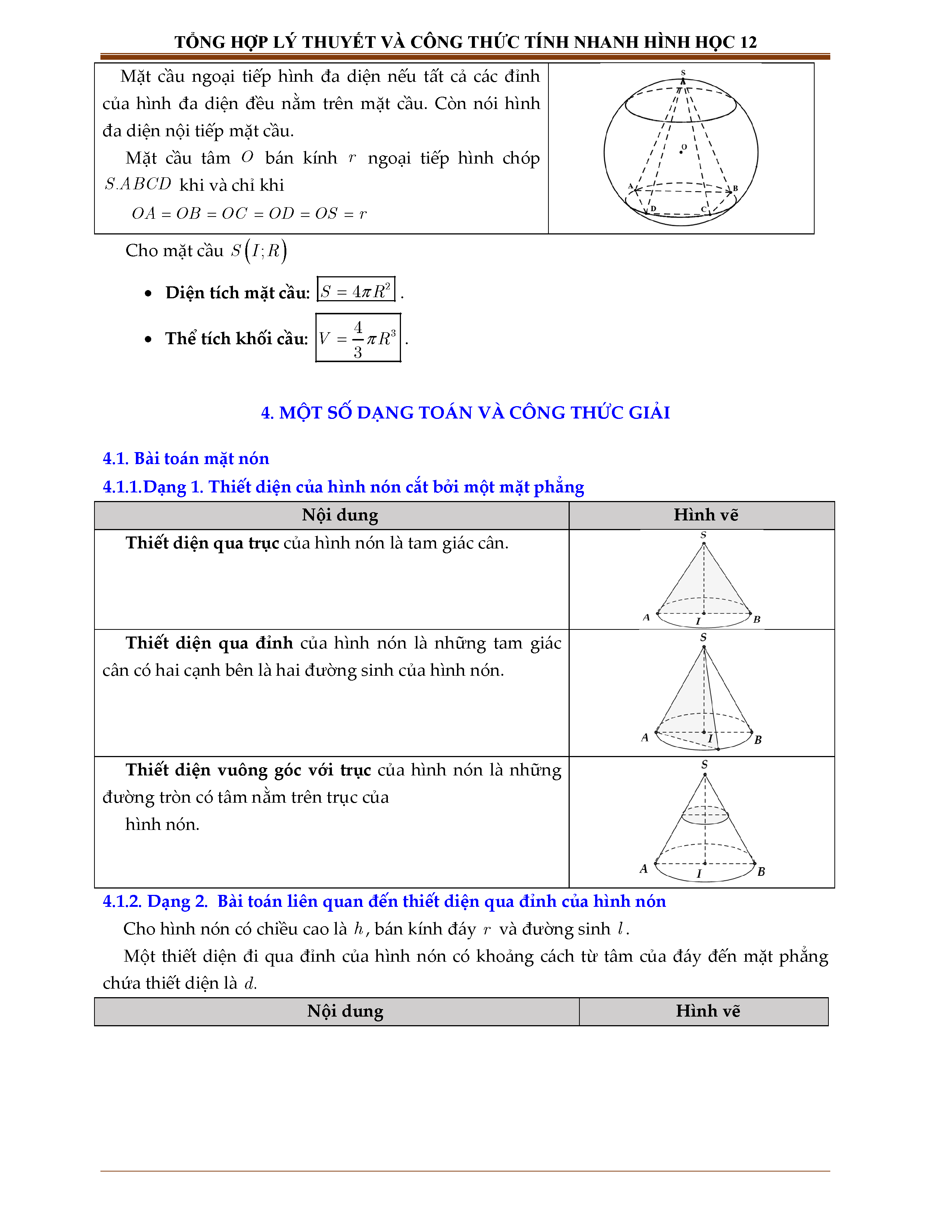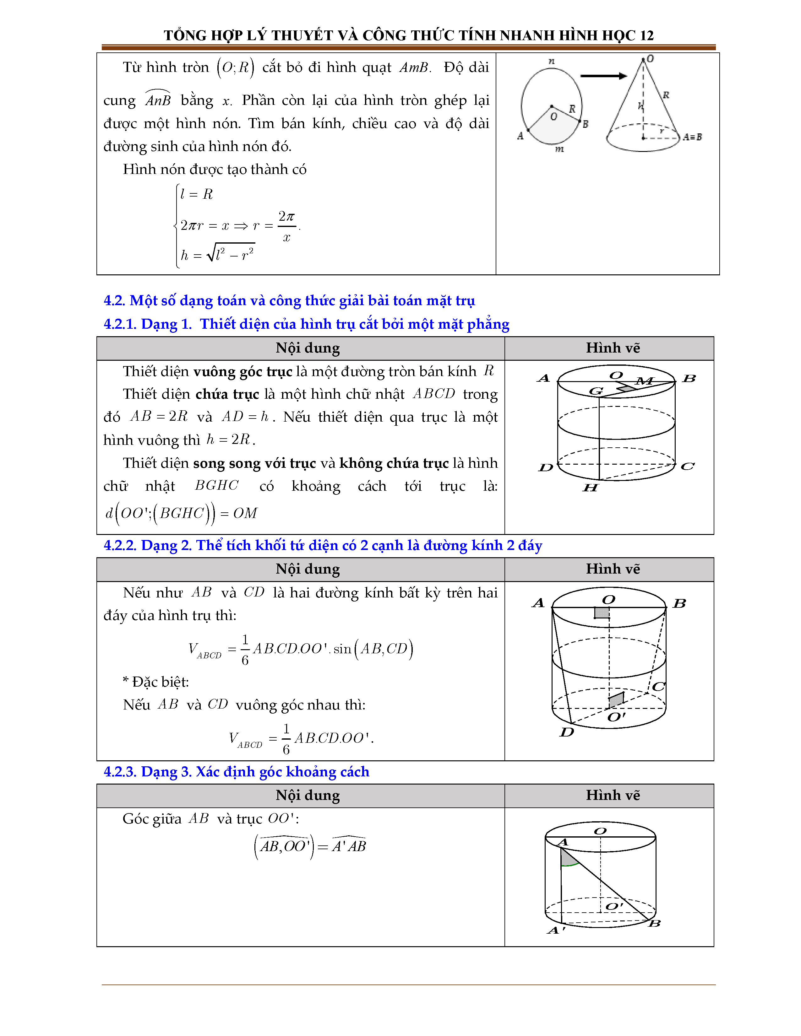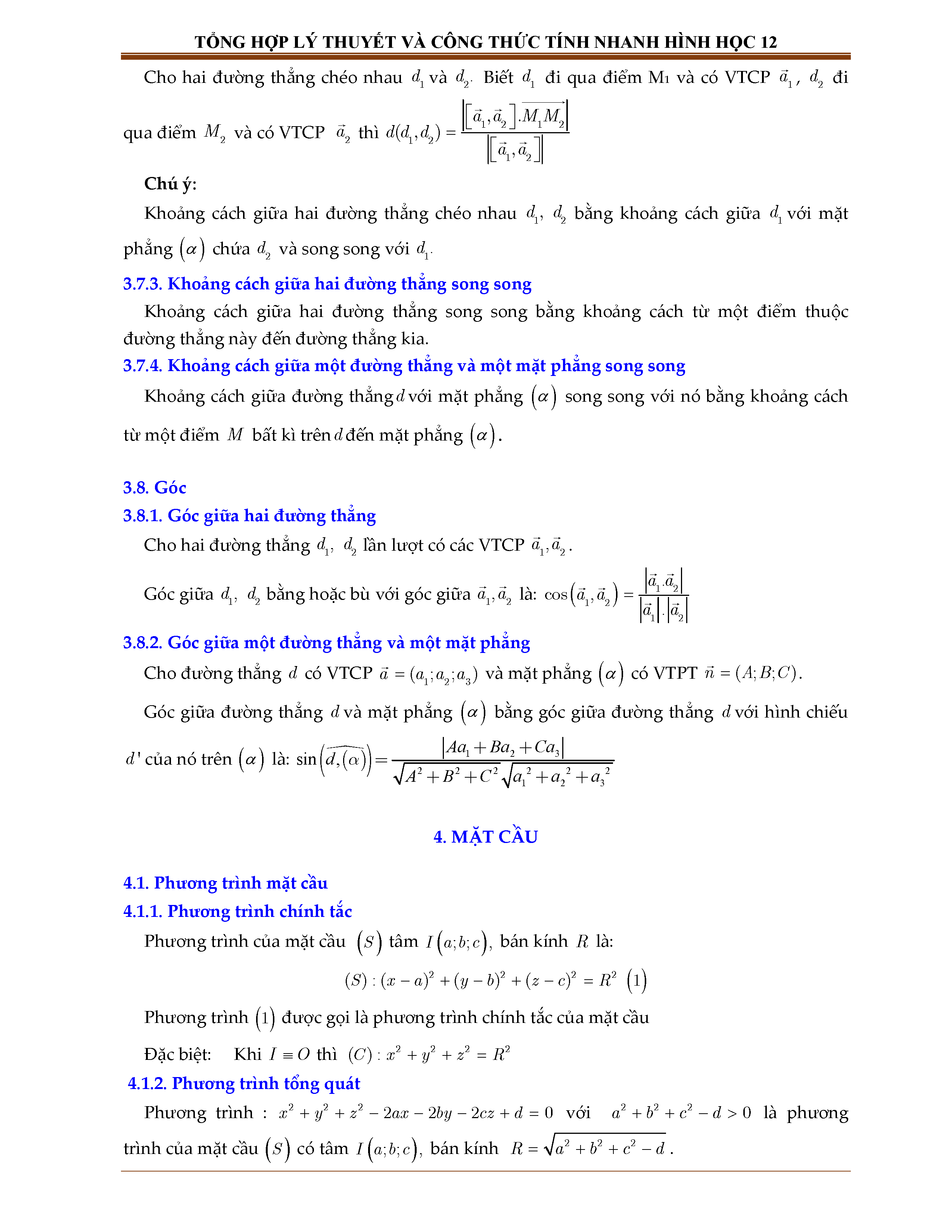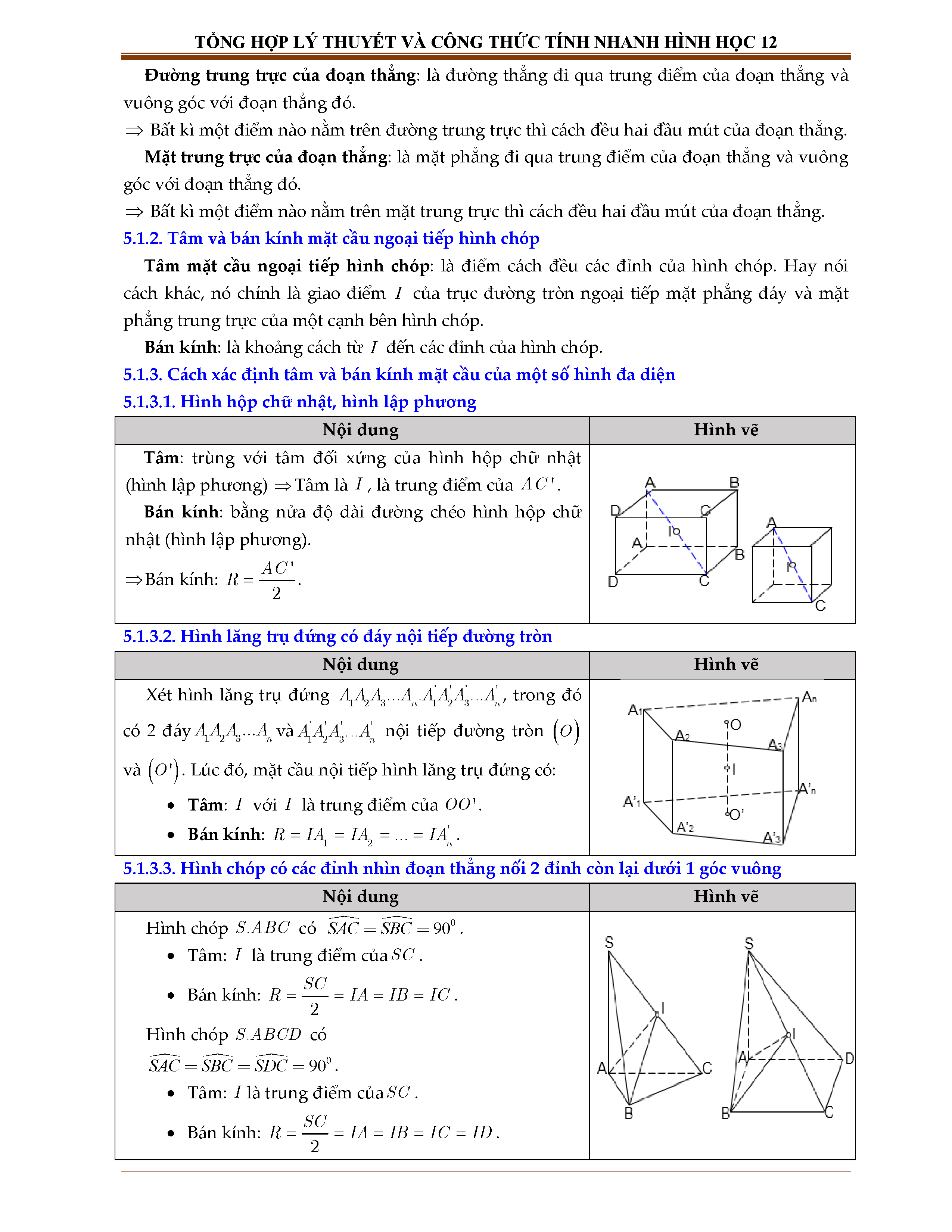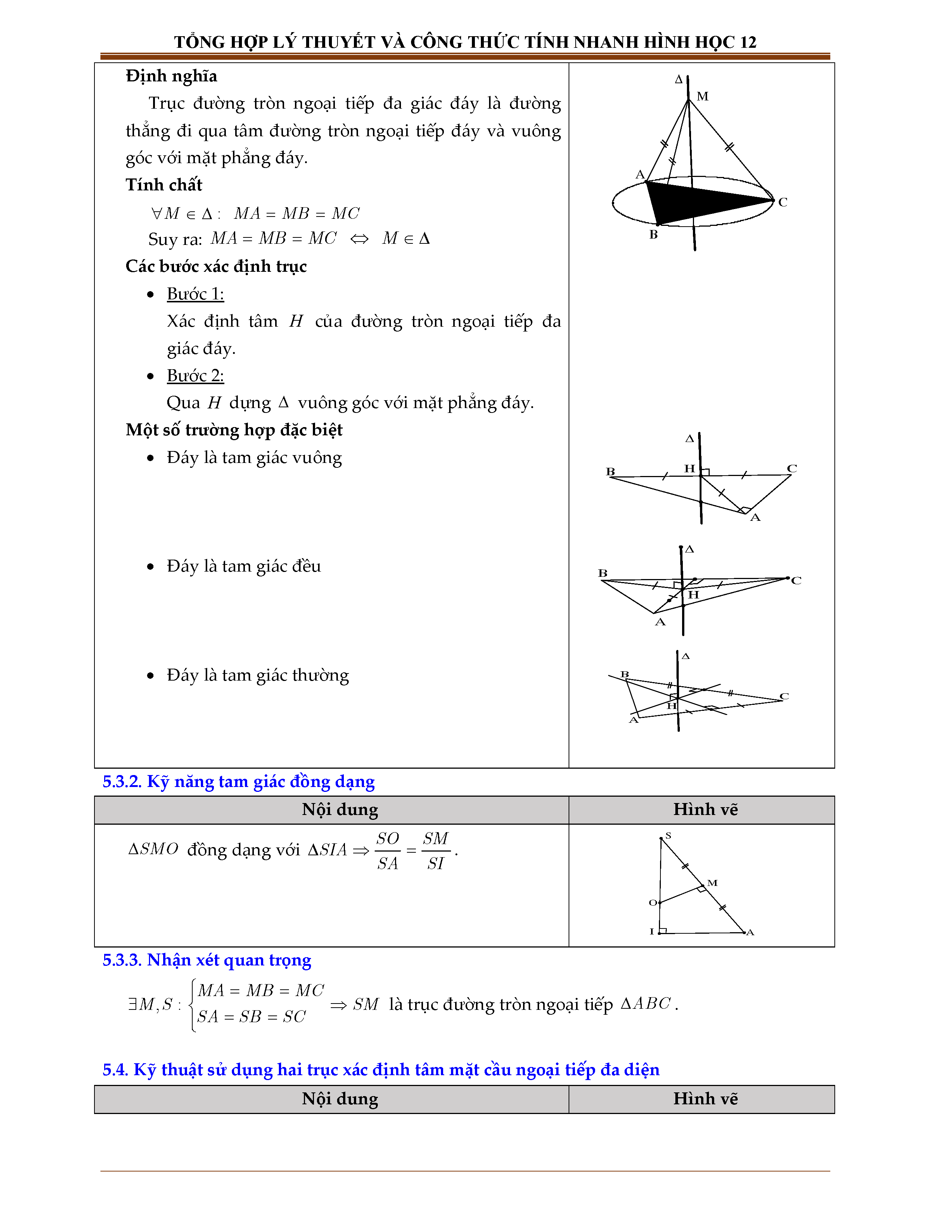 TỔNG HỢP CÔNG THỨC TÍNH NHANH VÀ LÝ THUYẾT HÌNH HỌC 12