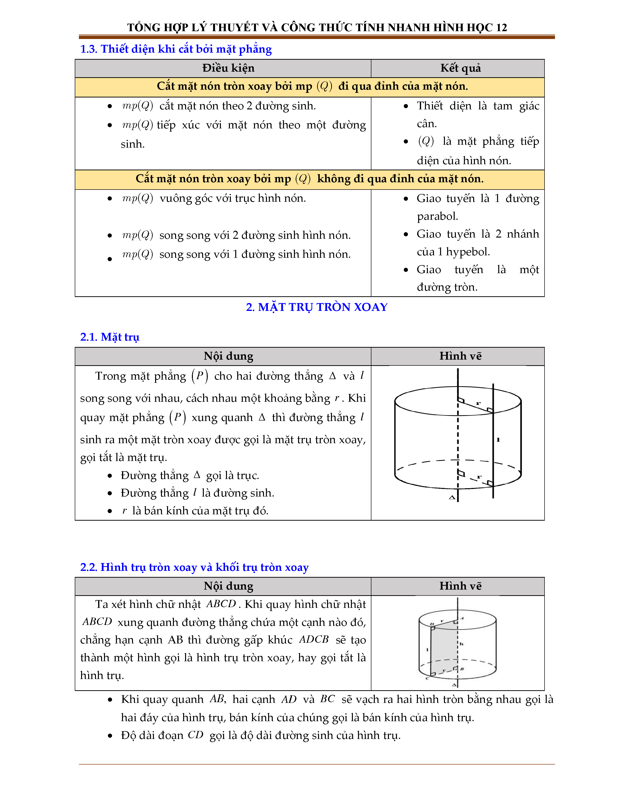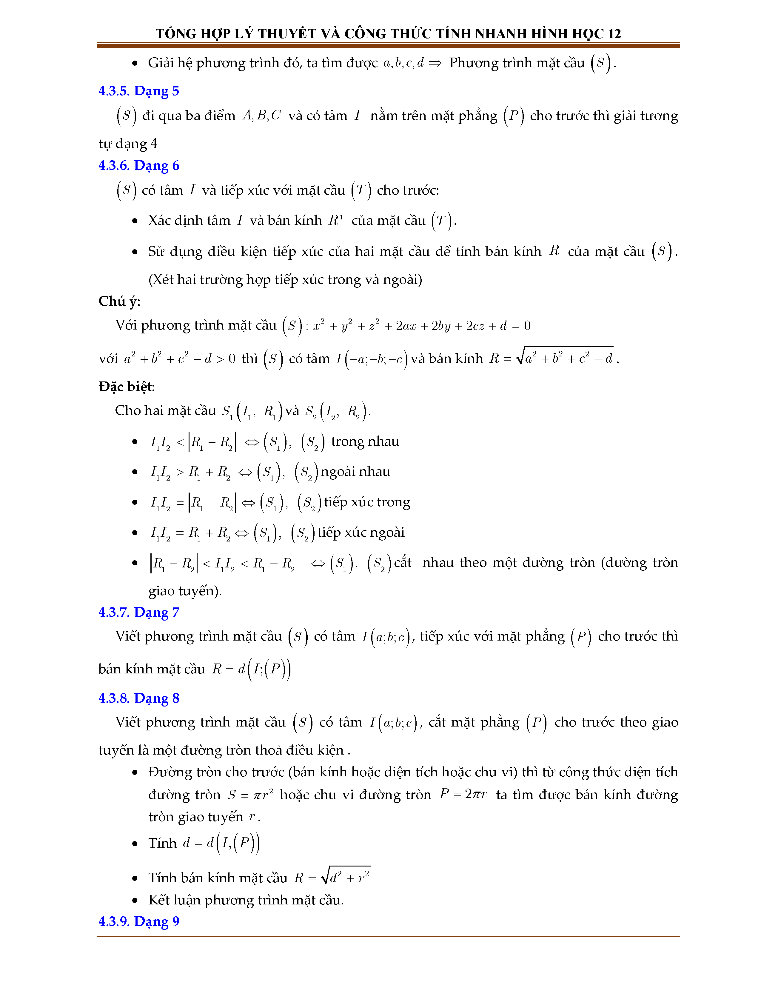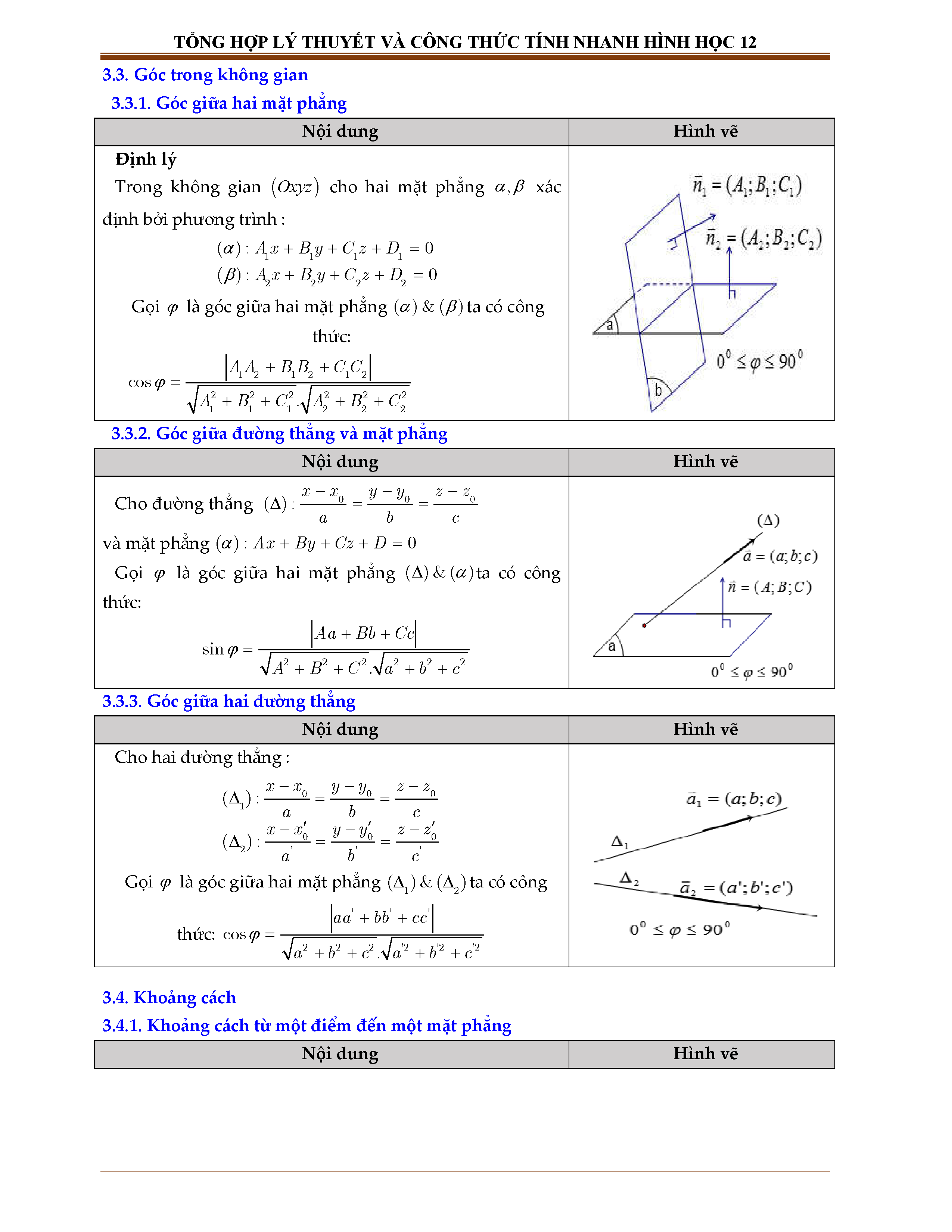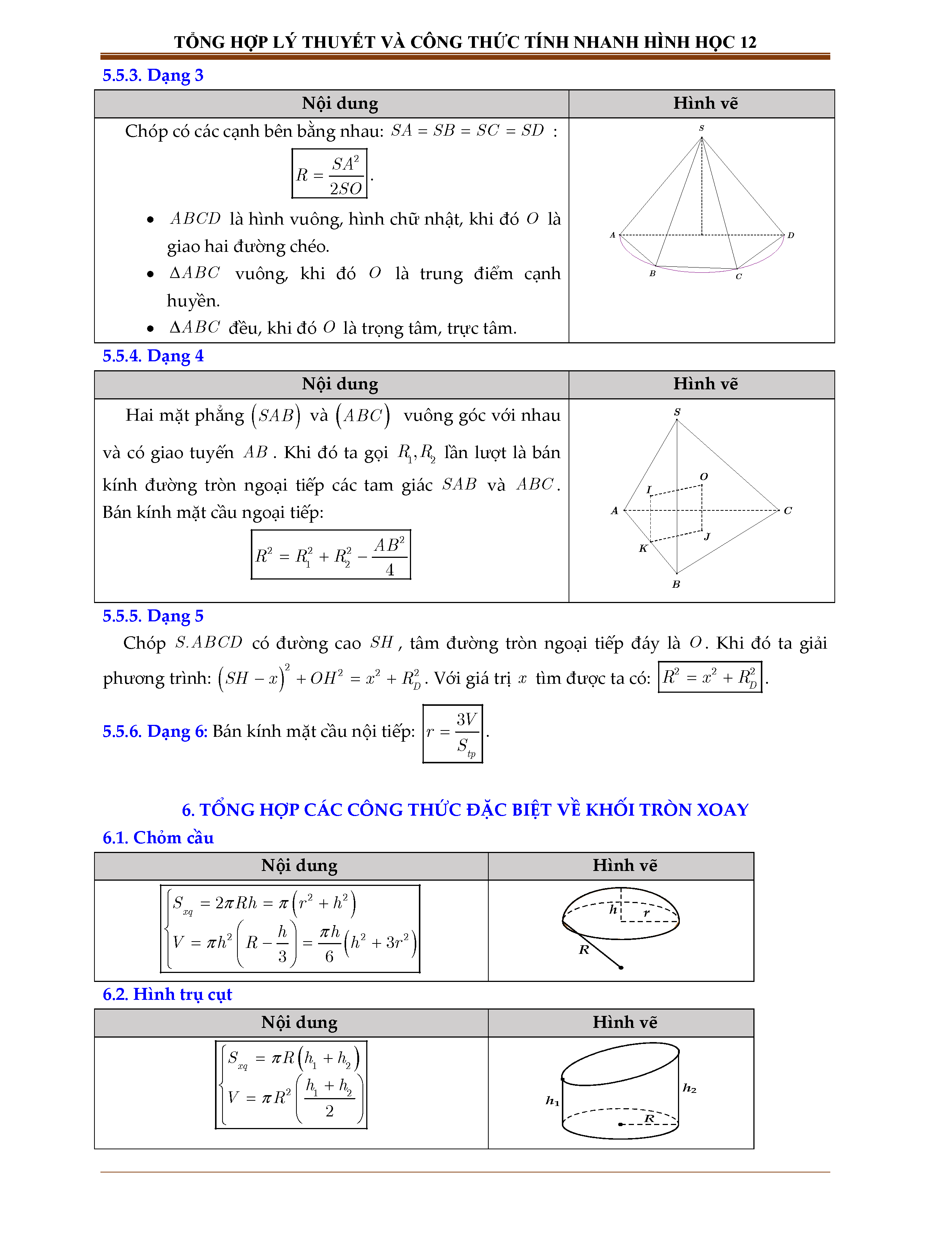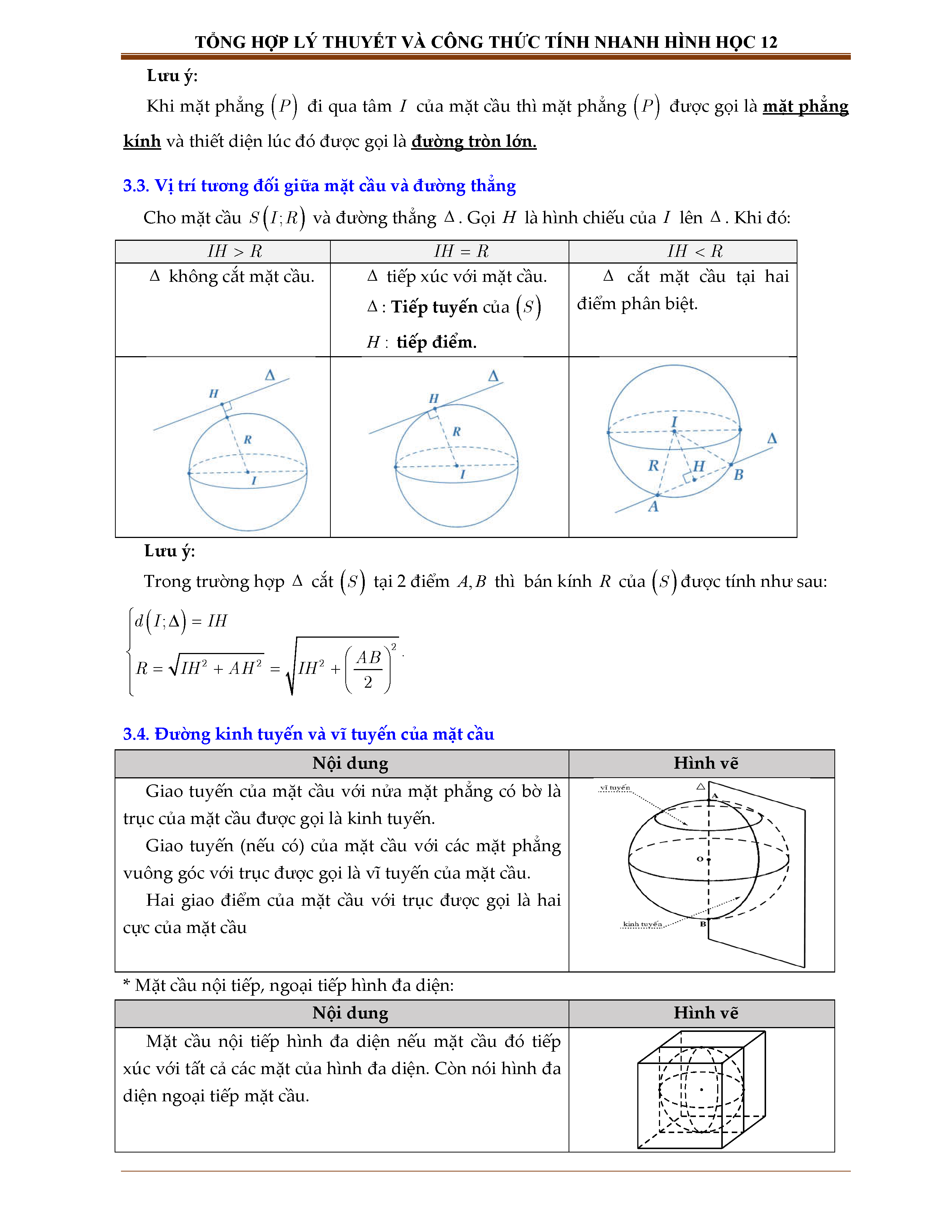 TỔNG HỢP CÔNG THỨC TÍNH NHANH VÀ LÝ THUYẾT HÌNH HỌC 12