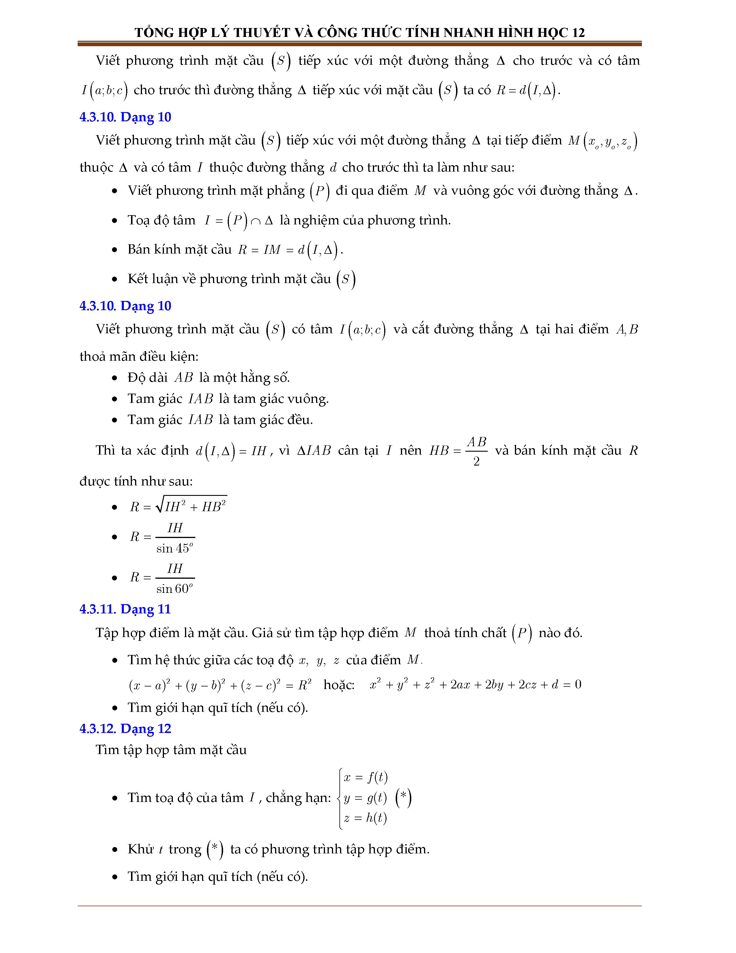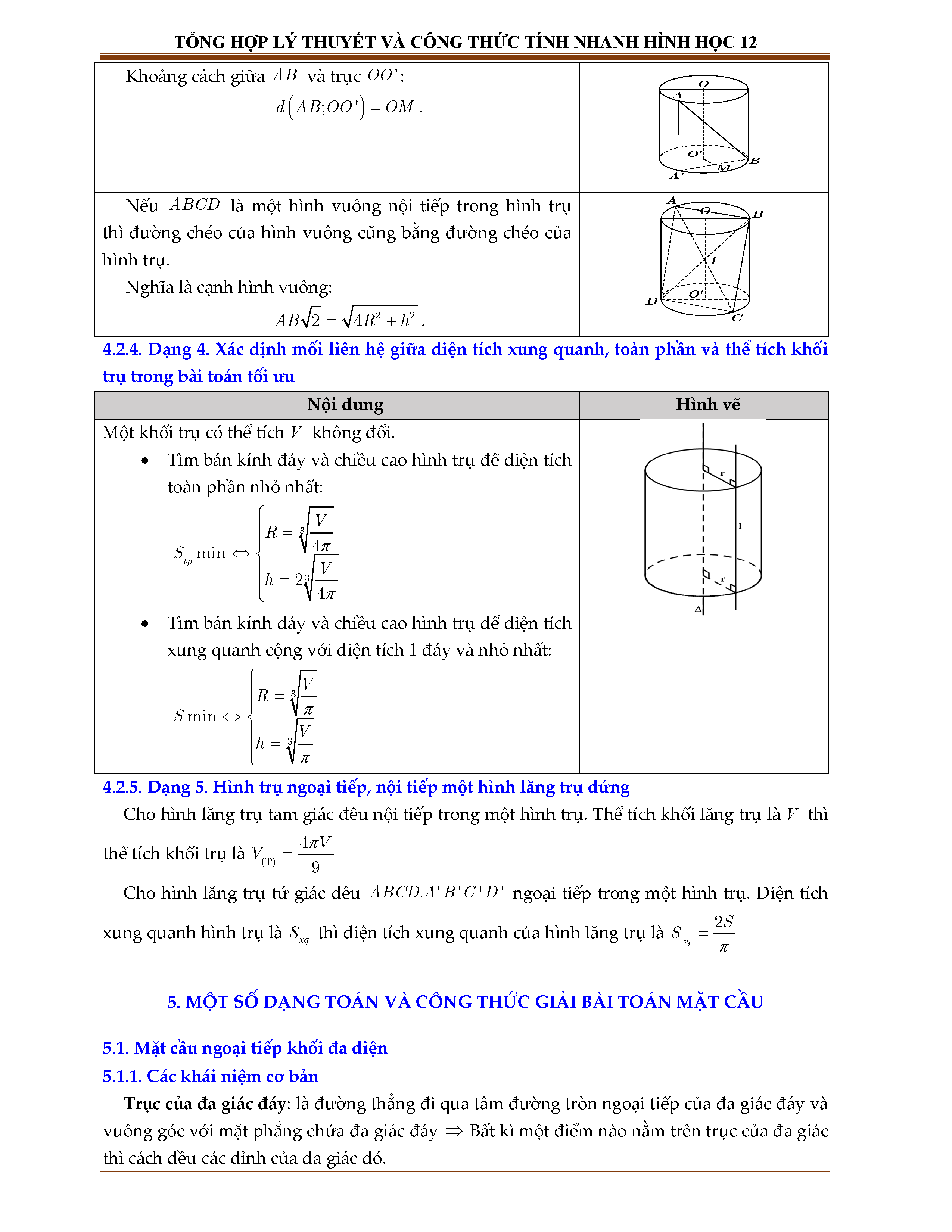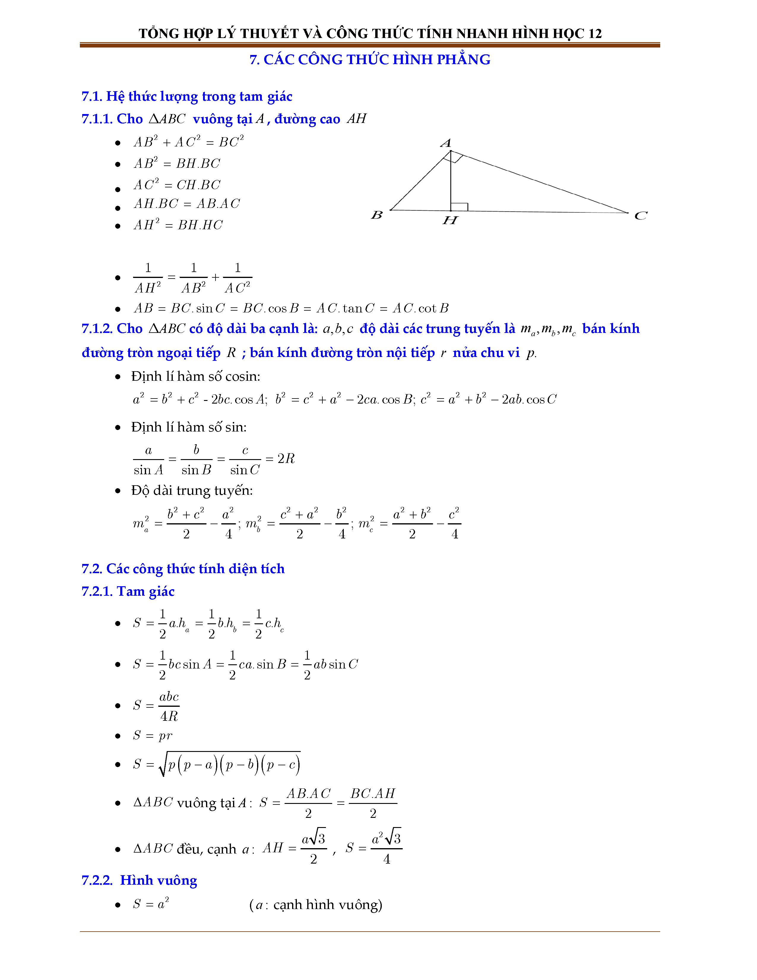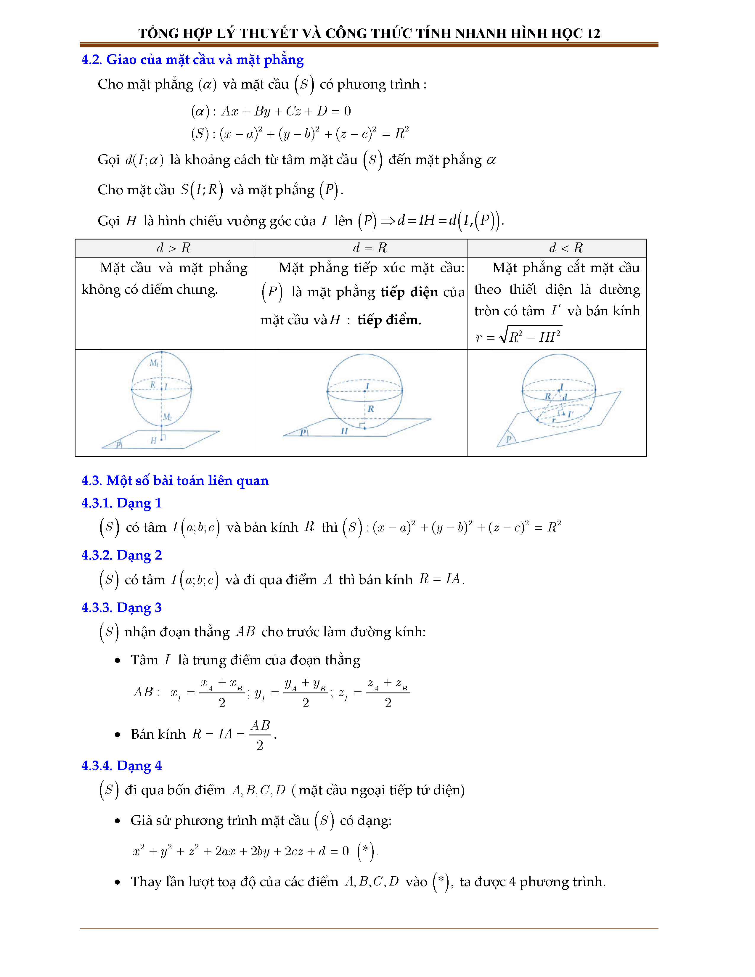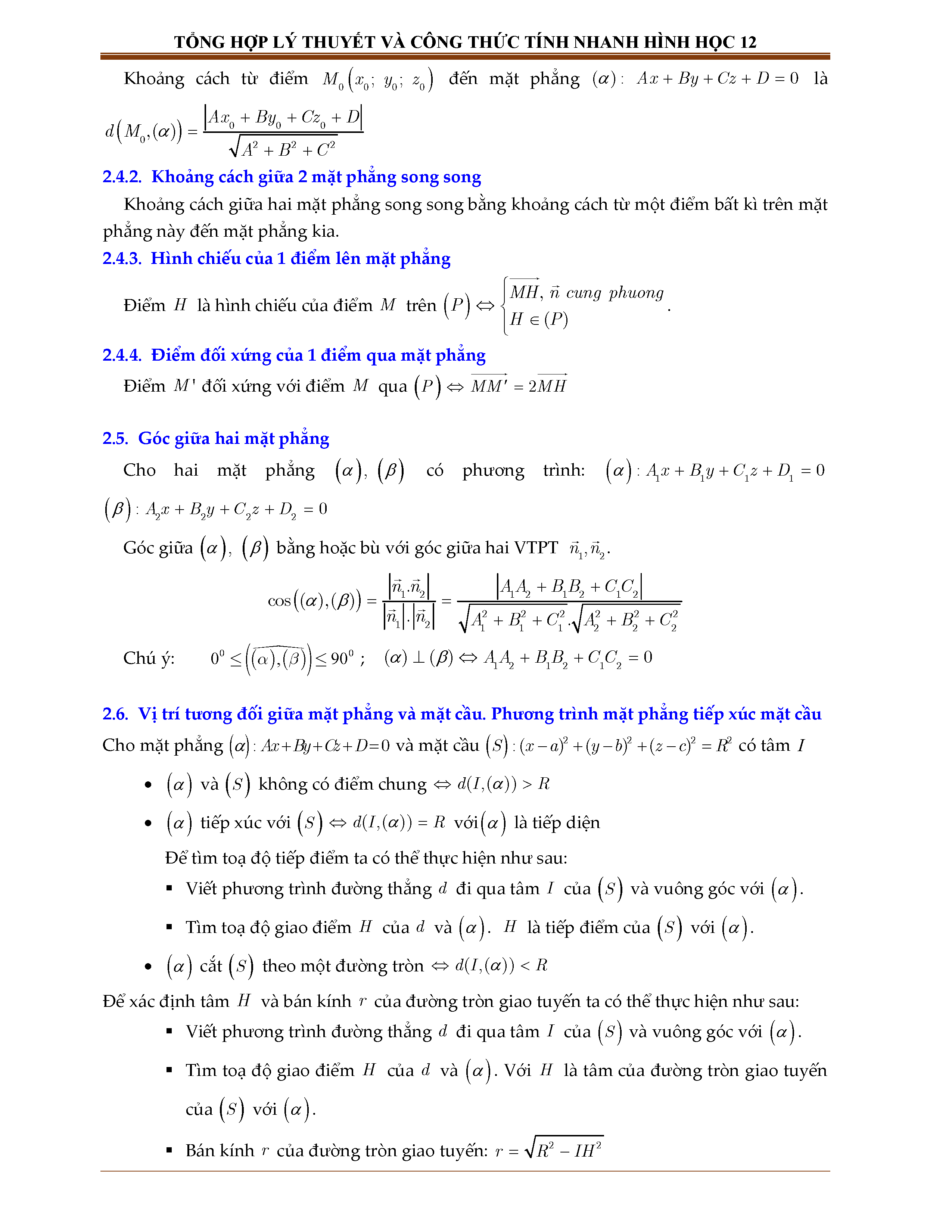 TỔNG HỢP CÔNG THỨC TÍNH NHANH VÀ LÝ THUYẾT HÌNH HỌC 12