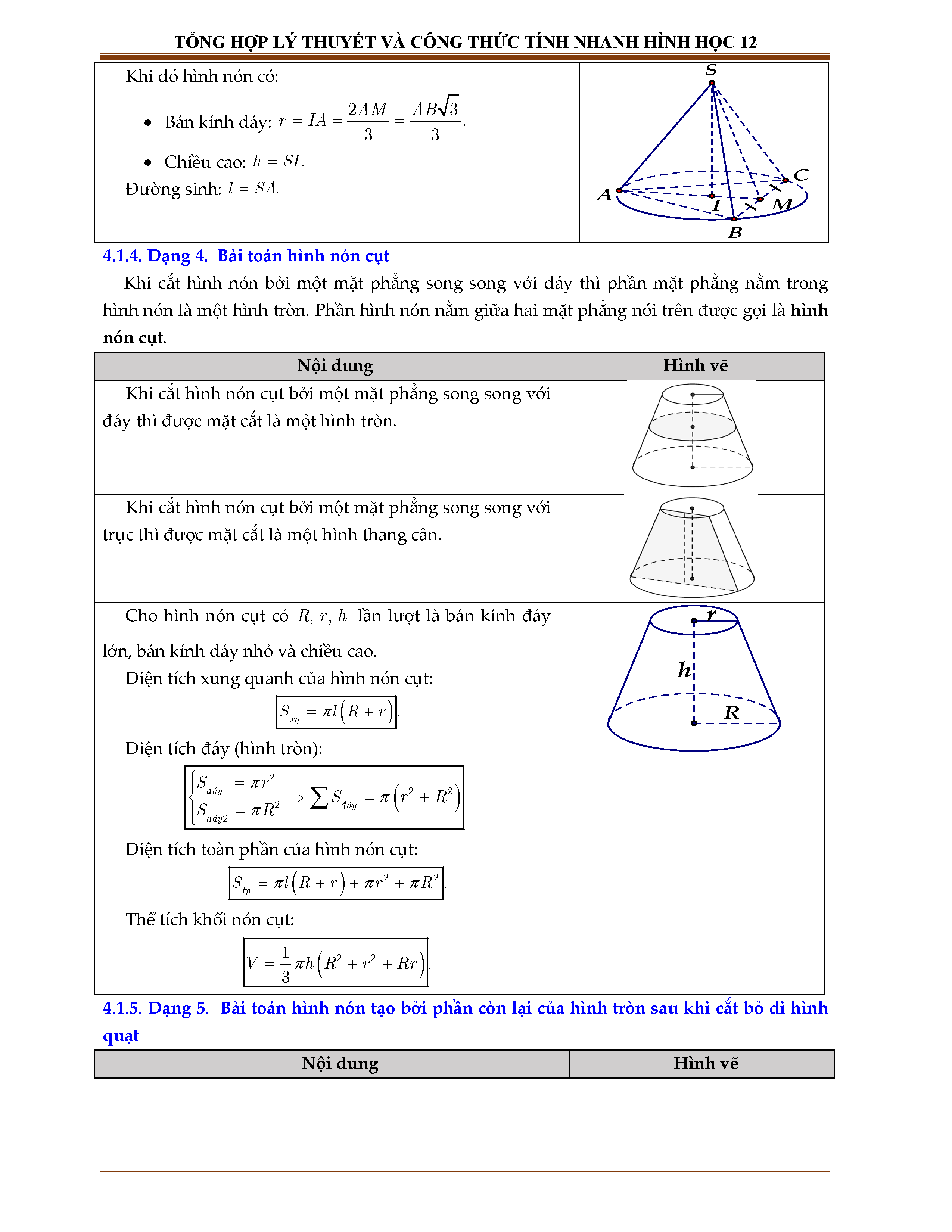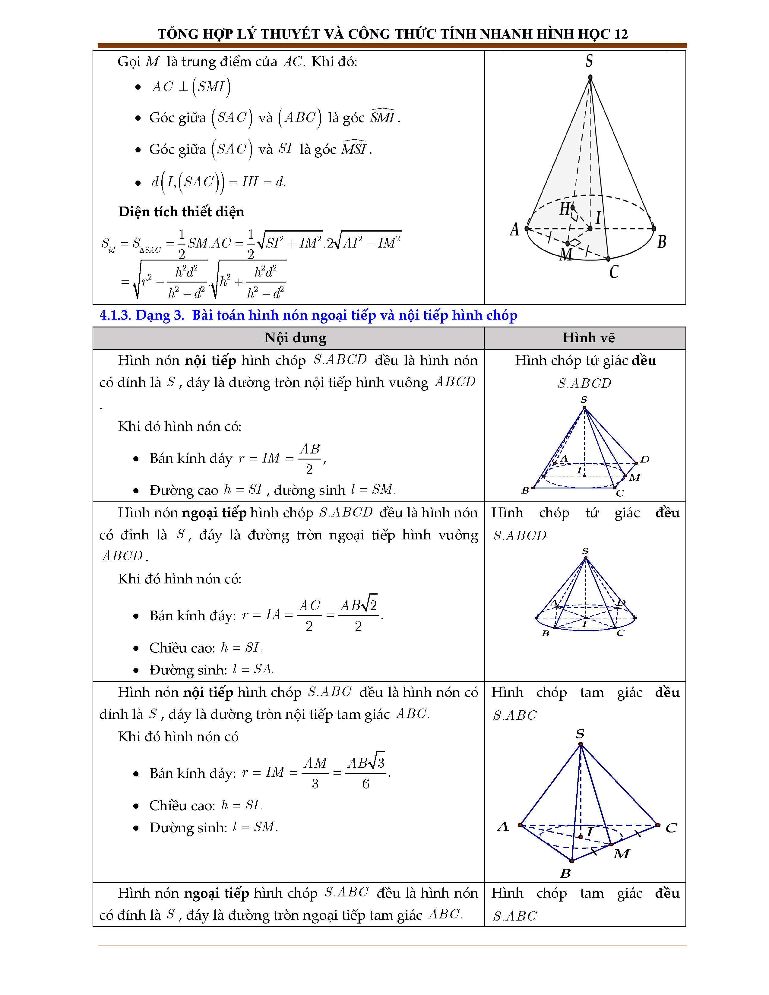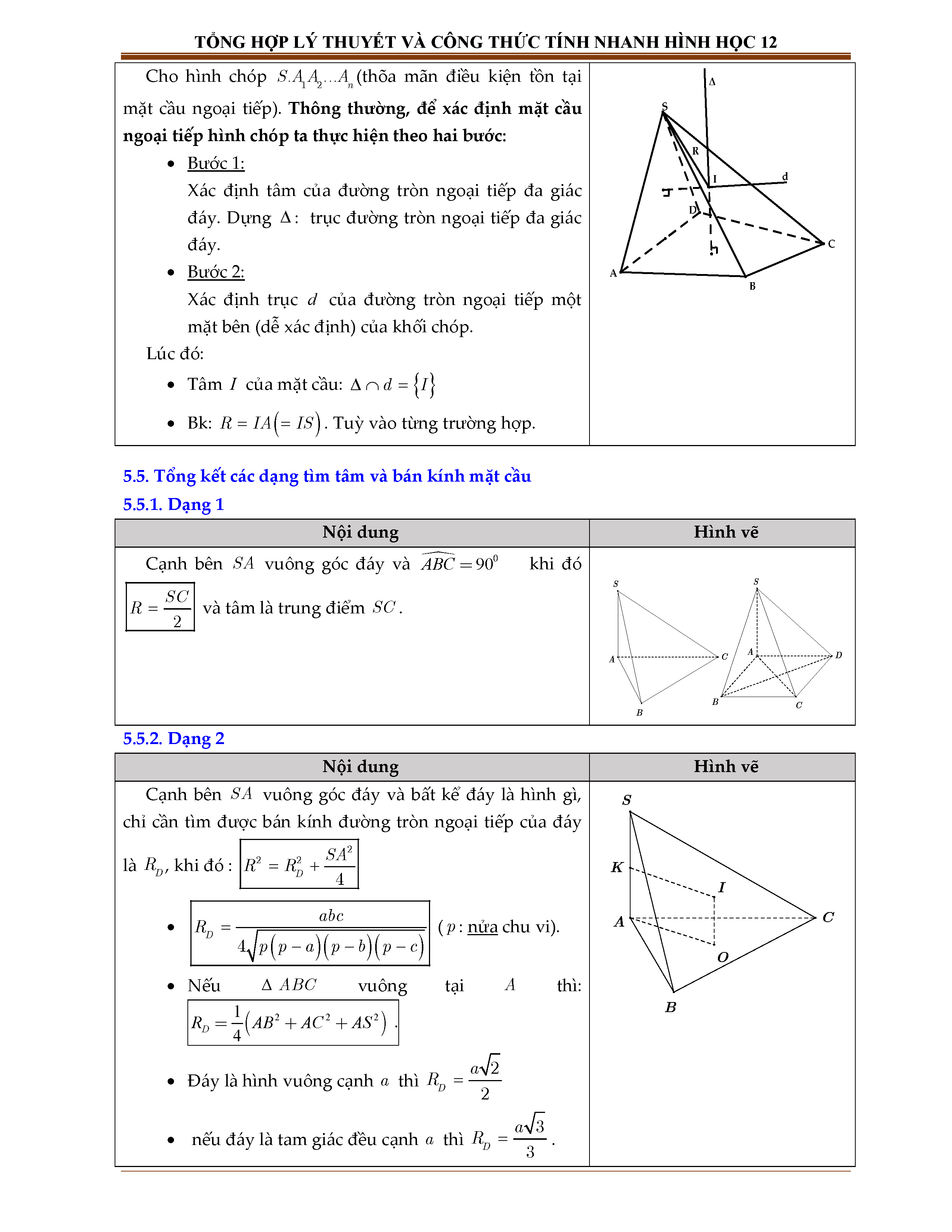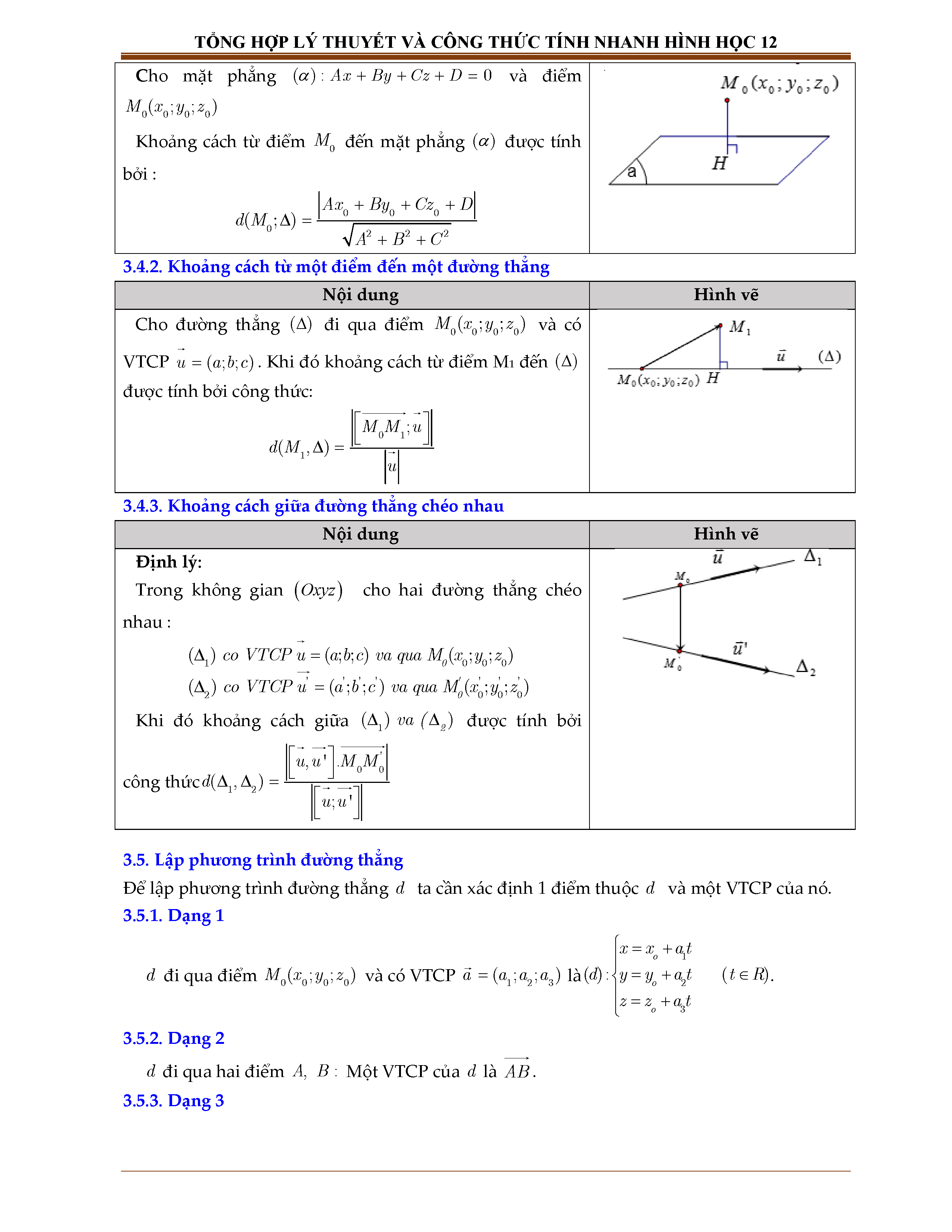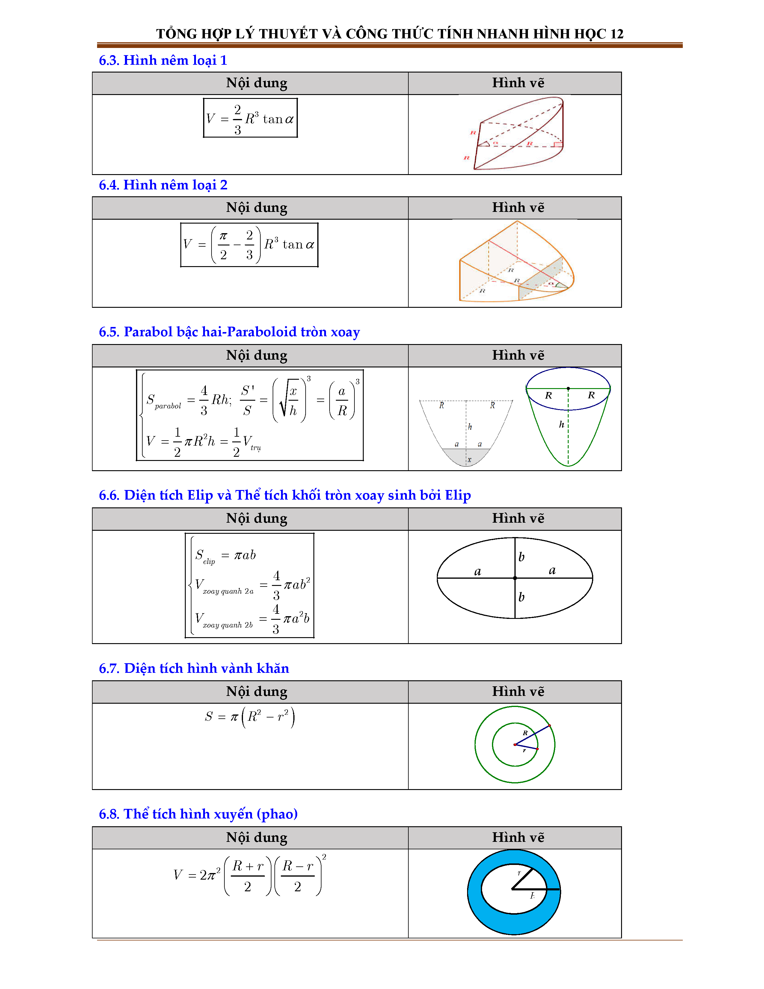 TỔNG HỢP CÔNG THỨC TÍNH NHANH VÀ LÝ THUYẾT HÌNH HỌC 12