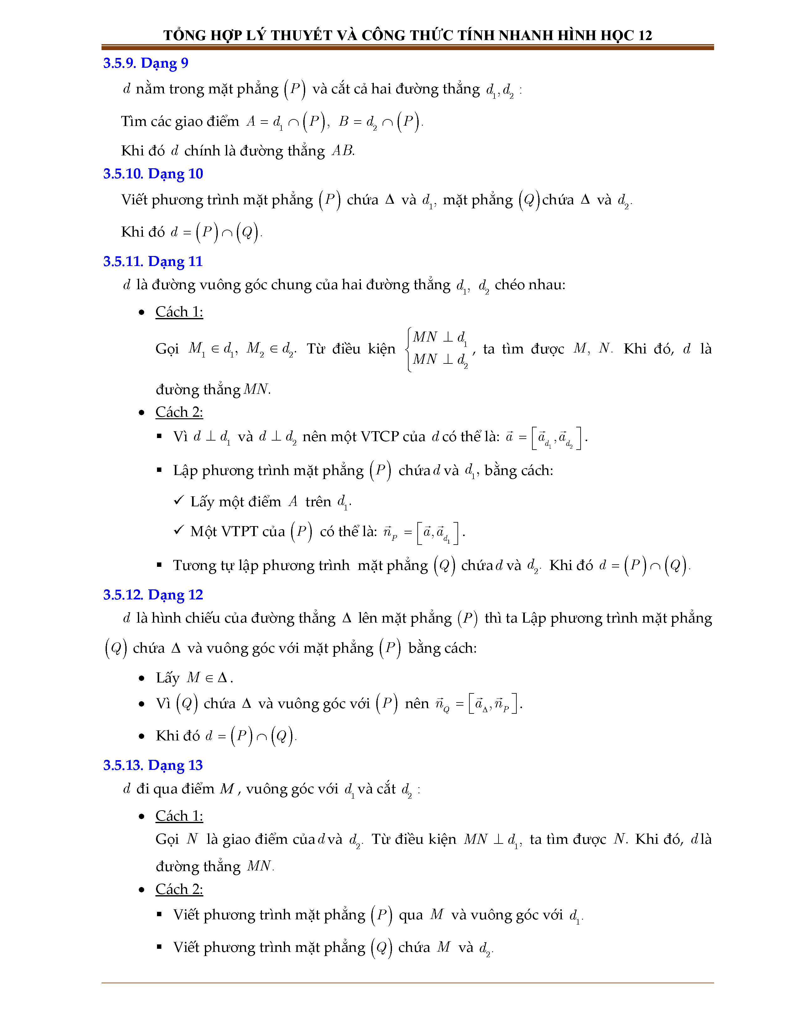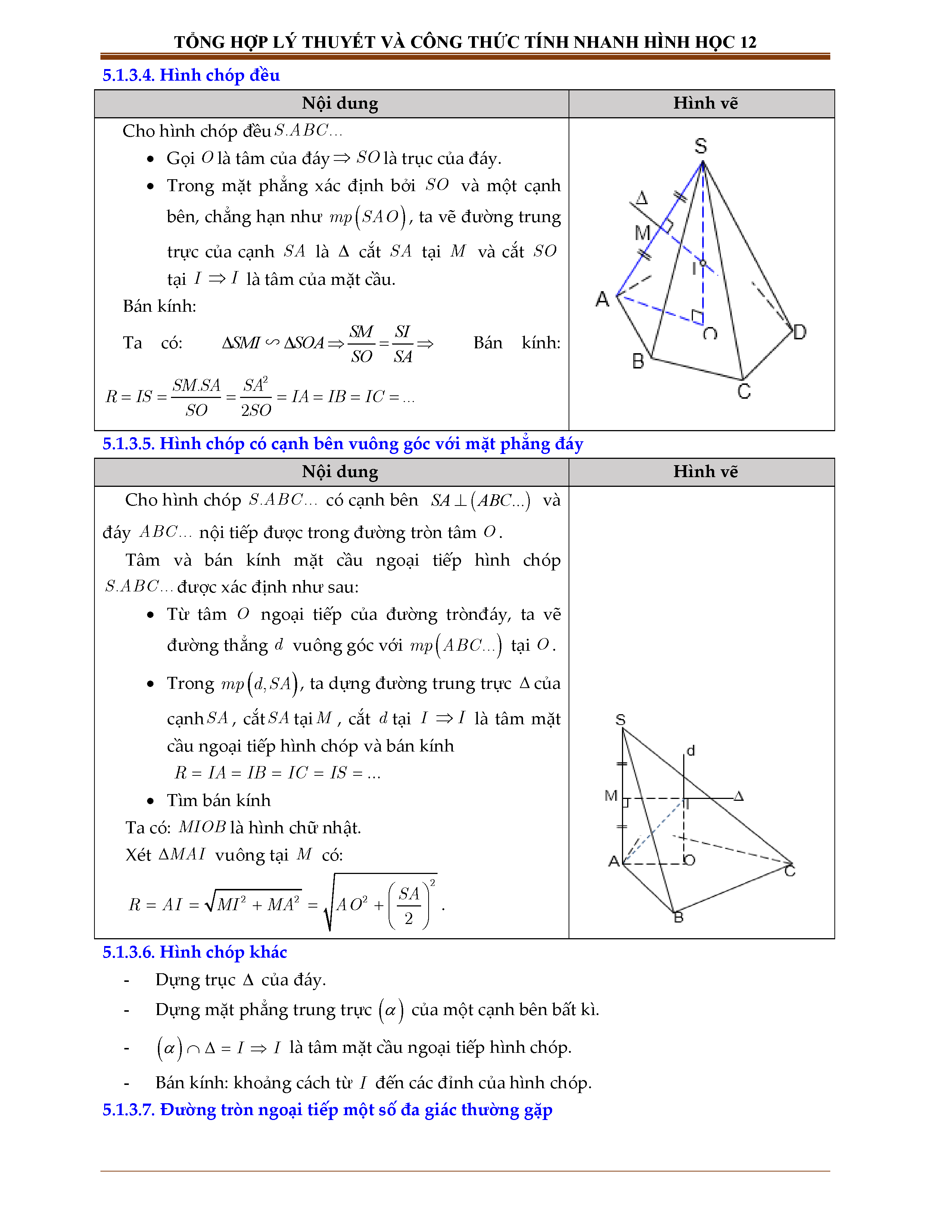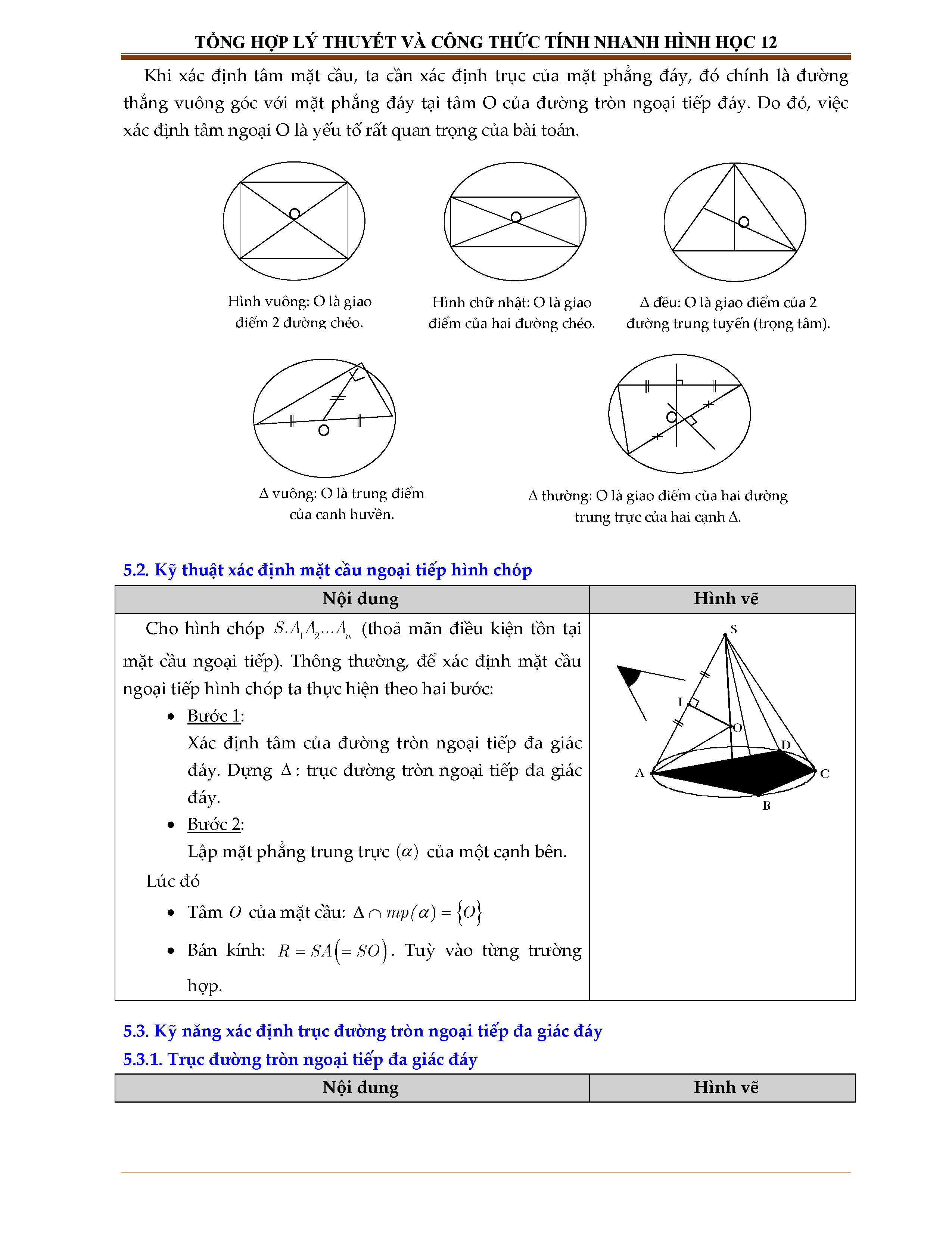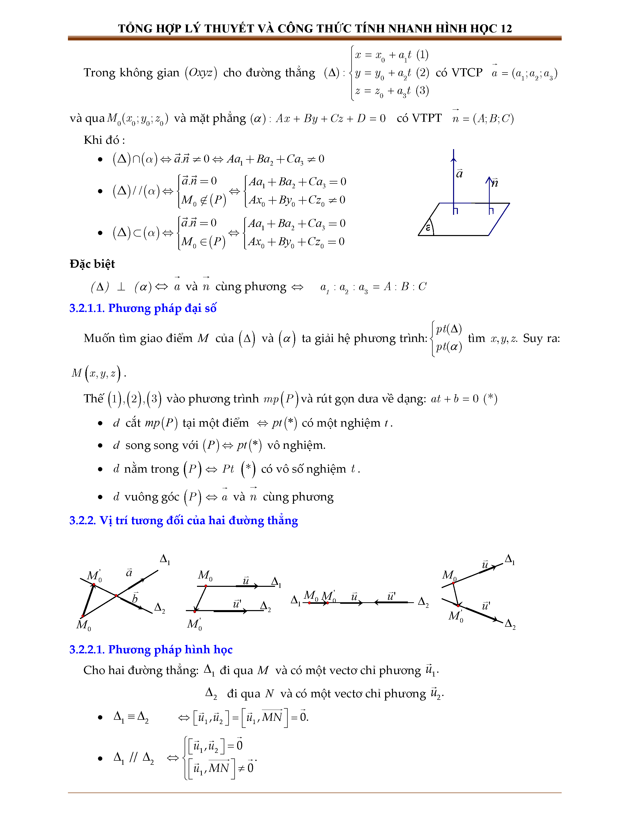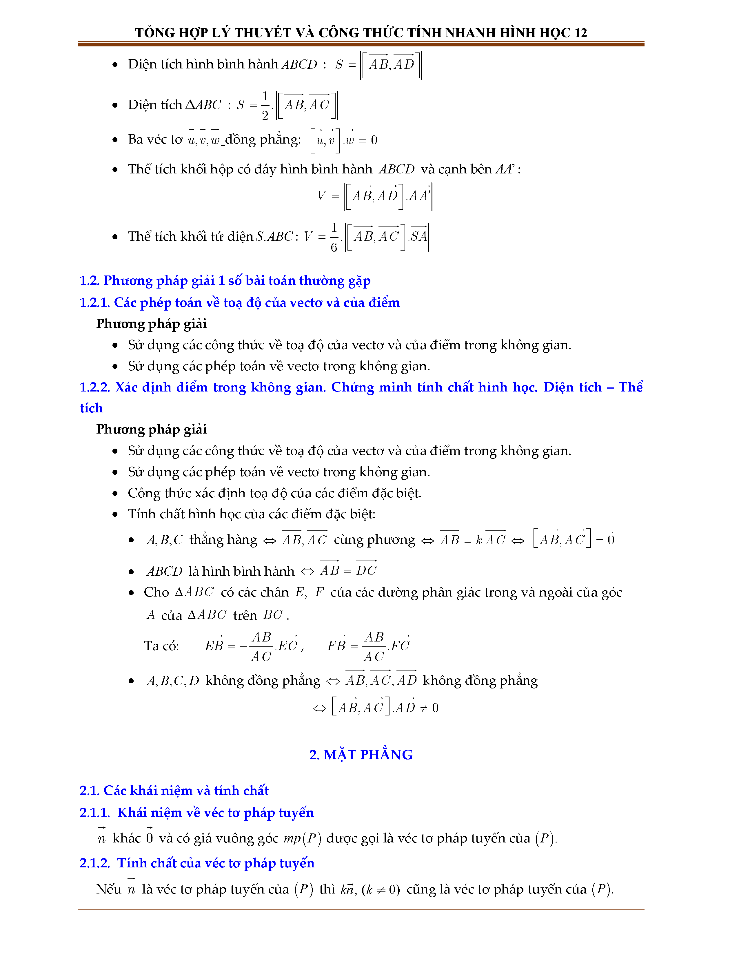 TỔNG HỢP CÔNG THỨC TÍNH NHANH VÀ LÝ THUYẾT HÌNH HỌC 12