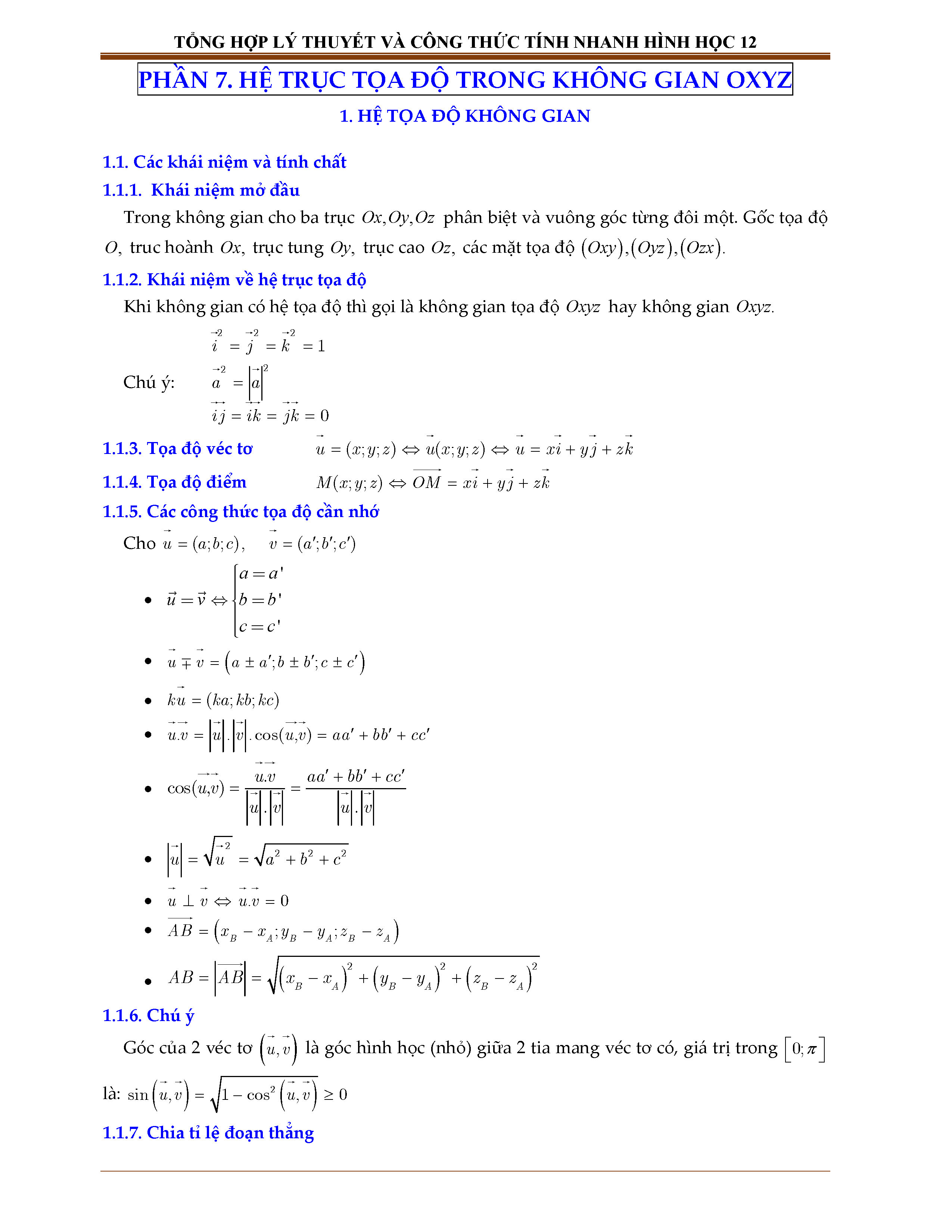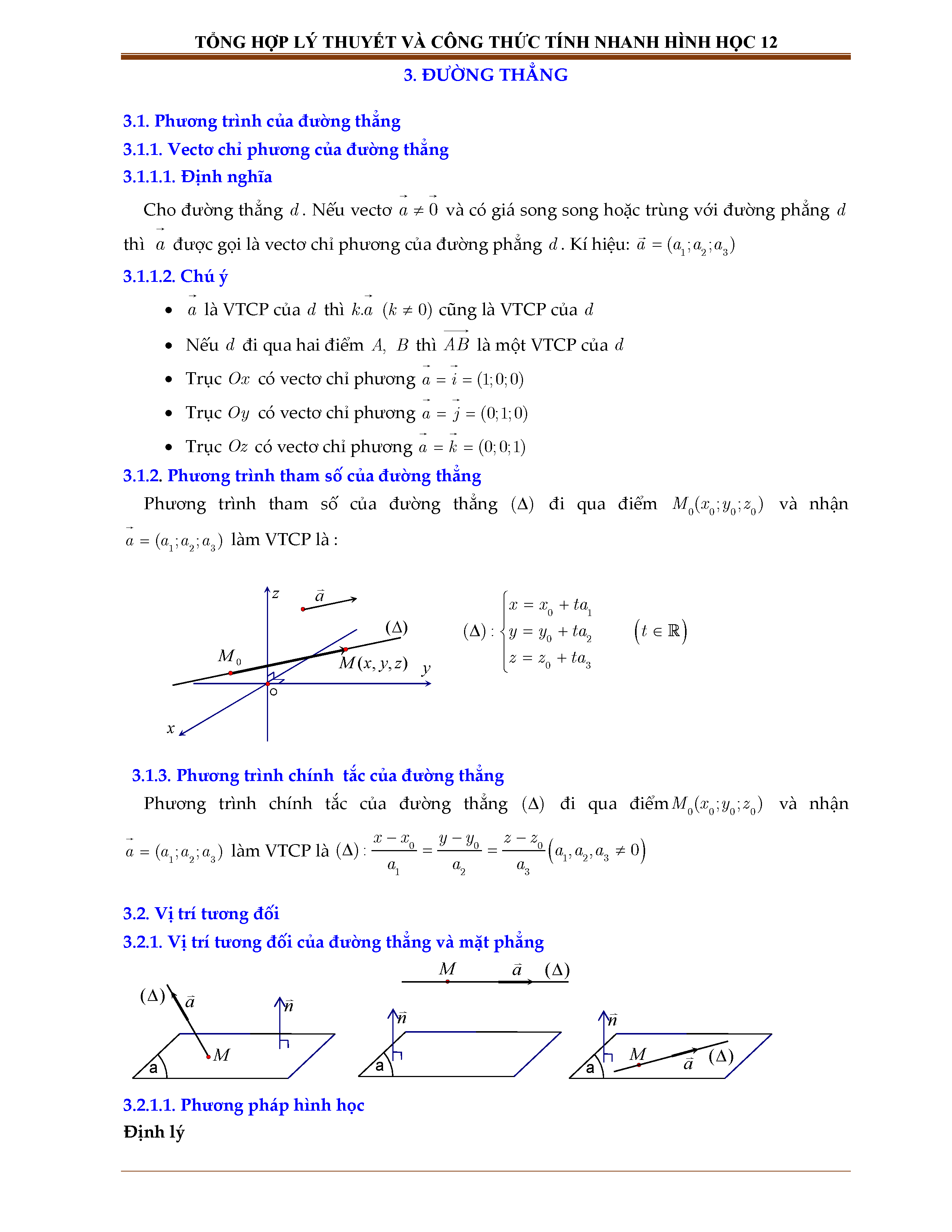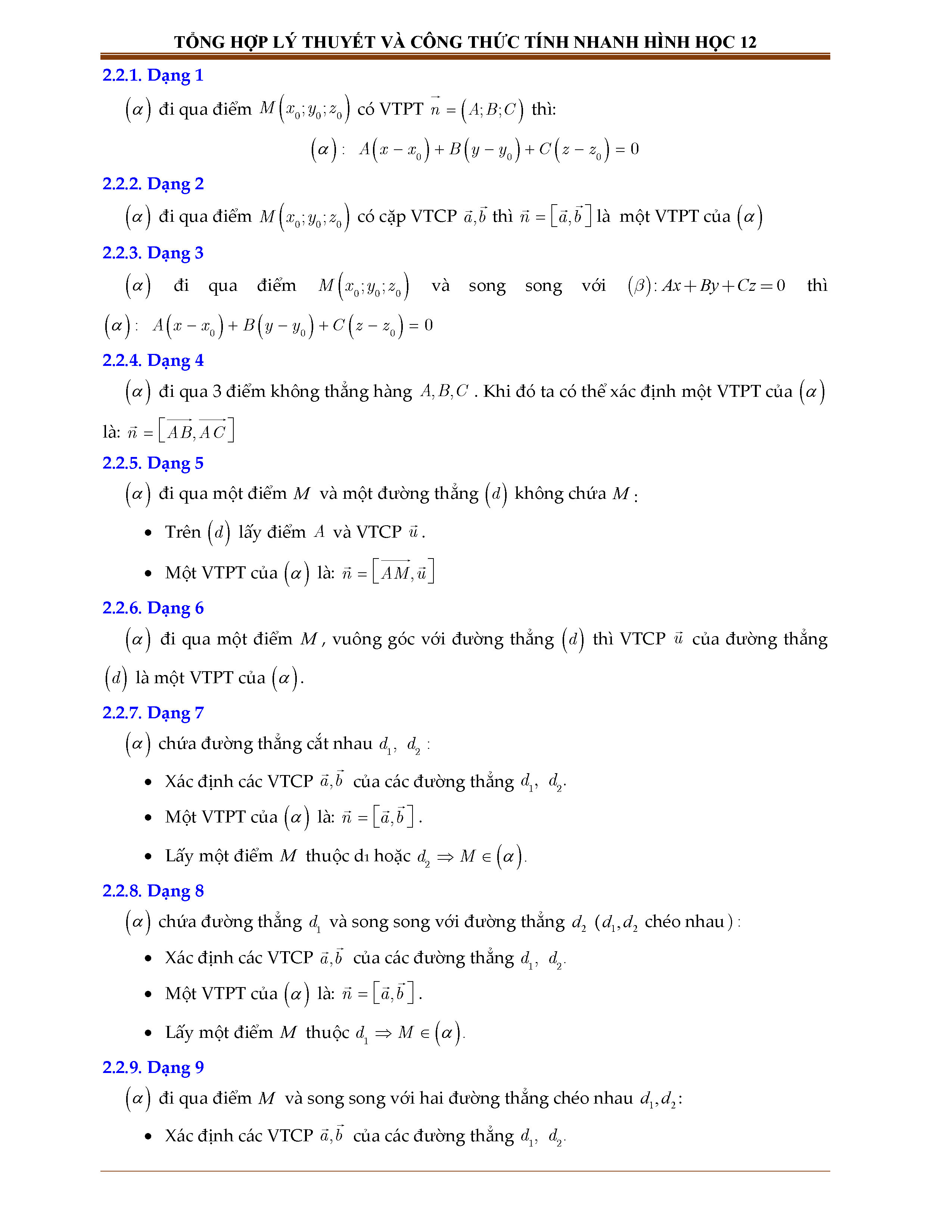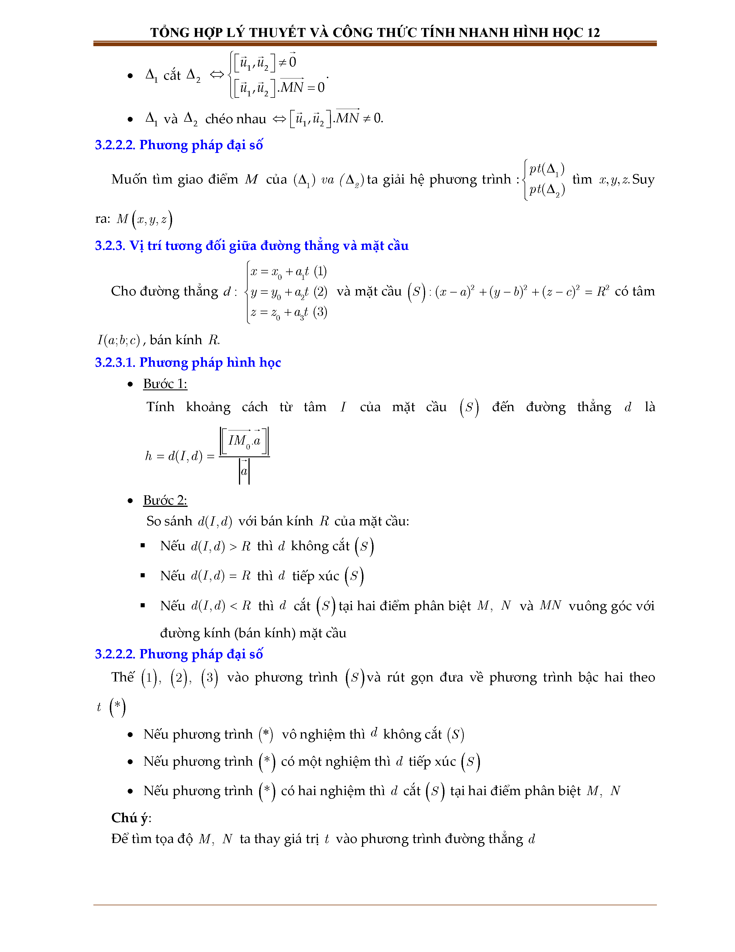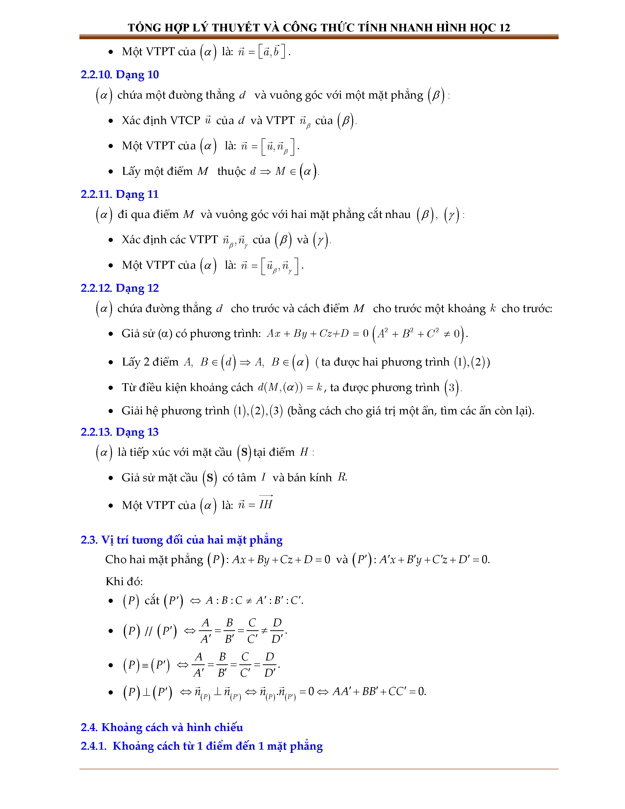 TỔNG HỢP CÔNG THỨC TÍNH NHANH VÀ LÝ THUYẾT HÌNH HỌC 12