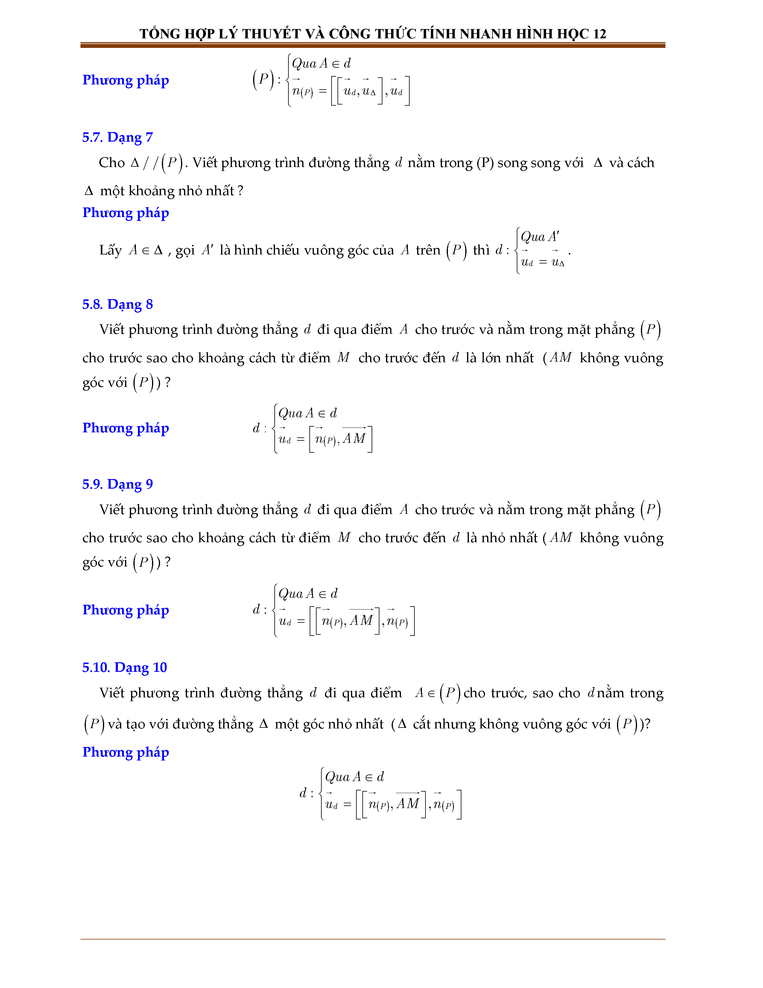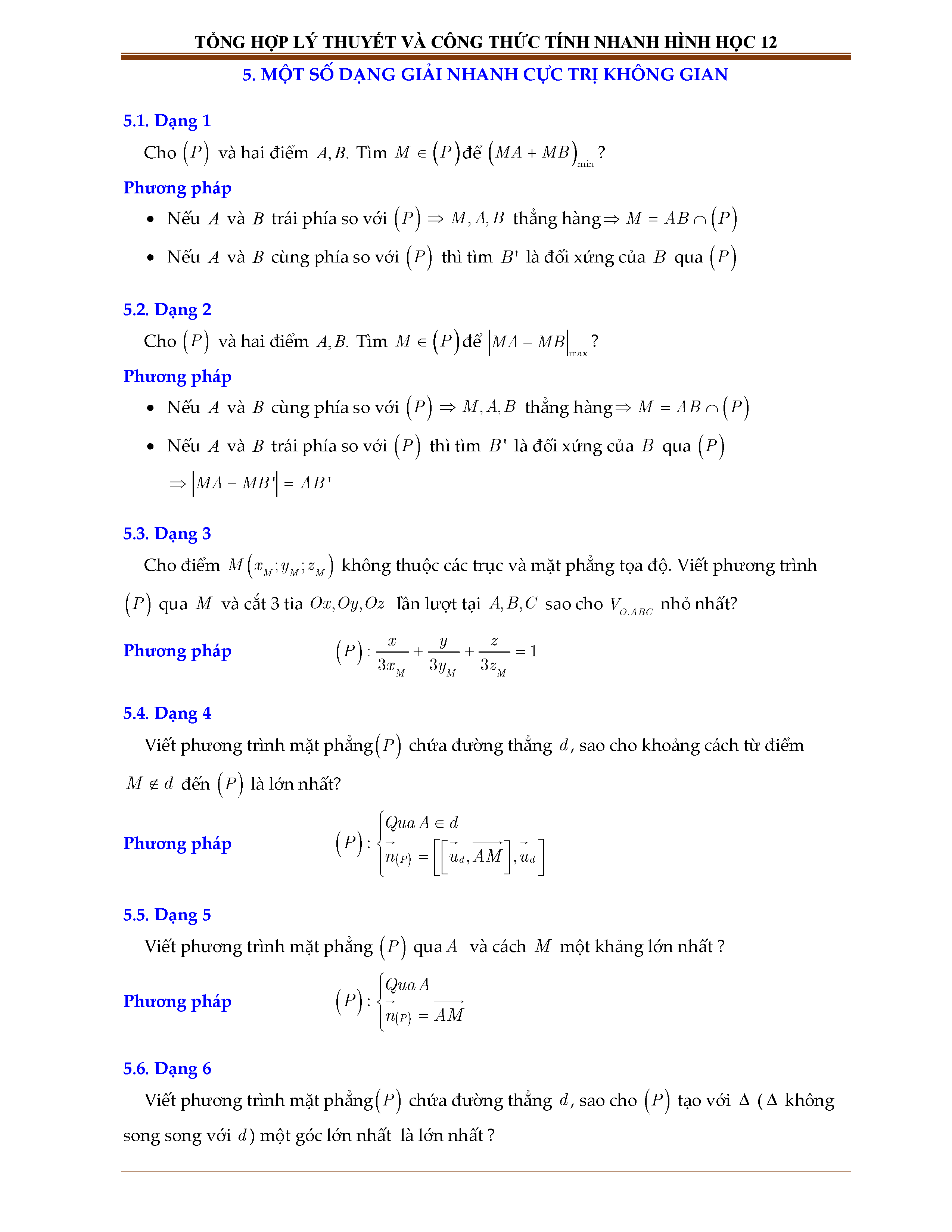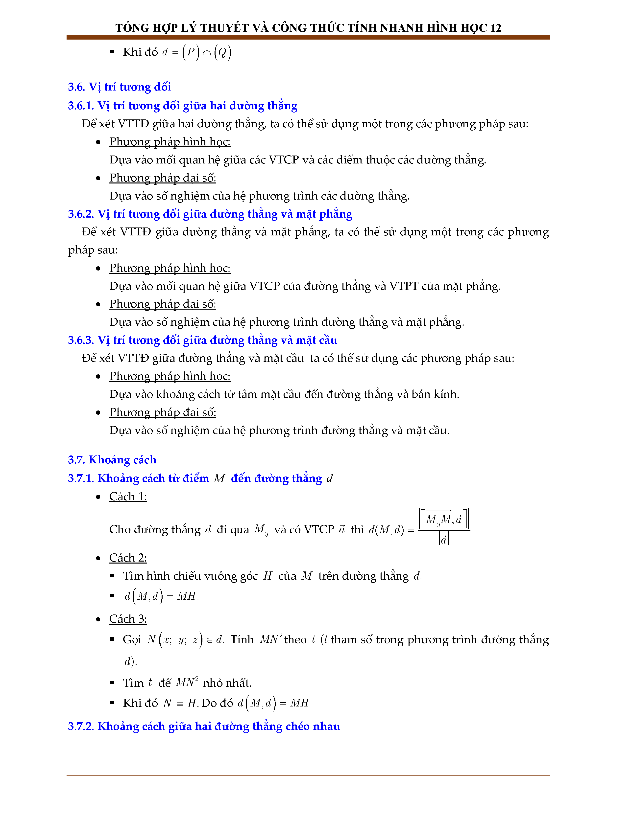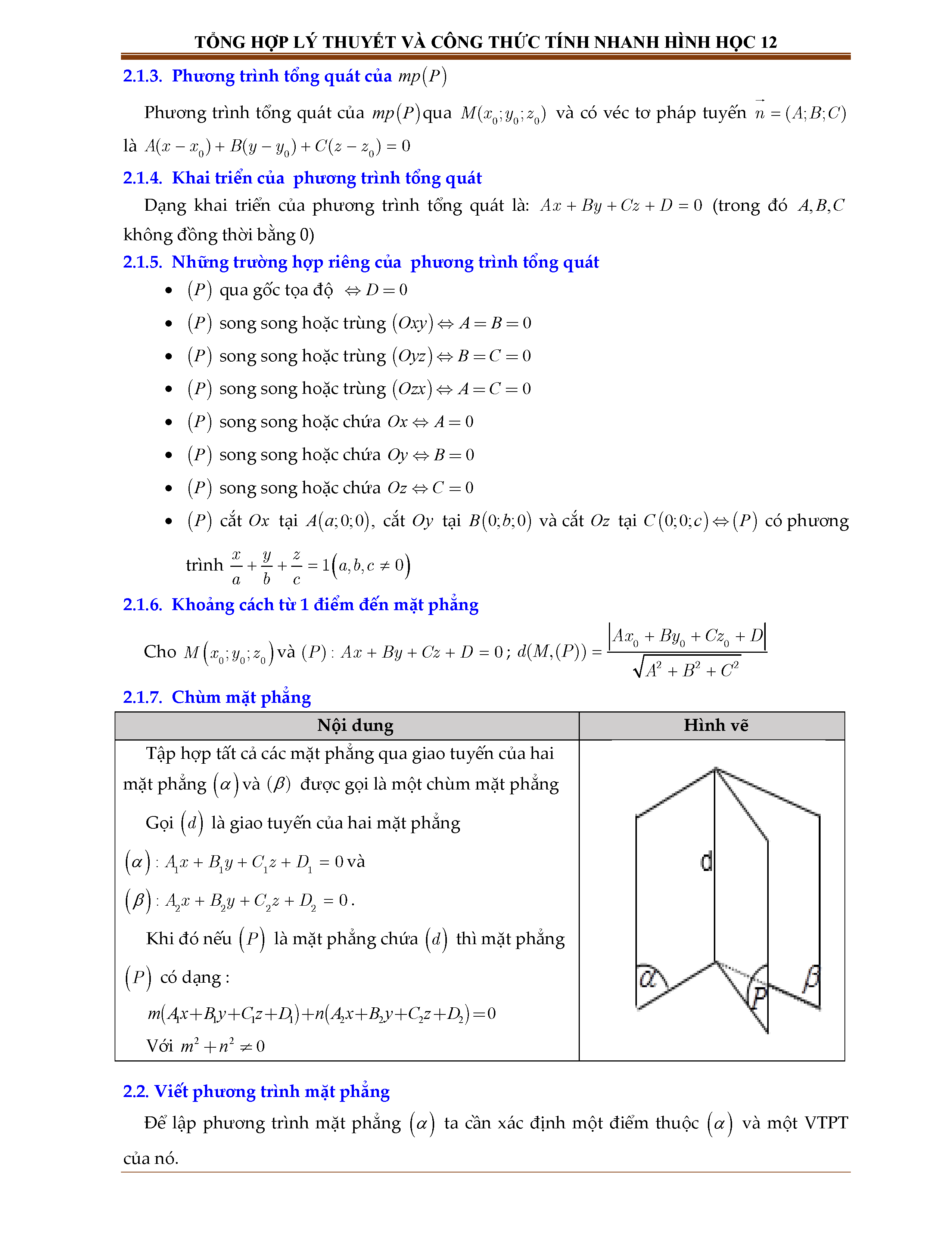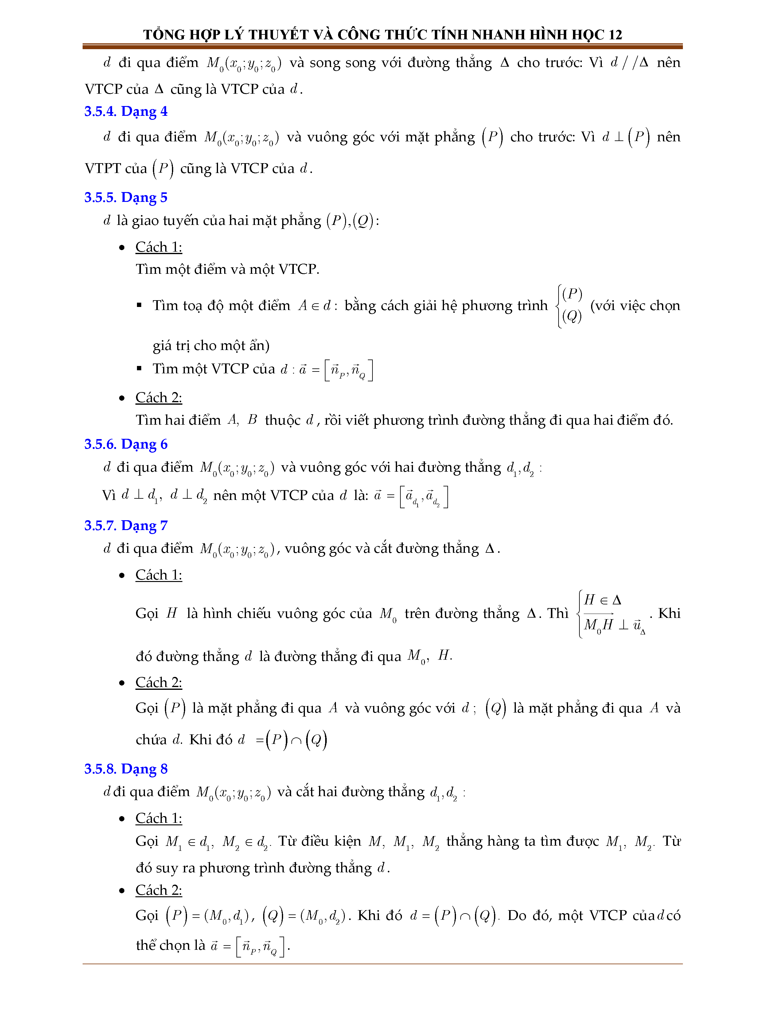 TỔNG HỢP CÔNG THỨC TÍNH NHANH VÀ LÝ THUYẾT HÌNH HỌC 12