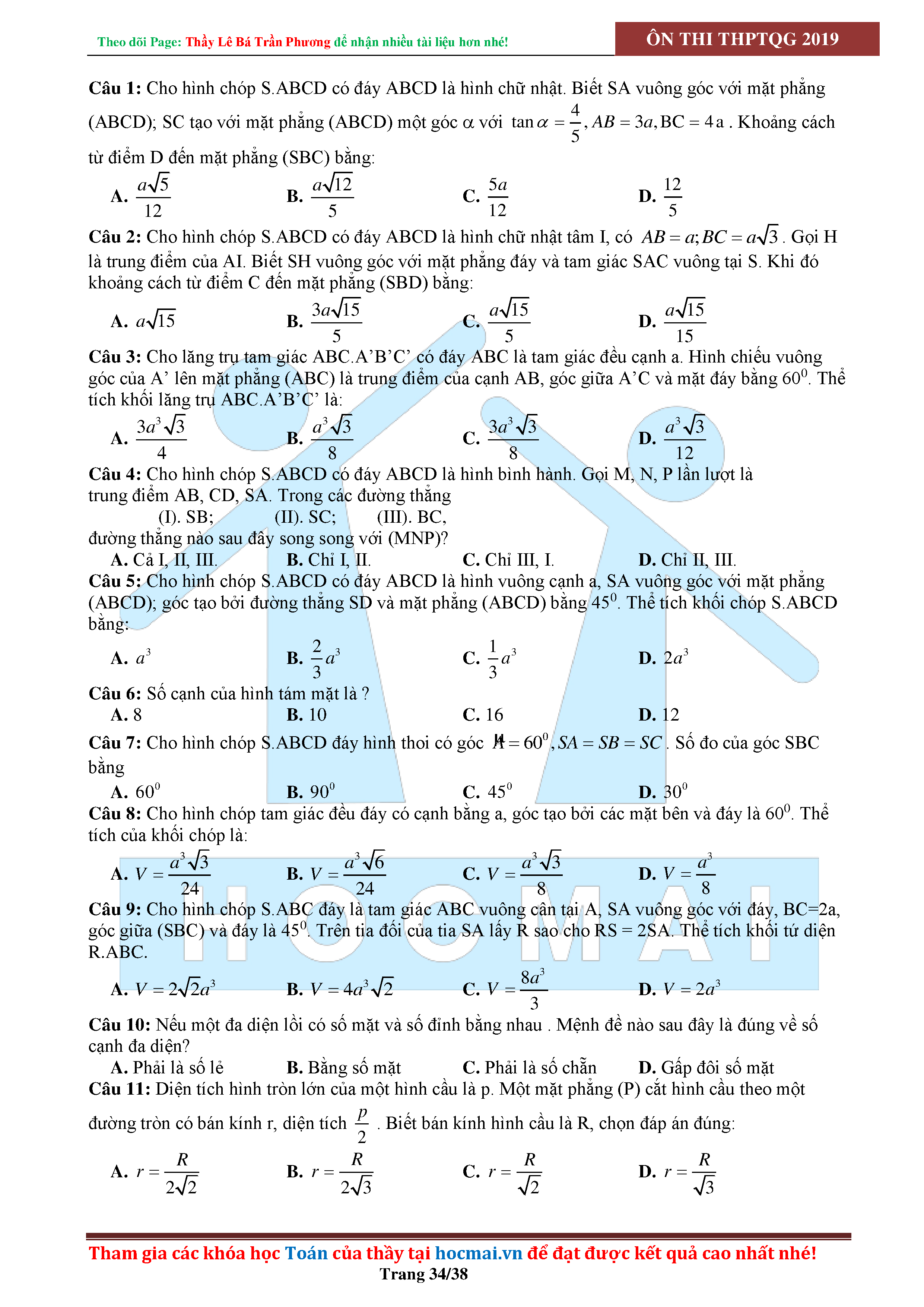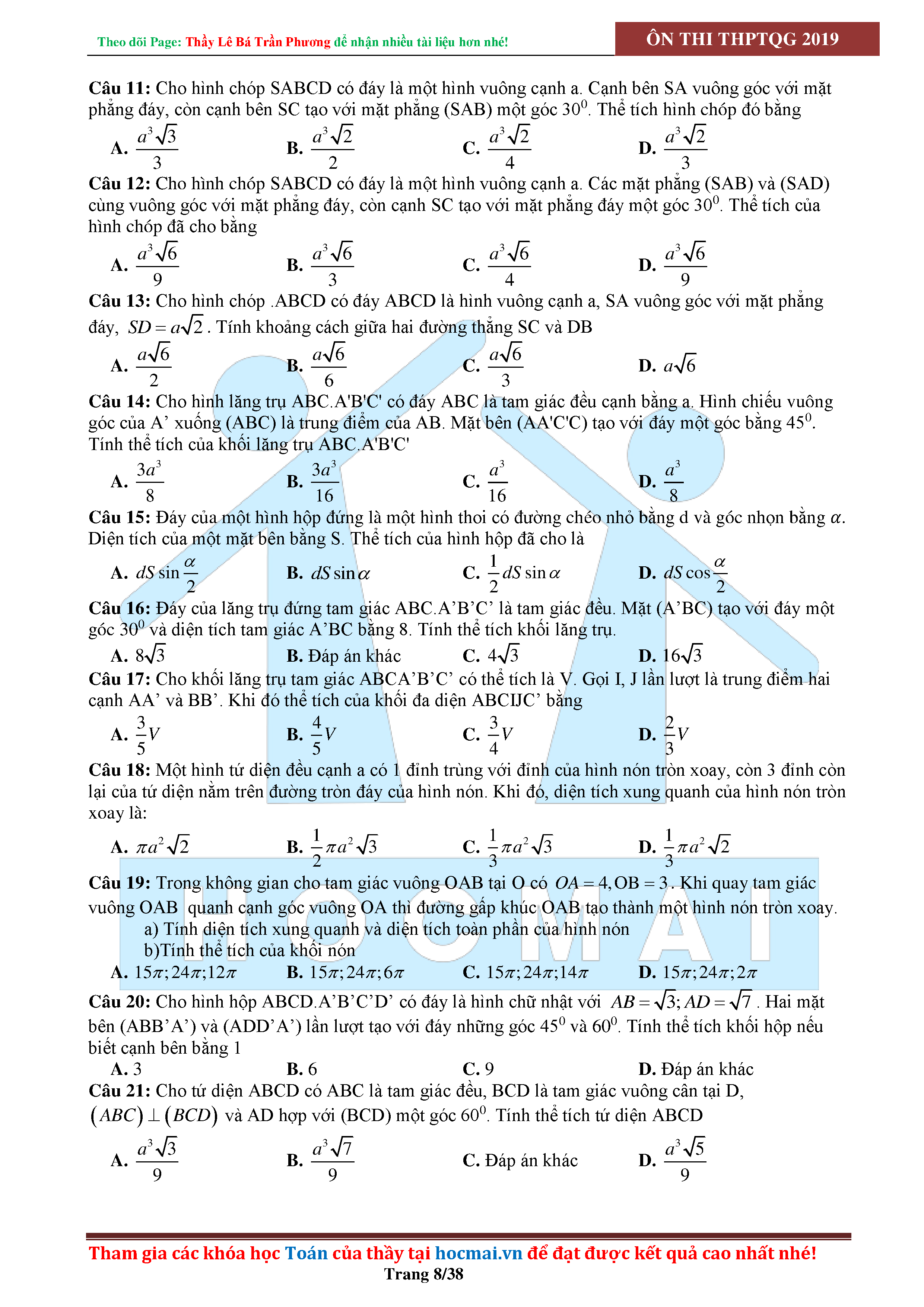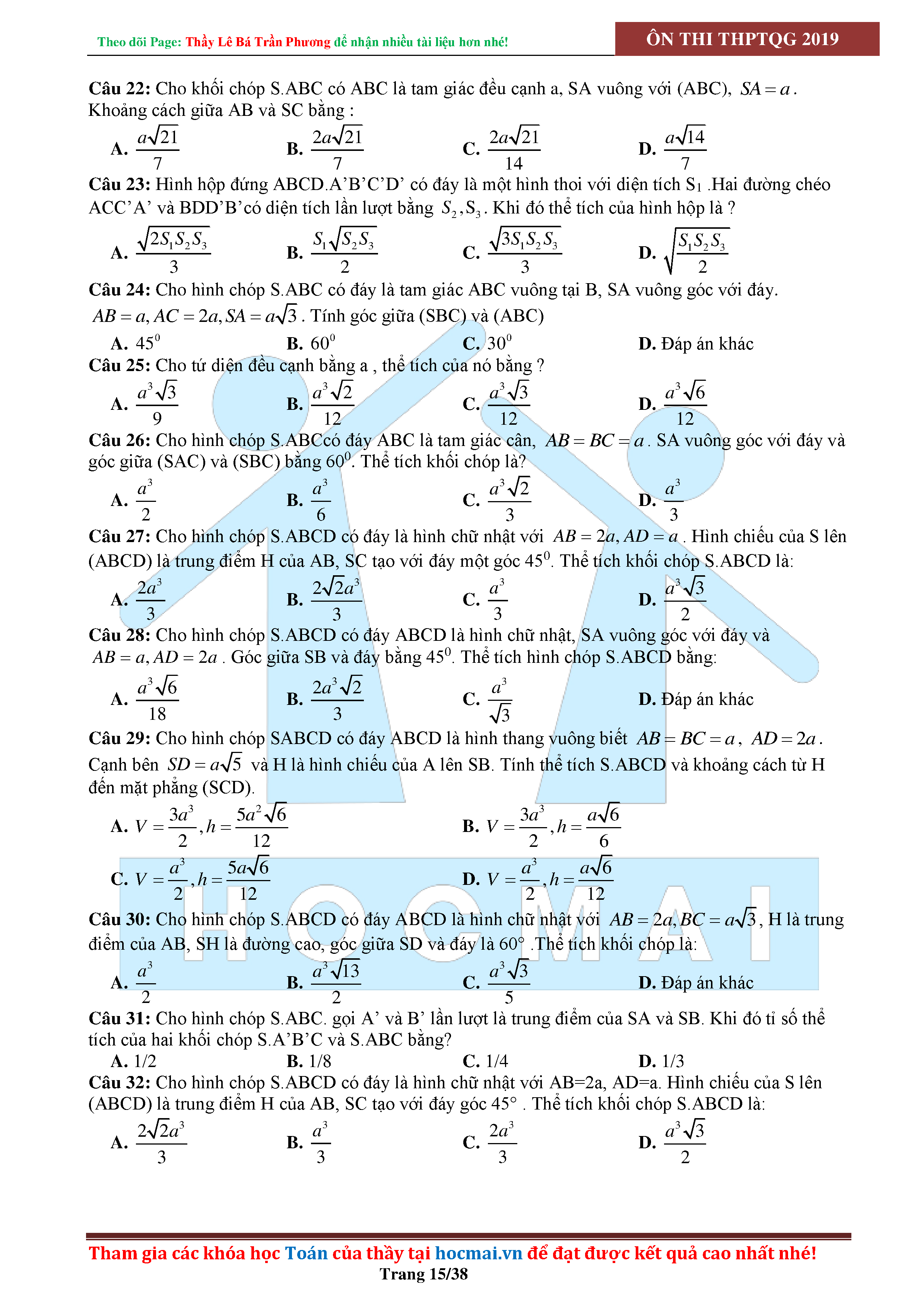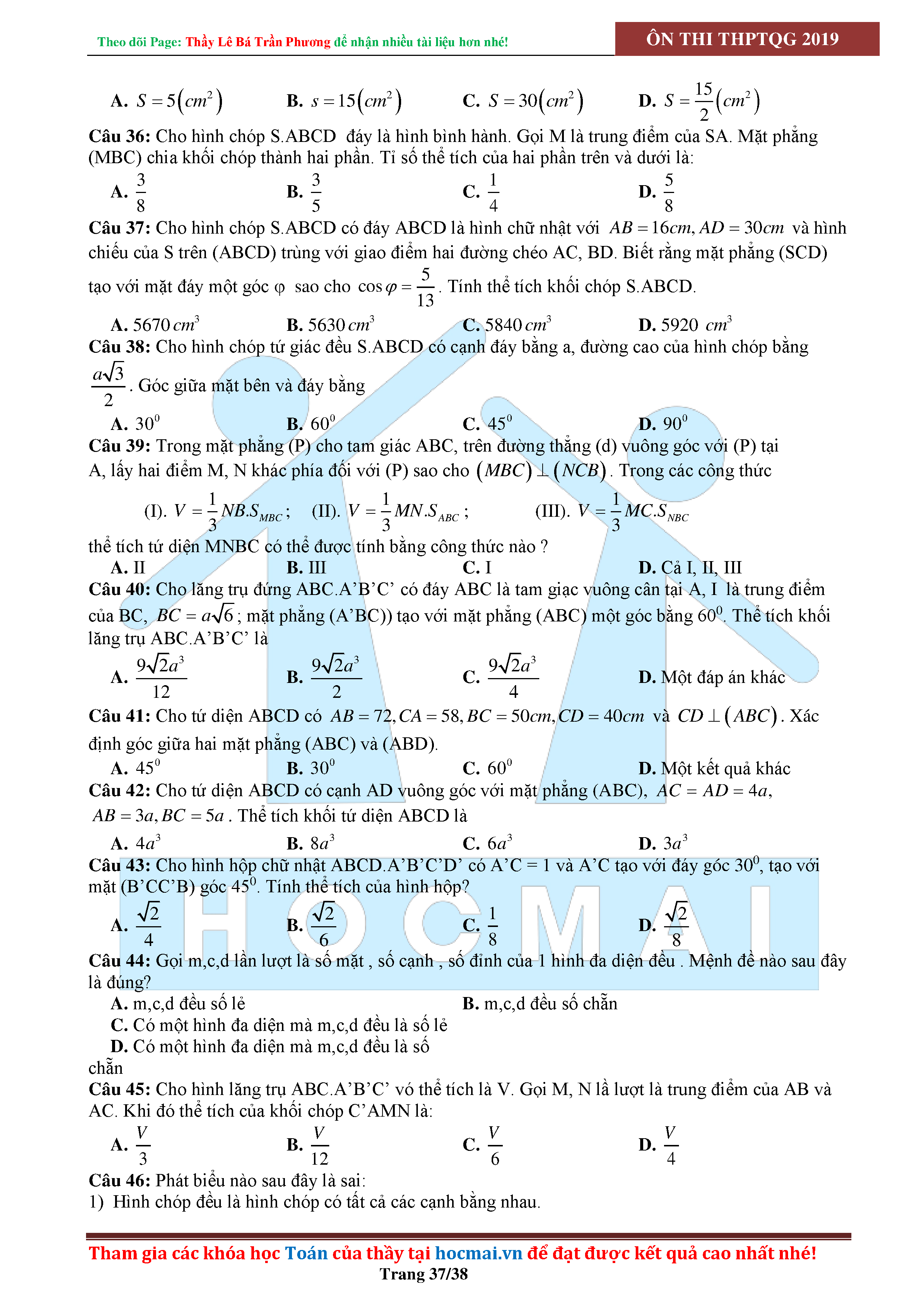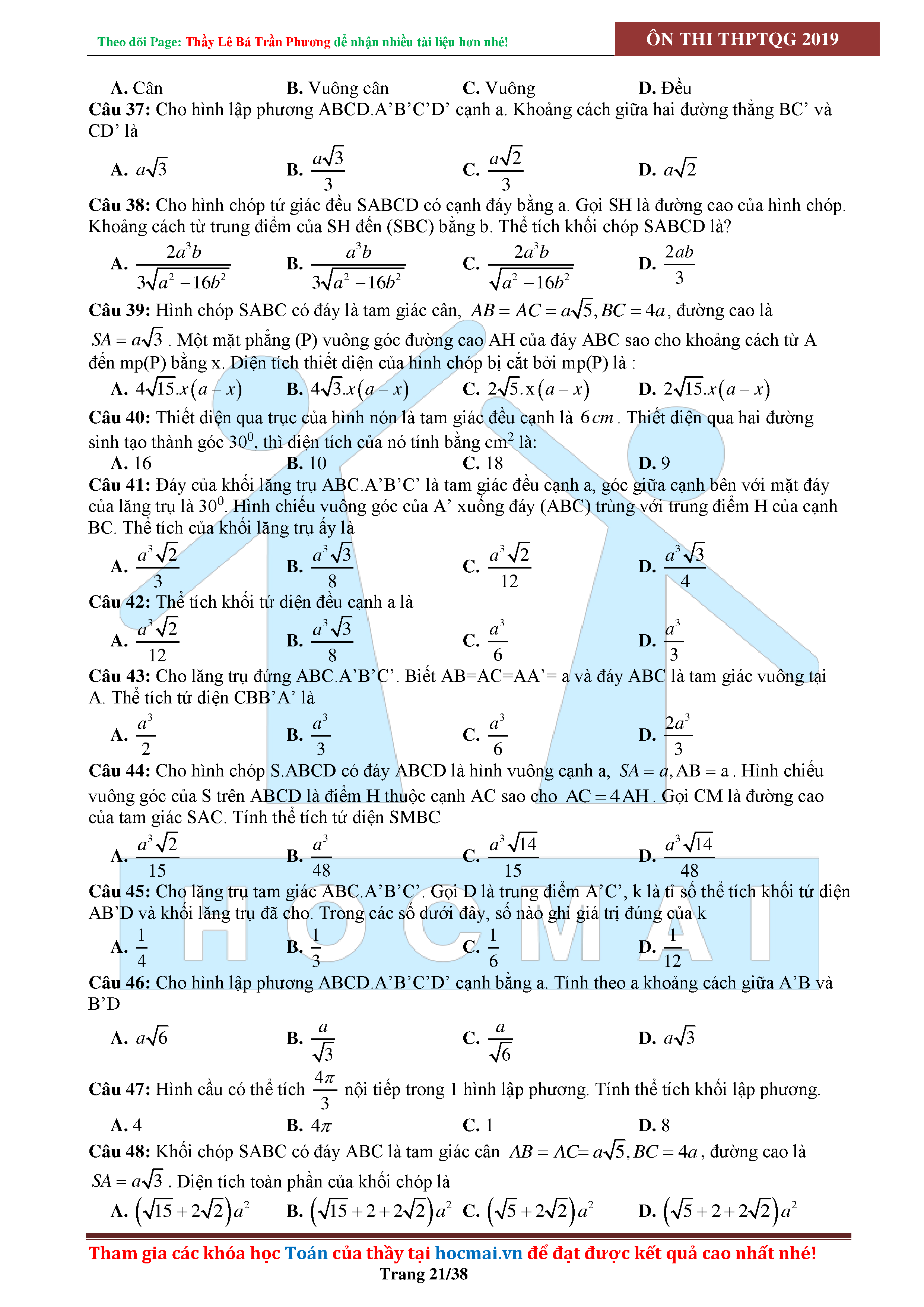 TUYỂN TẬP 350 CÂU HỎI TRẮC NGHIỆM HÌNH HỌC KHÔNG GIAN - CÓ ĐÁP ÁN