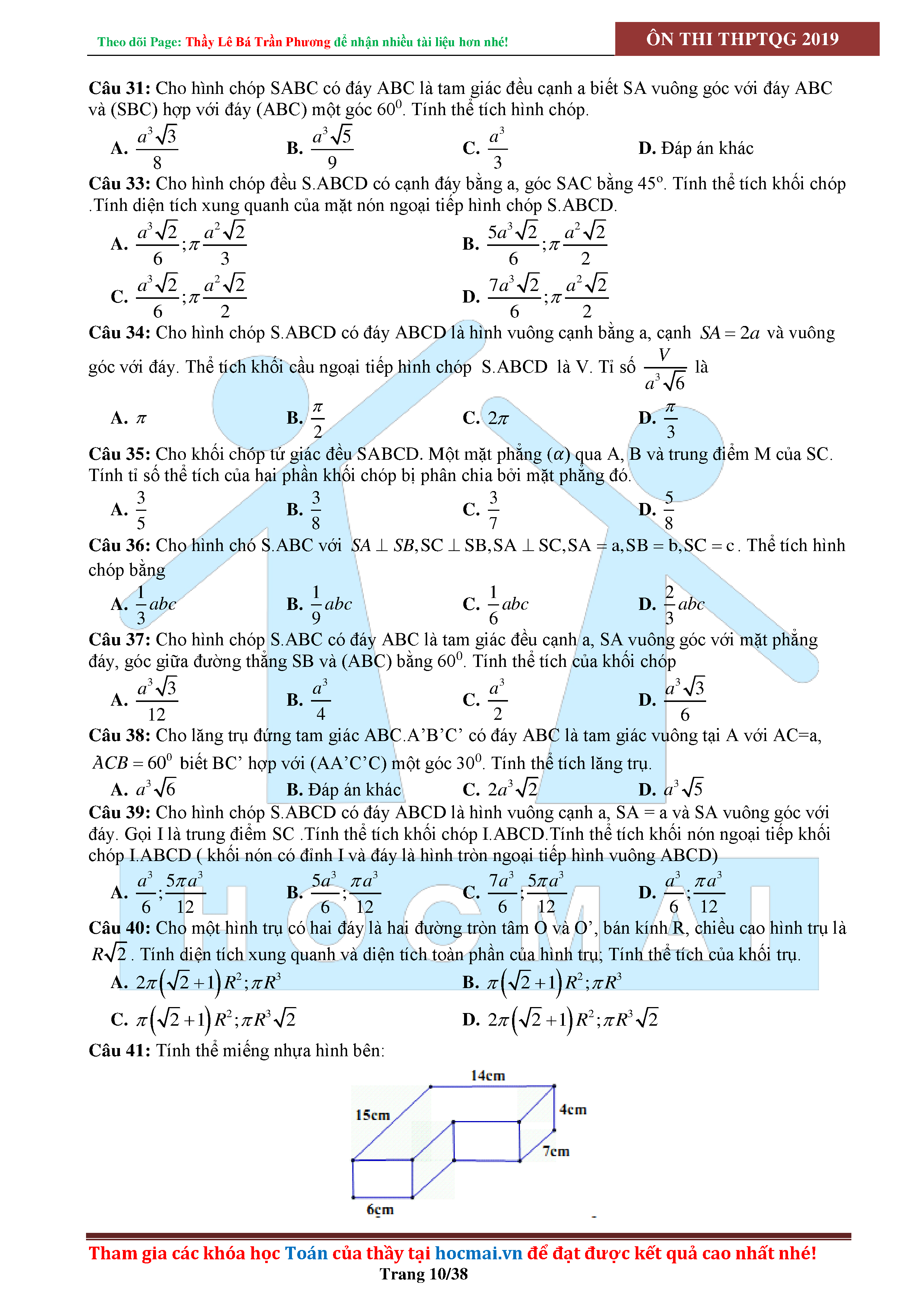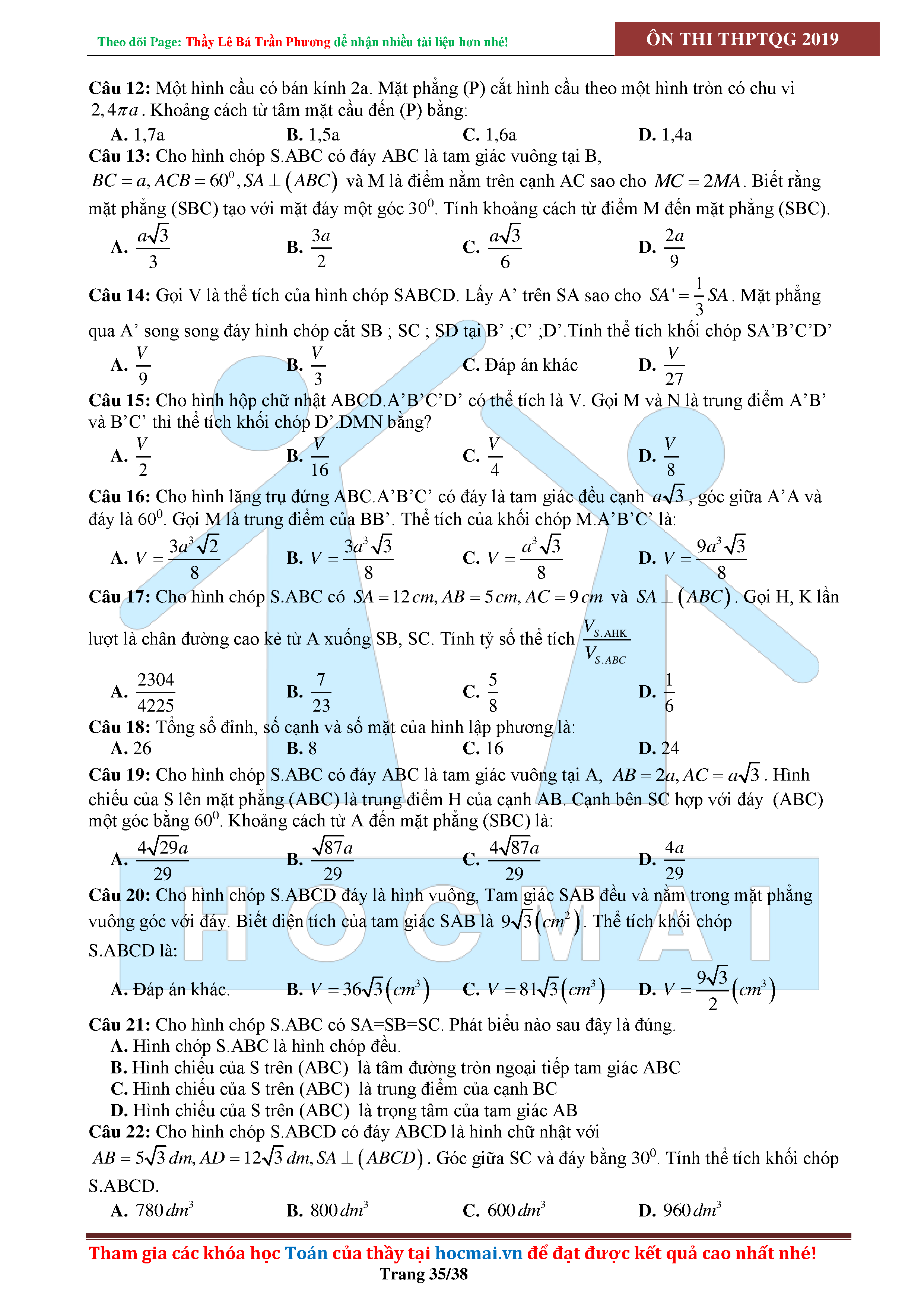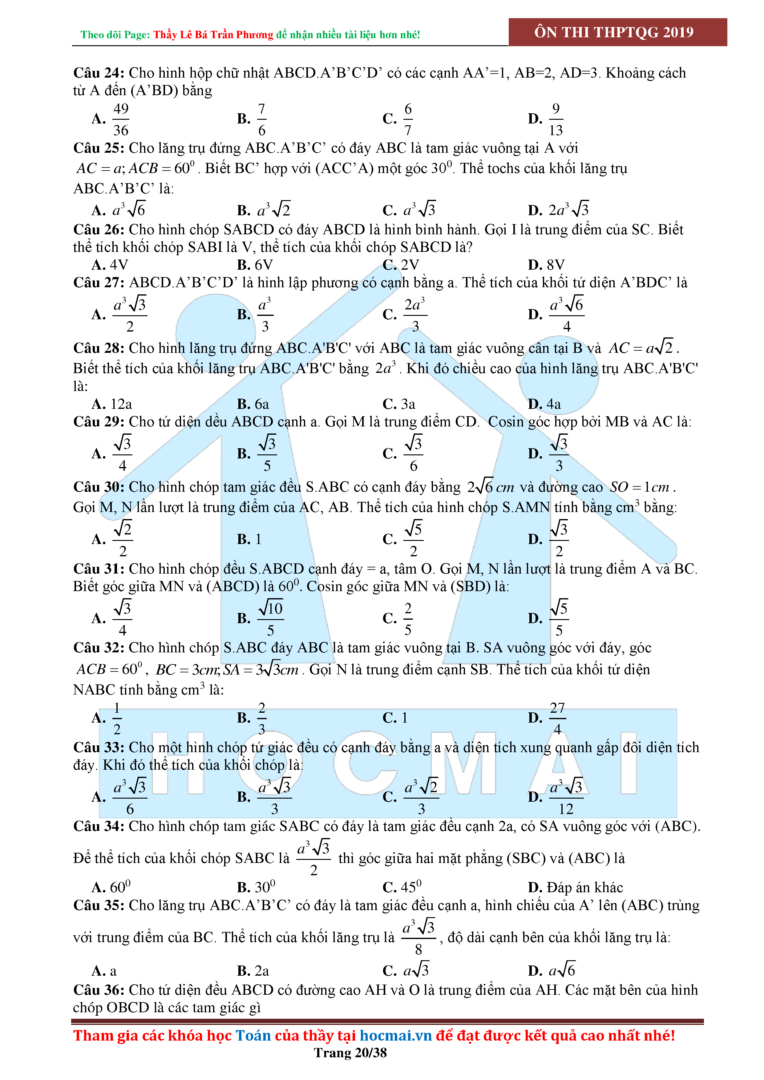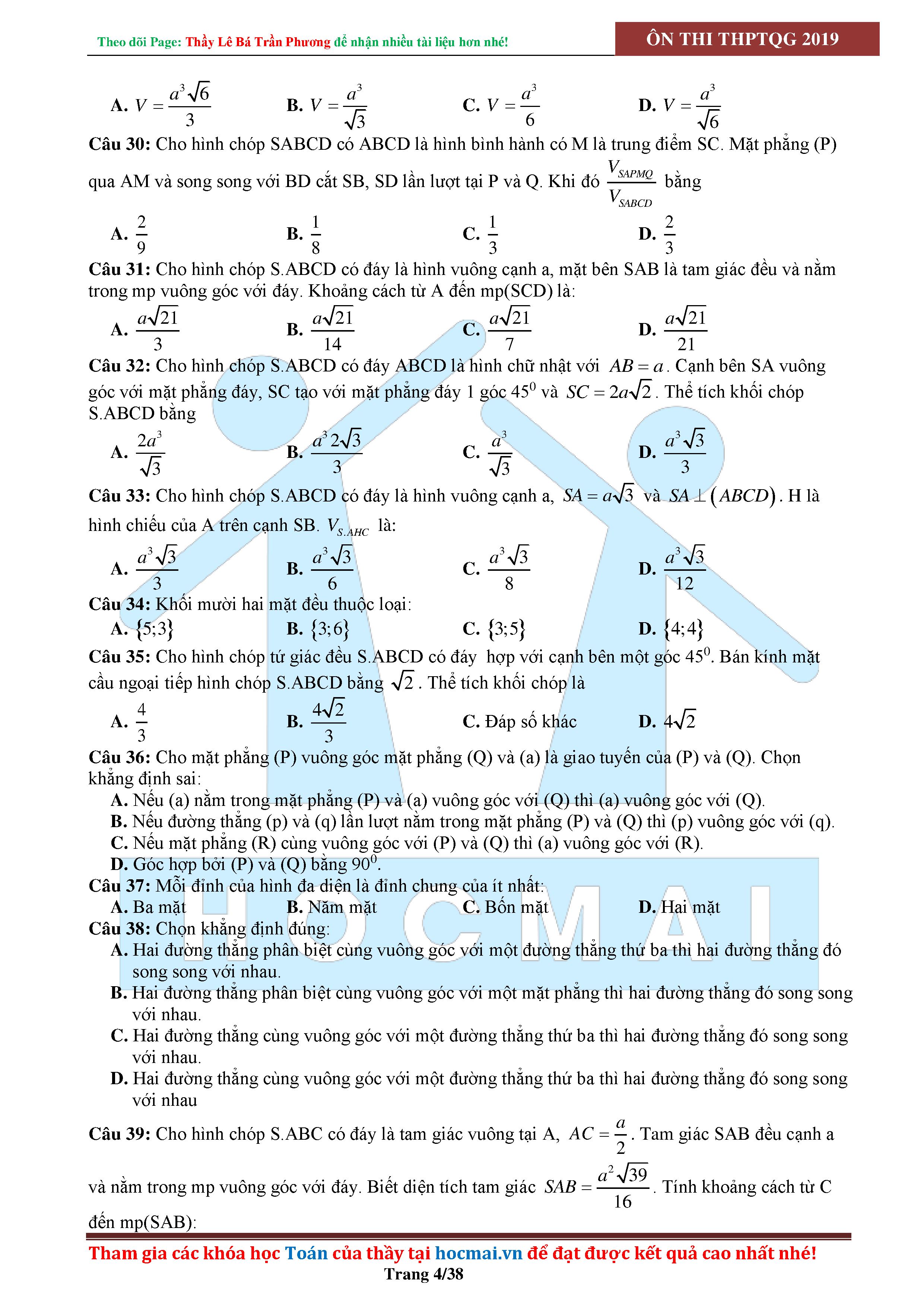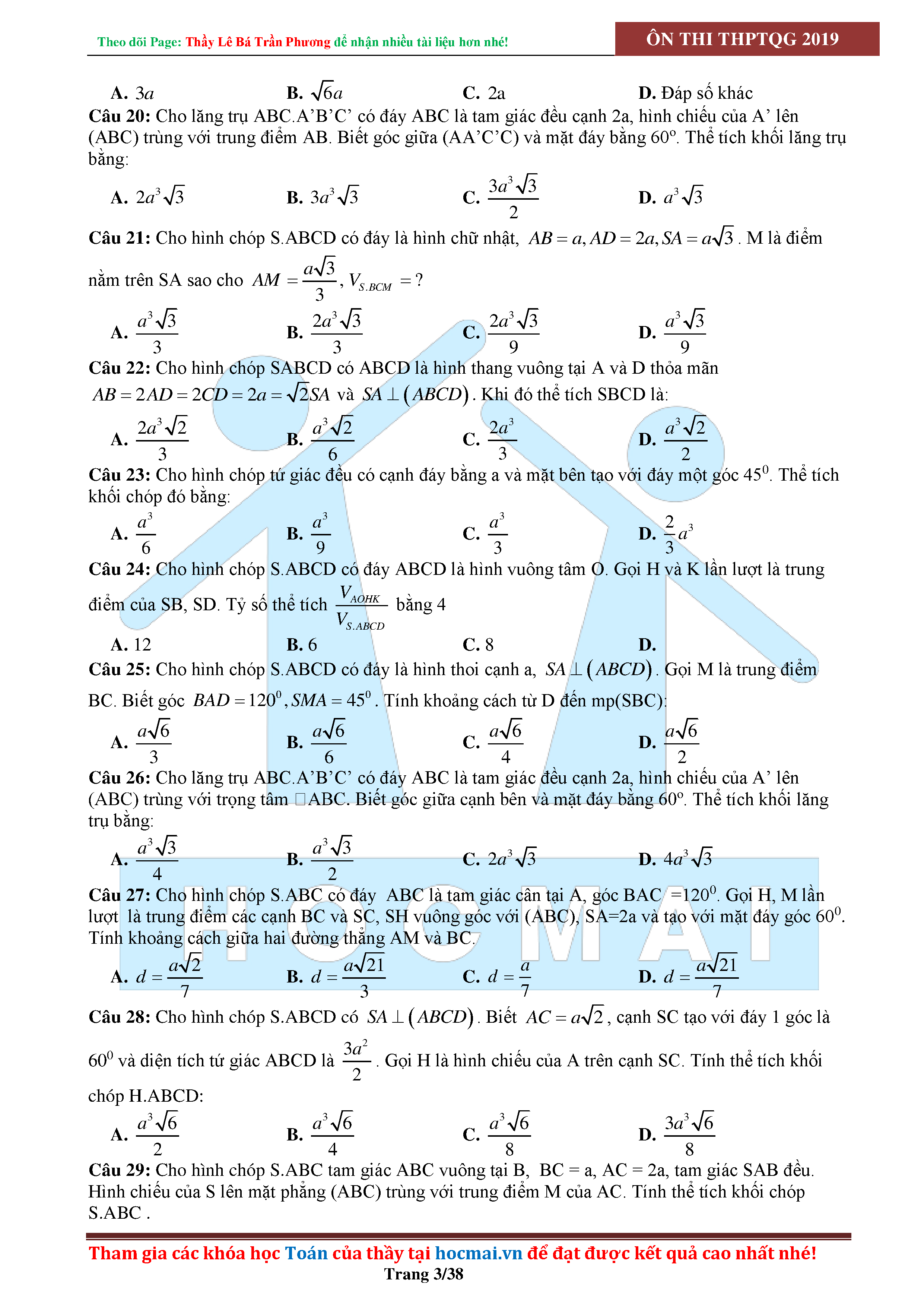 TUYỂN TẬP 350 CÂU HỎI TRẮC NGHIỆM HÌNH HỌC KHÔNG GIAN - CÓ ĐÁP ÁN