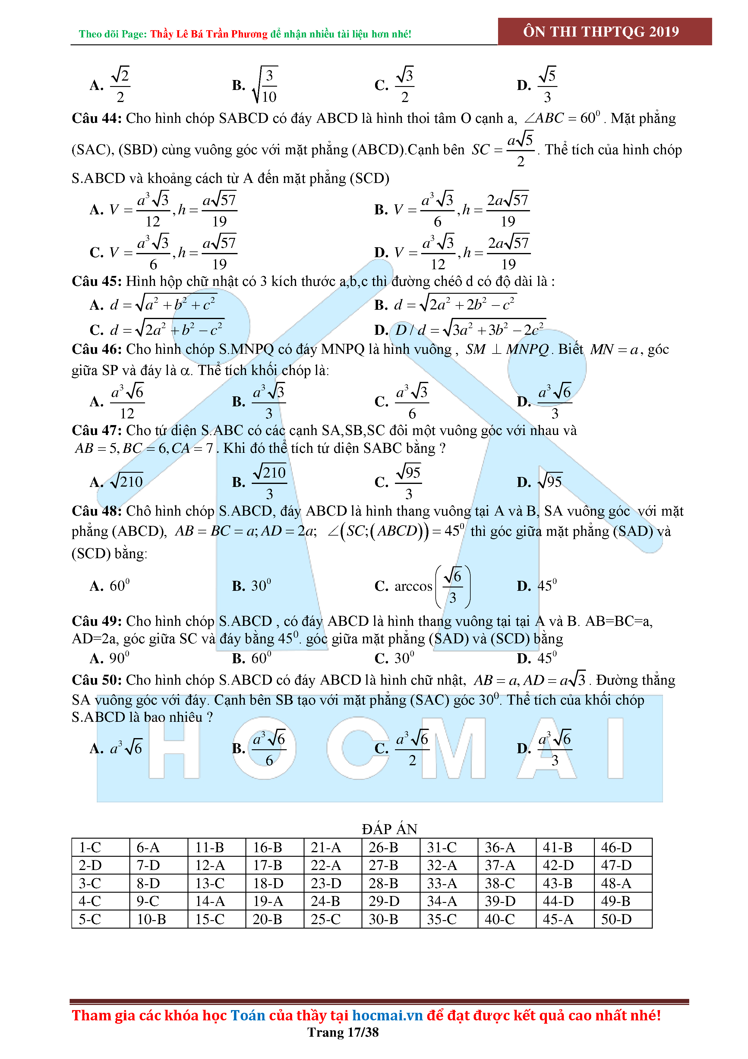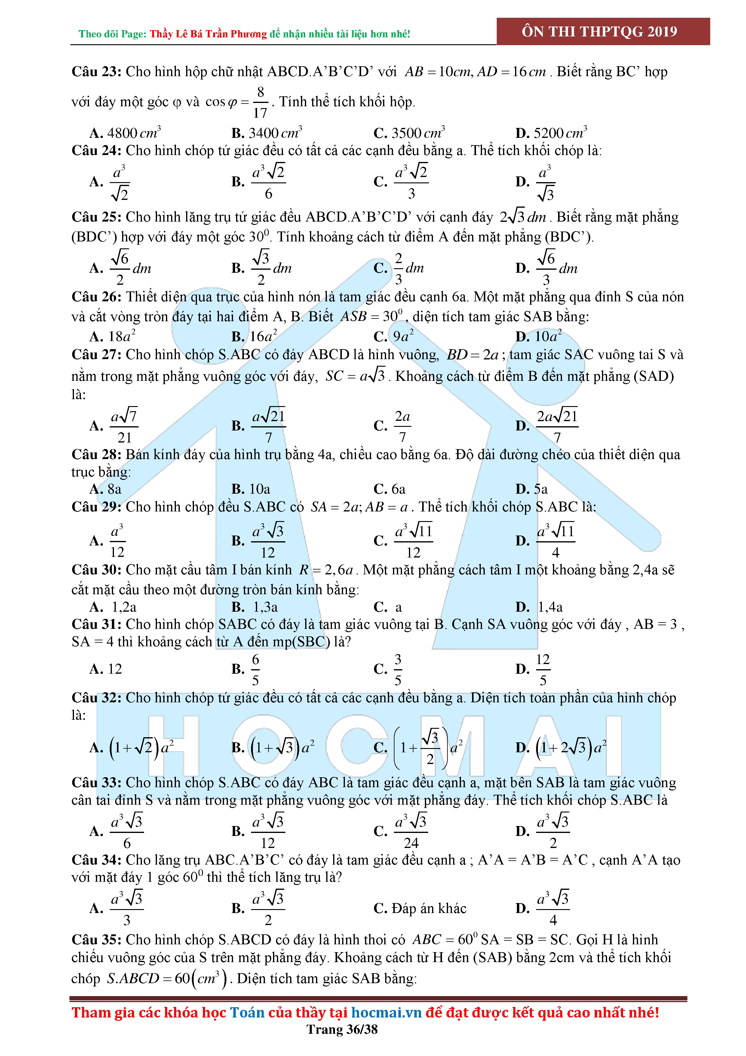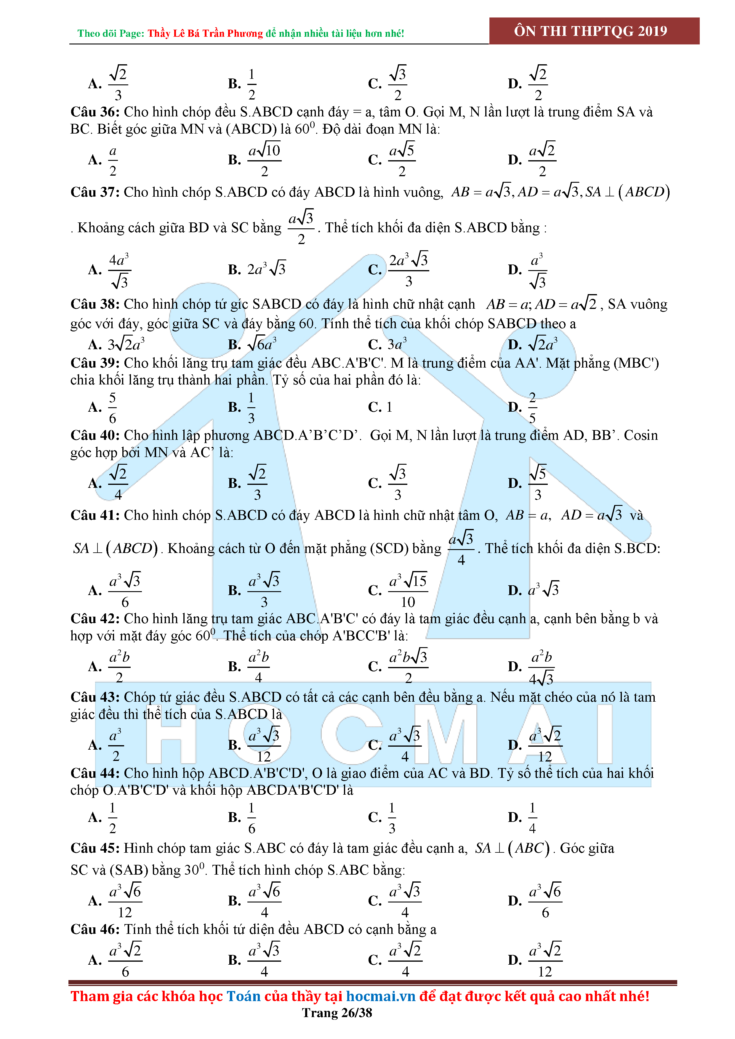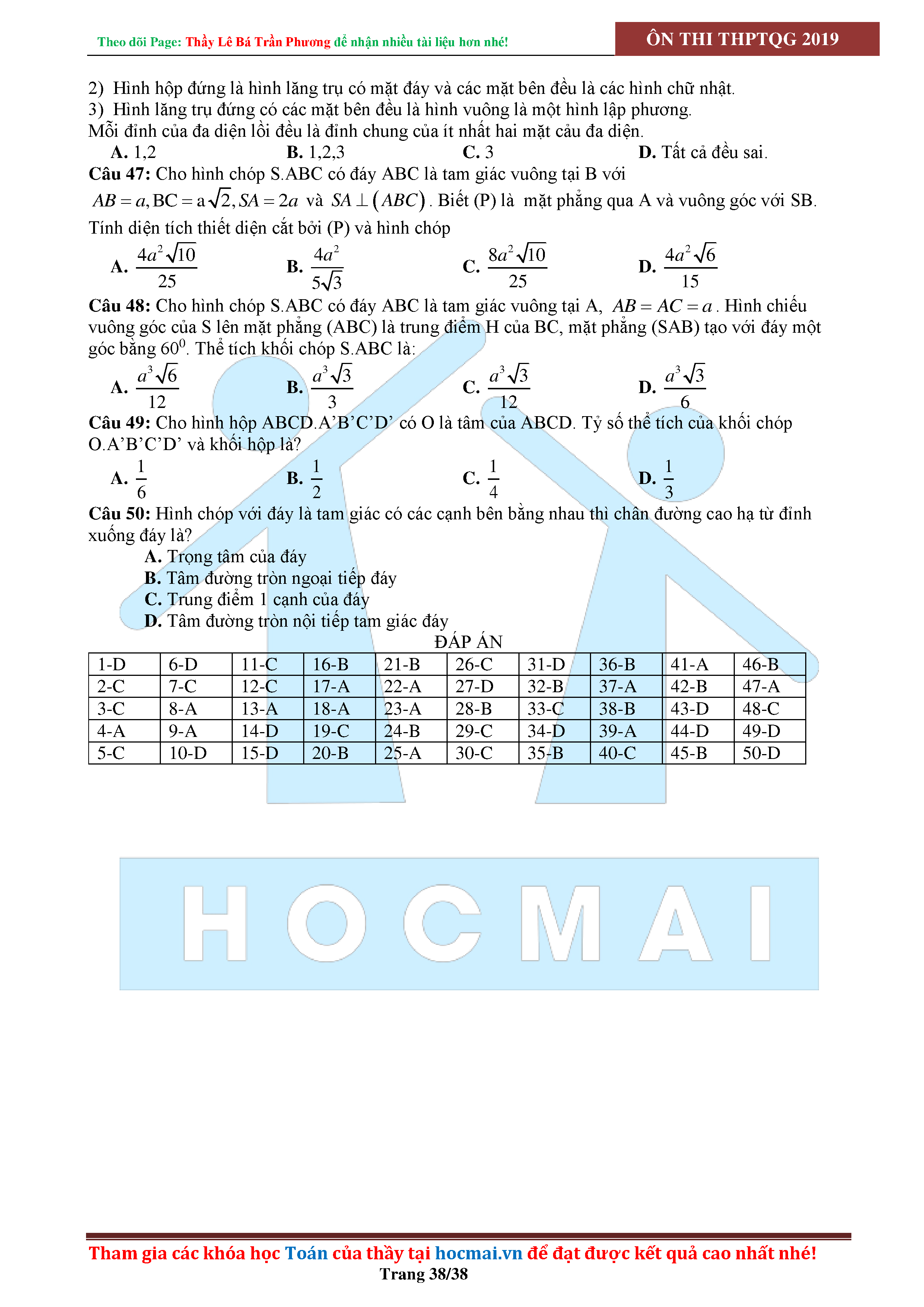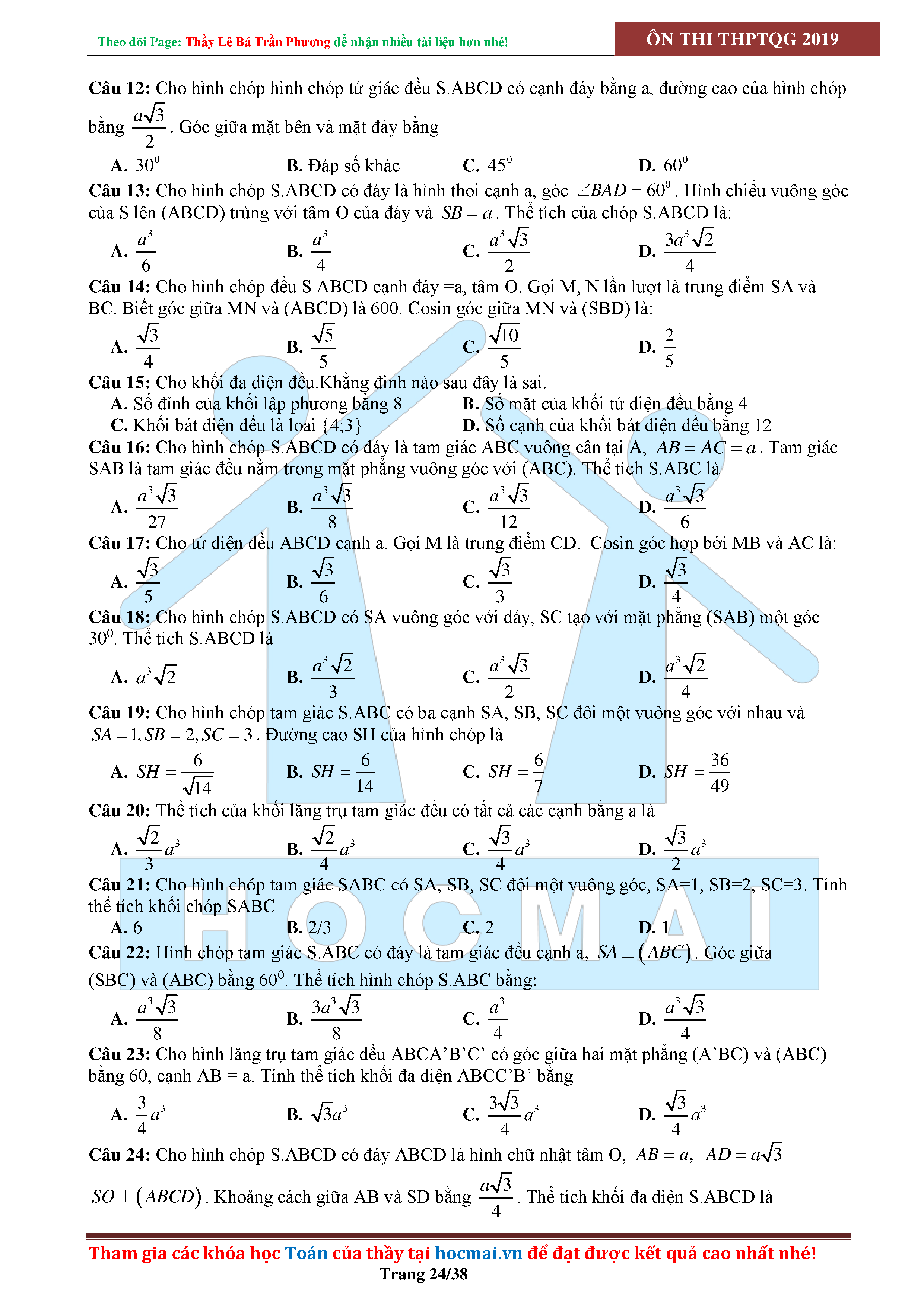 TUYỂN TẬP 350 CÂU HỎI TRẮC NGHIỆM HÌNH HỌC KHÔNG GIAN - CÓ ĐÁP ÁN