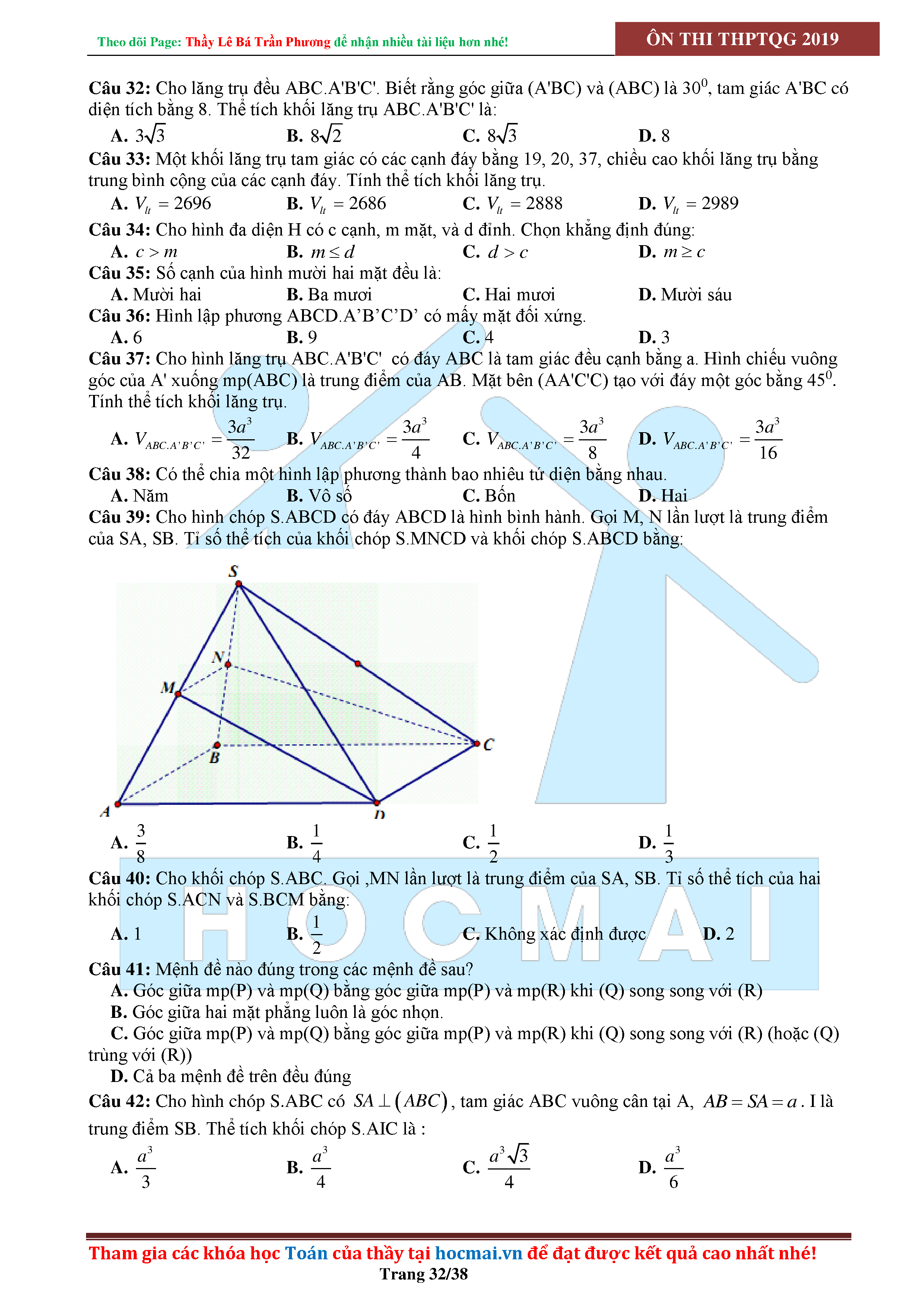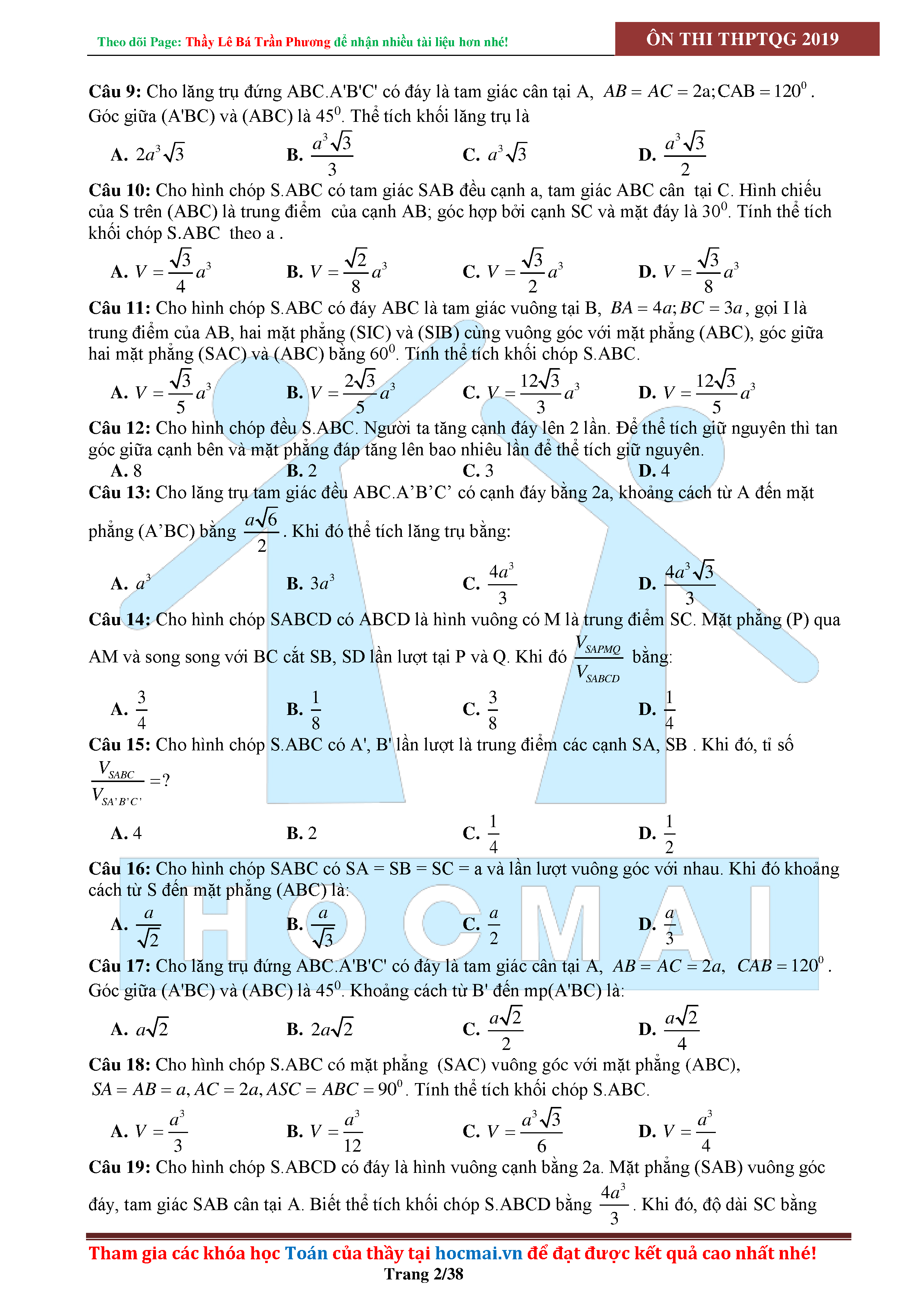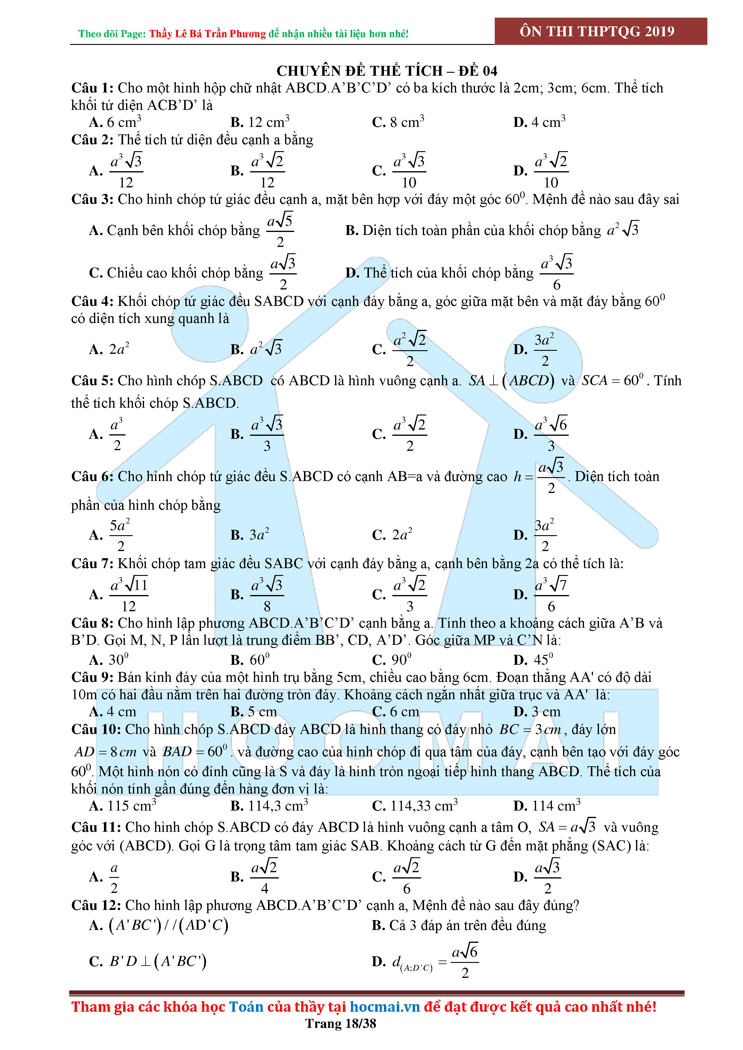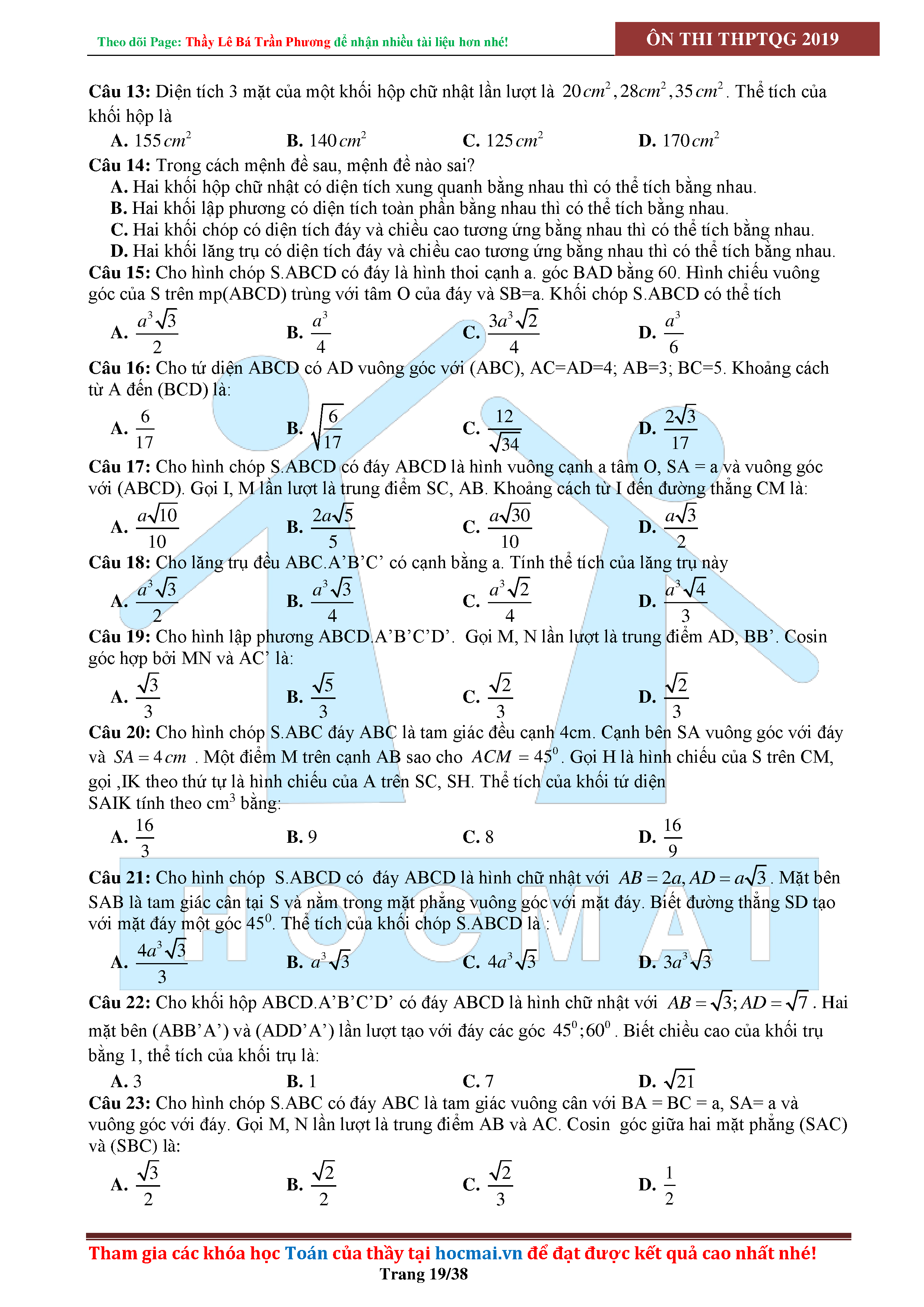 TUYỂN TẬP 350 CÂU HỎI TRẮC NGHIỆM HÌNH HỌC KHÔNG GIAN - CÓ ĐÁP ÁN