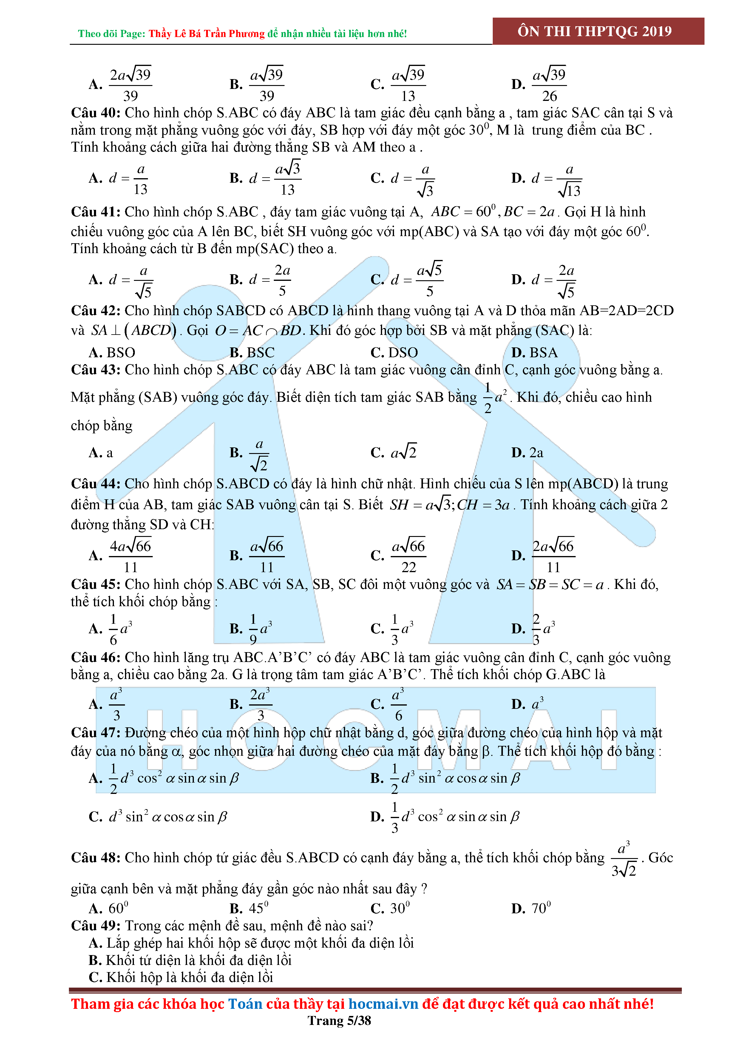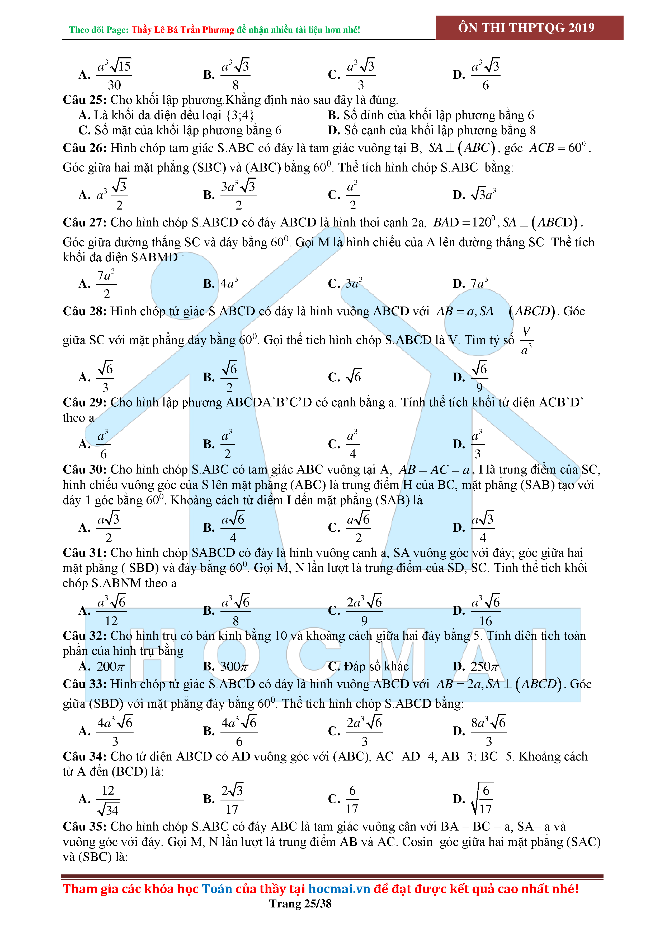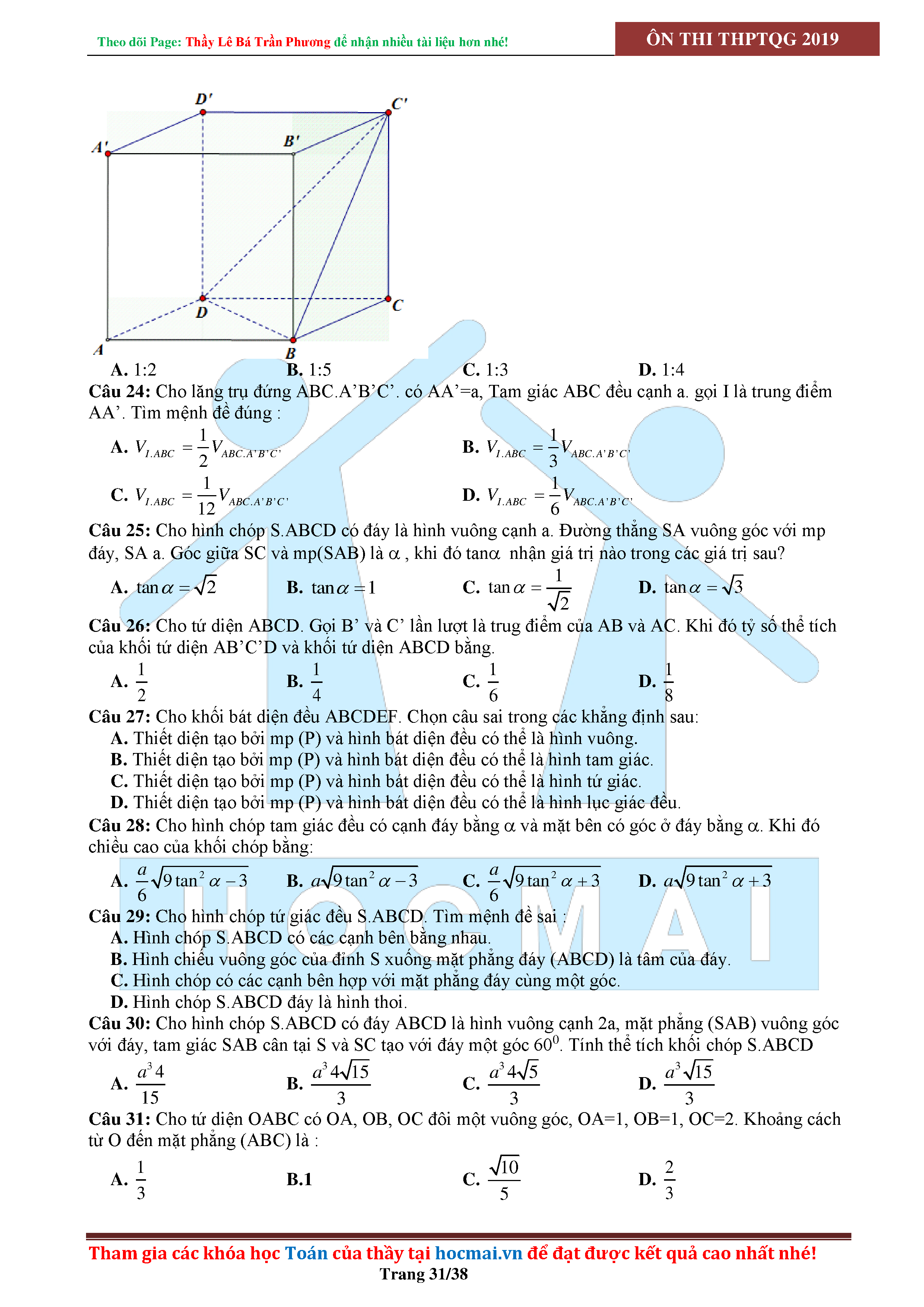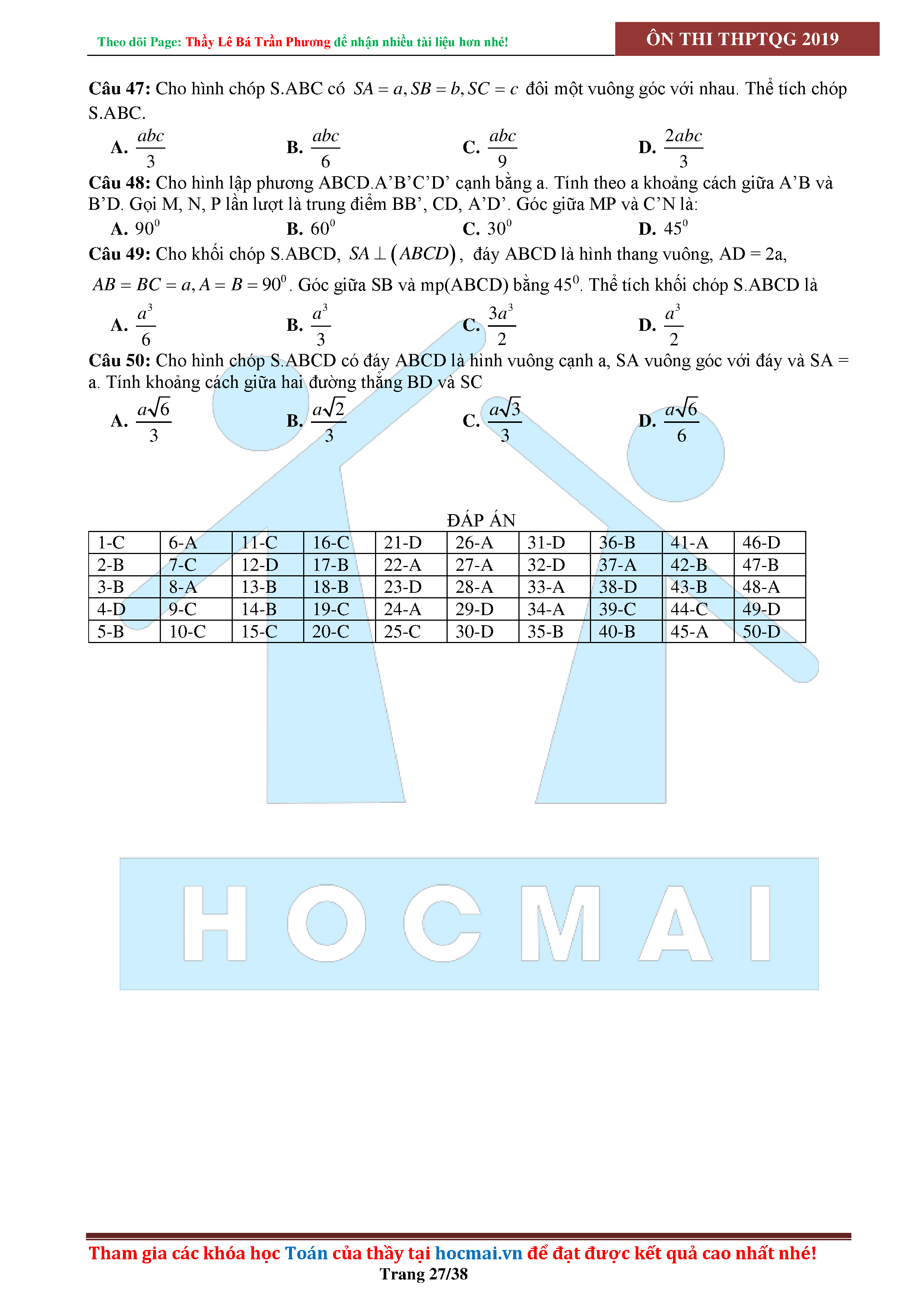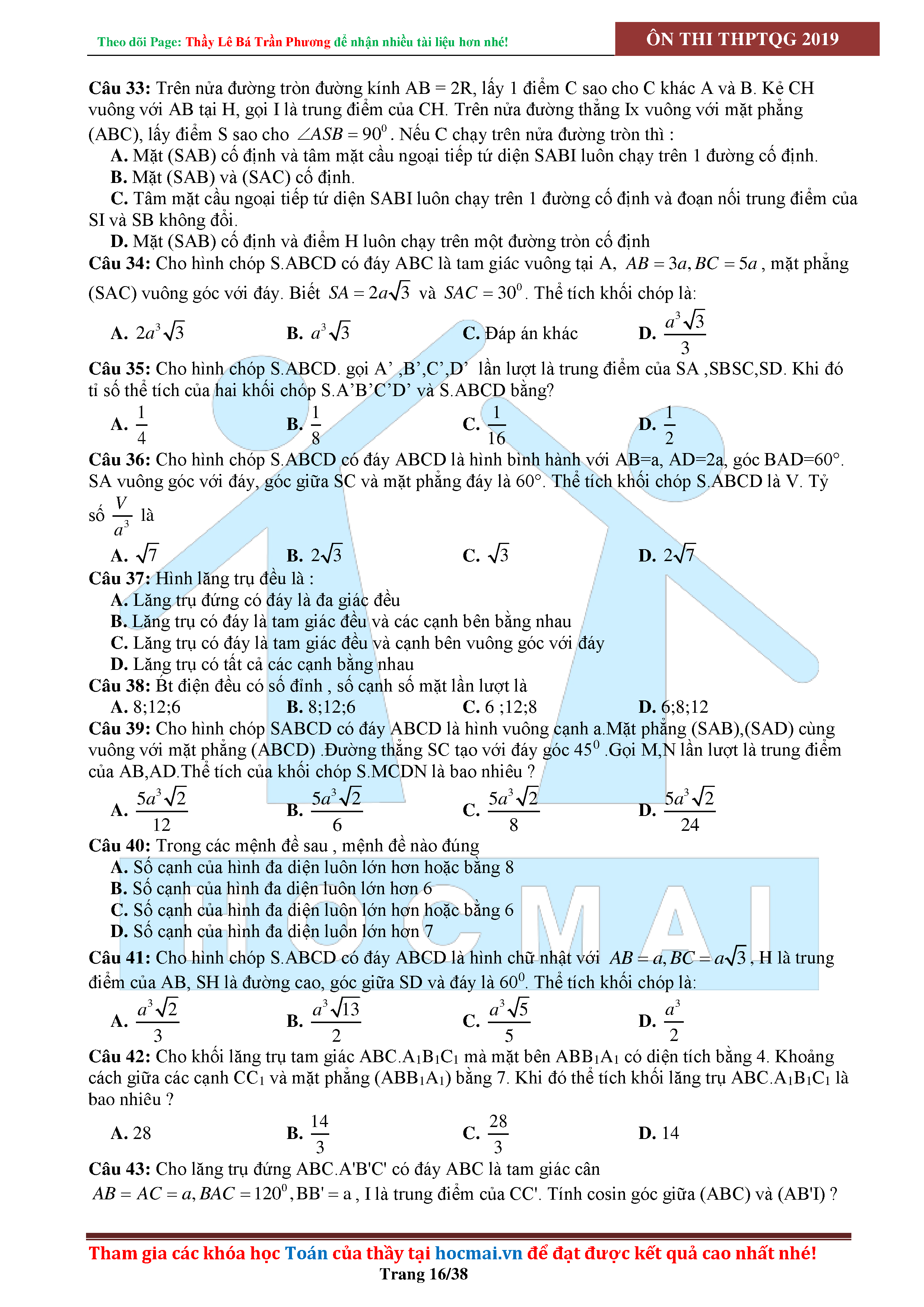 TUYỂN TẬP 350 CÂU HỎI TRẮC NGHIỆM HÌNH HỌC KHÔNG GIAN - CÓ ĐÁP ÁN