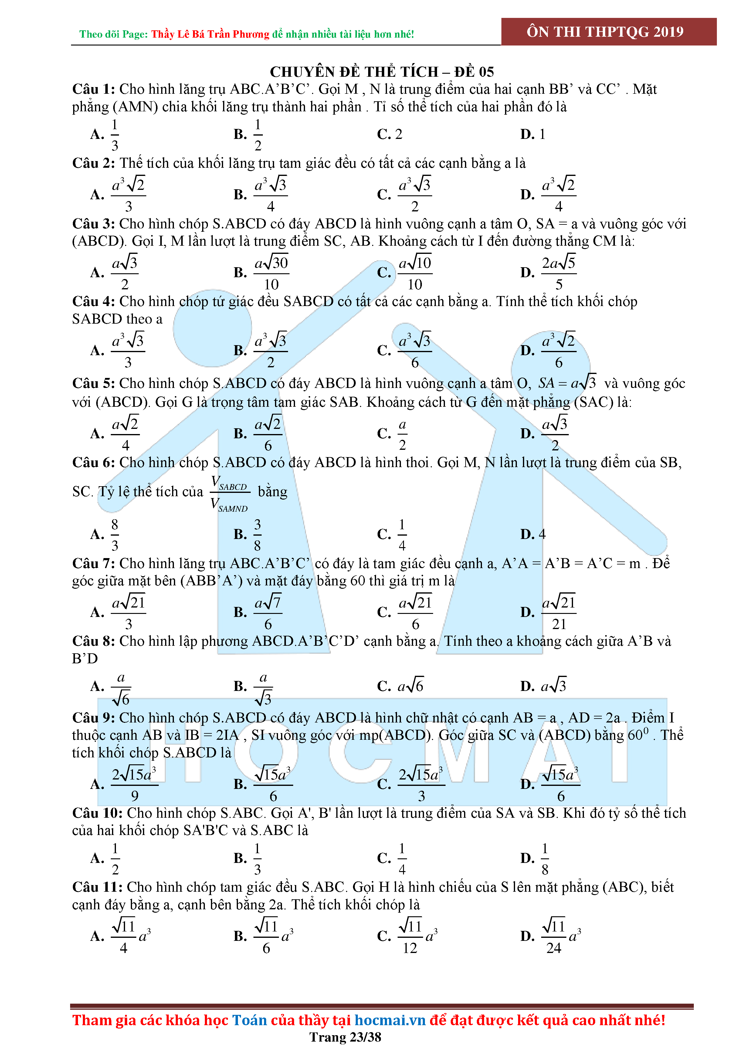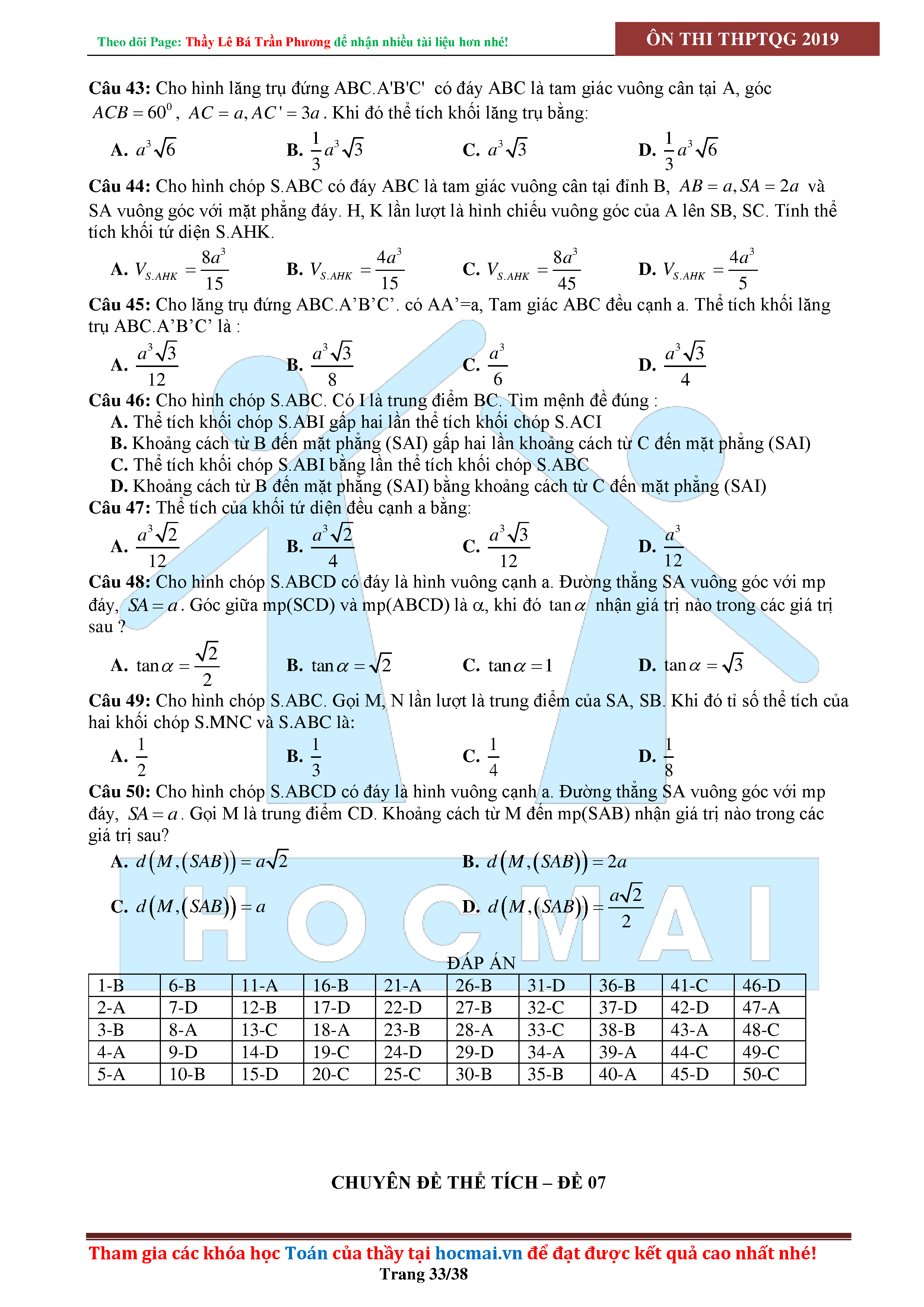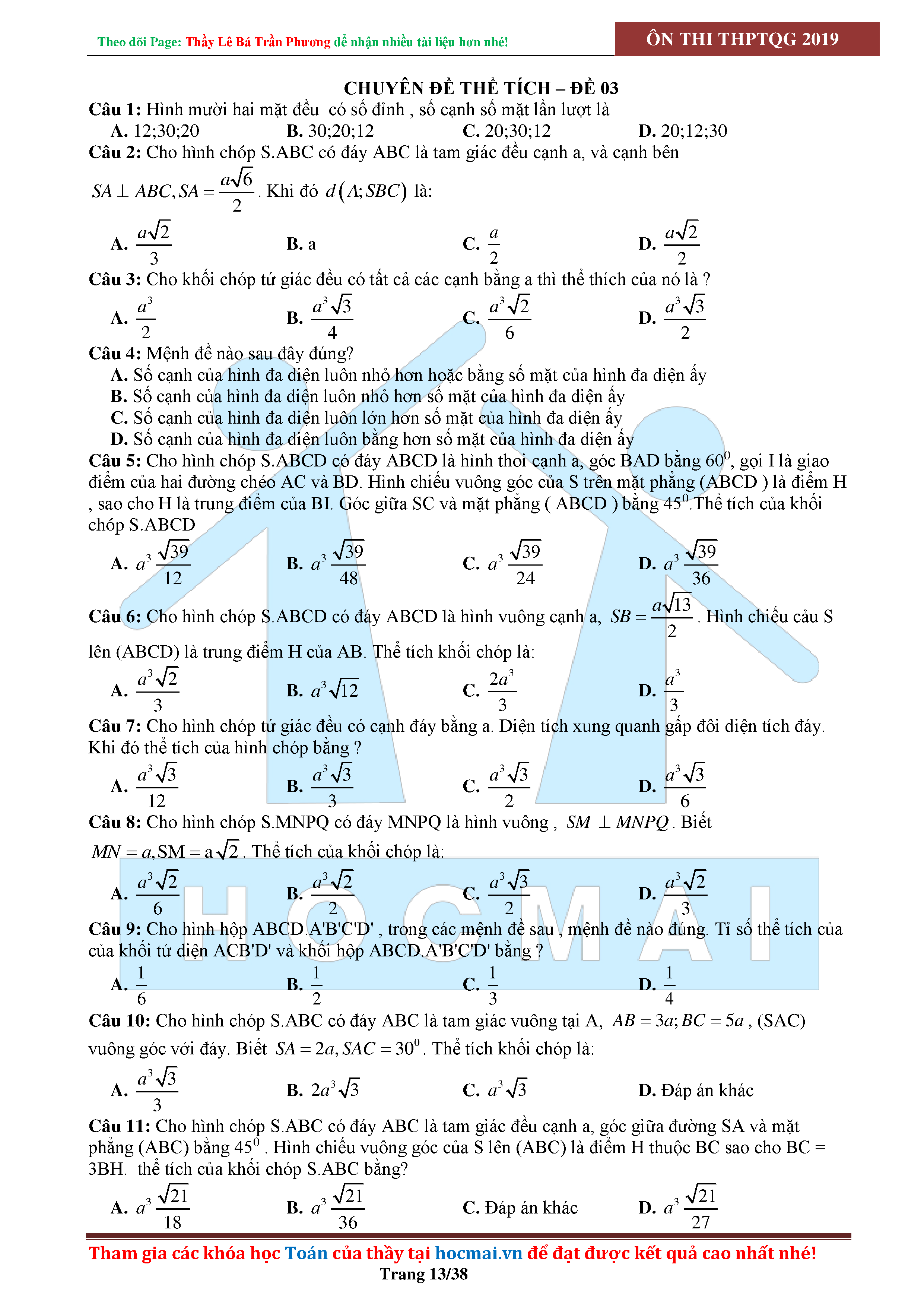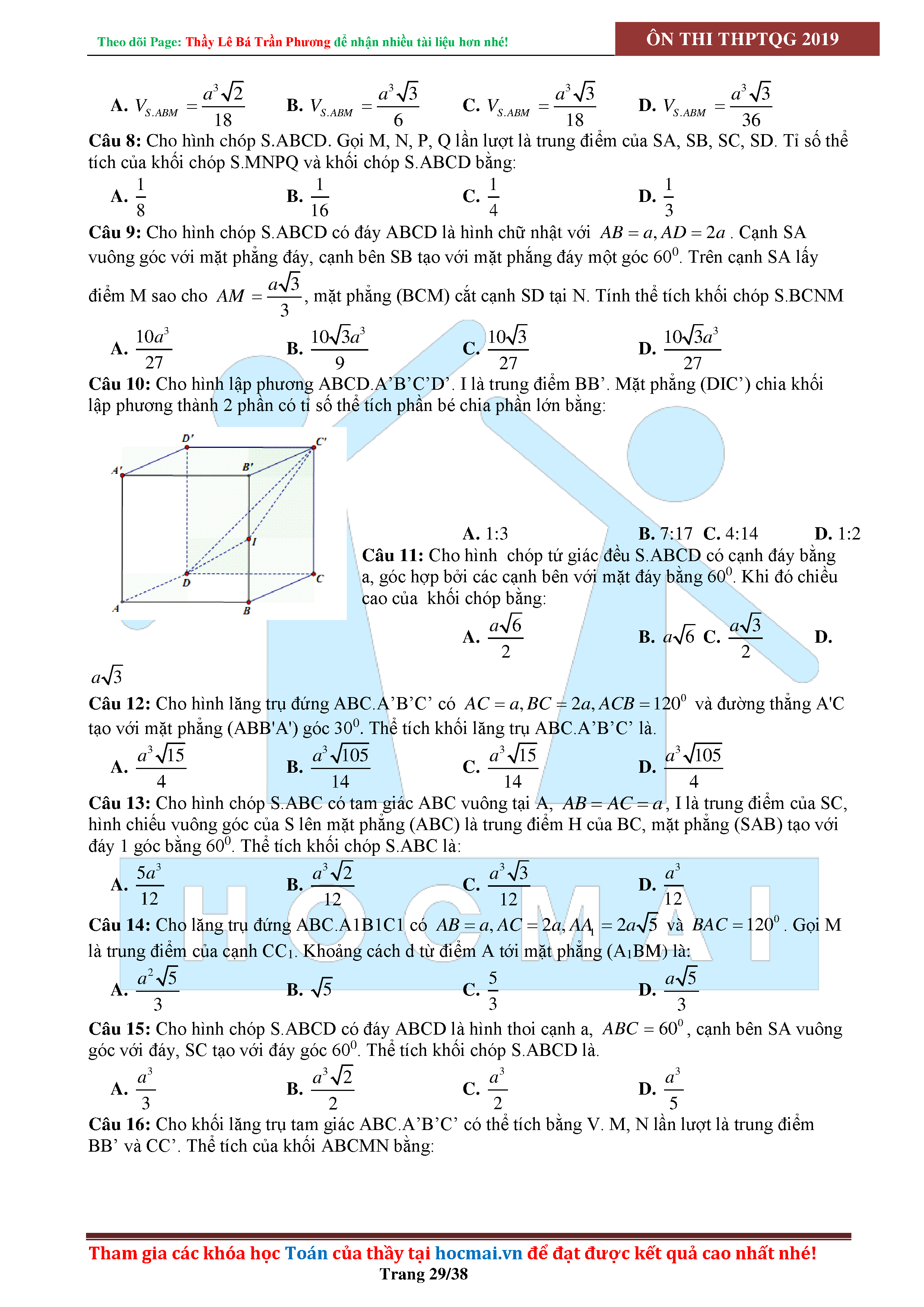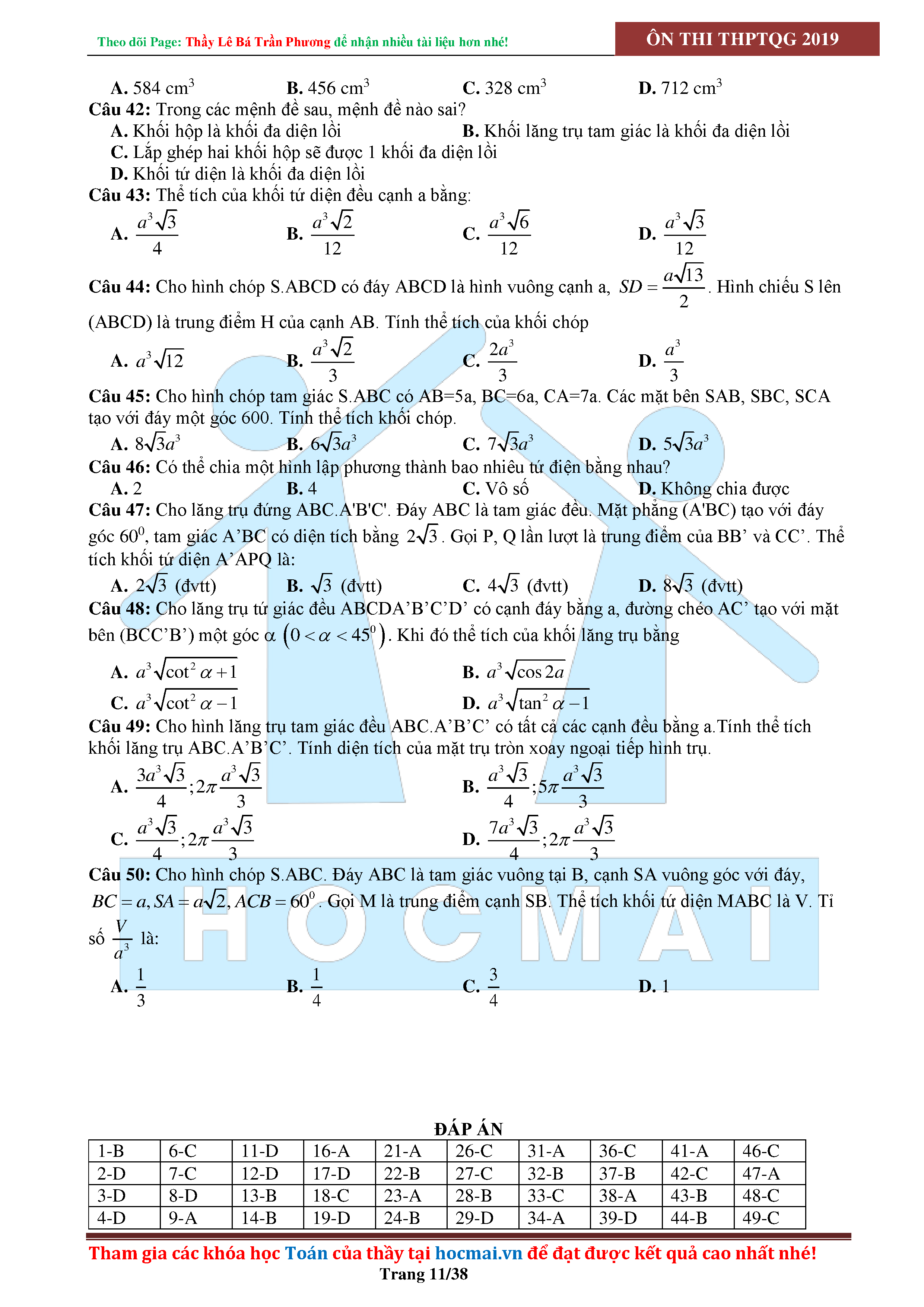 TUYỂN TẬP 350 CÂU HỎI TRẮC NGHIỆM HÌNH HỌC KHÔNG GIAN - CÓ ĐÁP ÁN