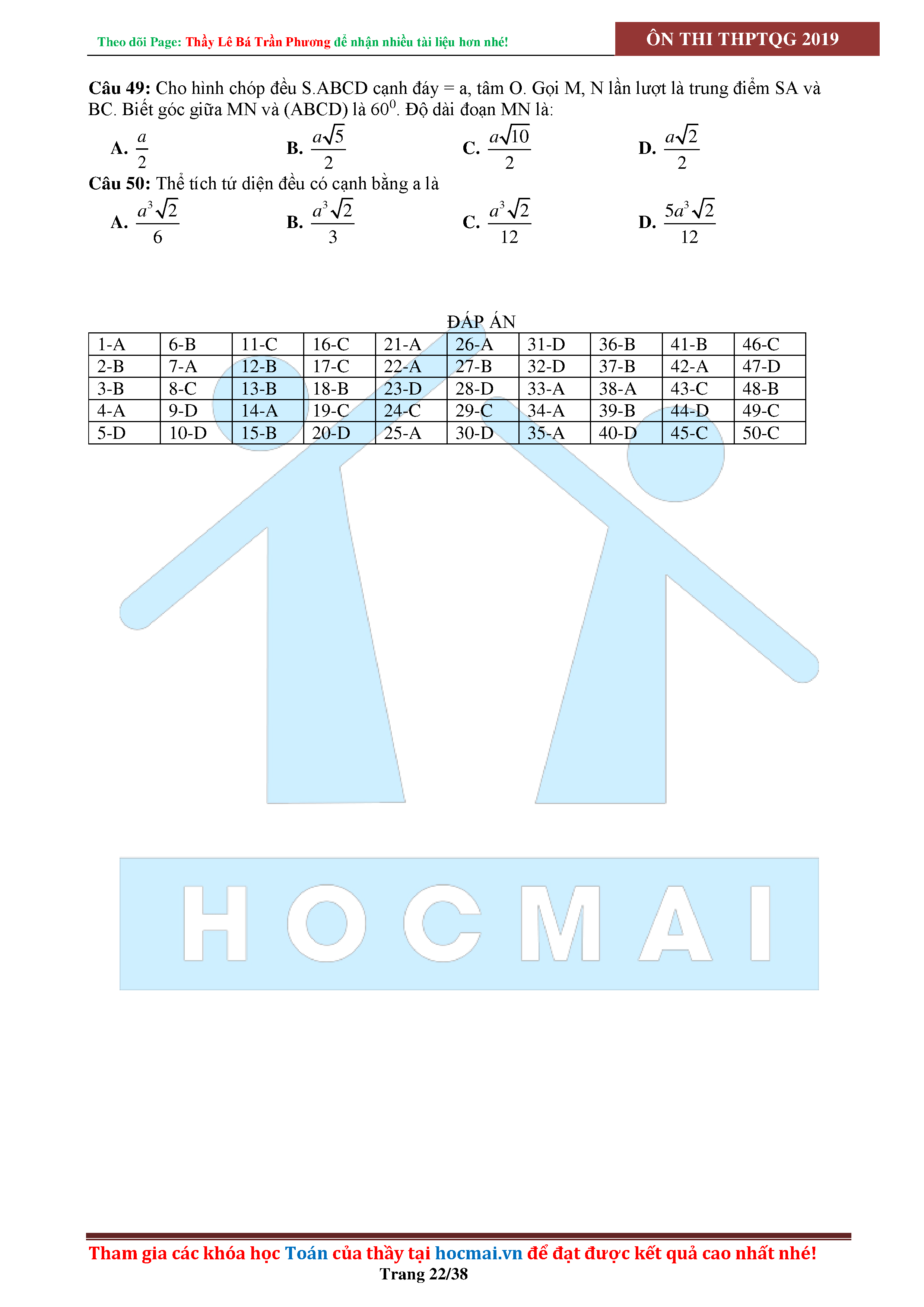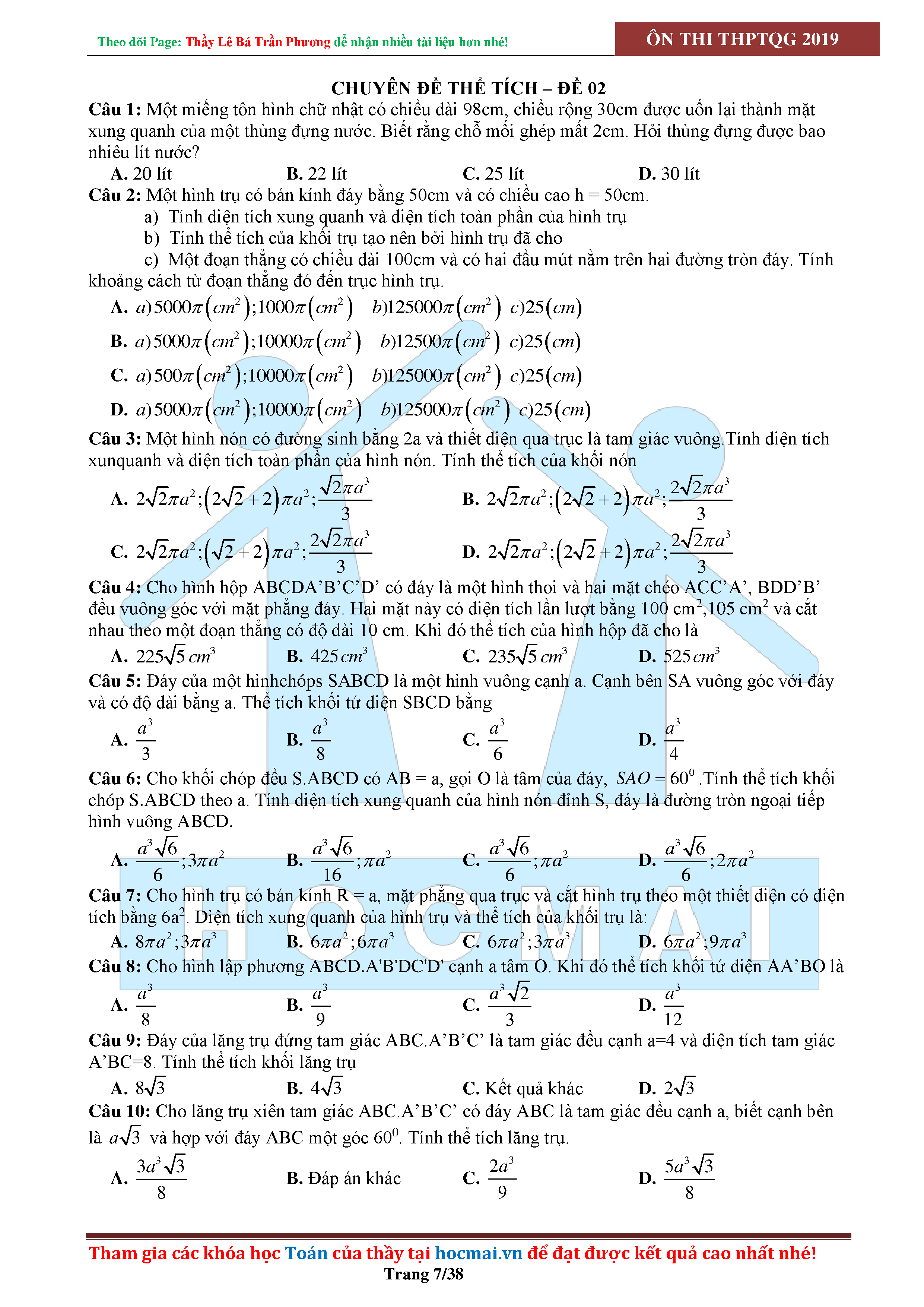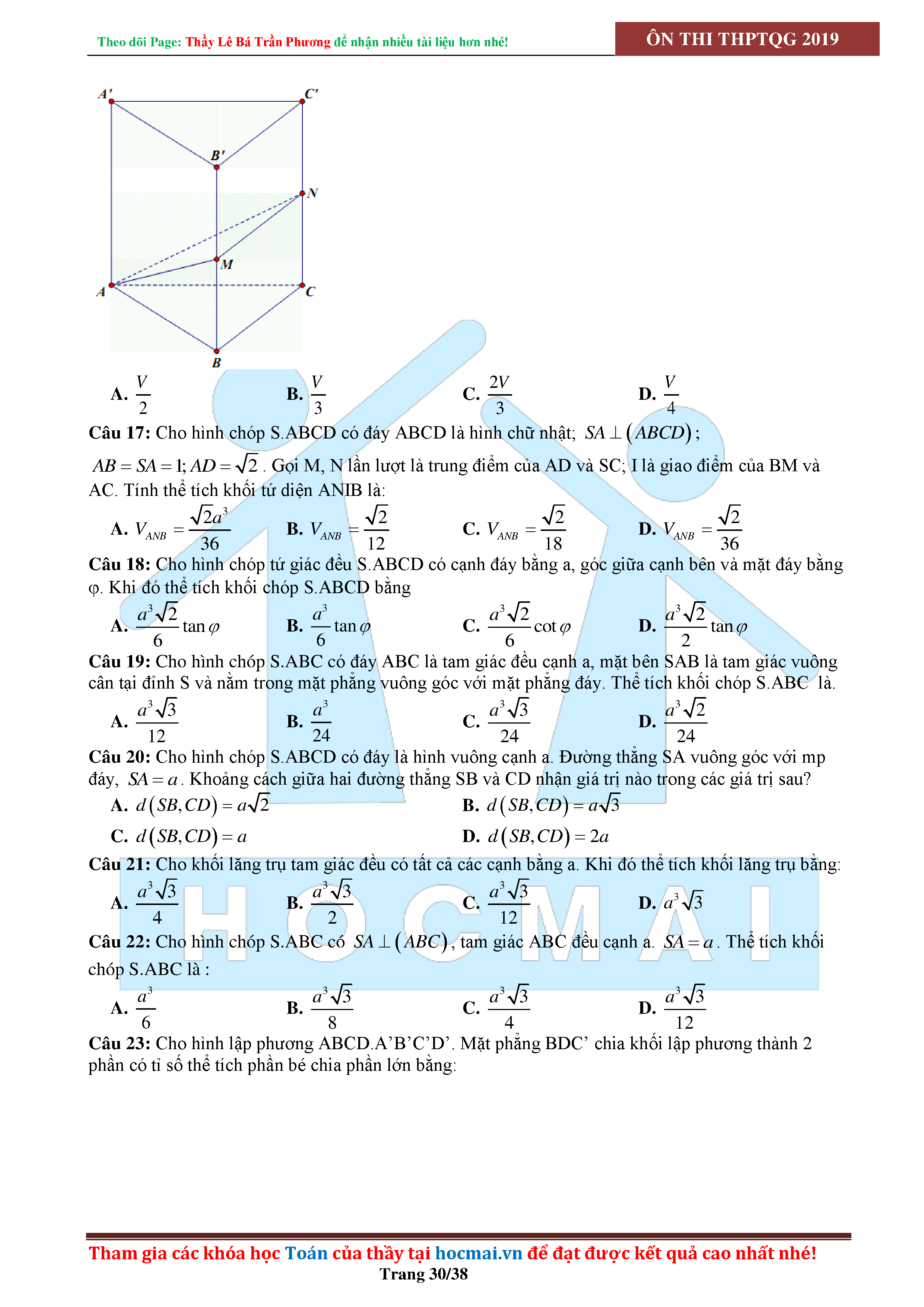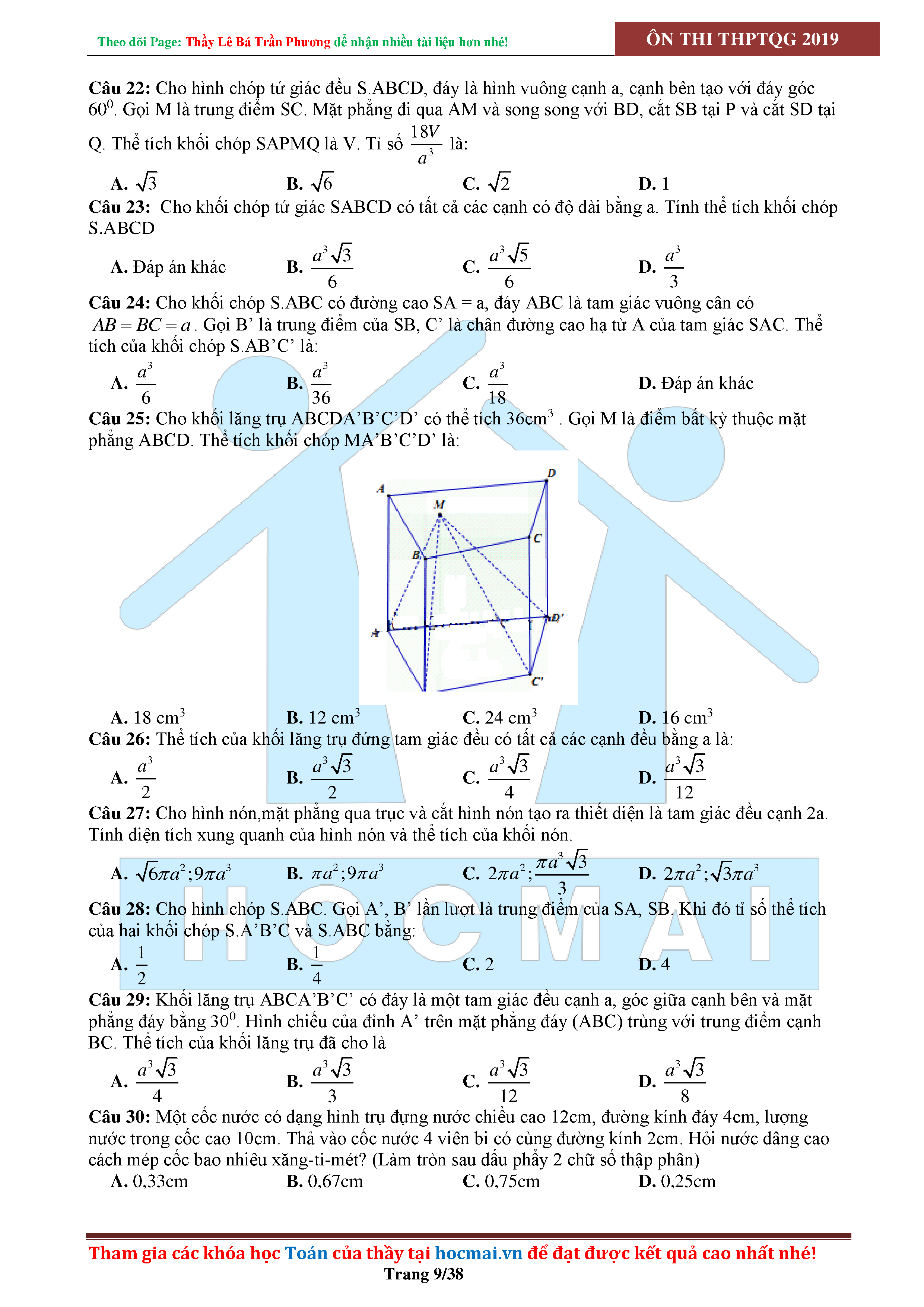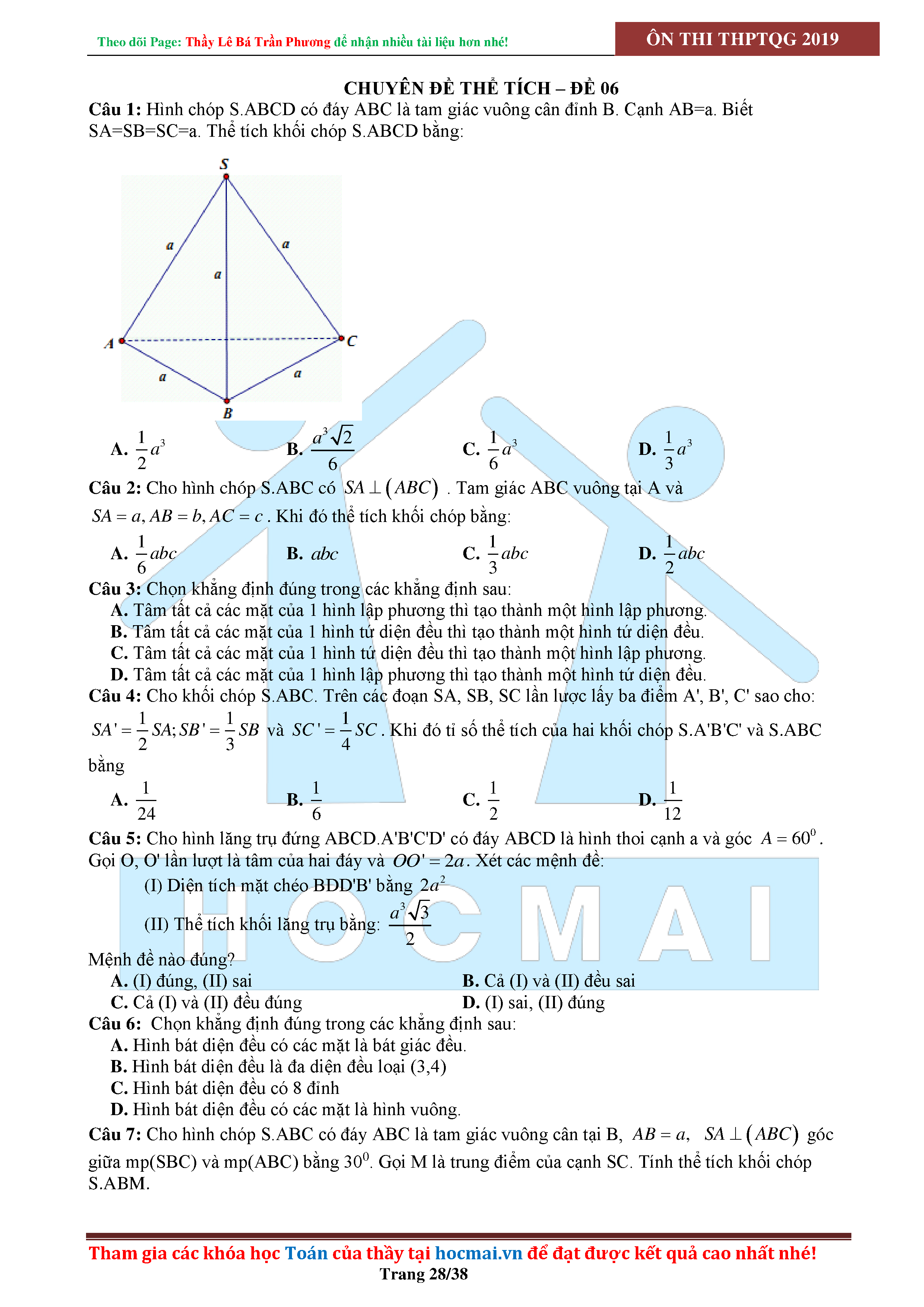 TUYỂN TẬP 350 CÂU HỎI TRẮC NGHIỆM HÌNH HỌC KHÔNG GIAN - CÓ ĐÁP ÁN