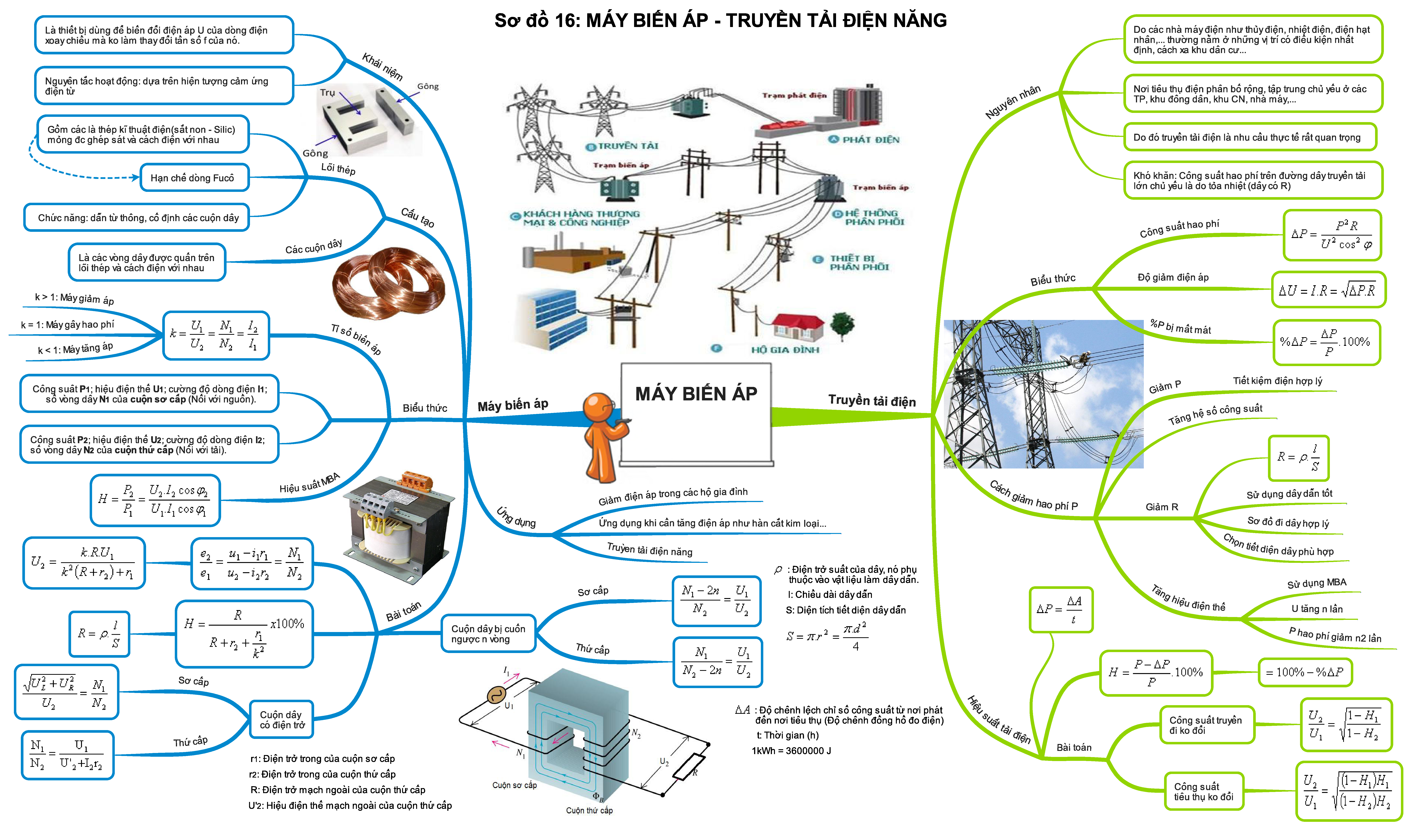 Sơ đồ tư duy máy biến áp và truyền tải điện năng ( Slide trang 19)