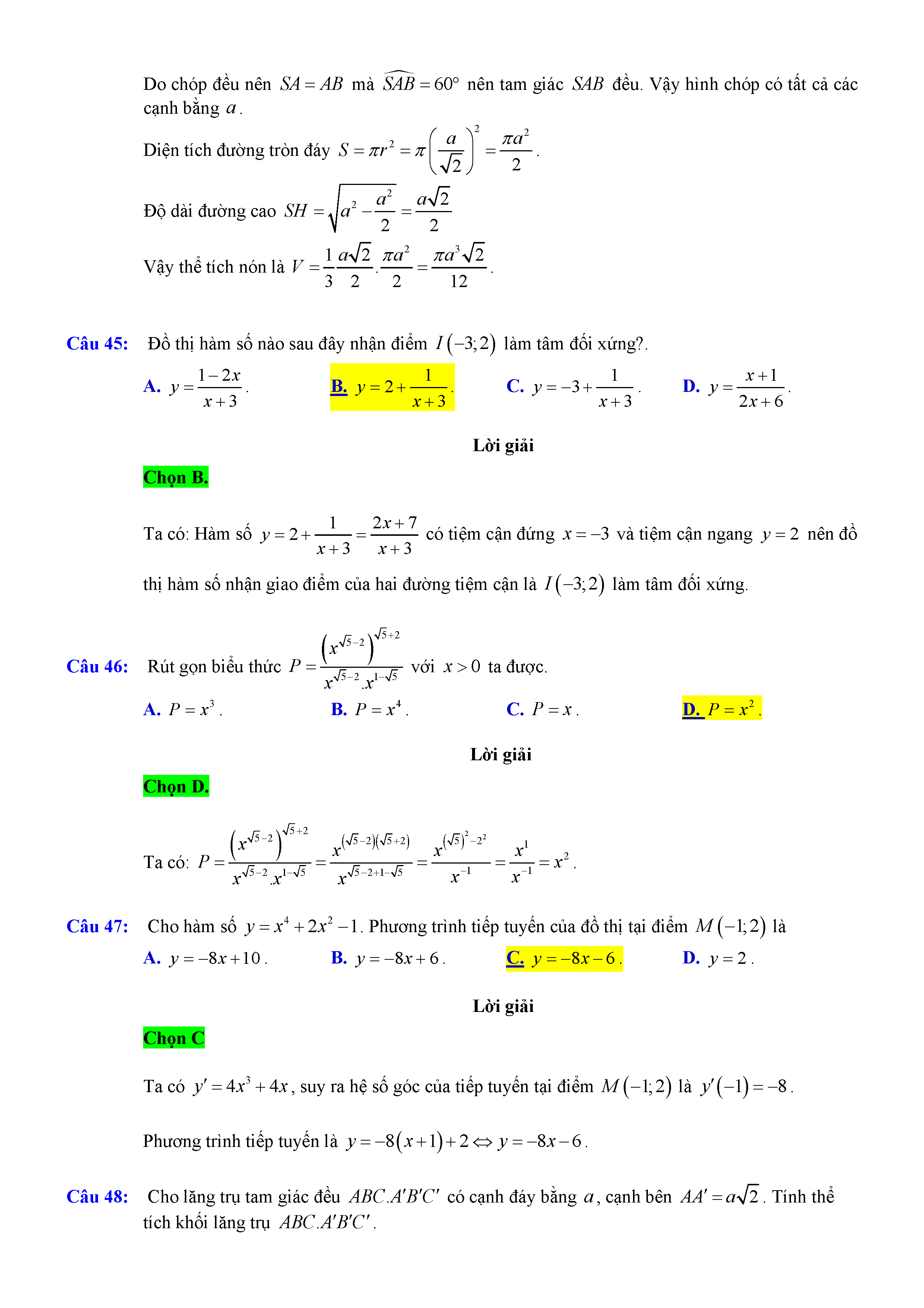 Đề kiểm tra định kì môn Toán lớp 12-2017 trường Ngô Thời Nhiệm