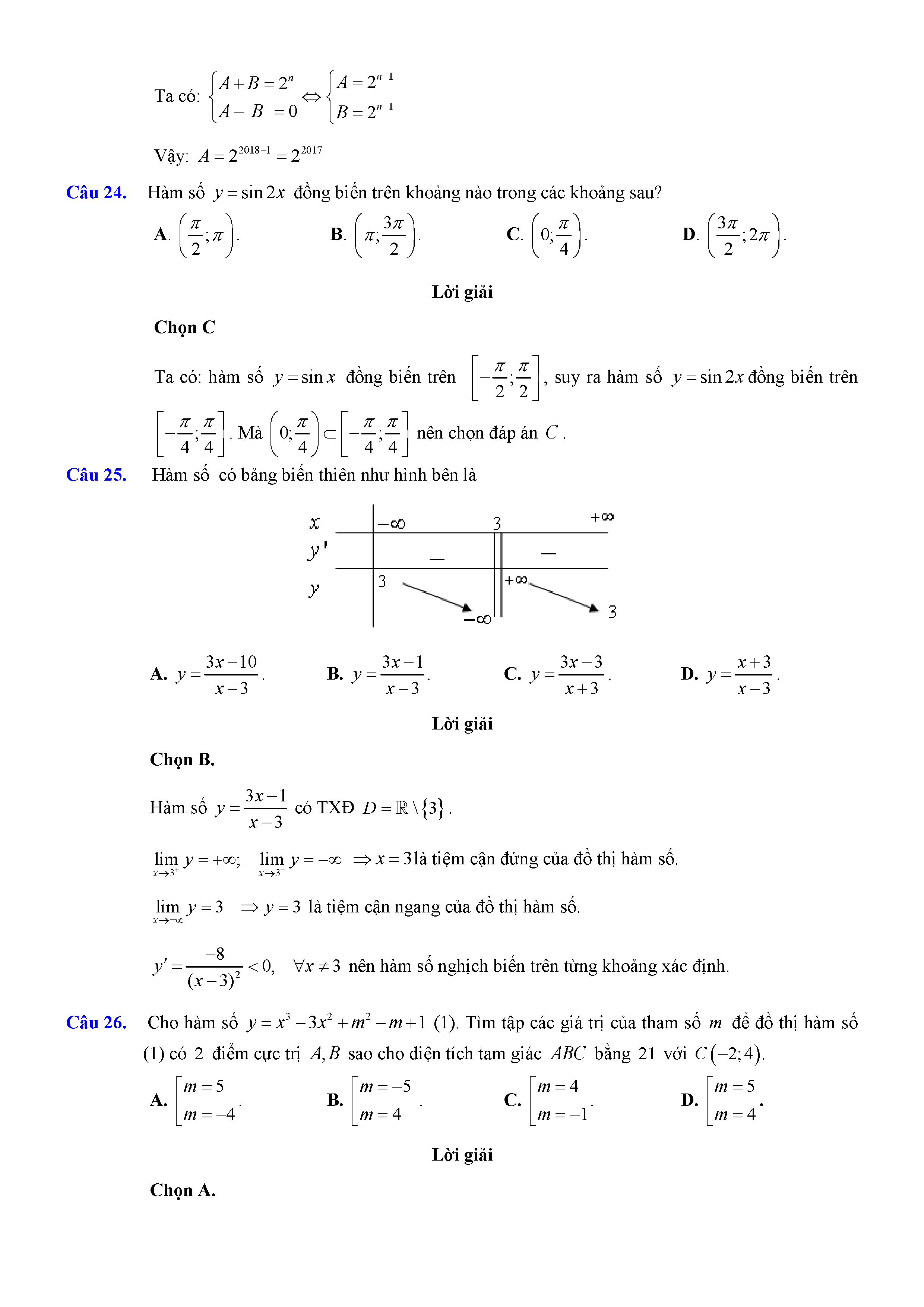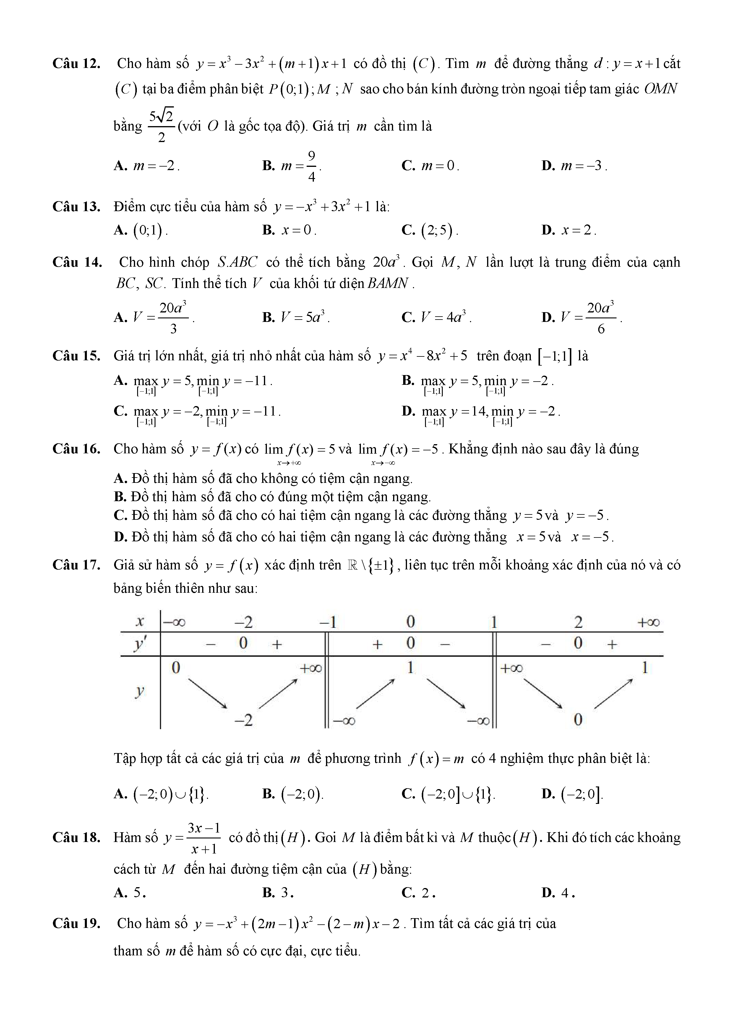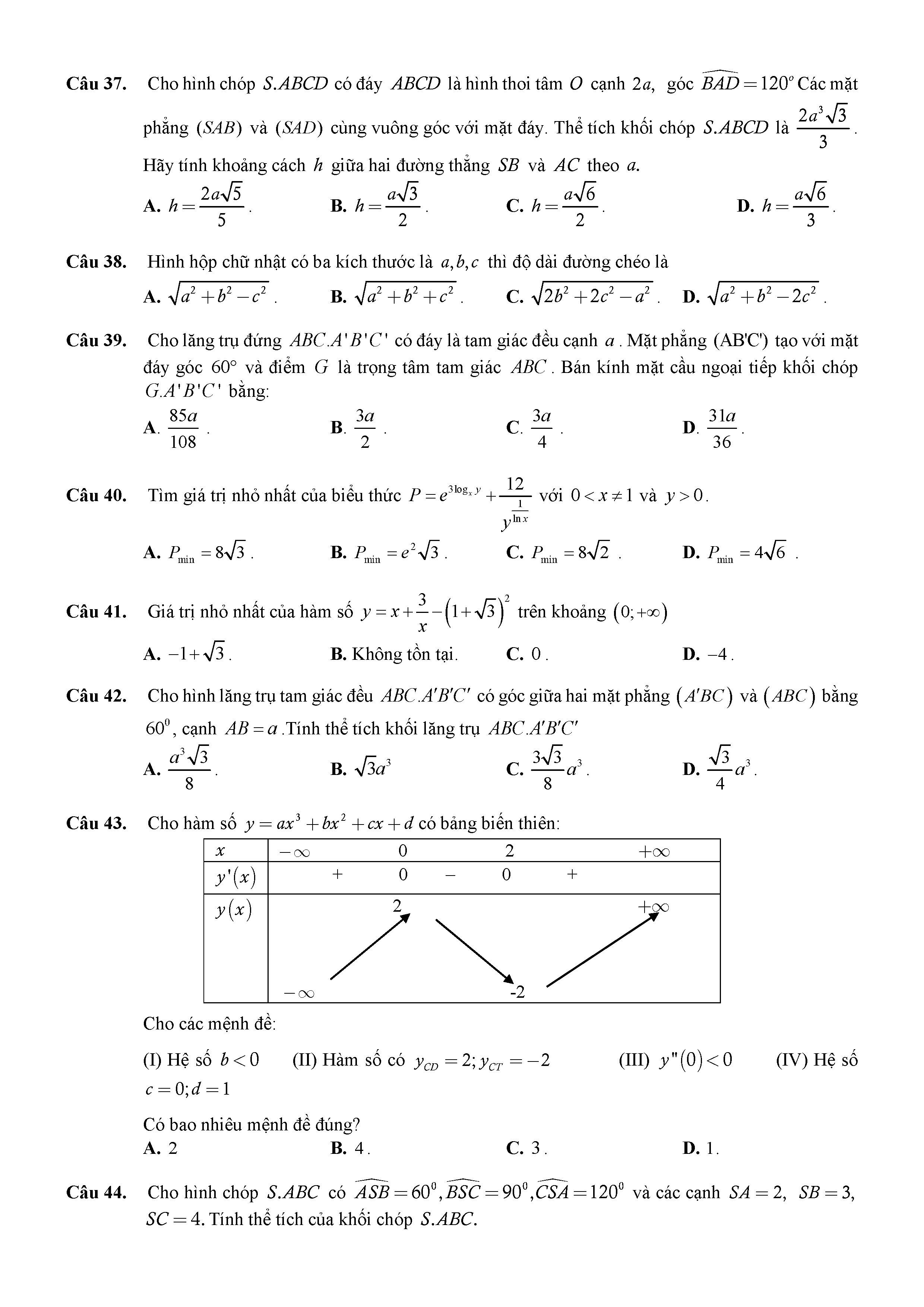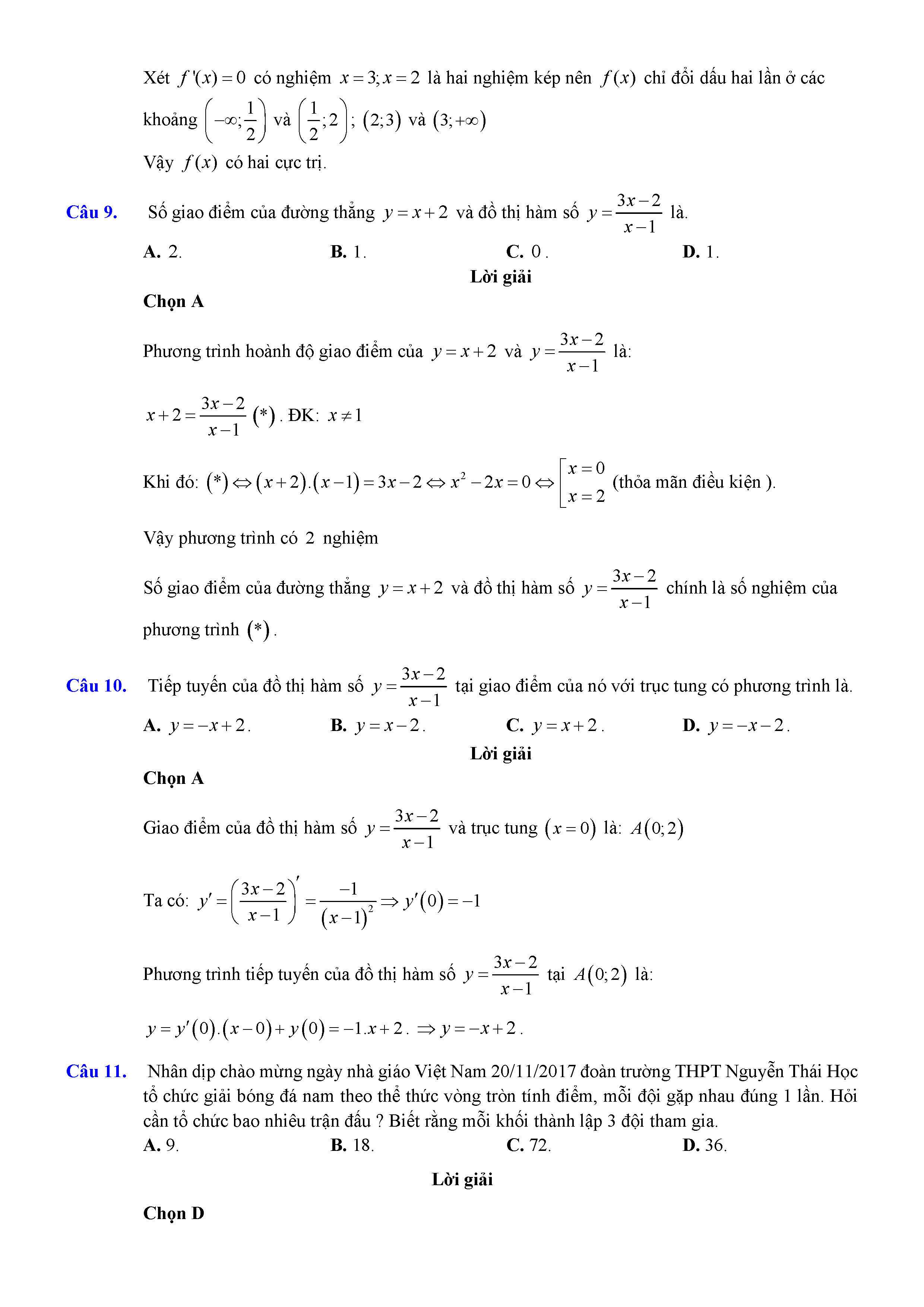 Đề kiểm tra định kì môn Toán lớp 12-2017 trường Nguyến Thái Học