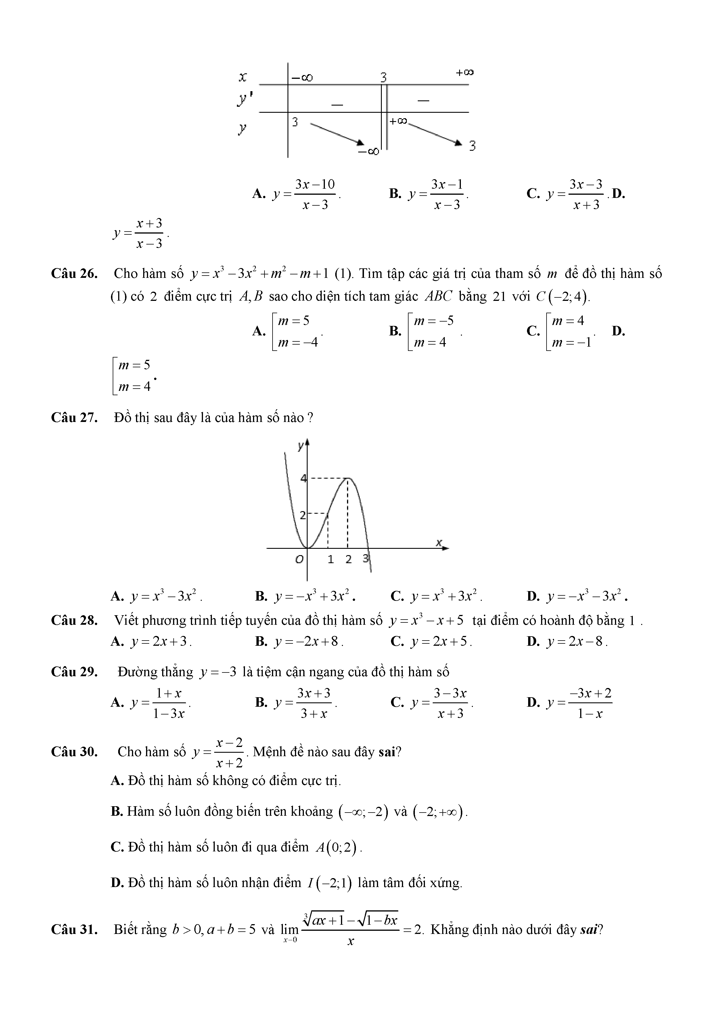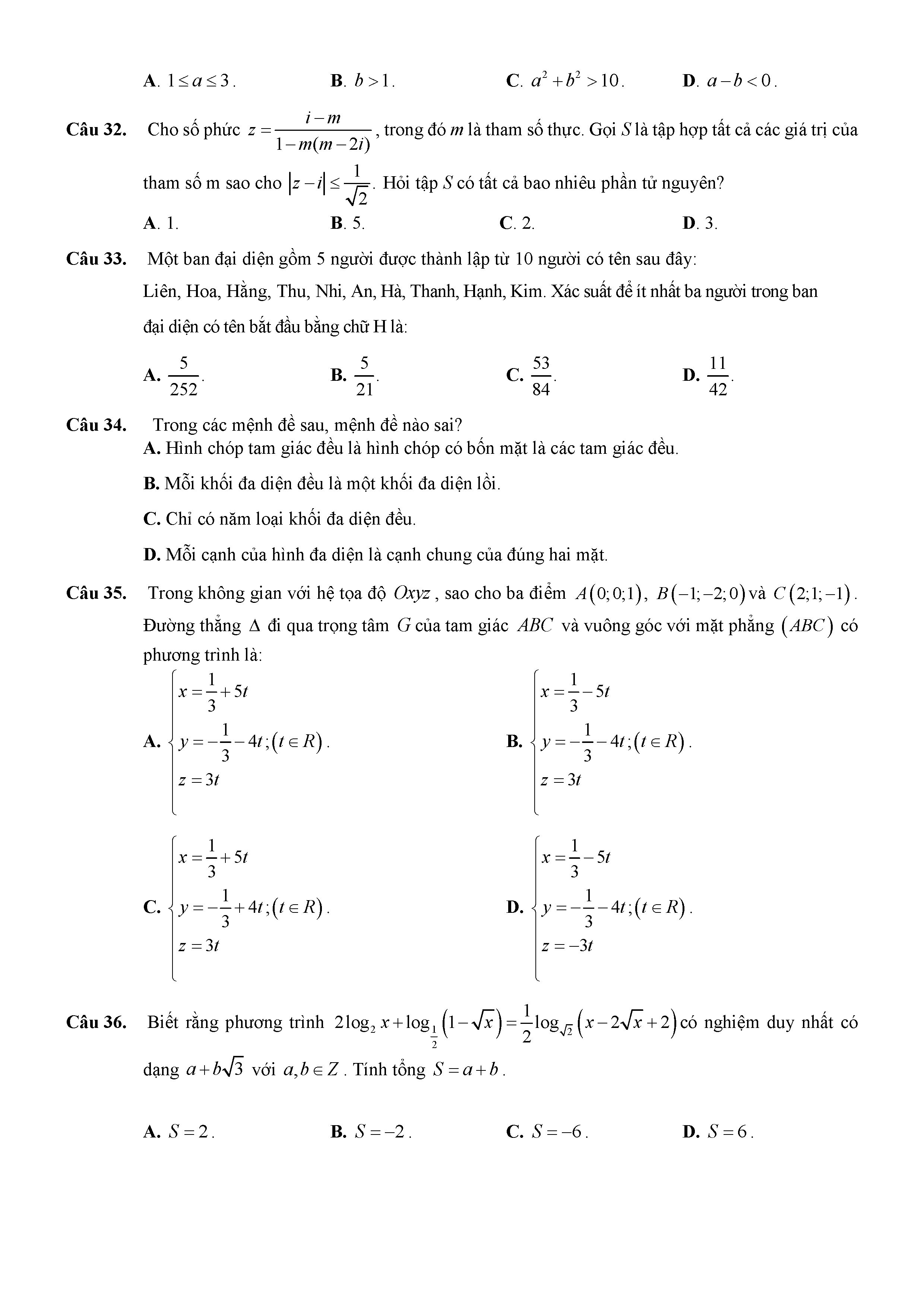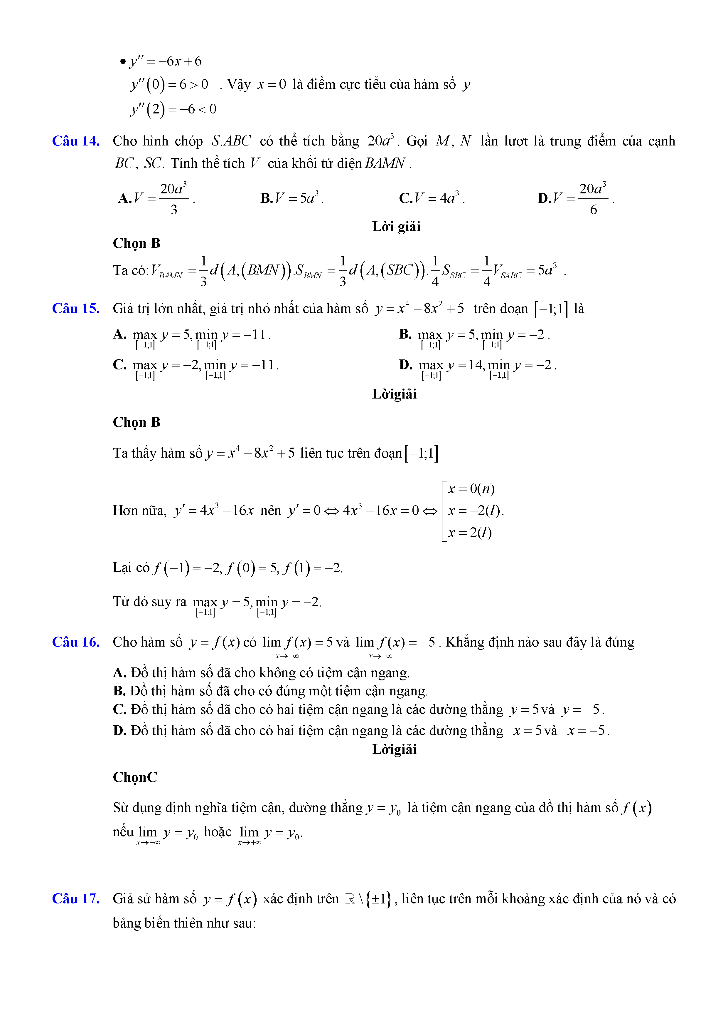 Đề kiểm tra định kì môn Toán lớp 12-2017 trường Nguyến Thái Học