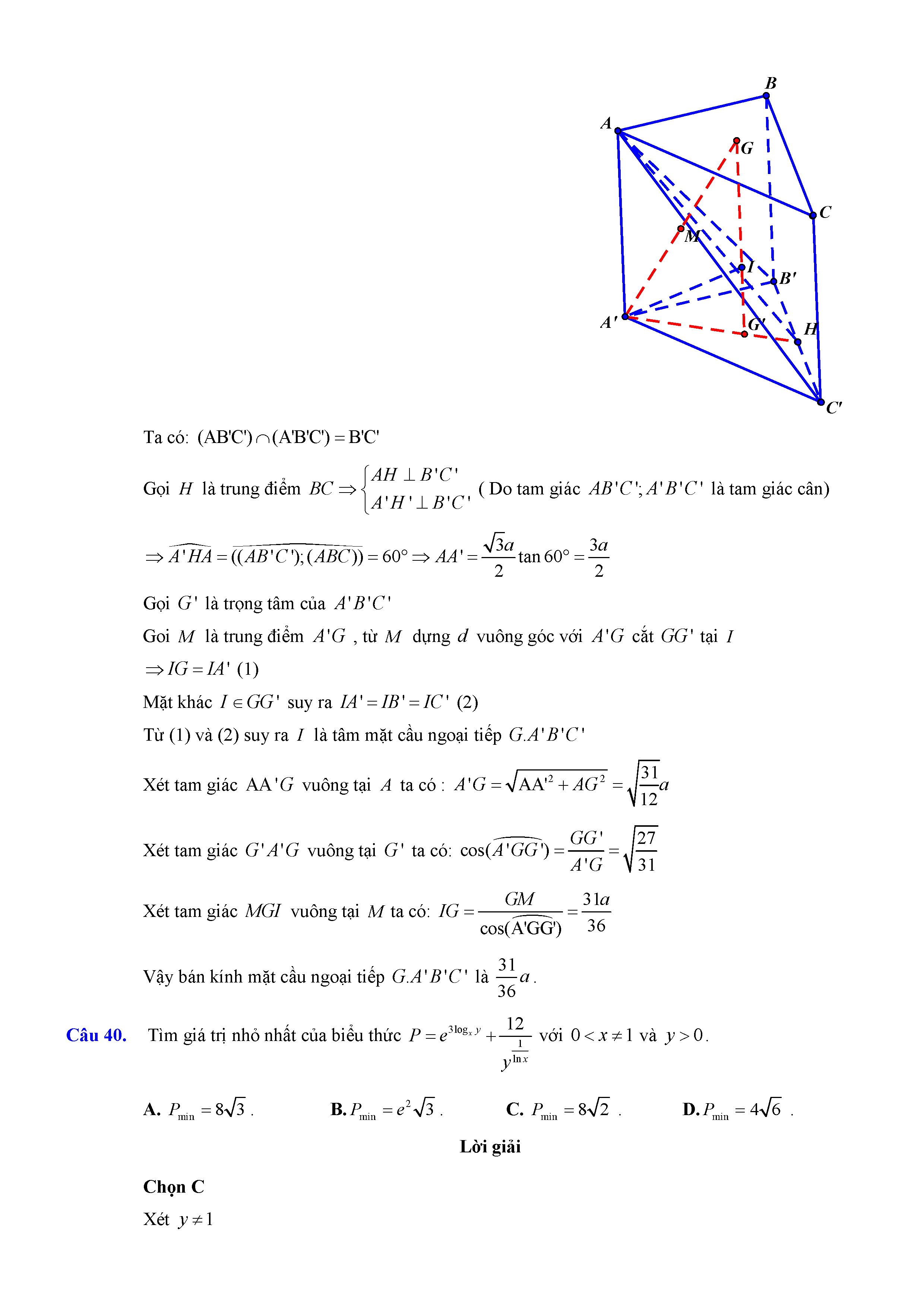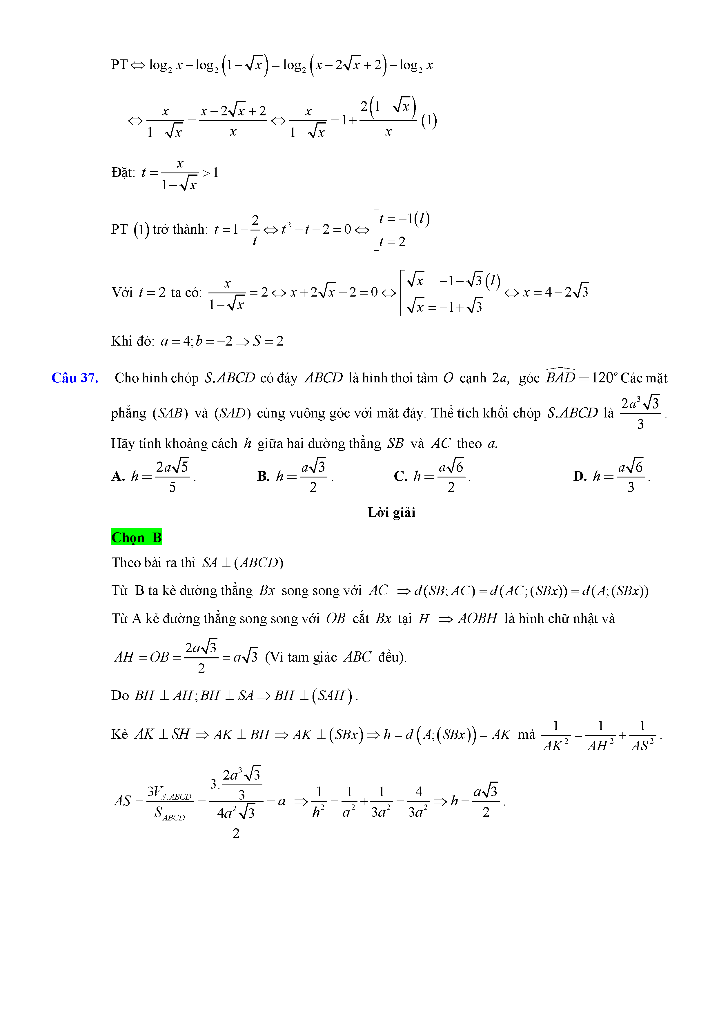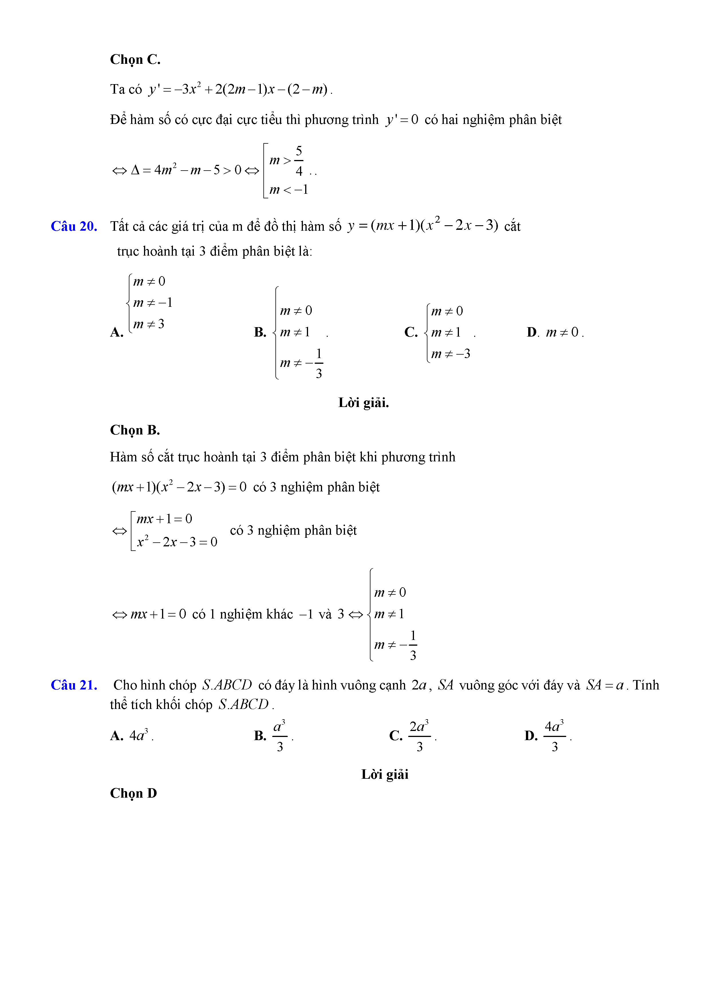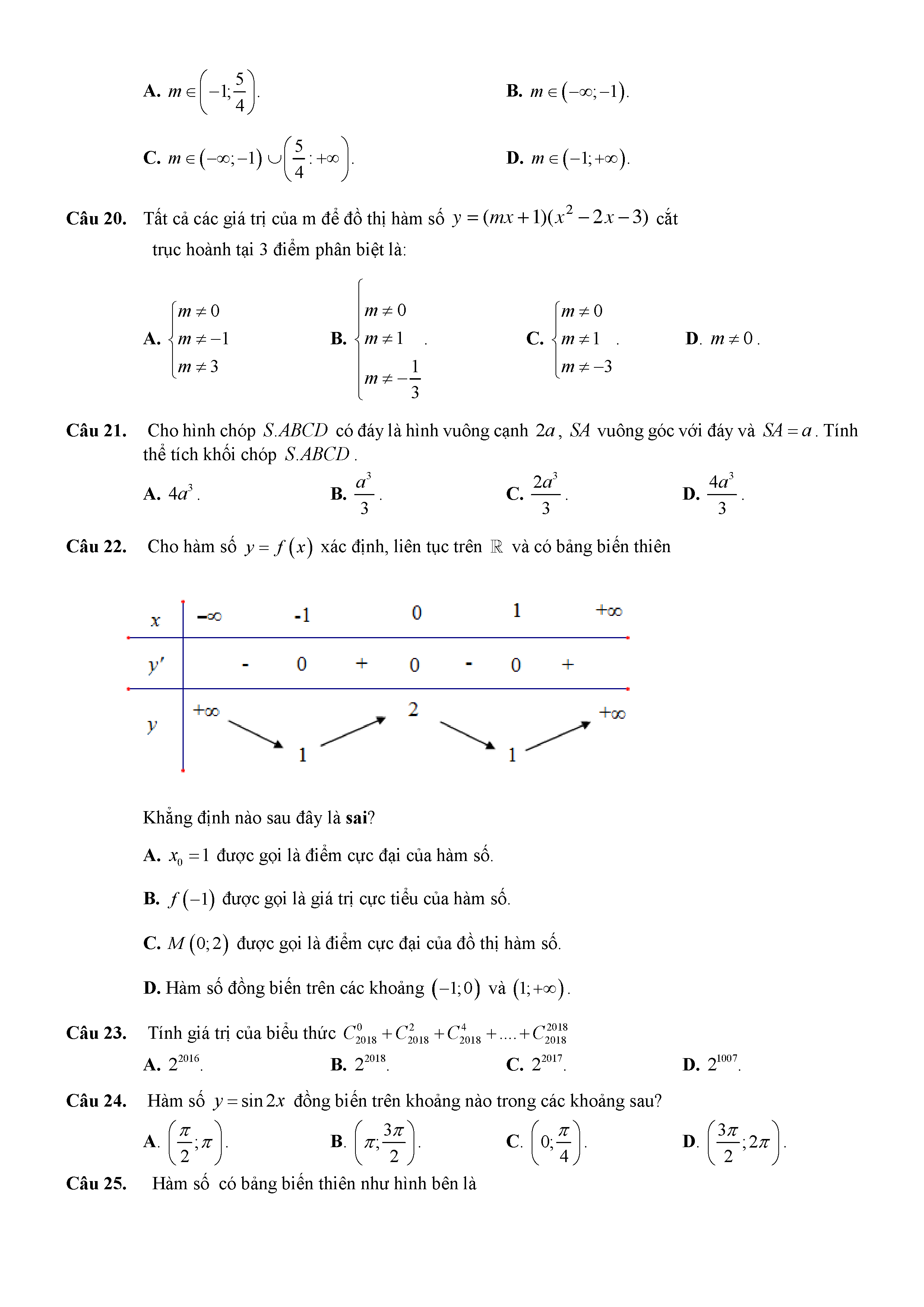 Đề kiểm tra định kì môn Toán lớp 12-2017 trường Nguyến Thái Học