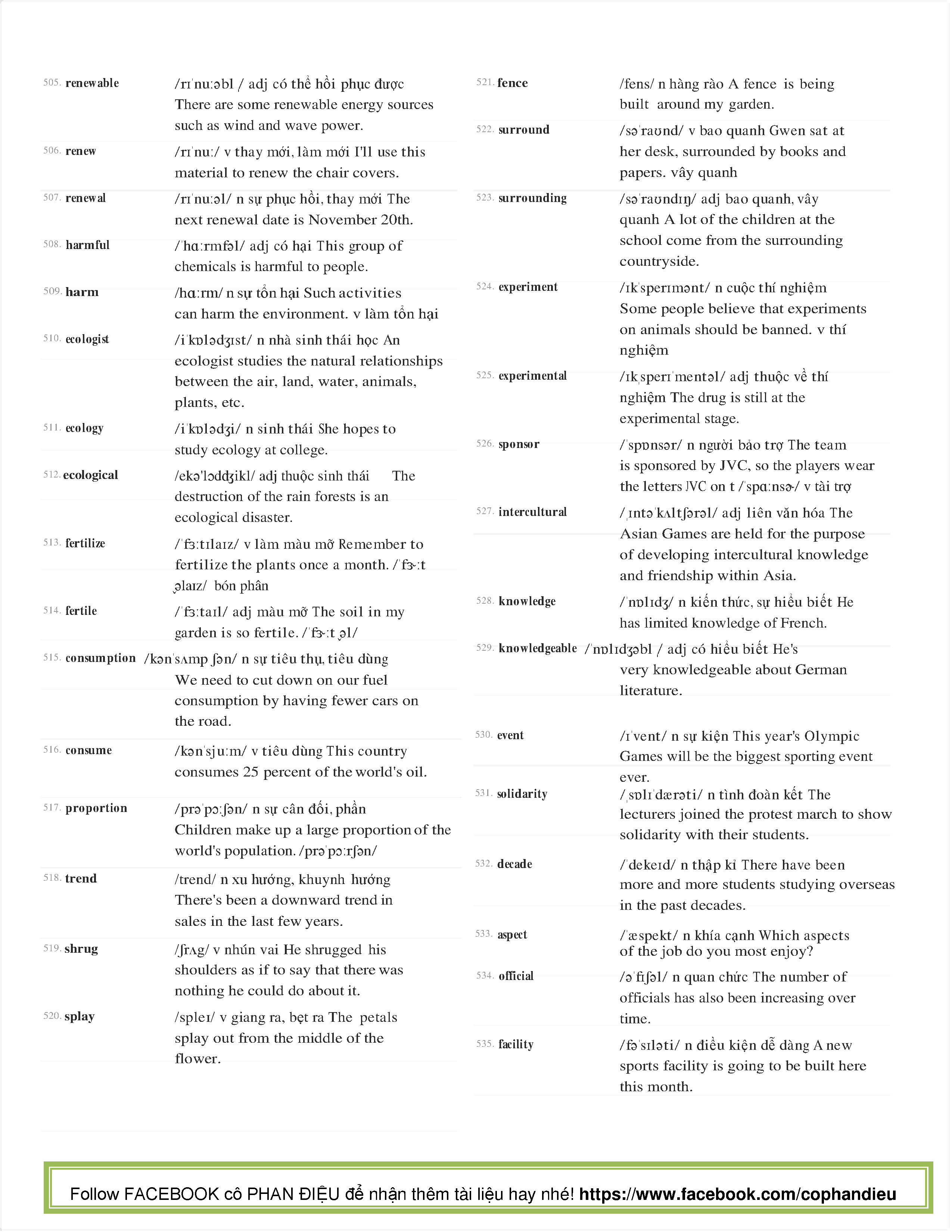 Tổng hợp từ vựng tiếng Anh 3 năm học THPT