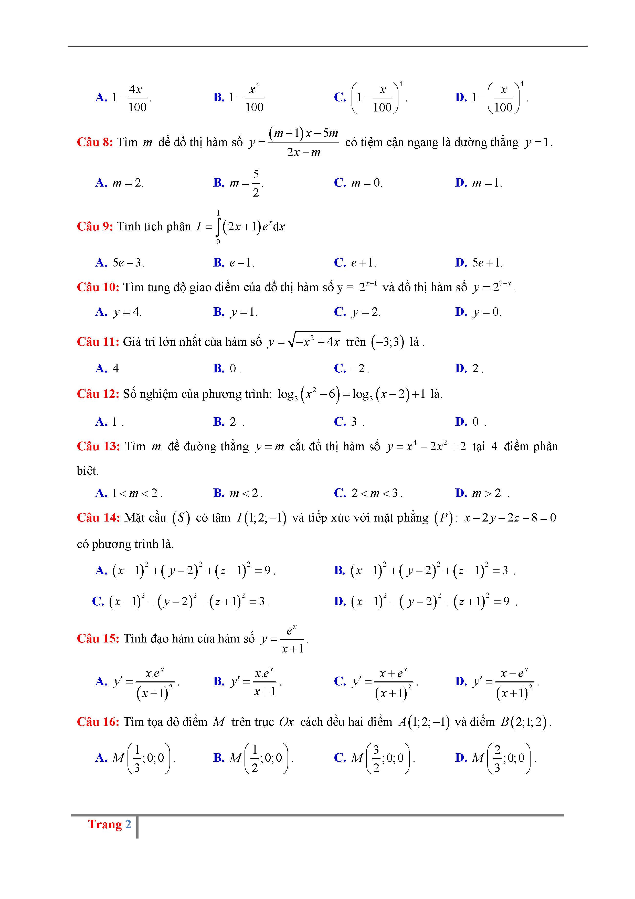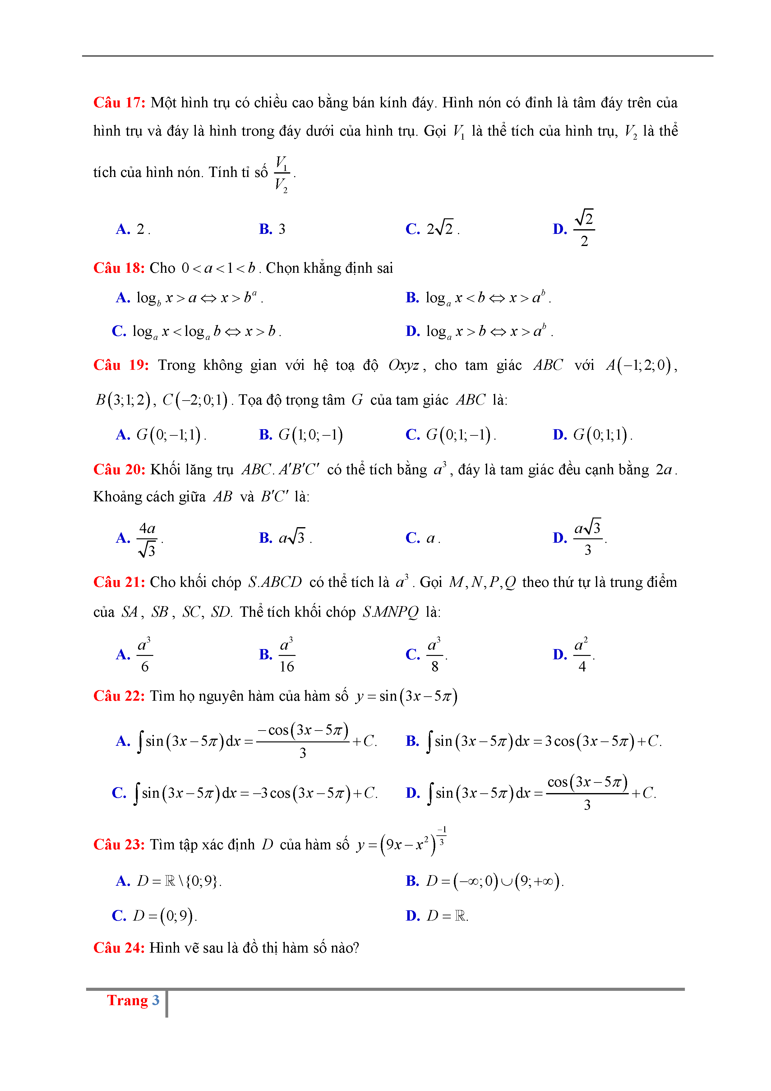 75. Đề thi thử THPT QG môn Toán năm 2017 - THPT Lý Thái Tổ, Hà Nội - lần 4