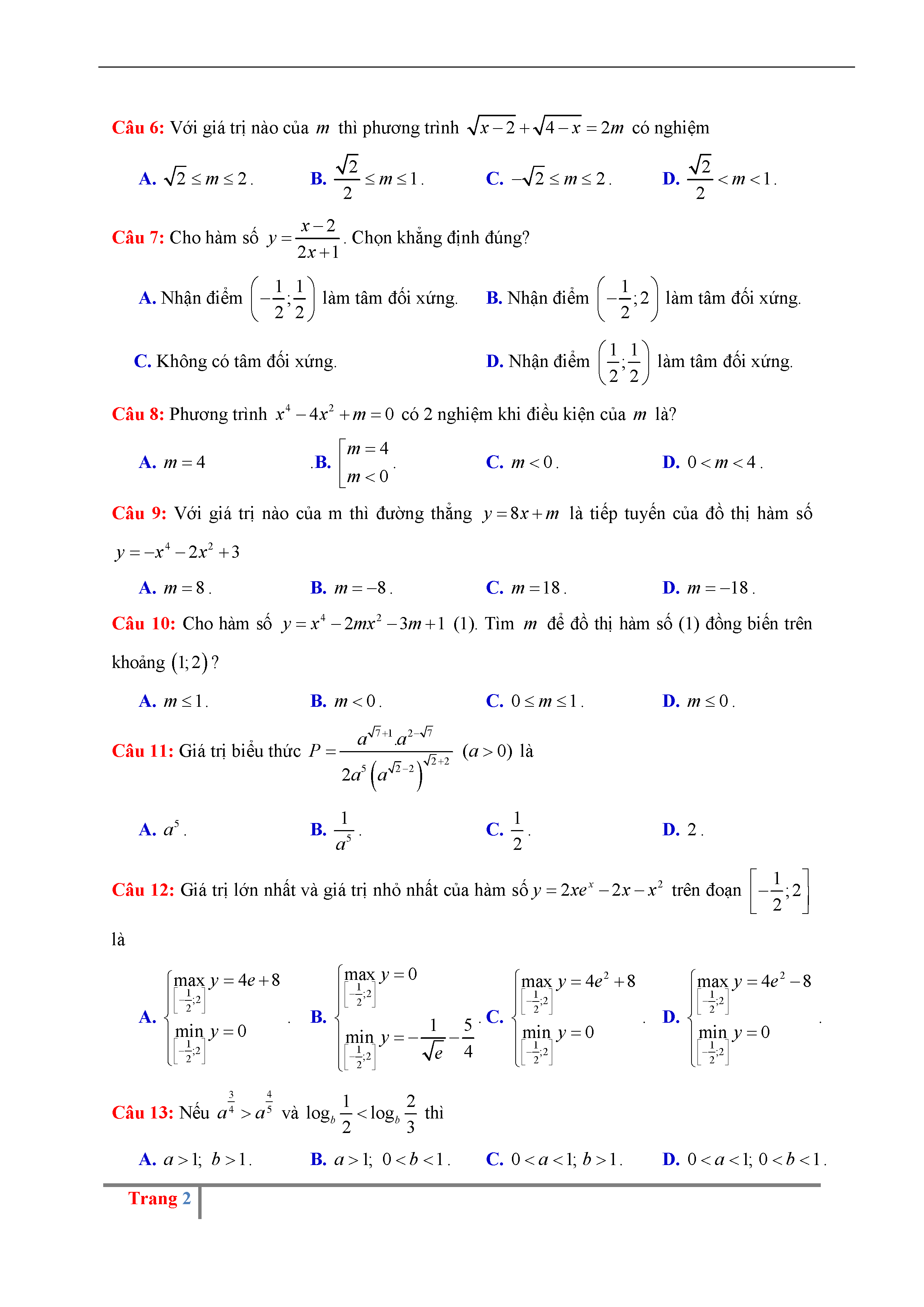 76. Đề thi thử THPT QG môn Toán năm 2017 - THPT Lương Tâm - Hậu Giang - Lần 1