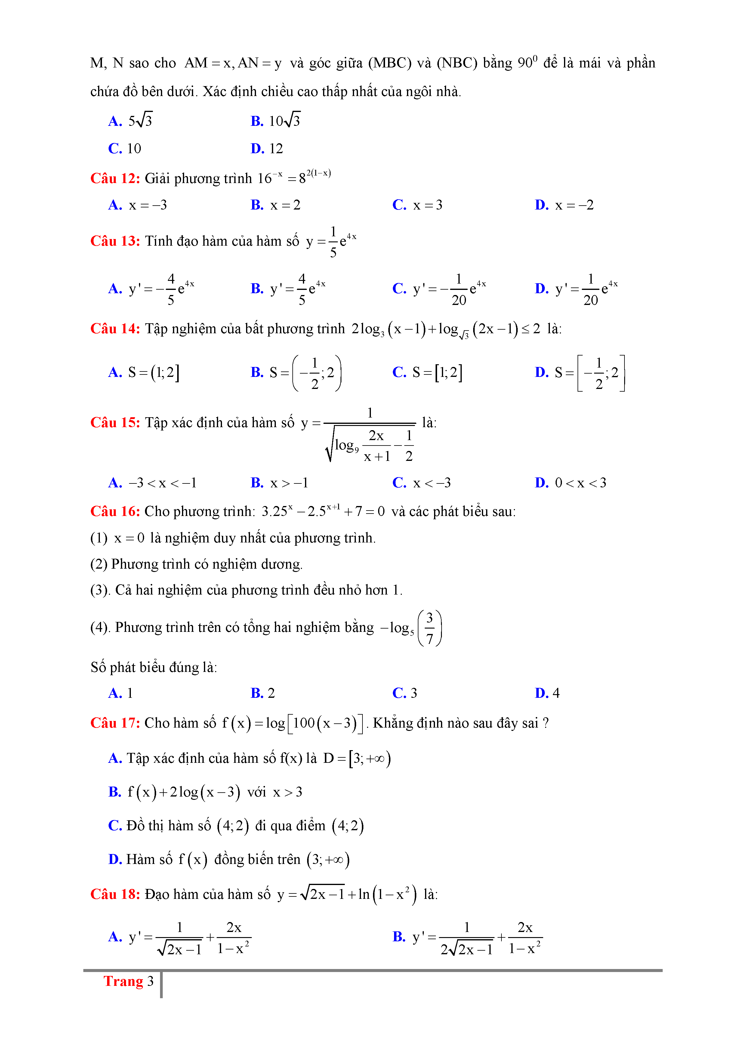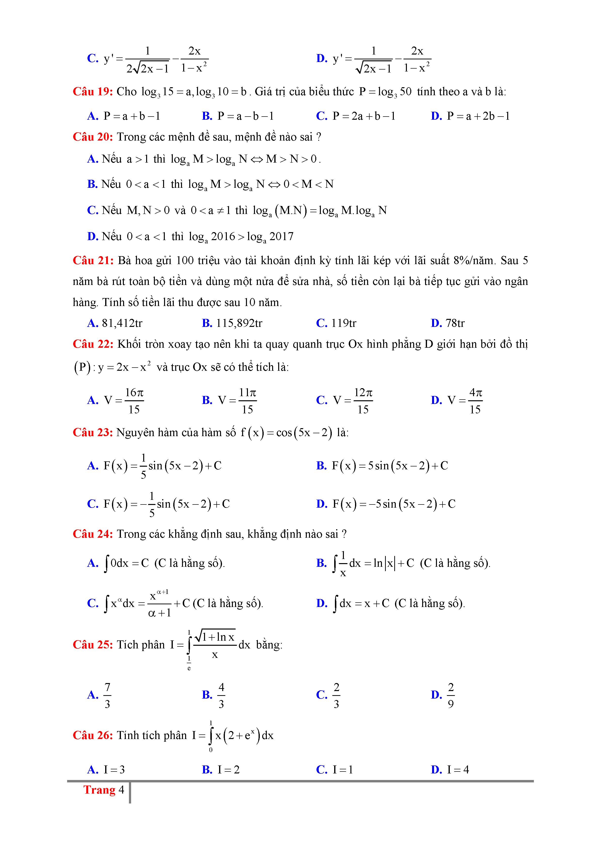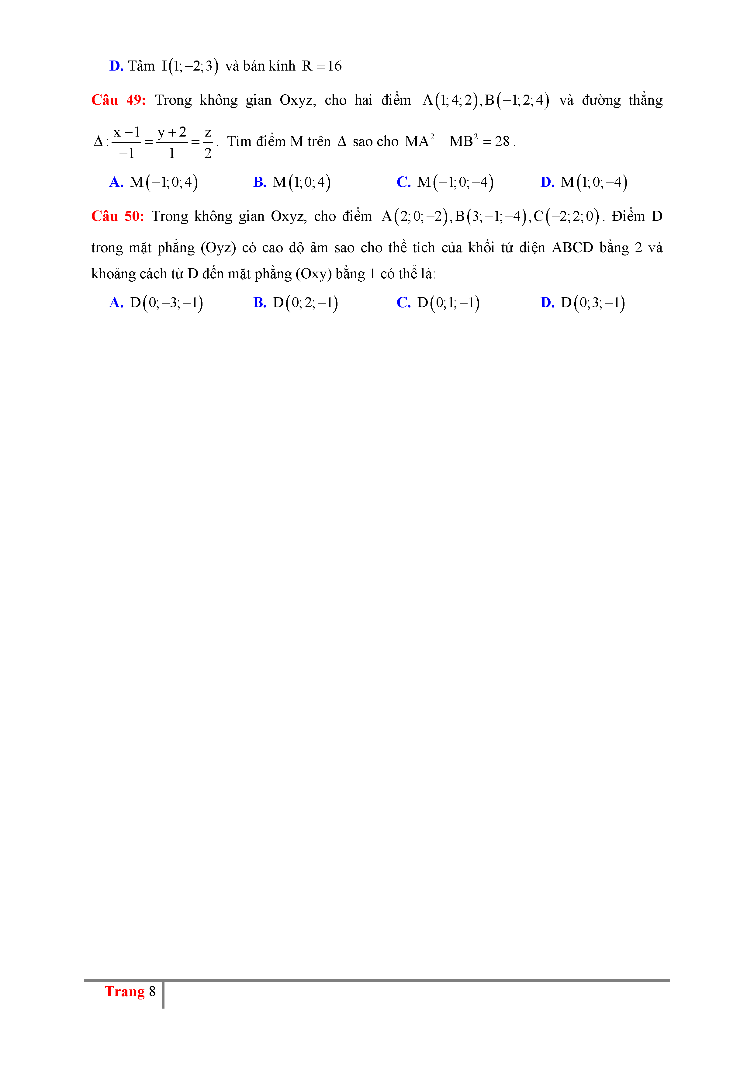 Đề ôn thi THPTQG môn Toán năm 2017 số 9