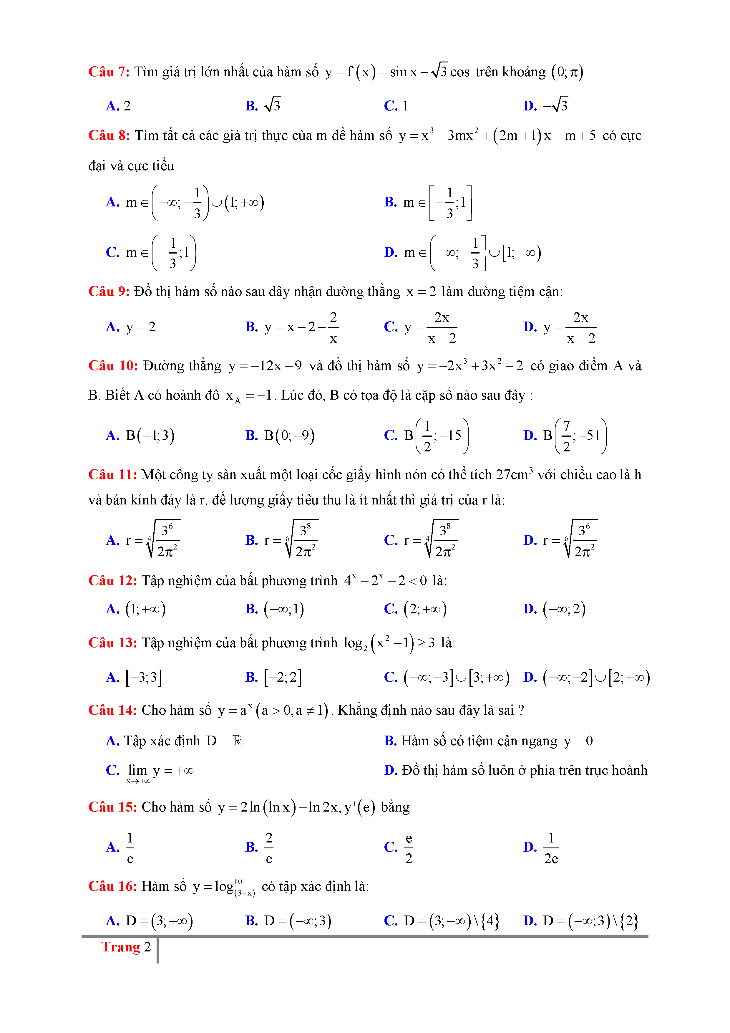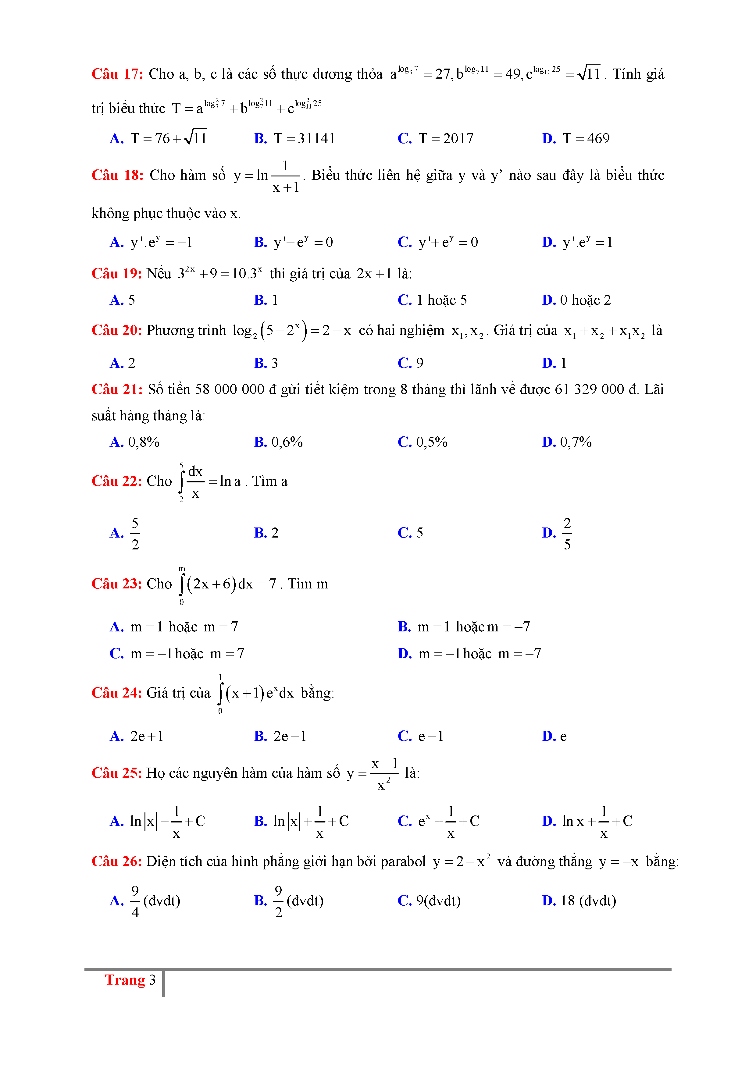 Đề ôn thi THPTQG môn Toán năm 2017 số 7