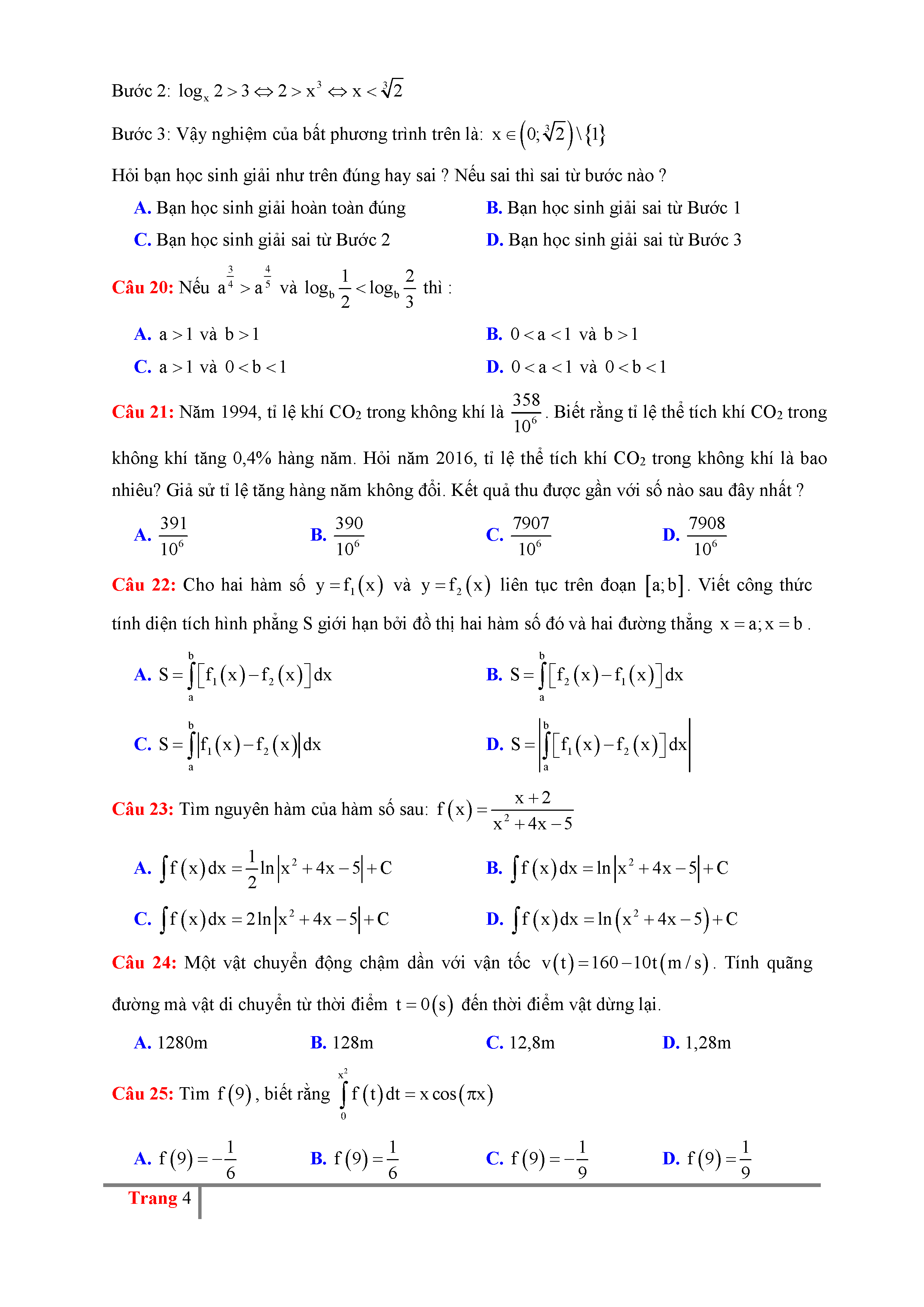 Đề ôn thi THPTQG môn Toán năm 2017 số 4
