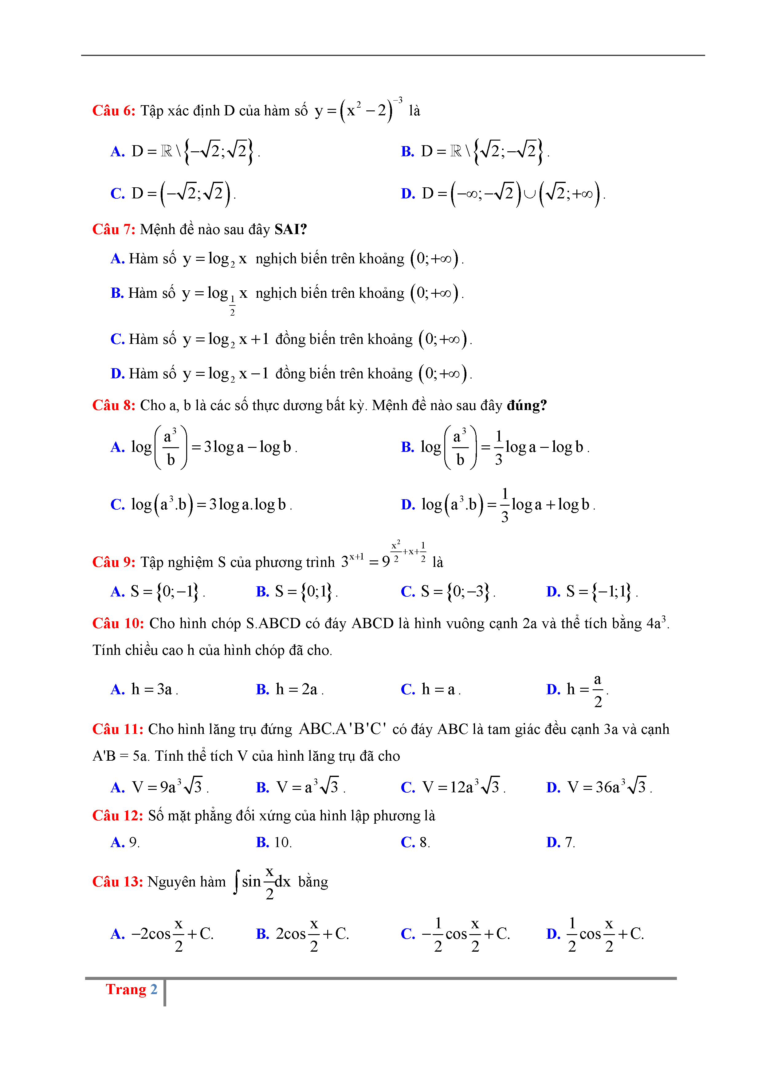 136. Đề thi thử THPTQG năm 2017 môn Toán - Sở GD&ĐT Tỉnh Bà Rịa - Vũng Tàu - Lần 2