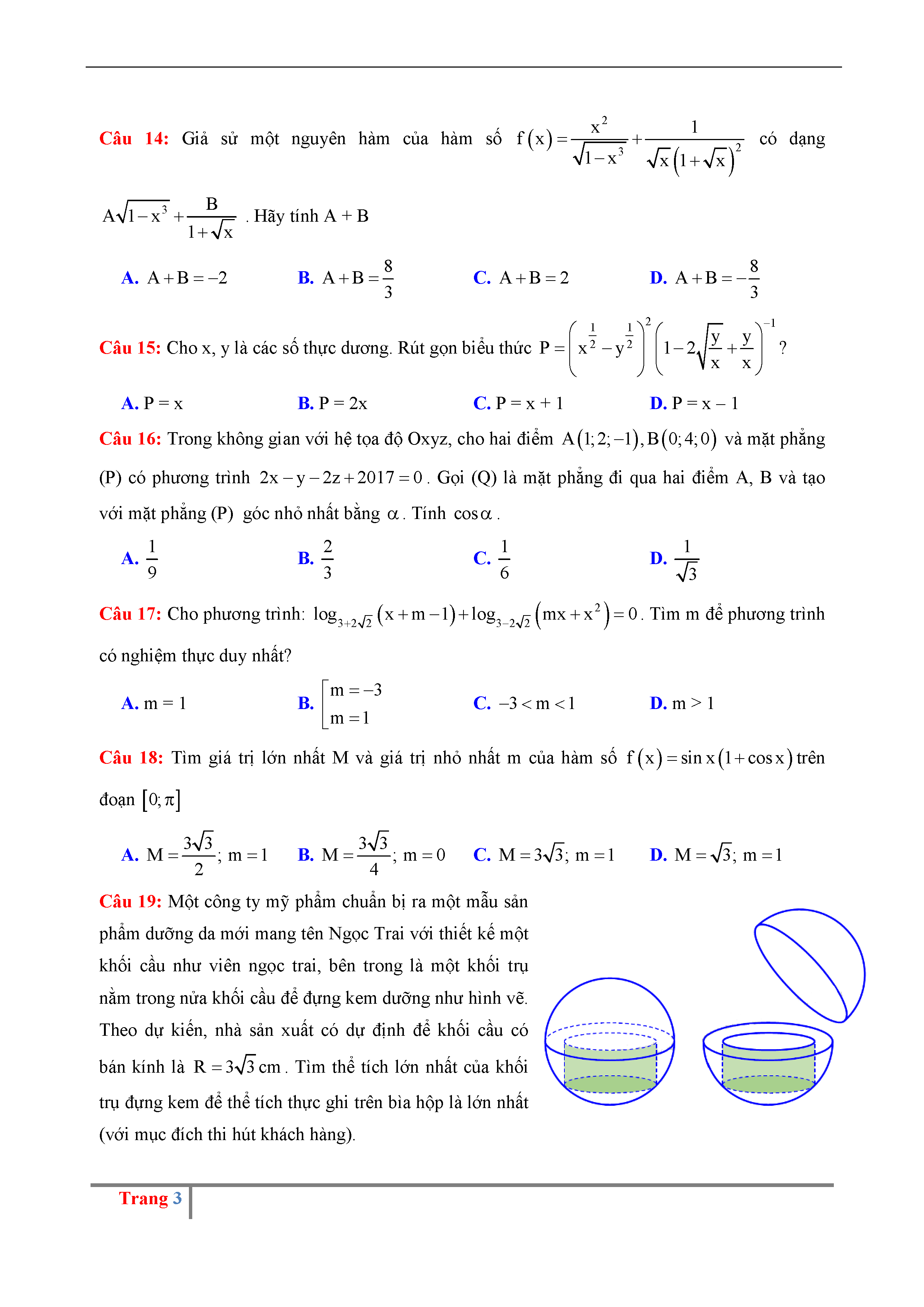 135. Đề thi thử THPTQG năm 2017 môn Toán - THPT Chuyên Thái Nguyên - lần 2
