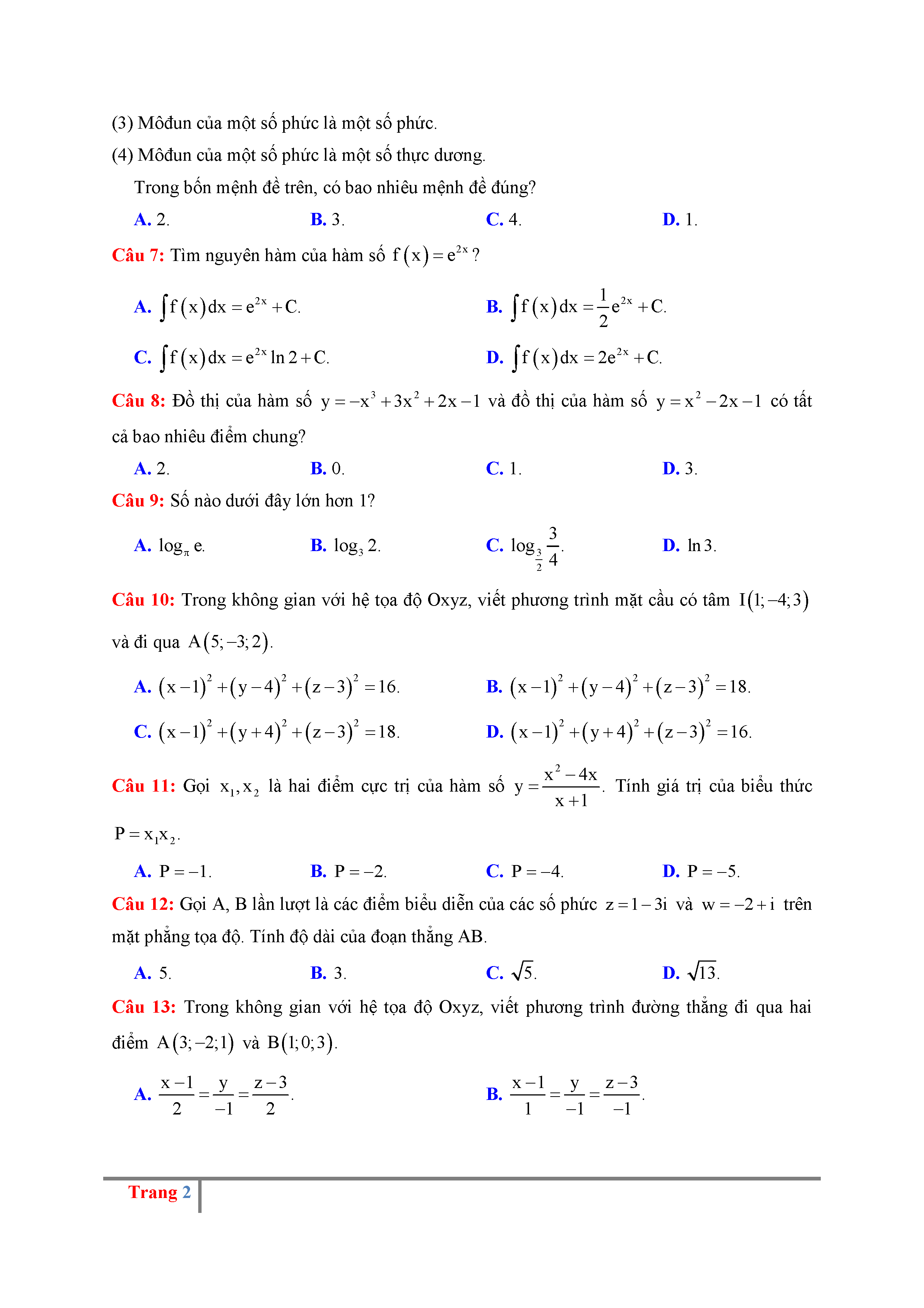 123. Đề thi thử THPTQG năm 2017 - Môn Toán - Sở GD & ĐT Thanh Hóa - Lần 1