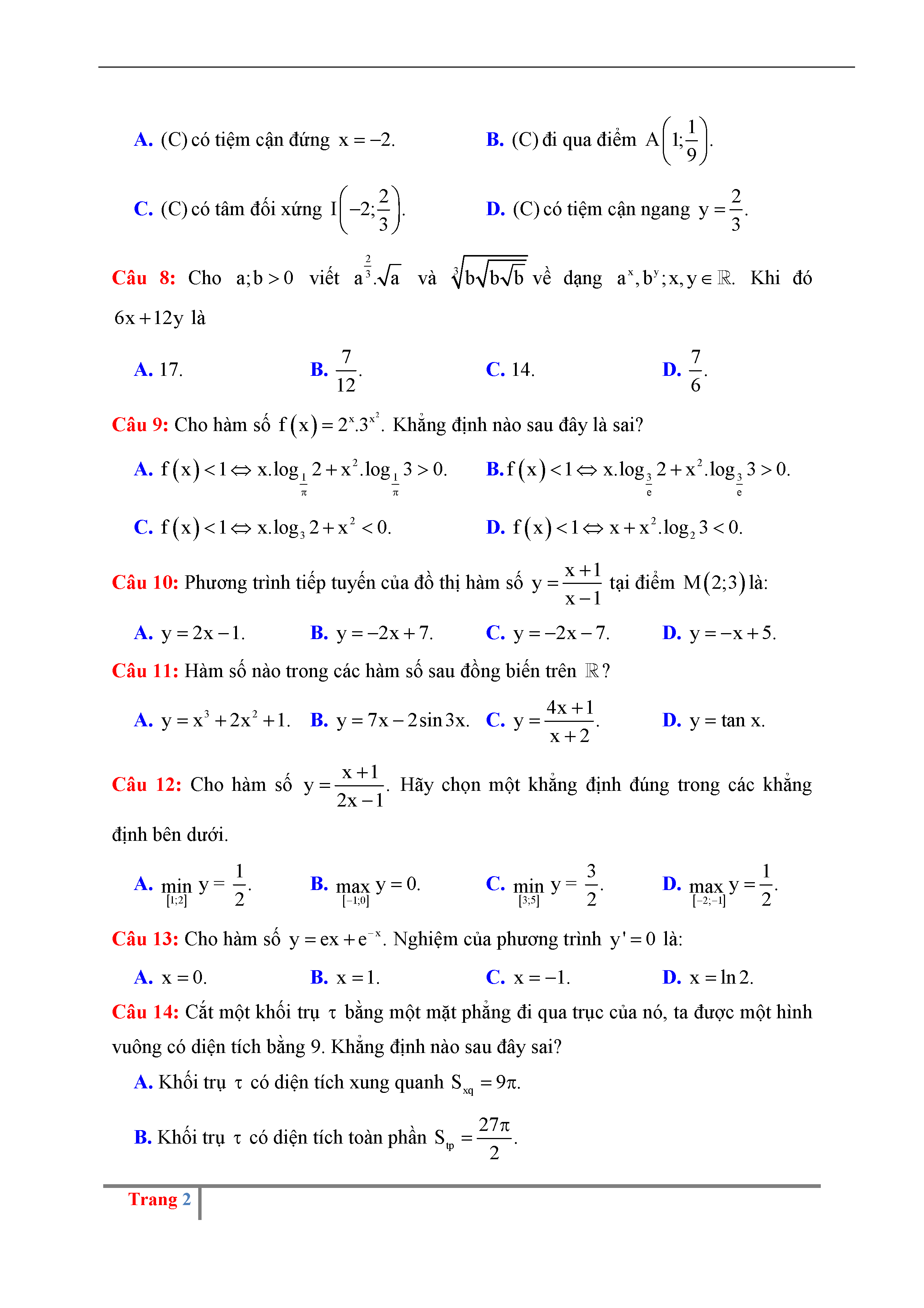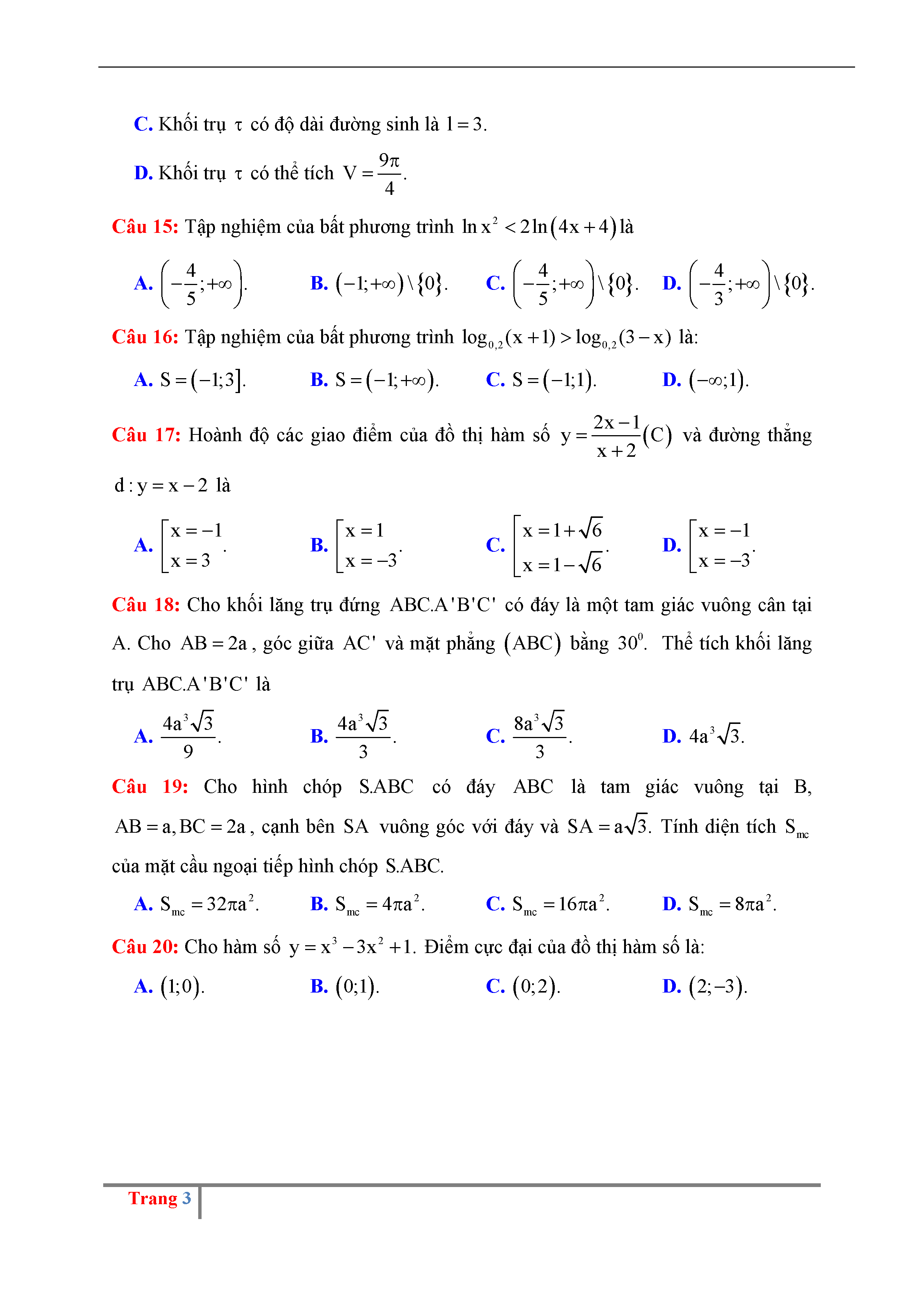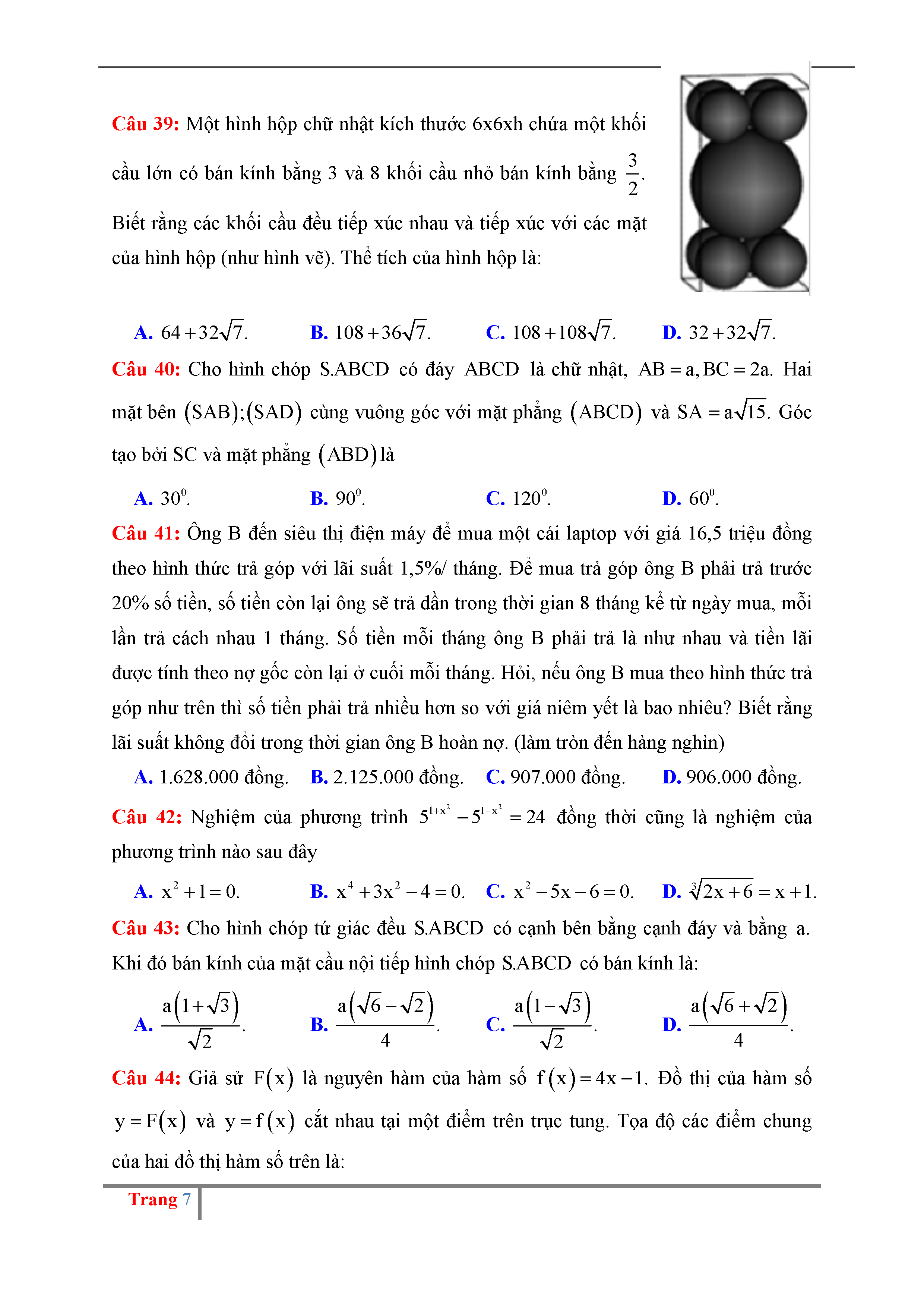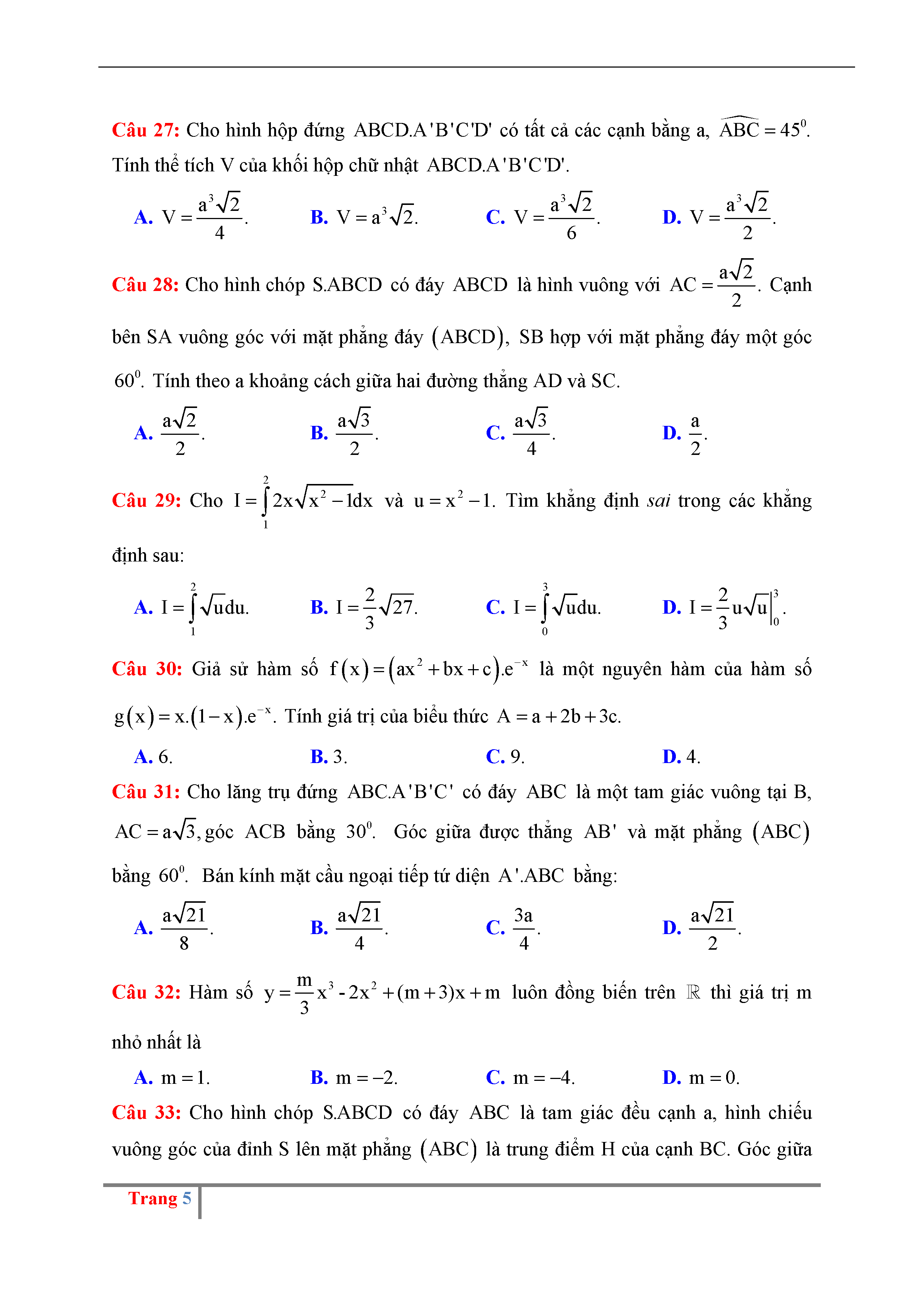 110. Đề tập huấn thi THPTQG Môn Toán năm 2017 - Trường Ninh Giang