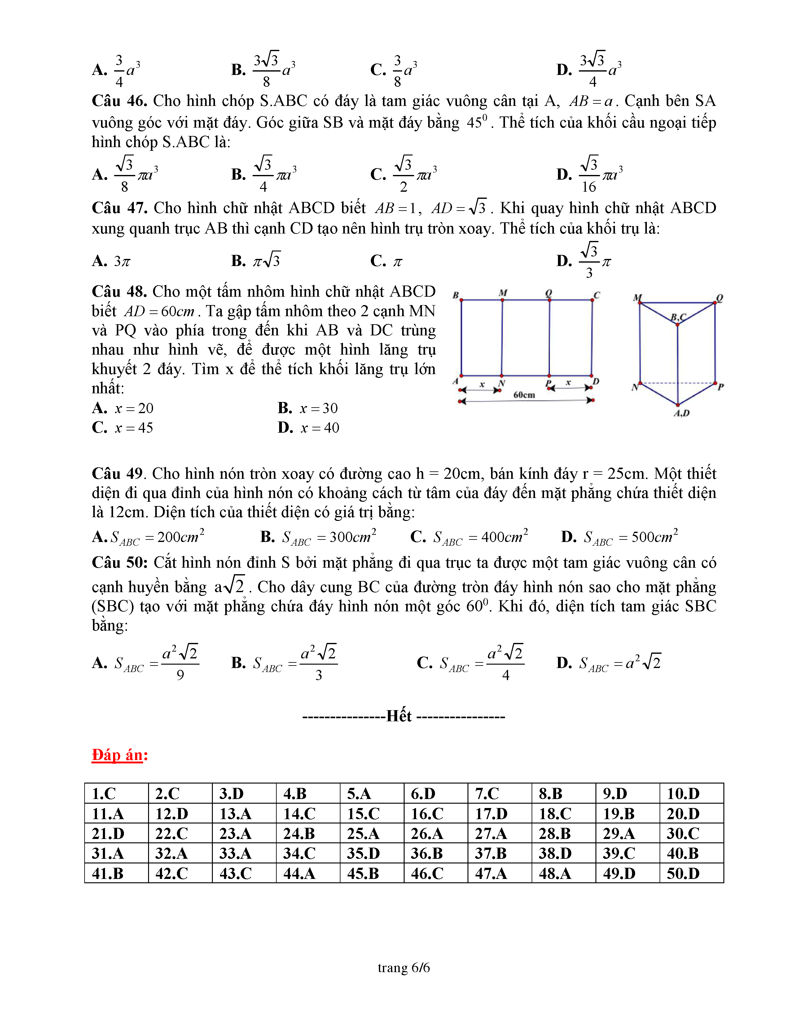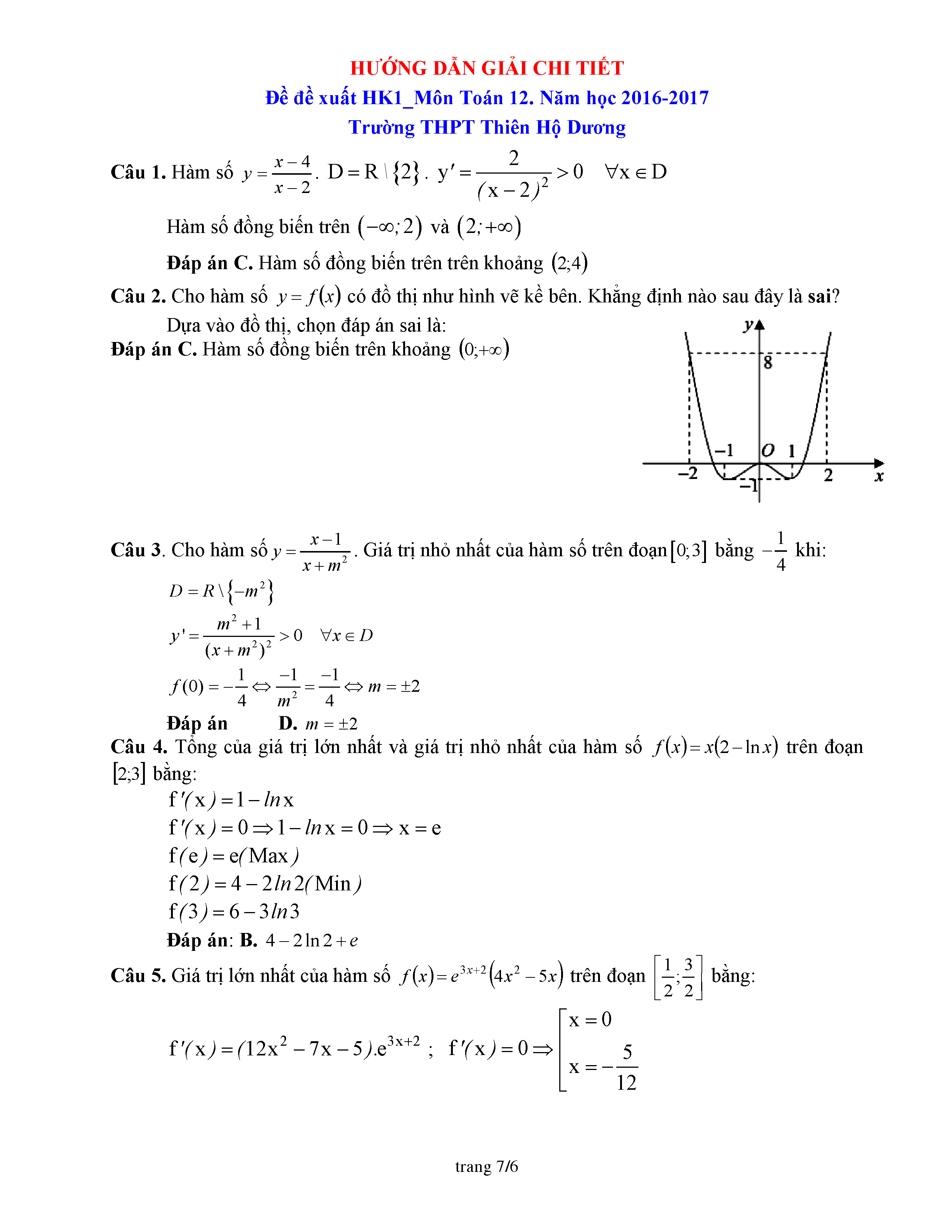 Đề thi thử THPTQG môn Toán năm 2017 trường Thiên Hộ Dương