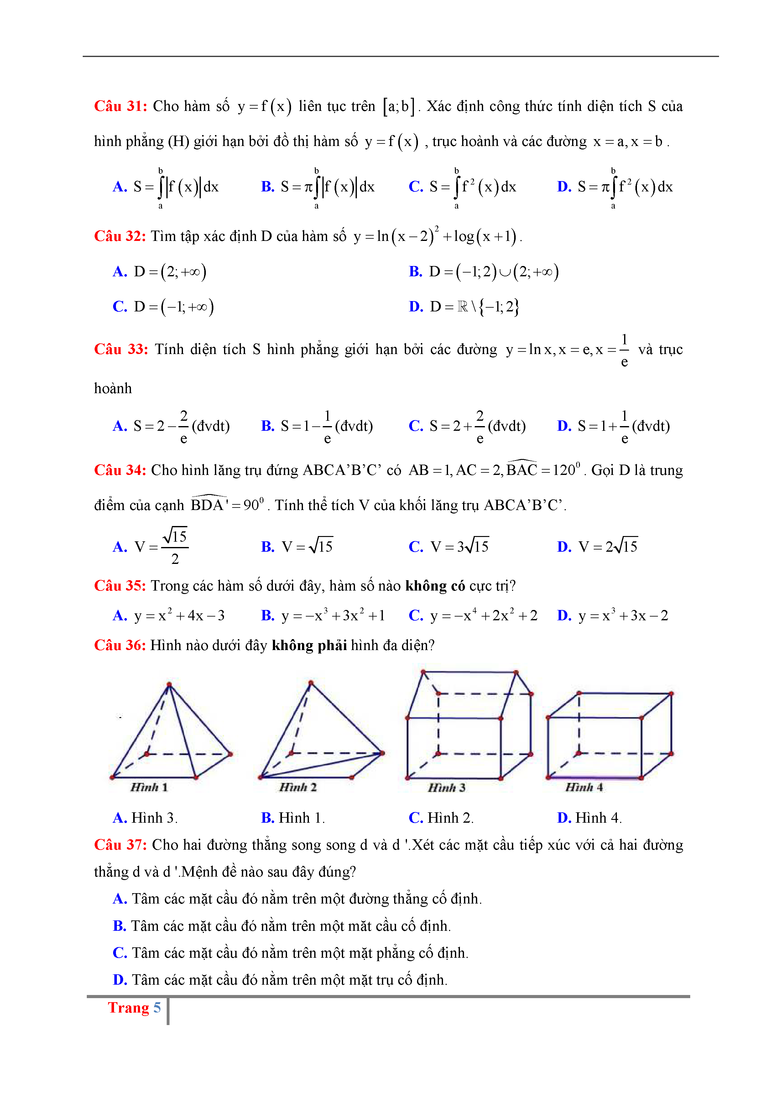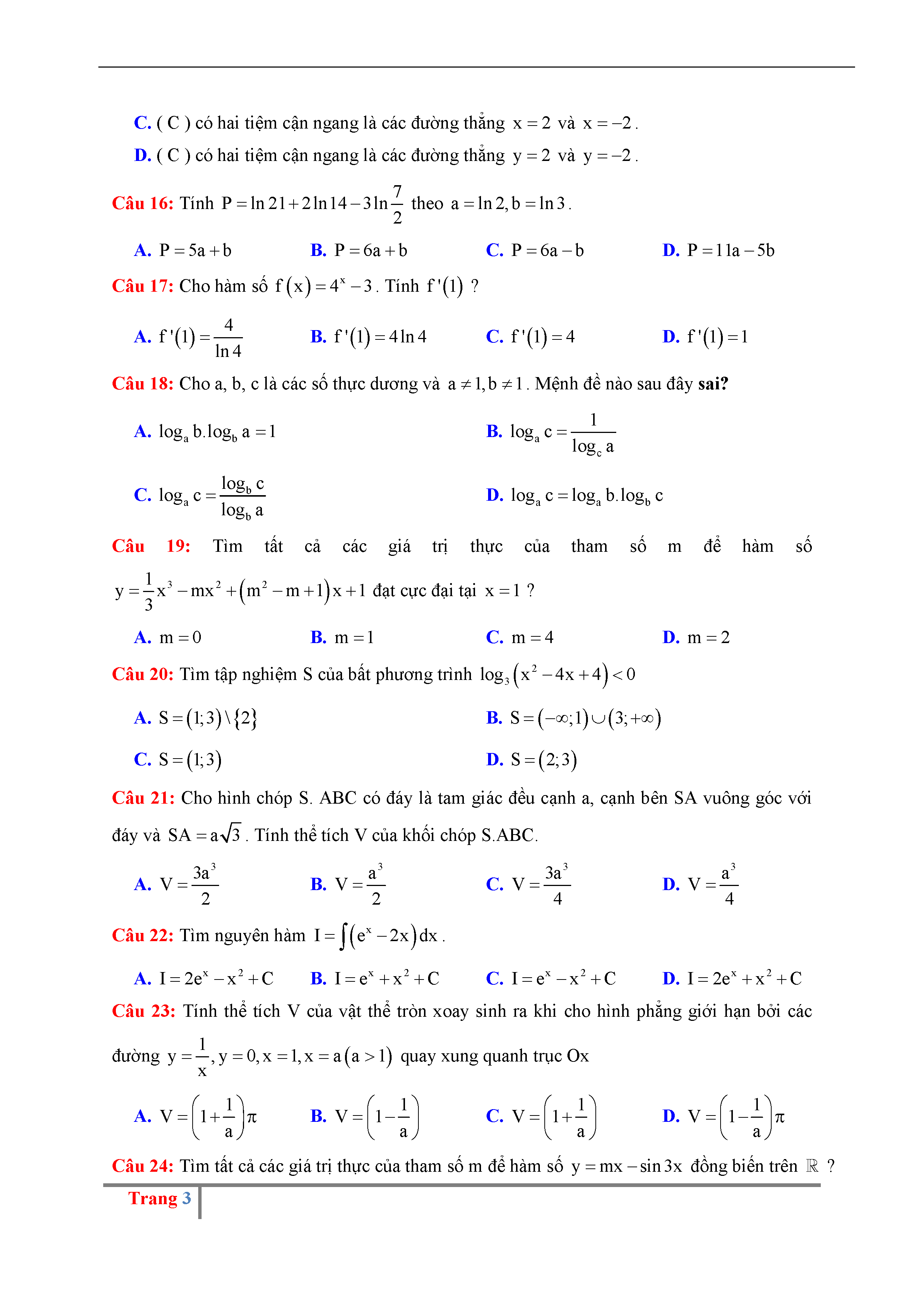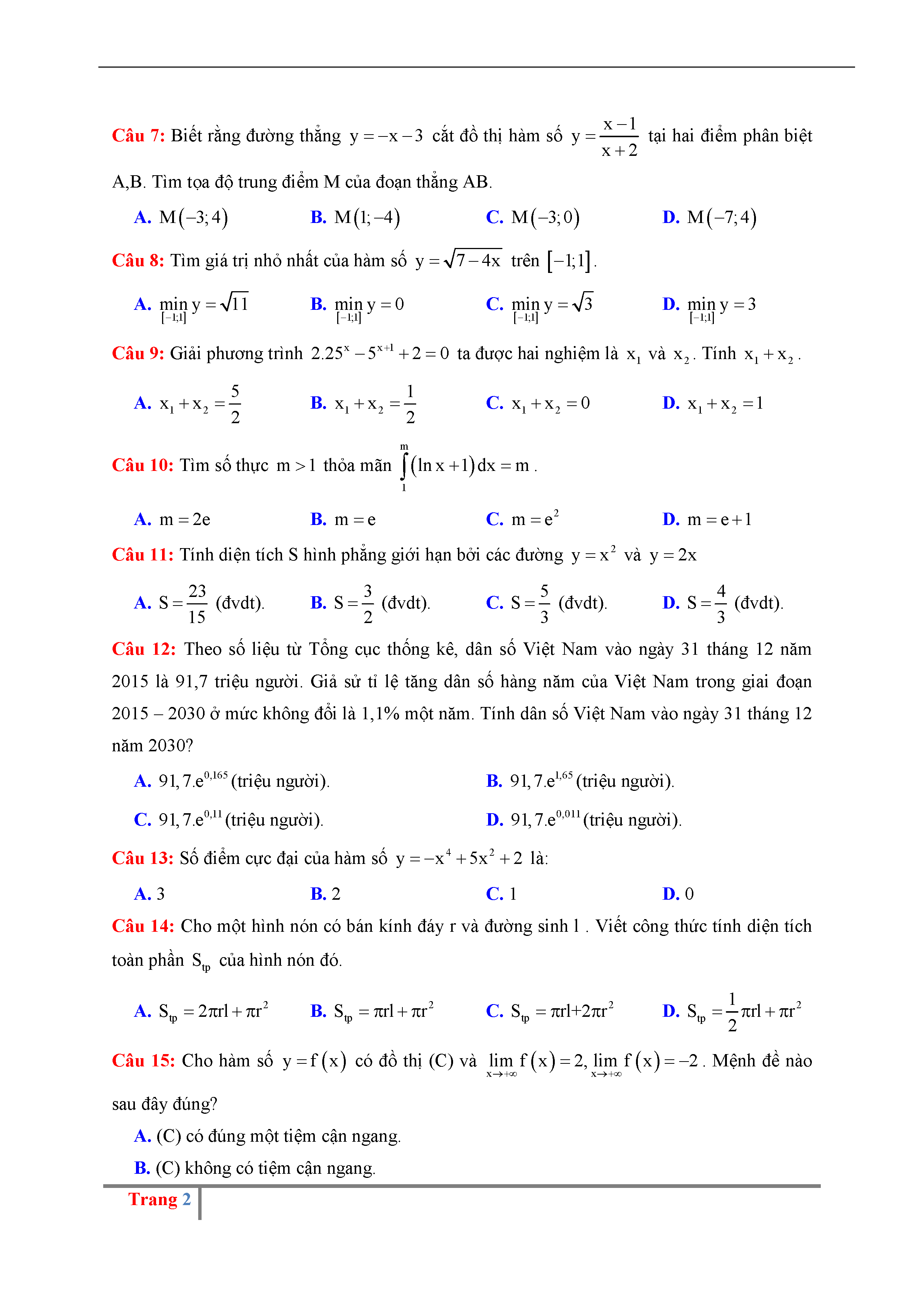 Đề thi thử THPT QG môn Toán năm 2017 - THPT Kim Sơn A