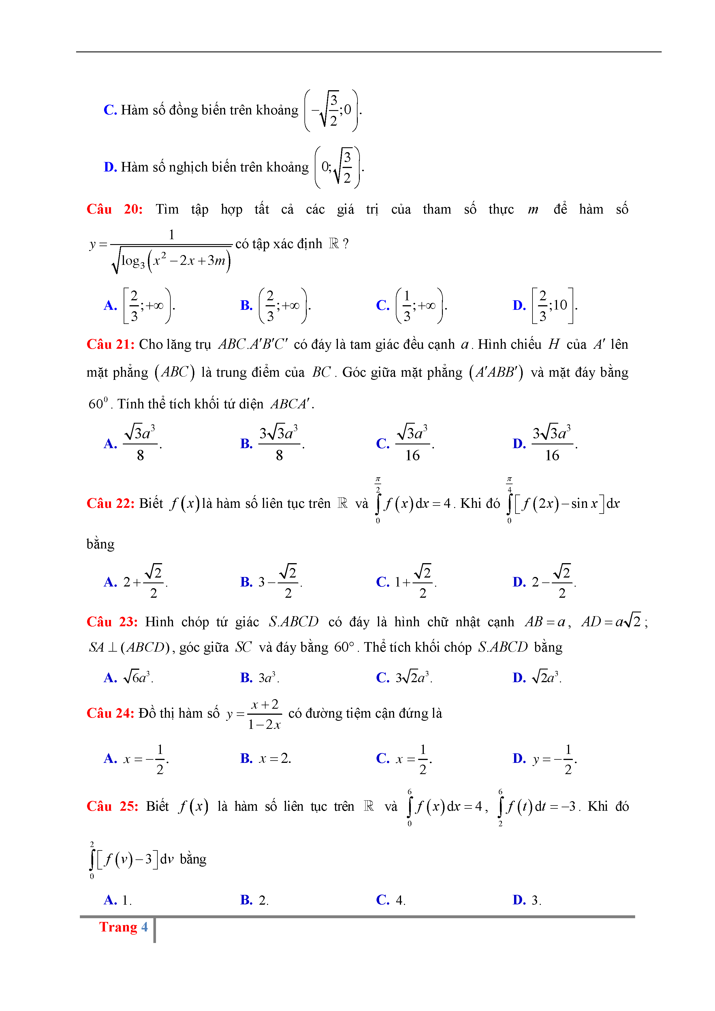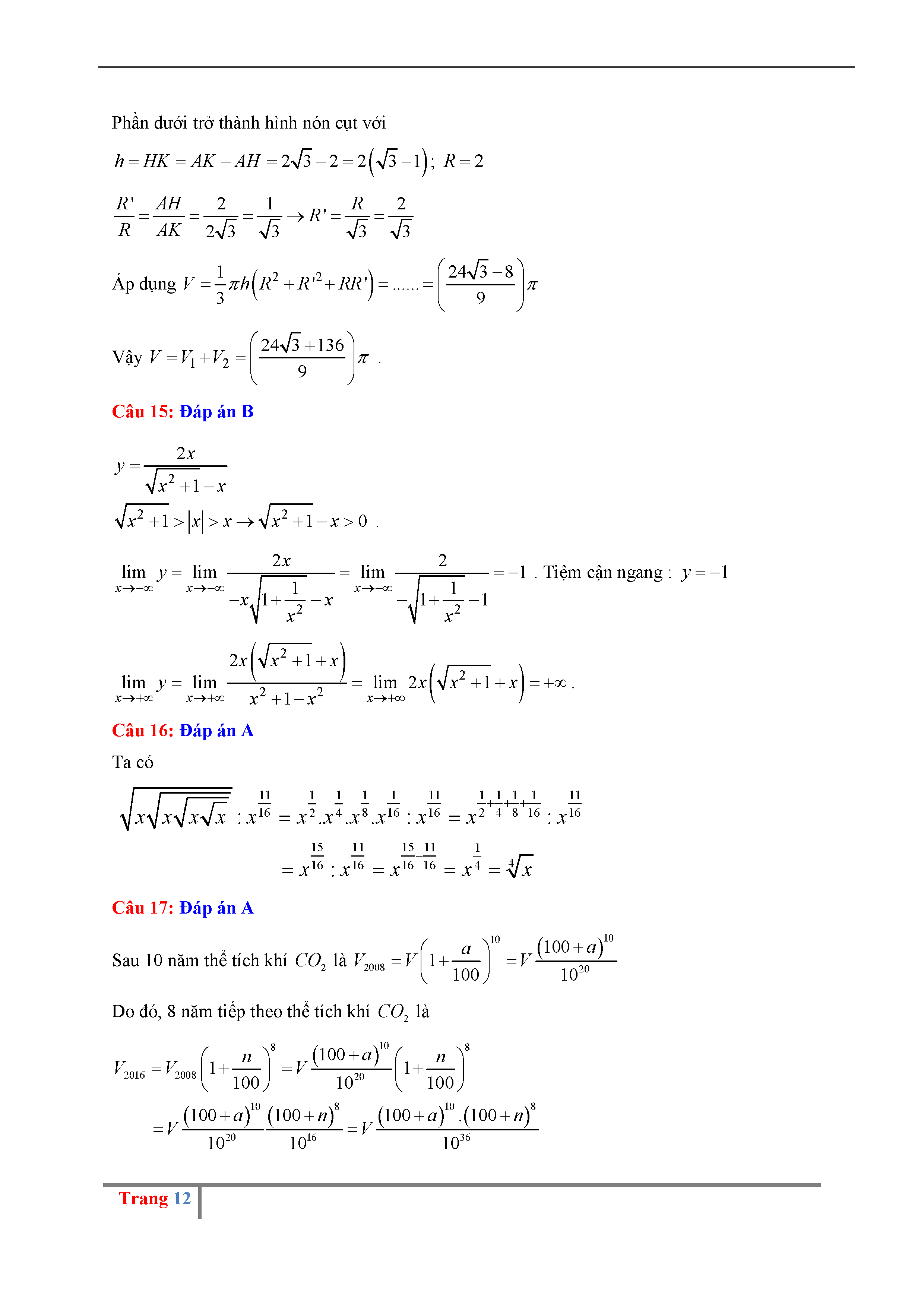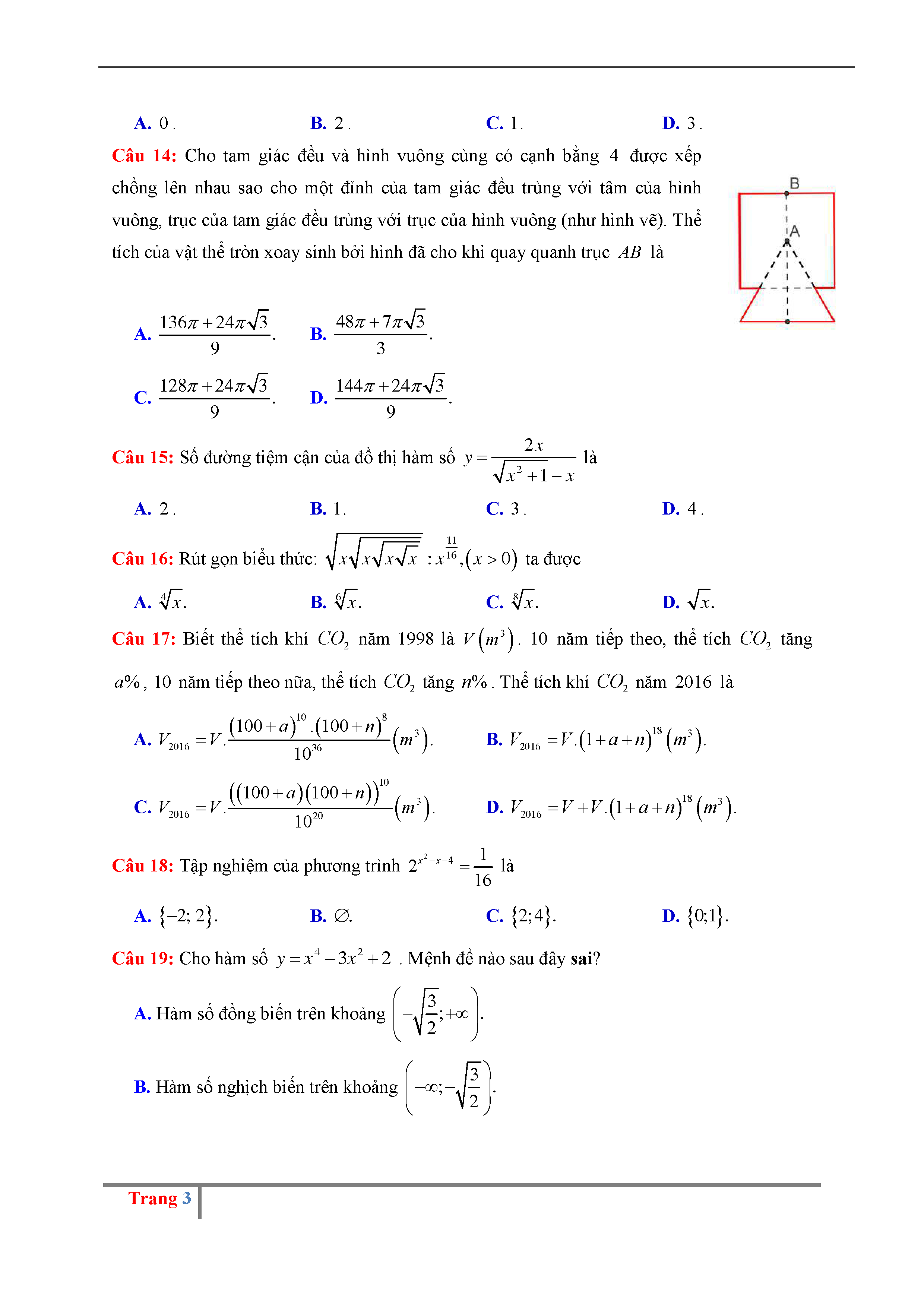 Đề thi thử THPT QG môn Toán năm 2017 - THPT Ngô Sĩ Liên, Bắc Giang - Lần 3
