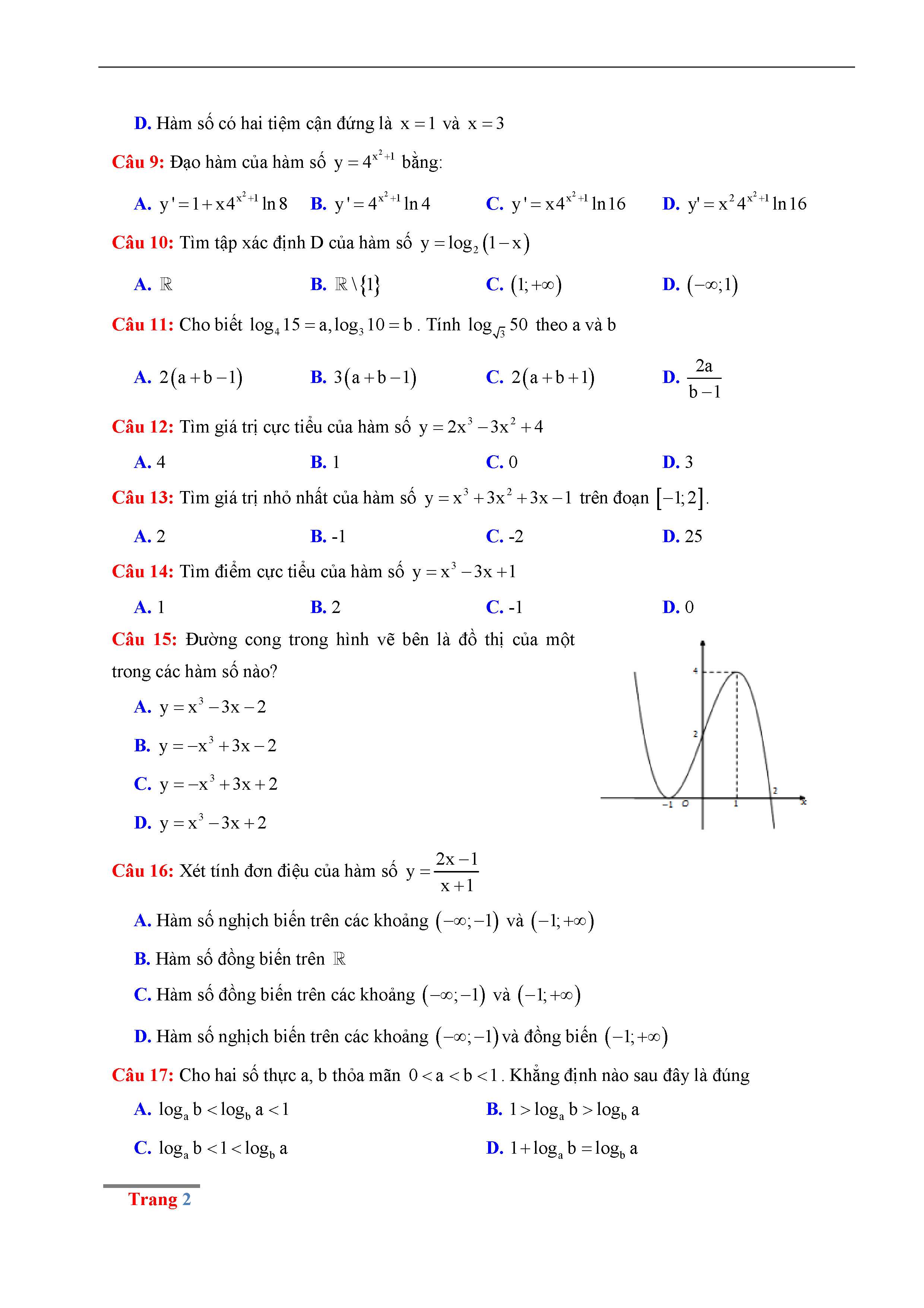 Đề thi thử THPT QG môn Toán năm 2017 - THPT Nguyễn Thị Minh Khai - D2