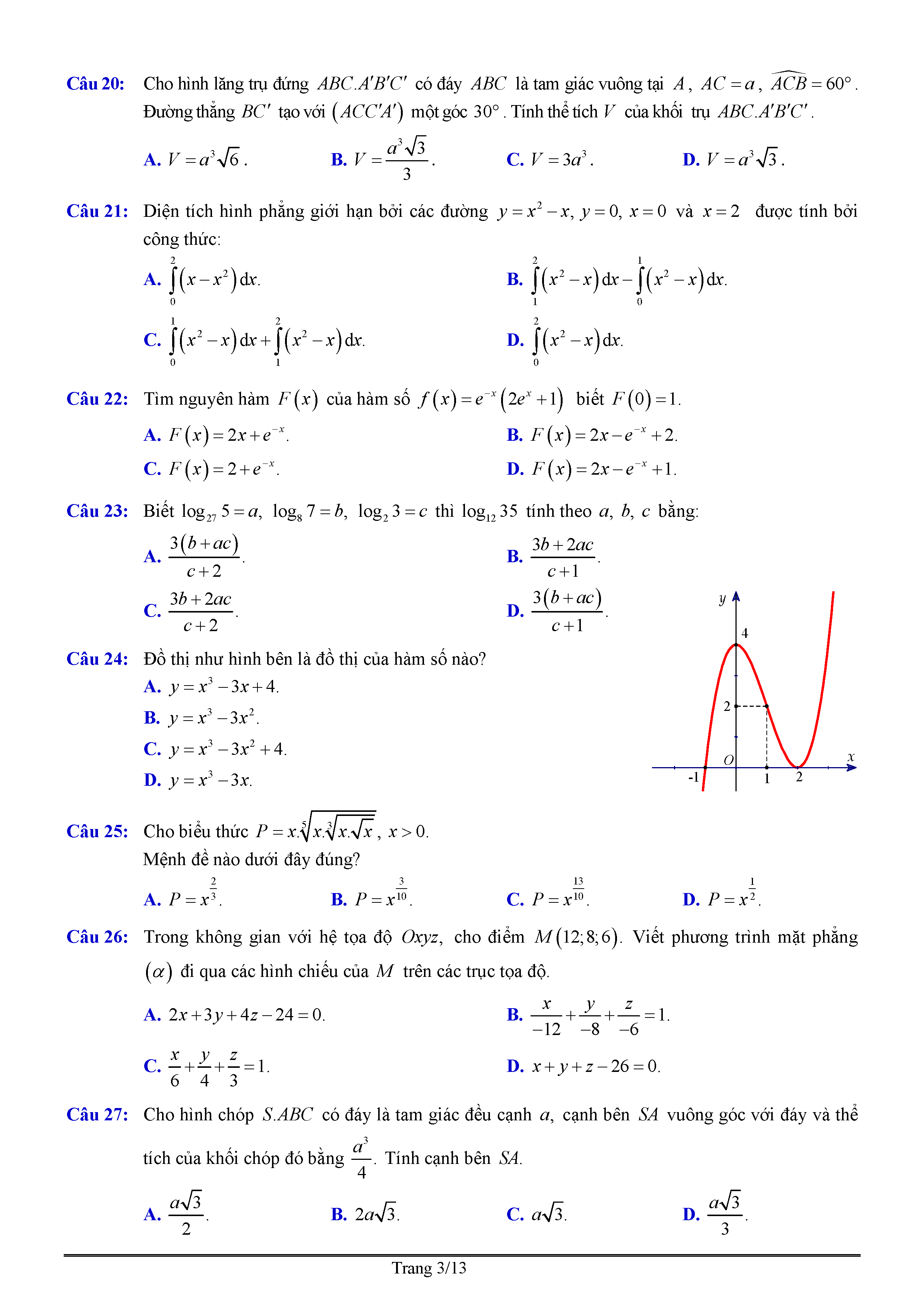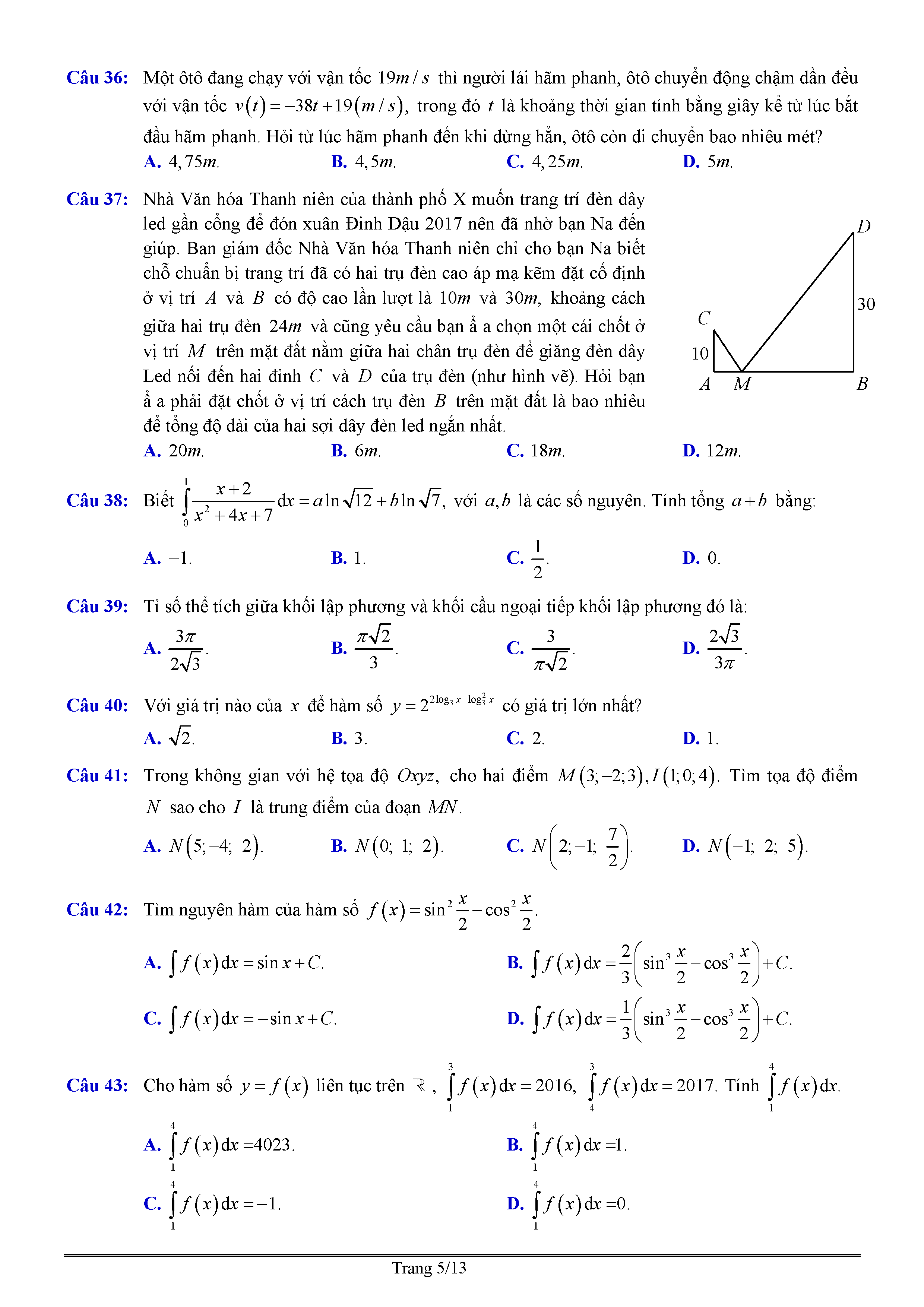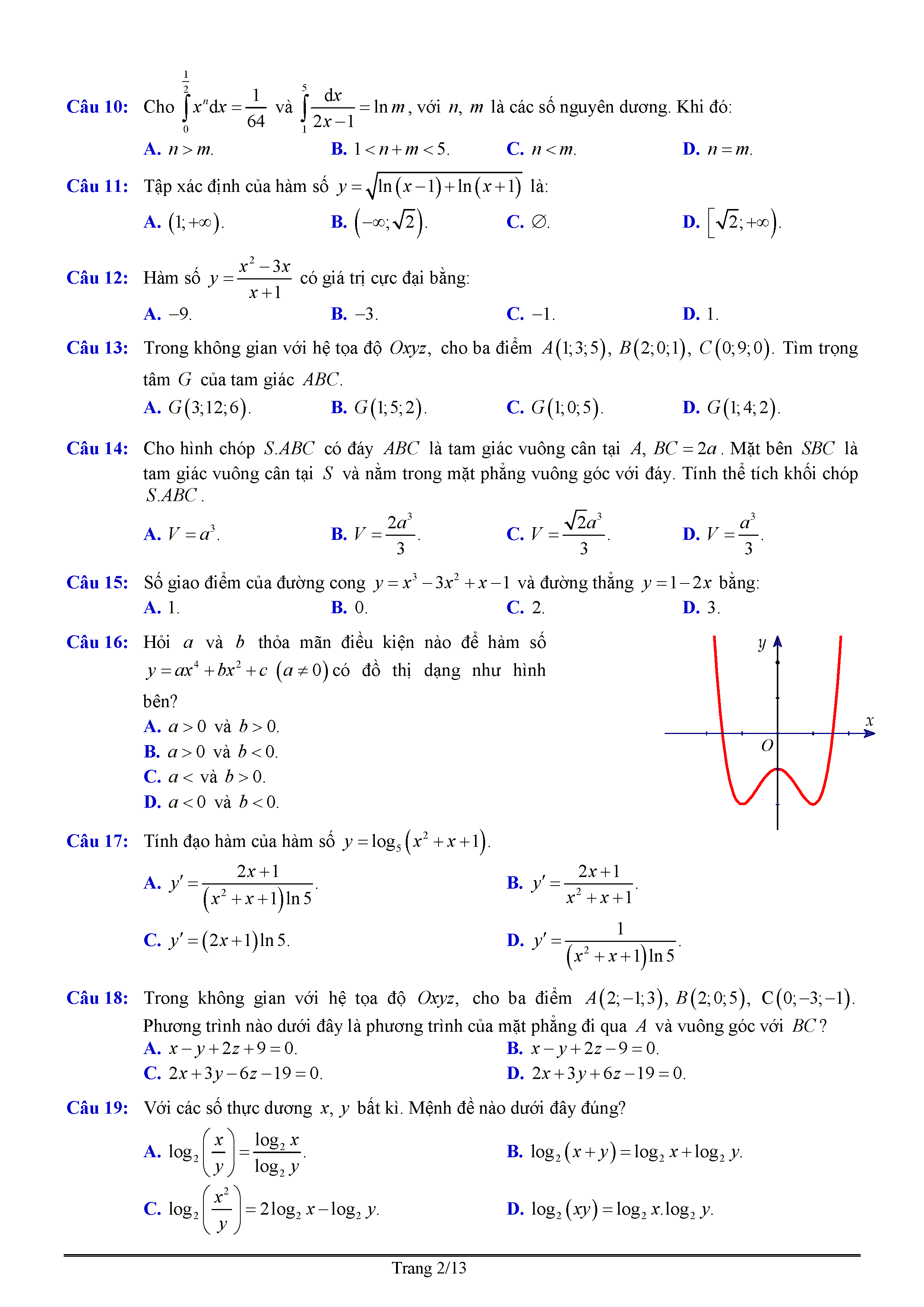 Đề thi thử THPT QG môn Toán năm 2017 -Chuyên Nguyễn Quang Diệu