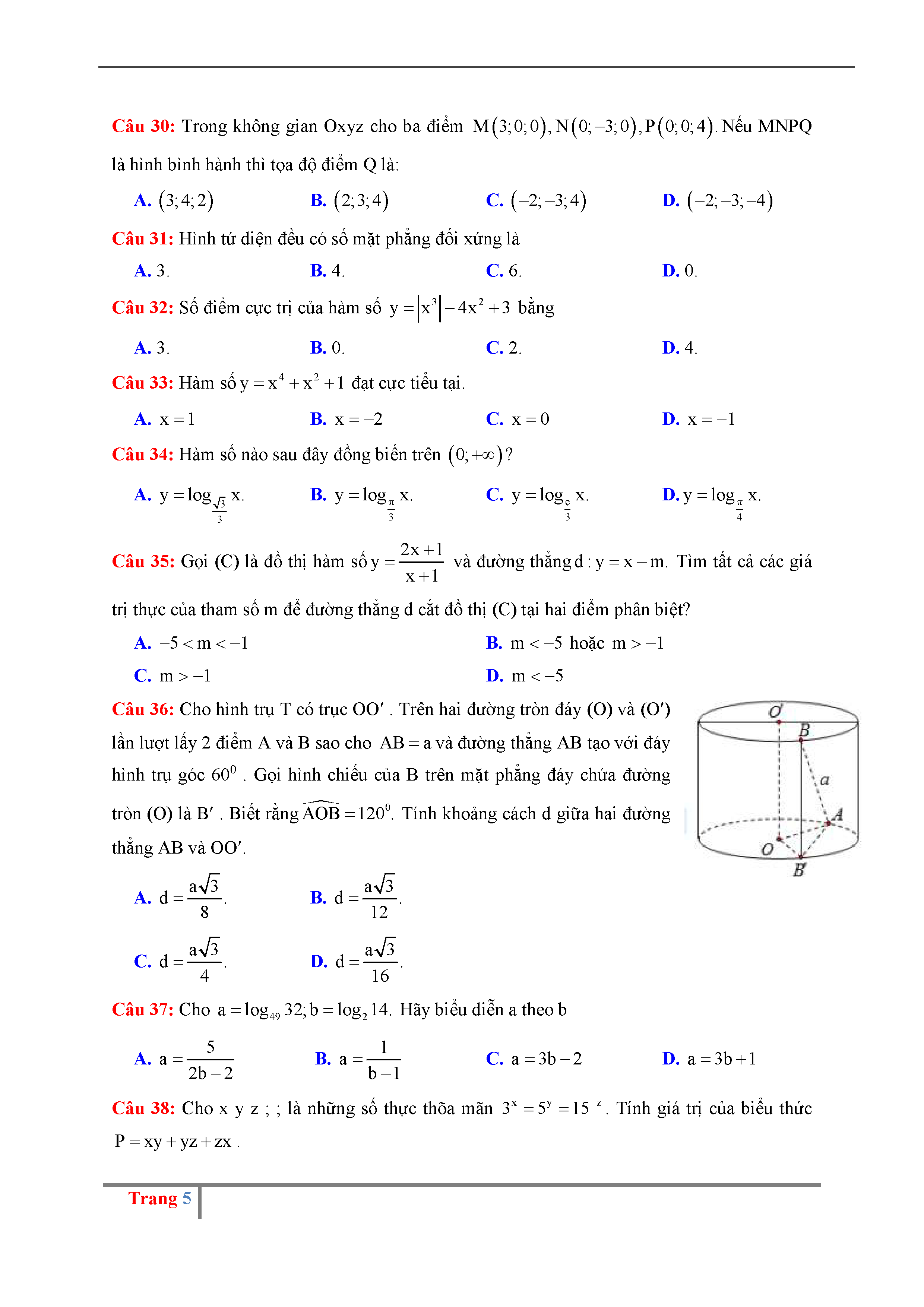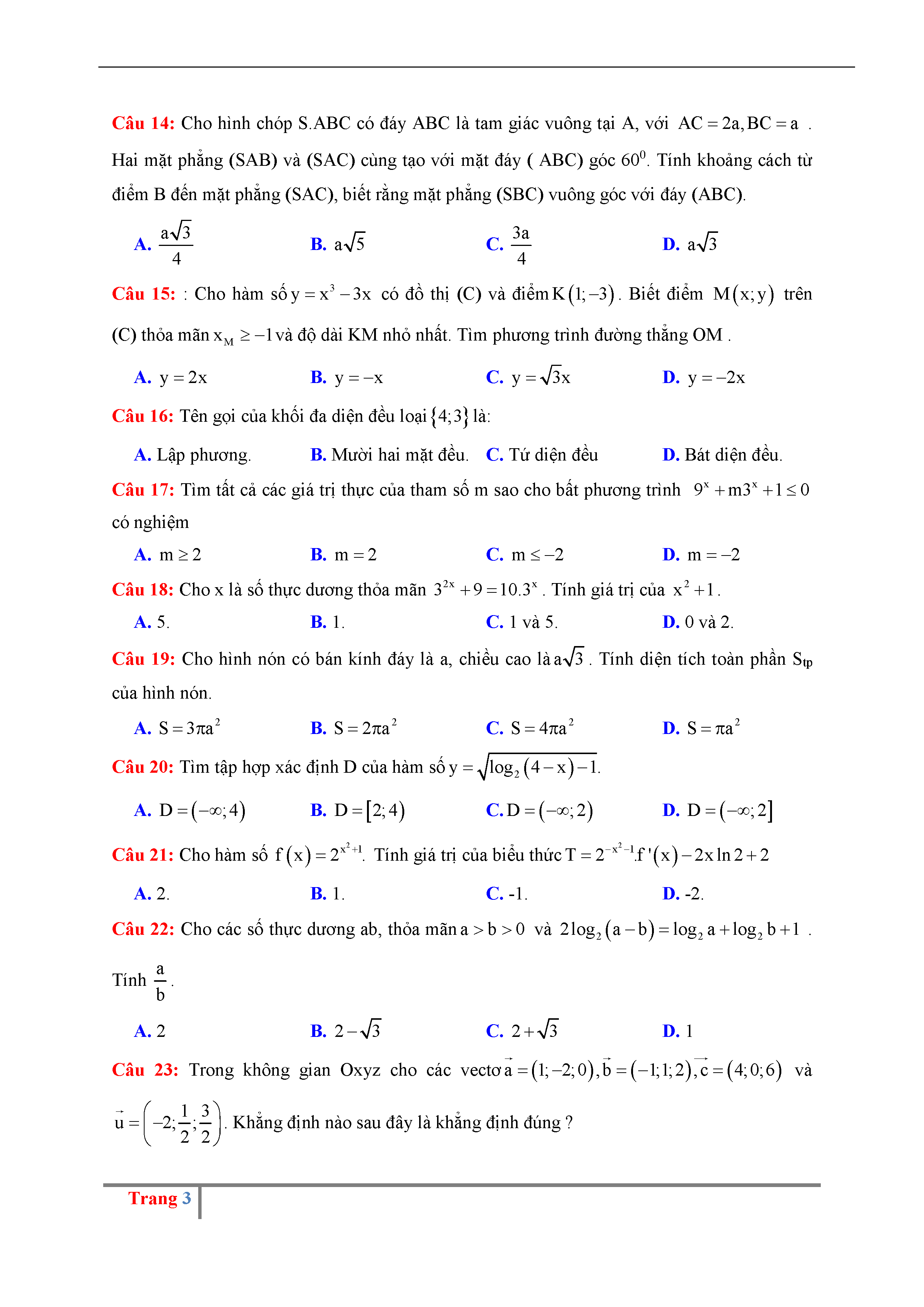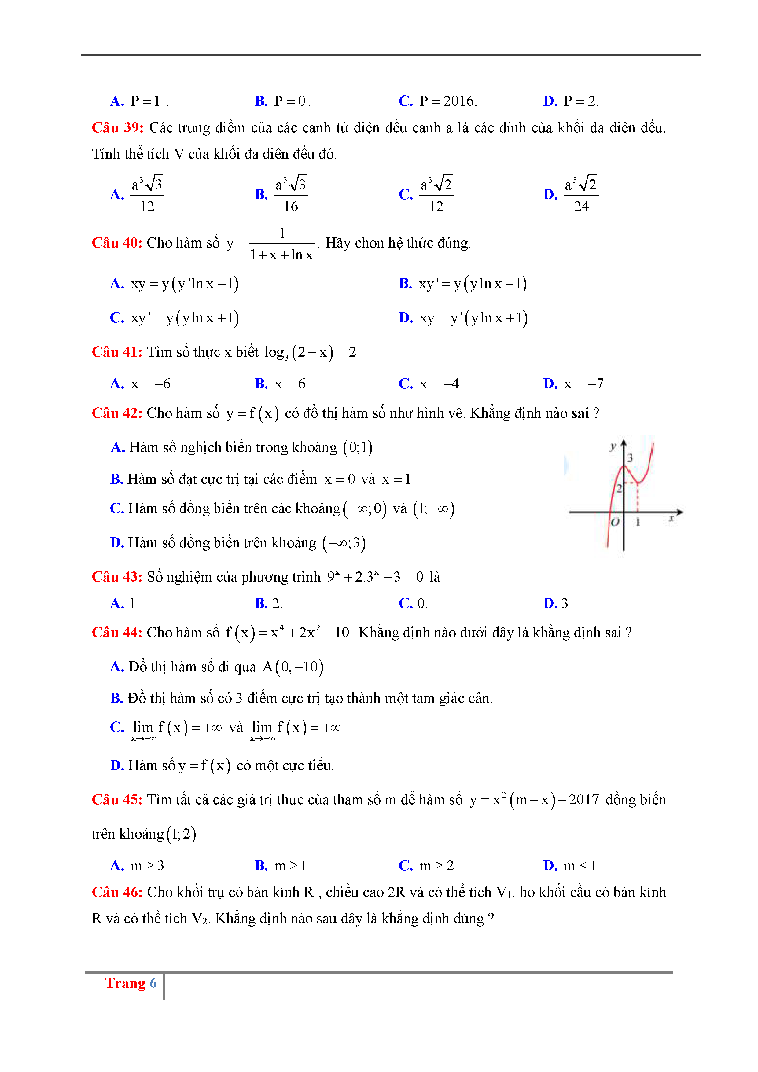 Đề thi thử THPT QG môn Toán năm 2017 Kim Liên